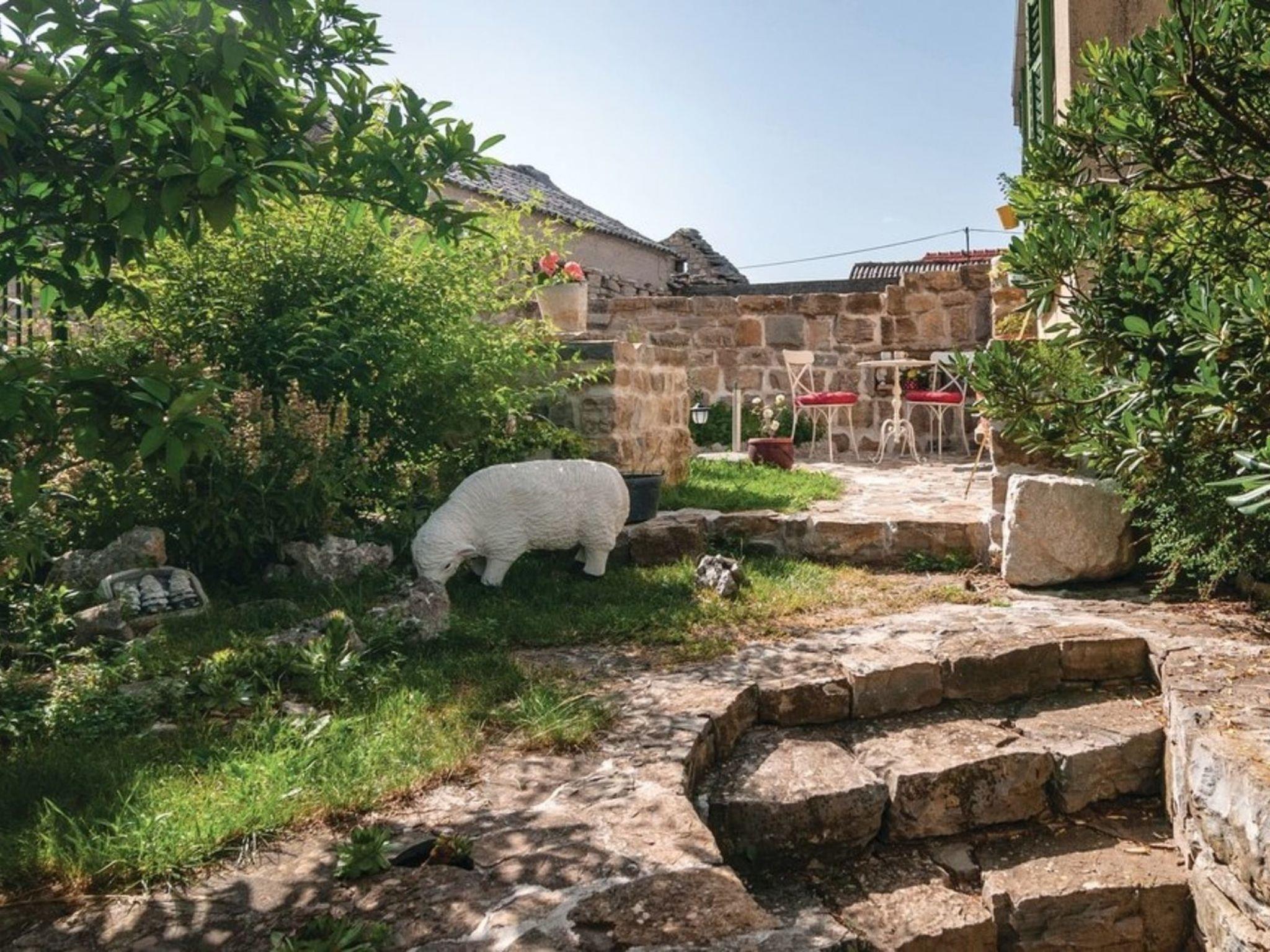 Inside, this holiday house is equipped for an effortless stay with two bedrooms and a spacious living area featuring a large sofa. The residence caters to your every convenience with two fully equipped bathrooms ensuring privacy and comfort for all guests. The inclusion of underfloor heating in parts of the house adds a cozy touch for cooler evenings, while air conditioning throughout ensures a pleasant retreat from the warm Dalmatian sun. Convenience is further provided by a washing machine and clothes dryer, exclusively for guest use within the property, ensuring all the comforts of home are at your fingertips.