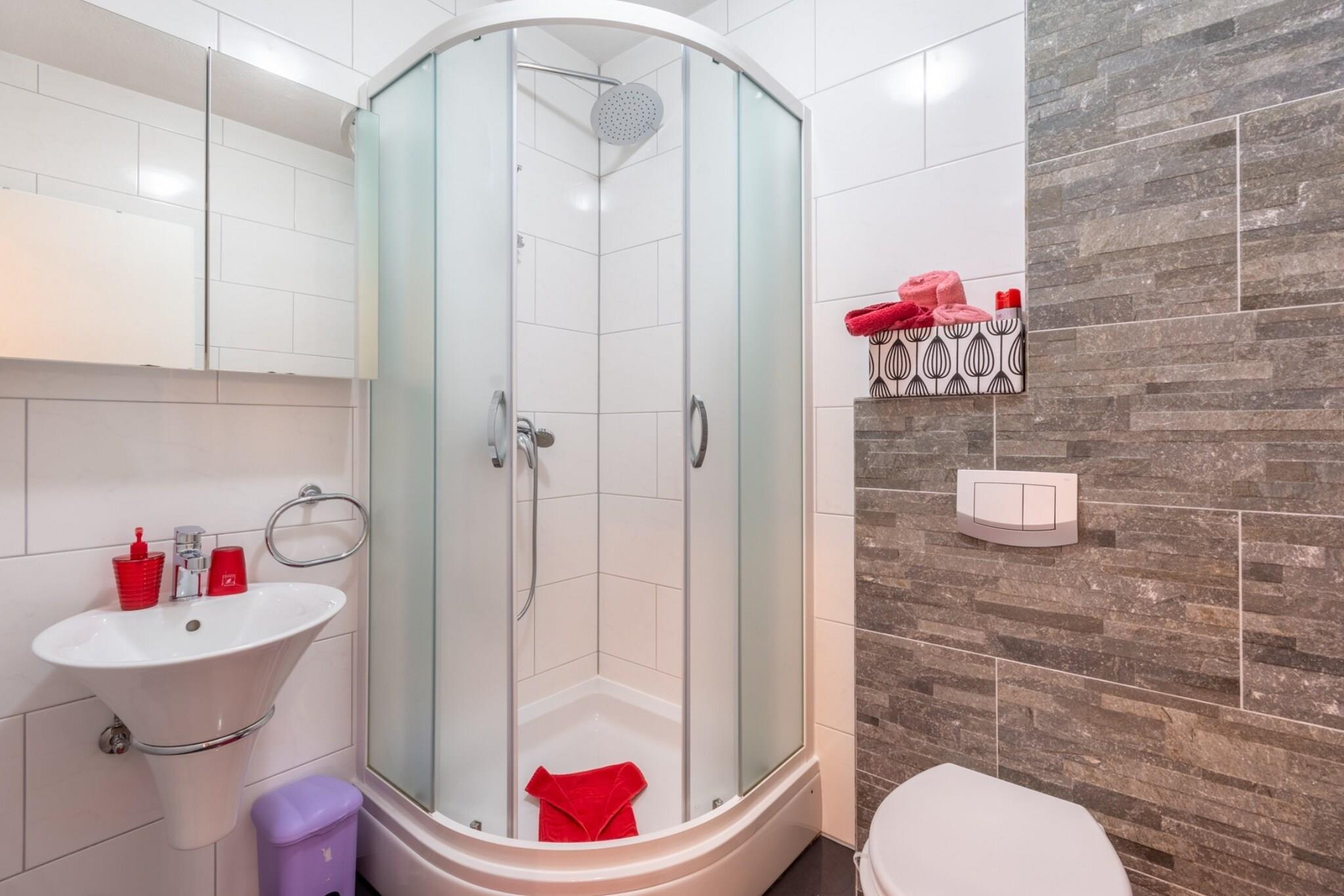 Apartments Palma tilbyr selvbetjente boenheter som ligger på et lite sted Stanici, nær Omiš. Felles møblert terrasse samt grillutstyr står til din disposisjon. Gratis parkering er tilgjengelig, reservasjon er ikke nødvendig. Bagasjeoppbevaring er mulig før innsjekking og etter utsjekking, slik at du kan utforske byen litt mer før avreise. Fra hovedveien til overnattingsstedet er det en liten bakke (ca. 100 m ). Denne nydelige toromsleiligheten med møblert balkong og havutsikt passer perfekt for opptil fem personer. gratis Wi-Fi, klimaanlegg og SAT LCD-TV. Den romslige stuen har sofa og sittegruppe, mens det utstyrte kjøkkenet har spiseplass. Leiligheten har to private bad med dusj og toalett.Barneseng, vaskemaskin og hårføner står til din disposisjon.Apartments Palma ligger kun 5,8 kilometer unna Omiš, byen og havnen i Dalmatia-regionen i Kroatia. Dagligvarebutikk, restauranter, bar og busstasjon er innen 100 m rekkevidde, mens nærmeste strand er bare 500 m fra overnattingsstedet. Uansett hvilken retning du kjører i fra Omiš, er det bare et spørsmål om minutter når du kommer til en kjent turist mål. Mindre enn 25 kilometer nordvest for Omiš ligger Split, med sitt mer enn 1700 år gamle keiser Diokletians palass, og bare 20 minutter lenger i samme retning finner du byen Trogir, et slags levende museum og et av de få byer i verden med hele sin historiske by innskrevet på UNESCOs verdensarvliste. Når du kjører videre langs kysten, kommer du til to andre populære feriemål, byene Šibenik og Zadar, og i innlandet til Šibenik kan du besøke en av de beste reisemålene for en dagstur i Dalmatia, nasjonalparken Krka, som ikke er mer enn to timers kjøretur unna Omiš langs motorveien A1! Split lufthavn ligger 46 km fra eiendommen.