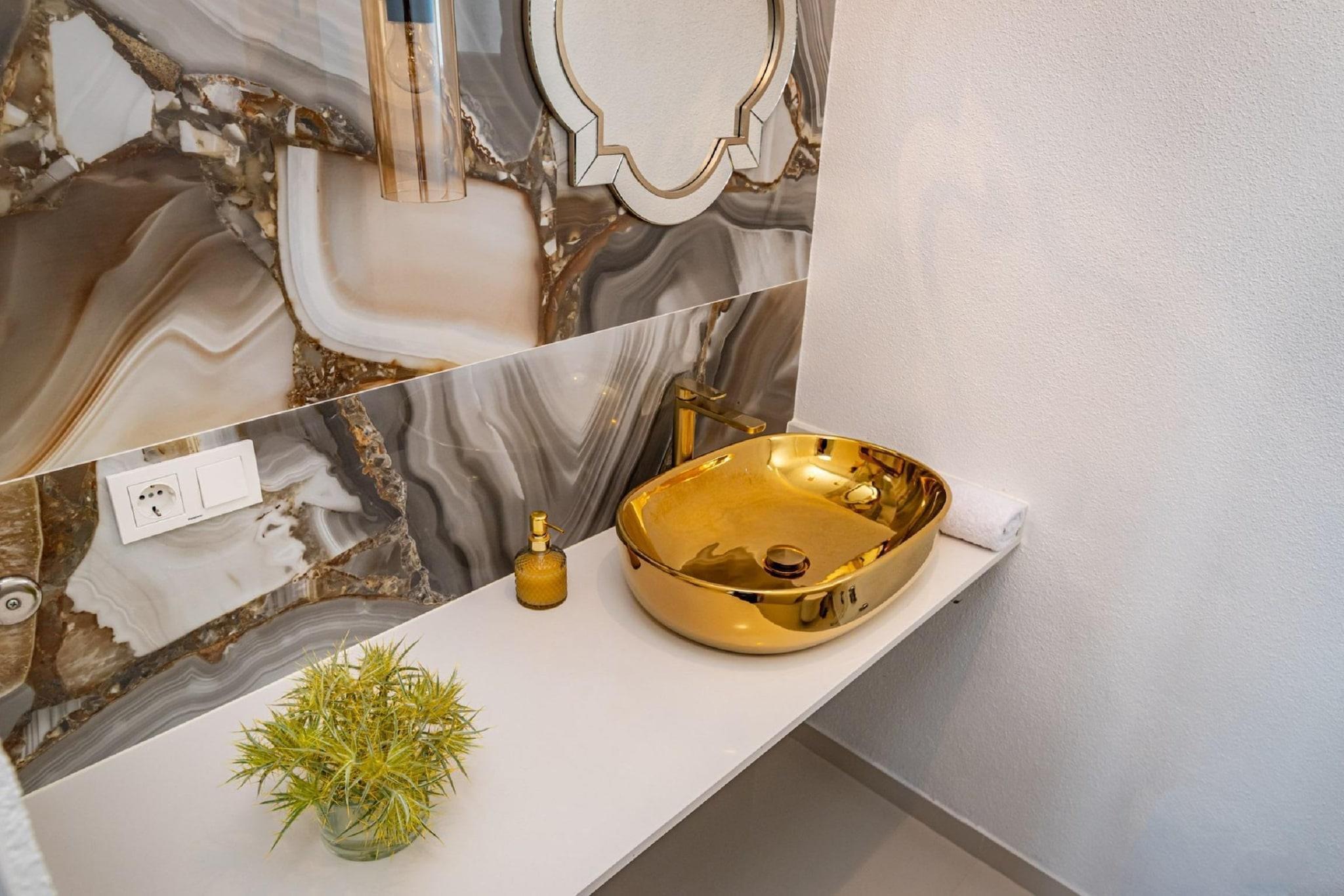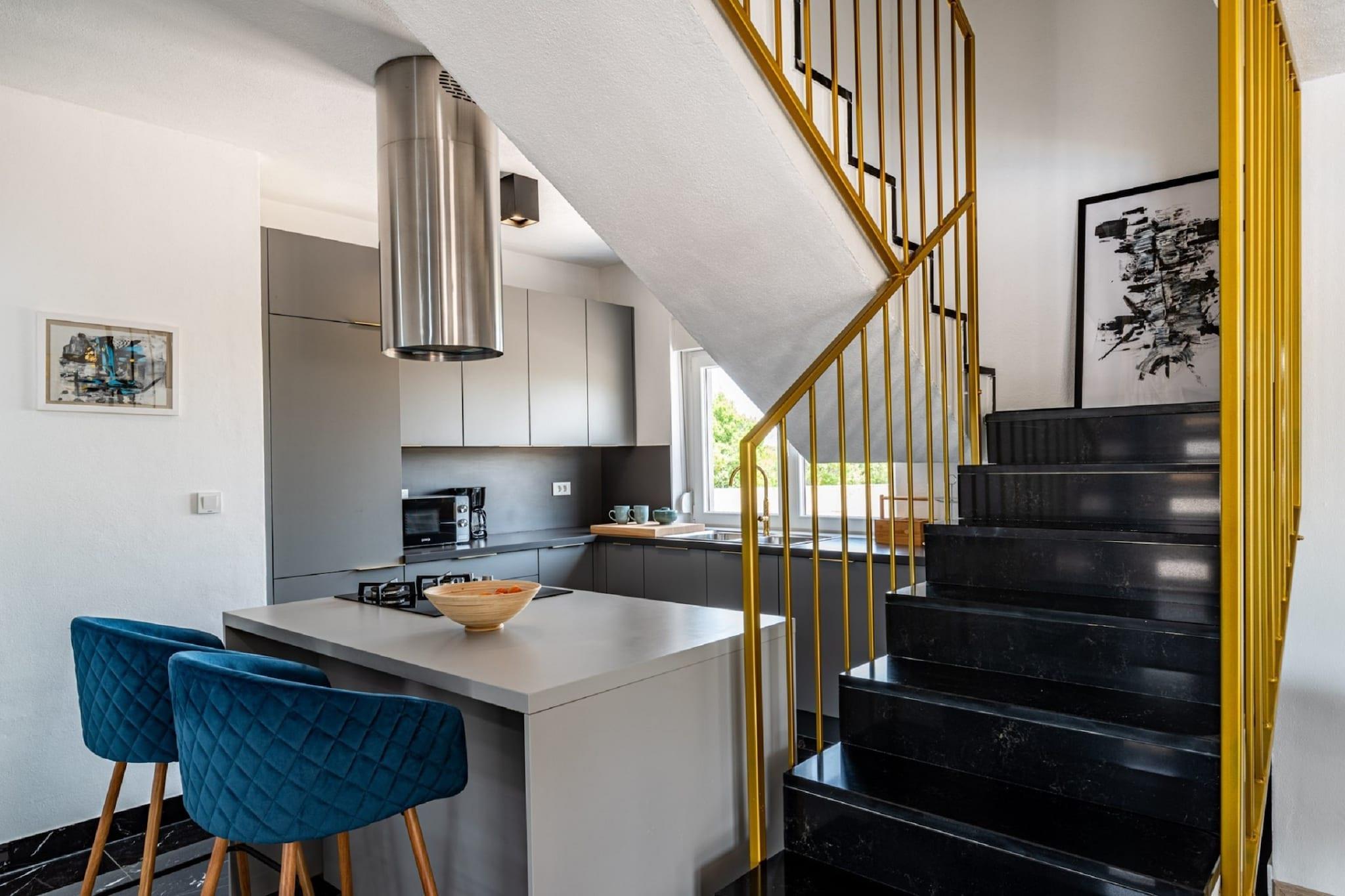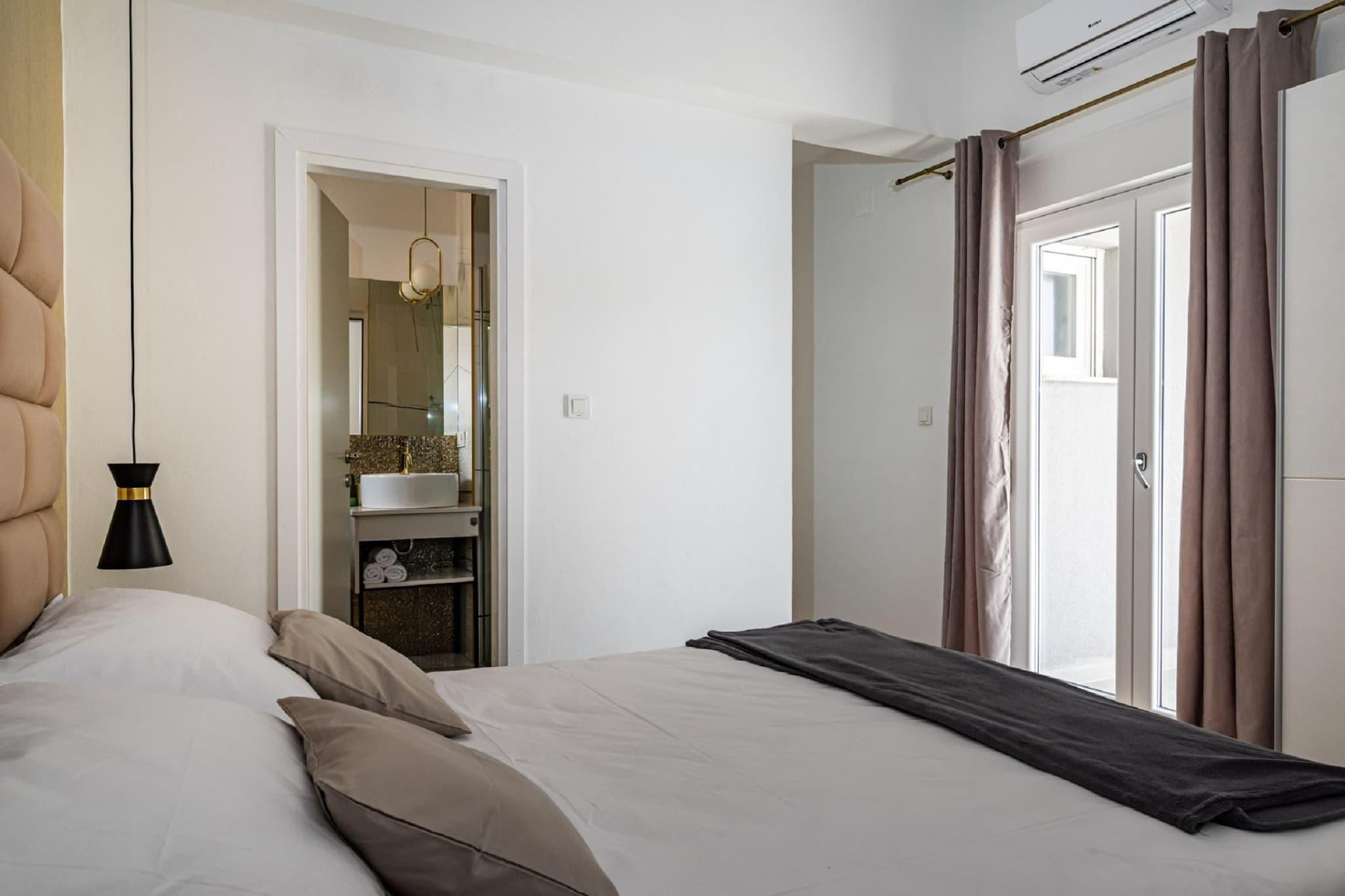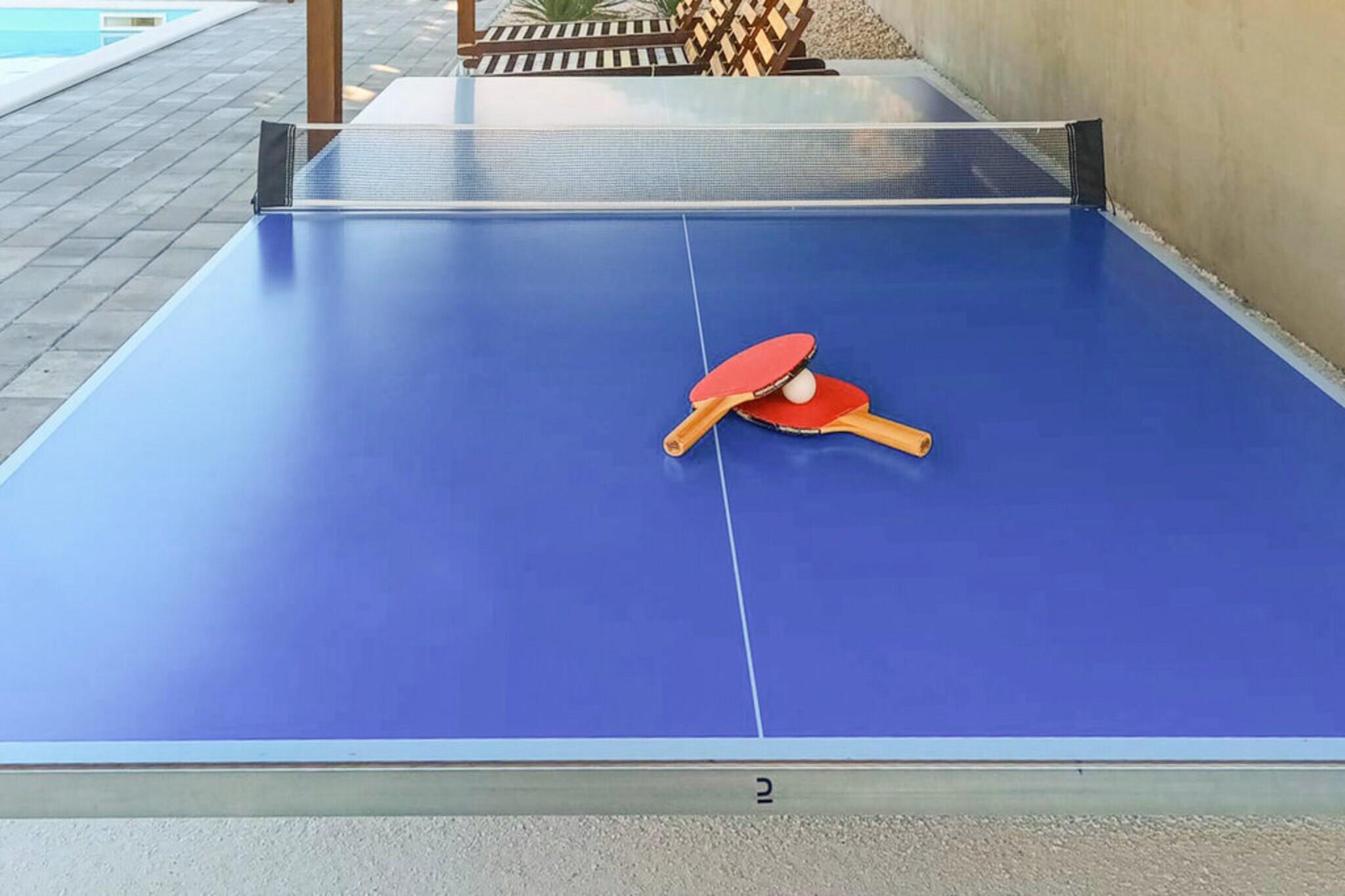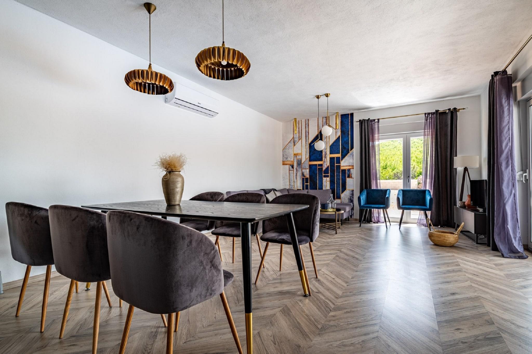 Denne moderne villaen med 4 soverom ligger i utkanten av den fredelige landsbyen Radašinovci, og tilbyr et luksuriøst tilfluktssted i nærheten av naturparken Vrana Lake. Omgitt av åser og kun 12 km fra stranden, er det en perfekt base for å utforske Krka nasjonalpark, Kornati, Paklenica og kystperlene i Šibenik og Zadar. Villaen har to soverom med eget bad i første etasje, og to soverom oppe som deler bad, ett med frittstående badekar. Begge de øverste rommene åpner mot private balkonger. Den romslige stuen, det fullt utstyrte kjøkkenet og vaskerommet sørger for et komfortabelt opphold, med klimaanlegg, satellitt-TV og gratis Wi-Fi overalt. Utendørs kan du nyte et 32 m² stort basseng, grill og en inngjerdet hage med badminton, trampoline, bordtennis og husker. Privat parkering for gjester og kjæledyrvennlige fasiliteter gjør det ideelt for familier. Et rolig og aktivitetsfylt tilfluktssted på den kroatiske landsbygda.