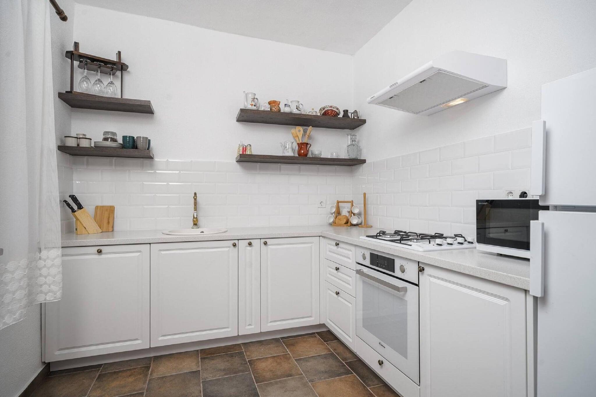 Opplev den autentiske sjarmen til Dalmatia i denne vakre steinvillaen som ligger i den fredelige landsbyen Stankovci, bare 12 km fra nærmeste strand. Omgitt av frodig natur, tilbyr huset en rolig setting for en avslappende ferie, samtidig som det ligger nær Adriaterhavskysten. Perfekt for familier eller små grupper, med plass til opptil 6 gjester, og et innbydende tilfluktssted for både voksne og barn. Villaen har to etasjer med rustikk innredning og moderne bekvemmeligheter. I første etasje finner du en koselig stue og spisestue, et fullt utstyrt kjøkken og et praktisk gjestetoalett. Ovenpå er det to komfortable soverom og et bad. Uteområdet er designet for avslapning og moro, og tilbyr et privat svømmebasseng, en overbygd spiseterrasse, en boccebane og et lekeområde med husker og trampoline. To sykler er også tilgjengelig for gjester som ønsker å utforske de naturskjønne omgivelsene. Villaen har en ideell beliggenhet, kun 15 minutters kjøretur fra naturparken Lake Vrana og 20 minutter fra den berømte nasjonalparken Krka. Kystbyen Pirovac ligger i nærheten, og både Zadar og Split ligger innen 45 minutter. Enten du ønsker å utforske Dalmatias naturskatter eller slappe av i fredelige landlige omgivelser, tilbyr denne villaen den perfekte balansen mellom komfort, sjarm og bekvemmelighet.