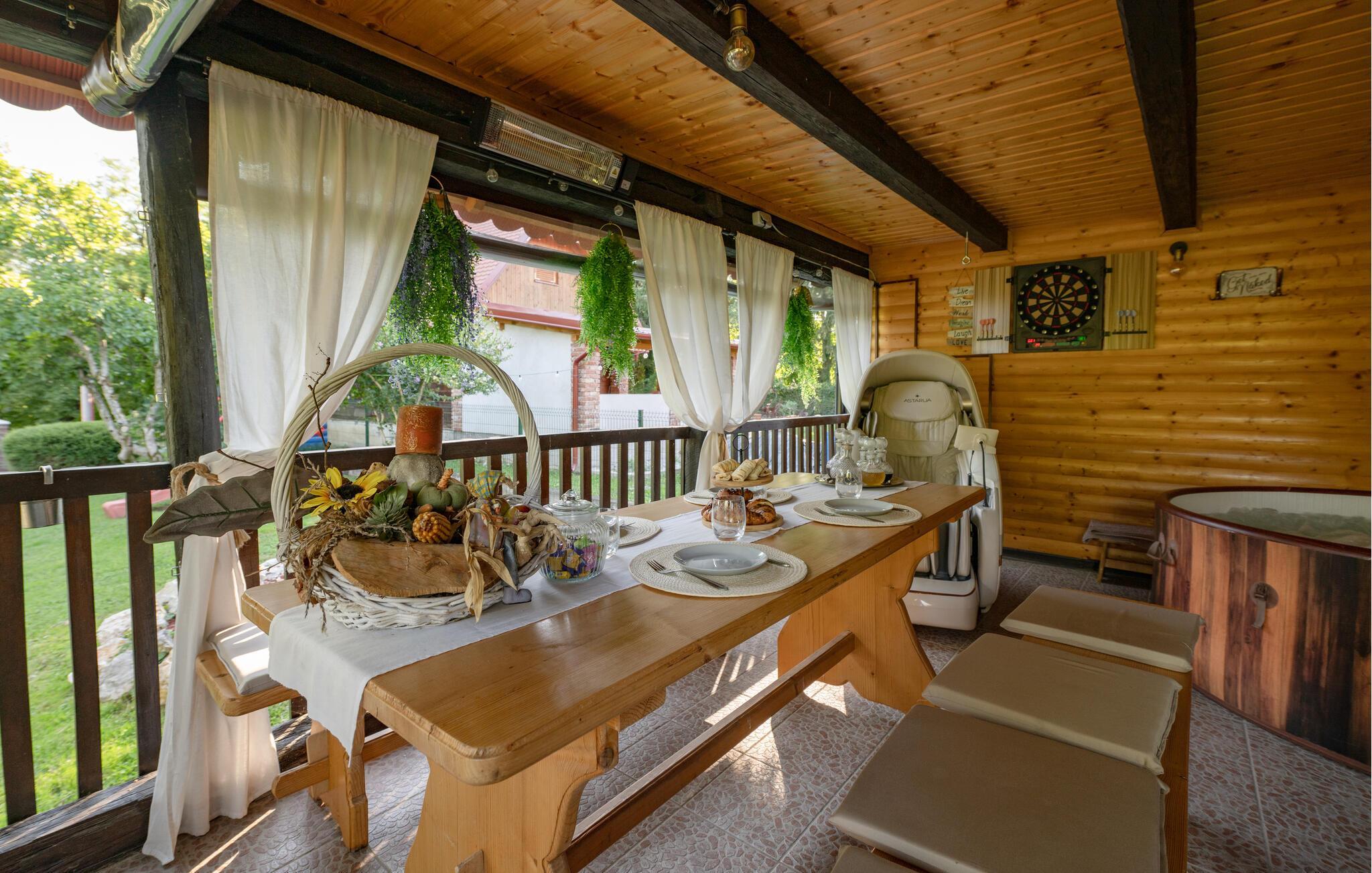 Den idylliske hagen innbyr til avslapning hele dagen. Start morgenen med frokost på terrassen omgitt av grøntområder, eller nyt en koselig middag i det fri. Mens barna spiller badminton eller fotball, kan du lene deg tilbake og slappe av med en kopp kaffe.