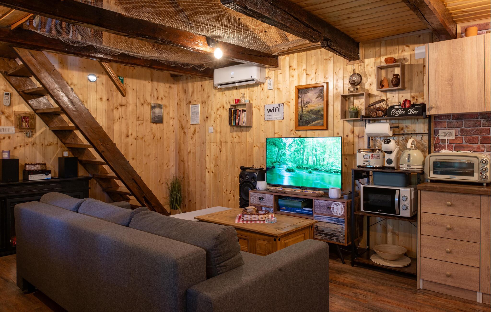 Vannet ligger rett utenfor døren og innbyr til en forfriskende svømmetur eller en avslappende stund i strandkanten. Utforsk den omkringliggende naturen på en fottur eller sykkeltur langs det pittoreske elvelandskapet. Ta en tur til den nærliggende byen Petrinja og oppdag den sjarmerende gamlebyen med historiske bygninger og koselige kafeer. Prøv regionale spesialiteter på de tradisjonelle vertshusene, og la deg inspirere av den varme gjestfriheten.