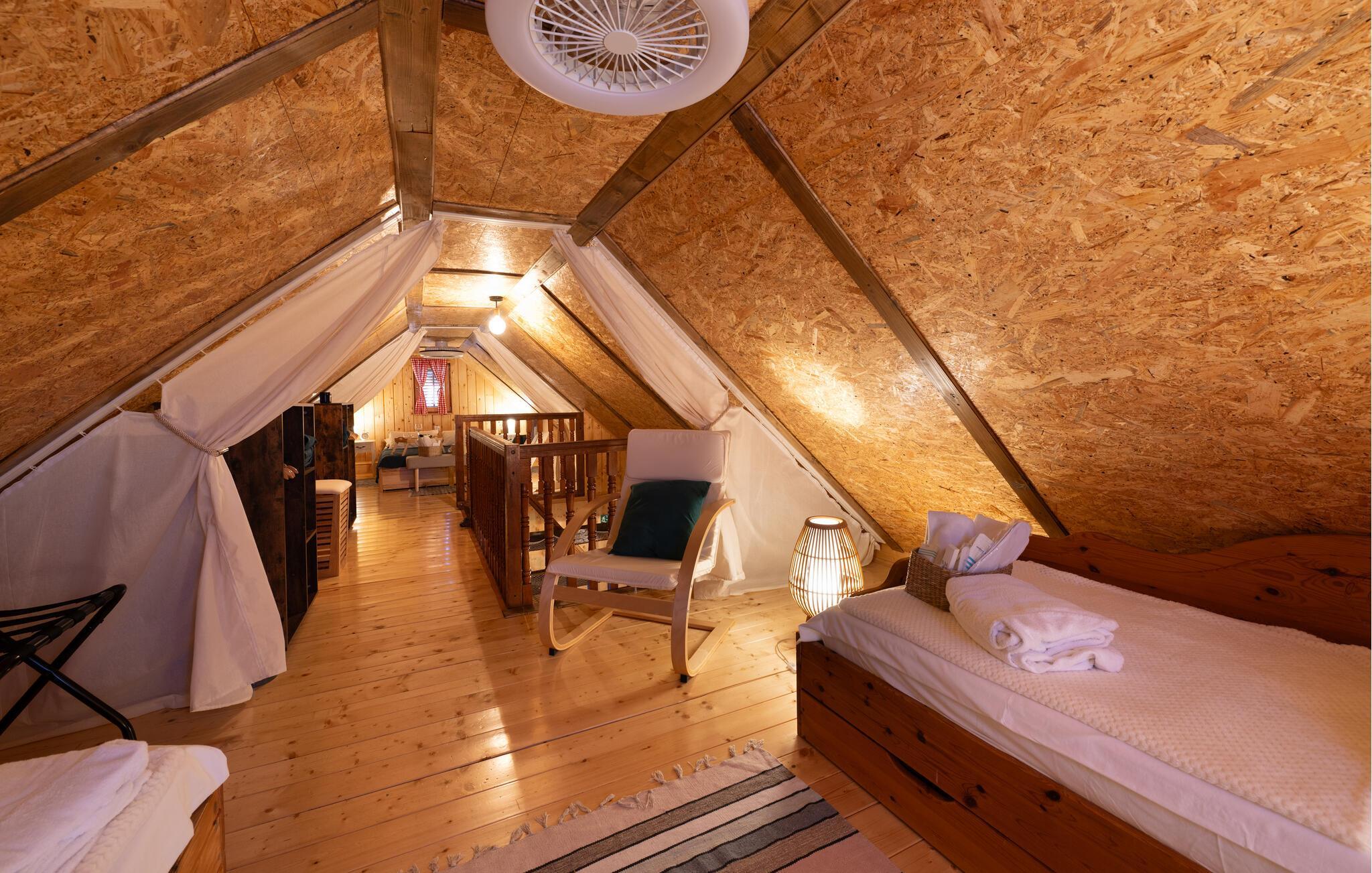Soverommene er adskilt med gardiner