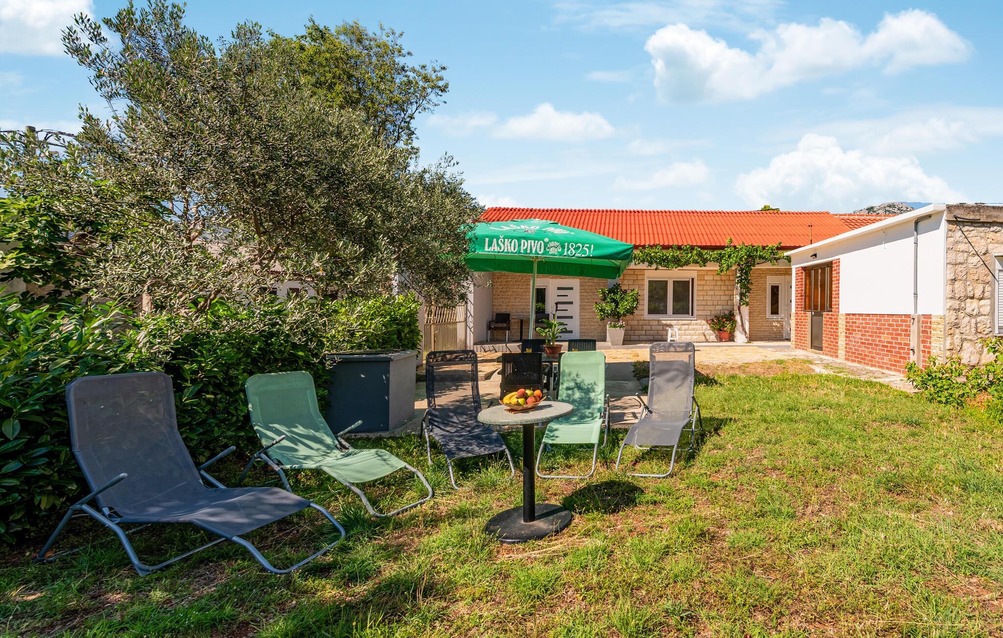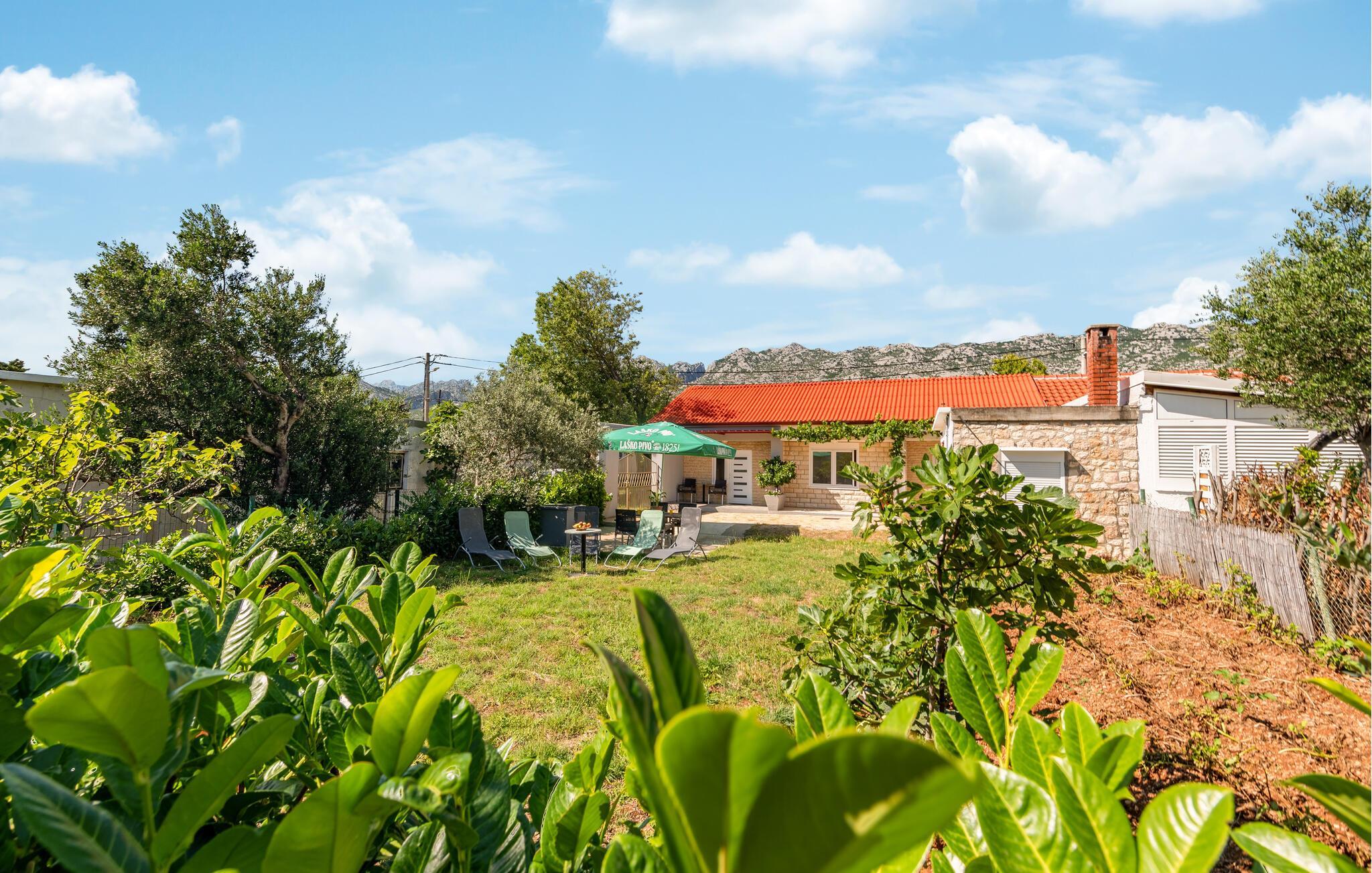 En varm og innbydende atmosfære venter deg i dette sjarmerende feriehuset i Seline. De fargerike aksentene i det smakfullt innredede interiøret skaper en munter, men koselig atmosfære der du umiddelbart vil føle deg hjemme. Det velutstyrte kjøkkenet innbyr til felles matlaging, mens verandaen og den velstelte hagen er ideelle steder å nyte middelhavssolen. Her kan du slappe av og nyte tiden sammen med familien i fulle drag.