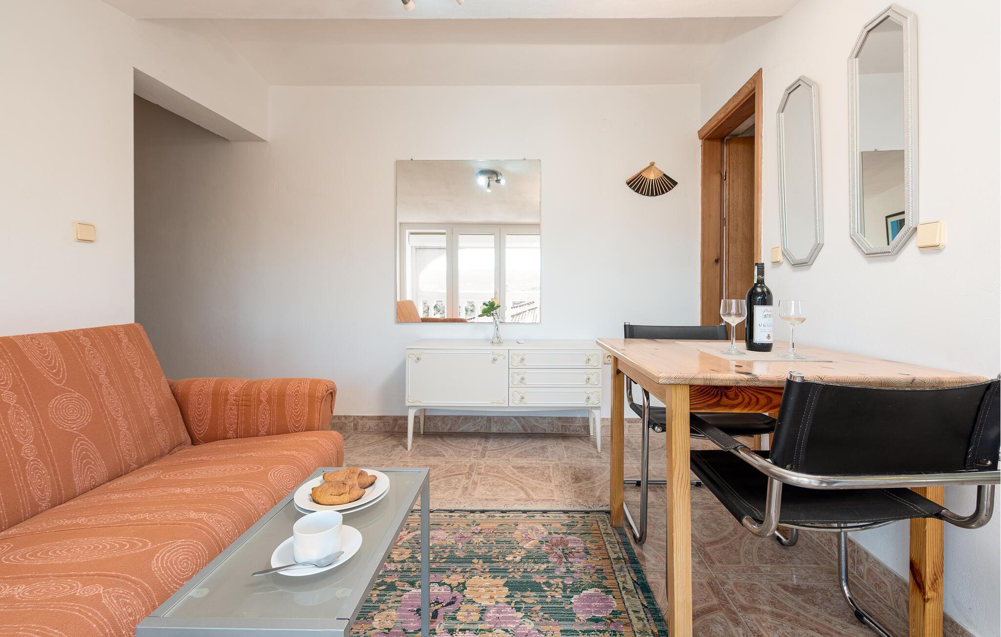 Bare en kort spasertur fra idylliske bademuligheter, inviterer denne lyse og vennlige ferieleiligheten deg til å tilbringe avslappende dager under den blå himmelen. Her kan du tilberede favorittrettene dine, planlegge aktiviteter ved det innbydende spisebordet og sette deg godt til rette i sofaen med et brettspill etter en begivenhetsrik dag.