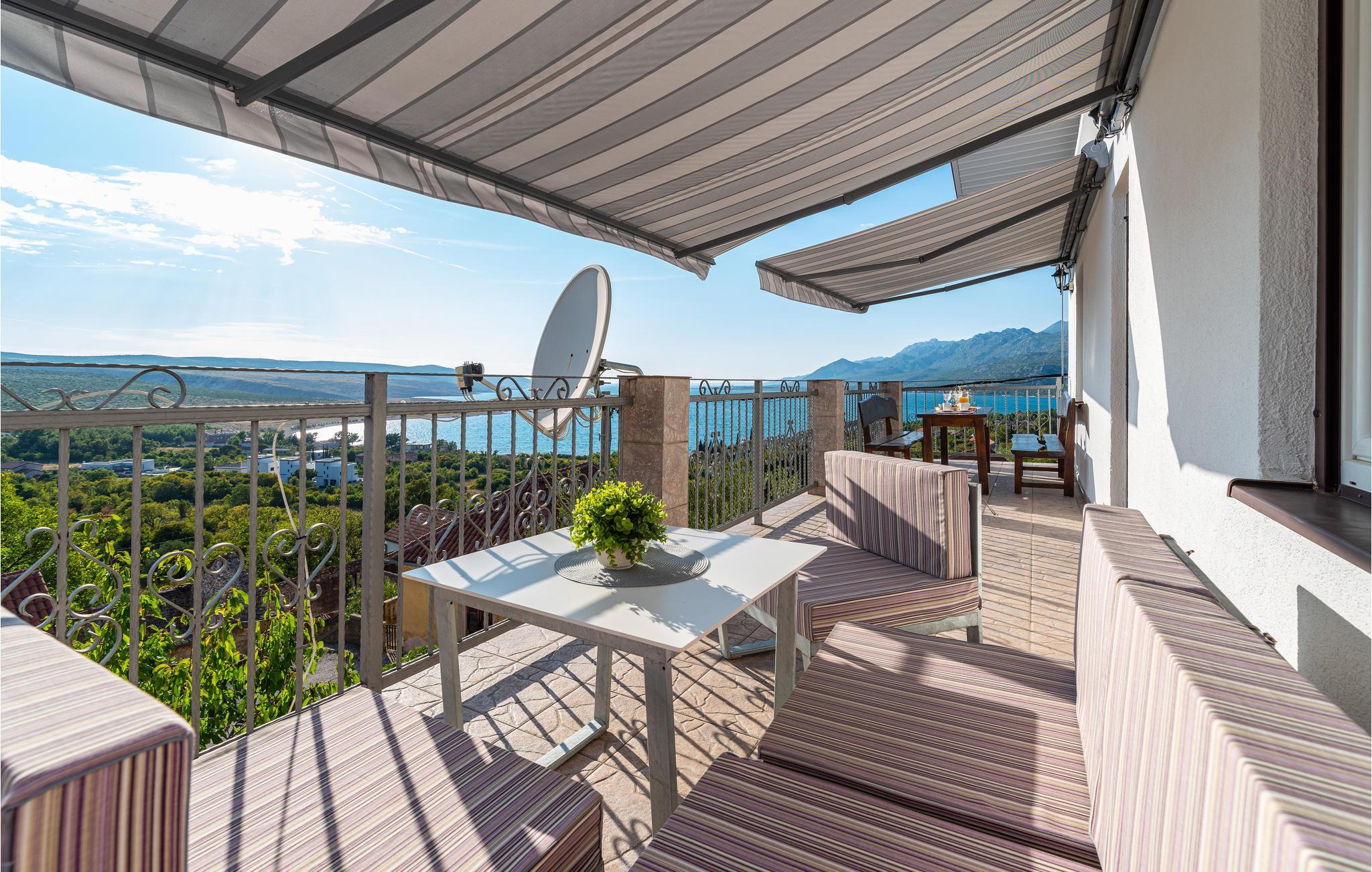 Dette feriehuset tilbyr deg et avslappende og komfortabelt opphold. Fra terrassen og balkongen har du vid utsikt over havet og fjellene. På terrassen finner du en utendørs dusj, solsenger og boblebad. Havutsikten kan nytes spesielt godt herfra. Tilbring kvelden veldig hyggelig på balkongen, hvor du kan avslutte dagen med å se på solnedgangen.