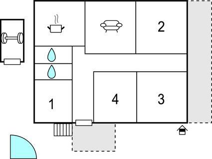 Leiligheten har også en privat inngjerdet hage med grill. Det er også et lekehus, huske, sklie og leker i hagen, og de små kan absolutt kose seg her. Dette feriehuset er spesielt egnet for 1 eller 2 familier med barn.