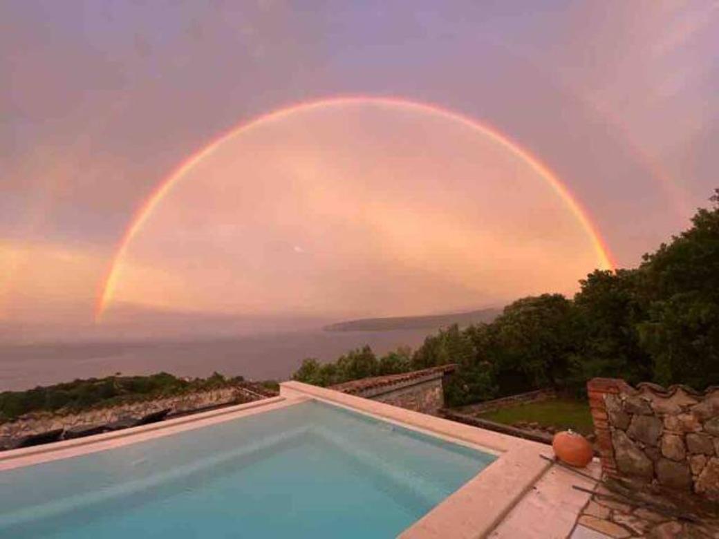 Ca. 10 Autominuten vom Strand entfernt, direkt am Fuß des Wander- & Fahrradparadieses Ucka, liegt eine der schönsten Villen der Riviera von Opatija! Komplett aus Stein erbaut verbindet sich ihr ganz besonderer, traditioneller Charme mit einer zum Meer hin offenen Architektur aus Glas und bietet einen atemberaubenden Rundumblick auf die Kvarner Bucht!