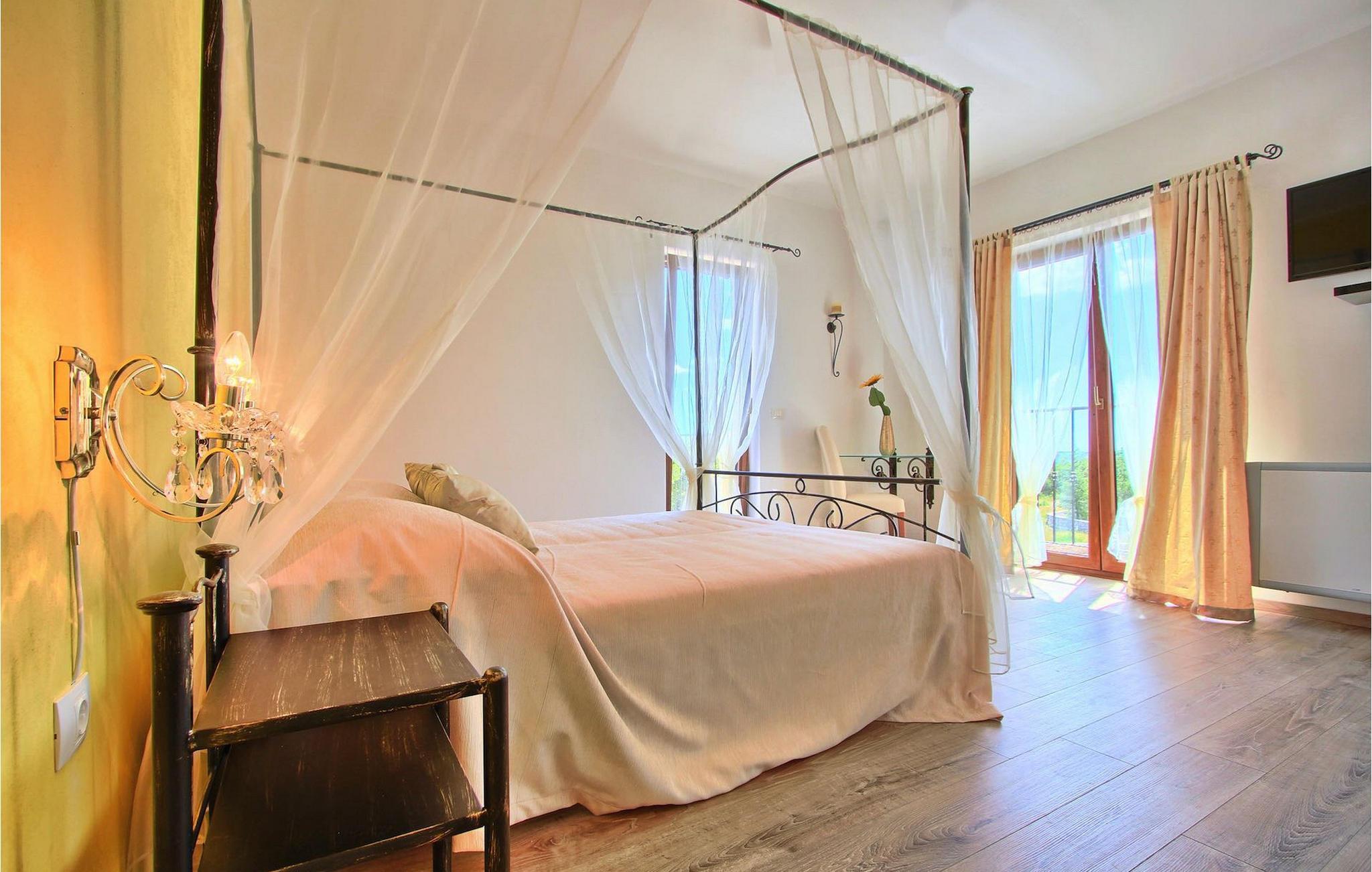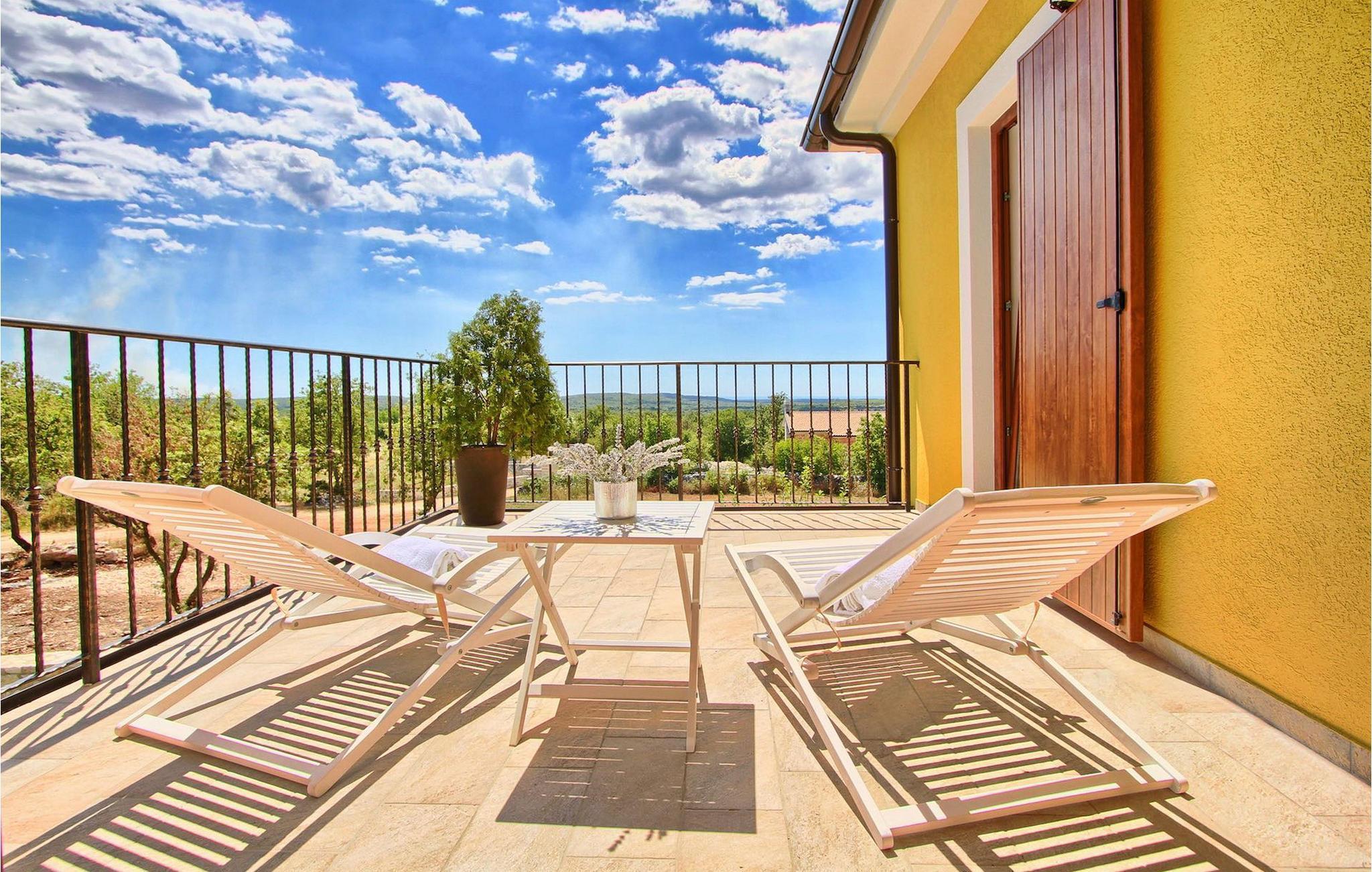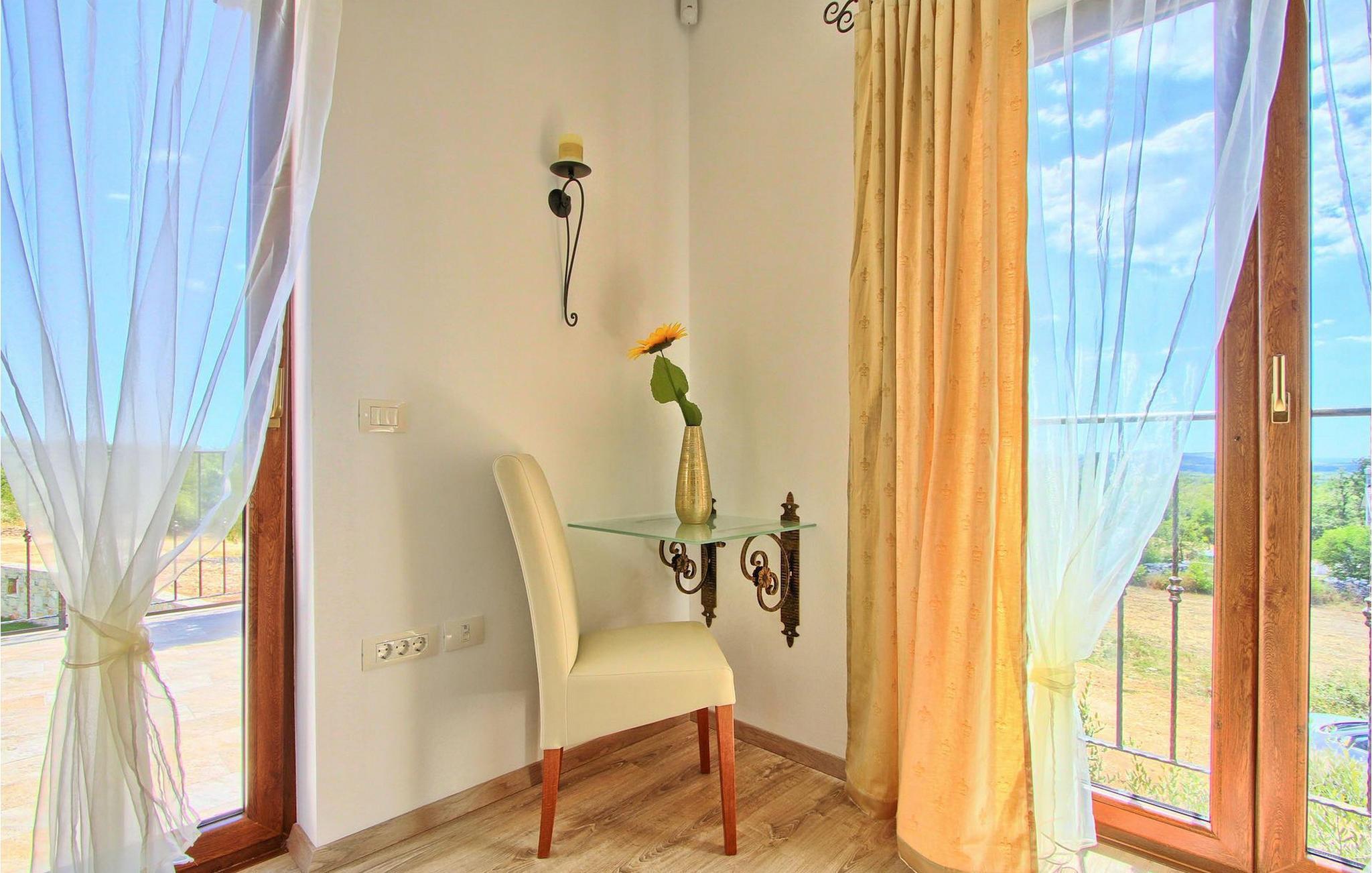 I første etasje er det fire romslige og vakkert innredede soverom hvor du kan slappe av. Hvert rom har eget bad, med veggfarger som passer perfekt til soverommet. Soverommene har også egen utgang til balkongen, som byr på en fantastisk utsikt over de istriske omgivelsene.