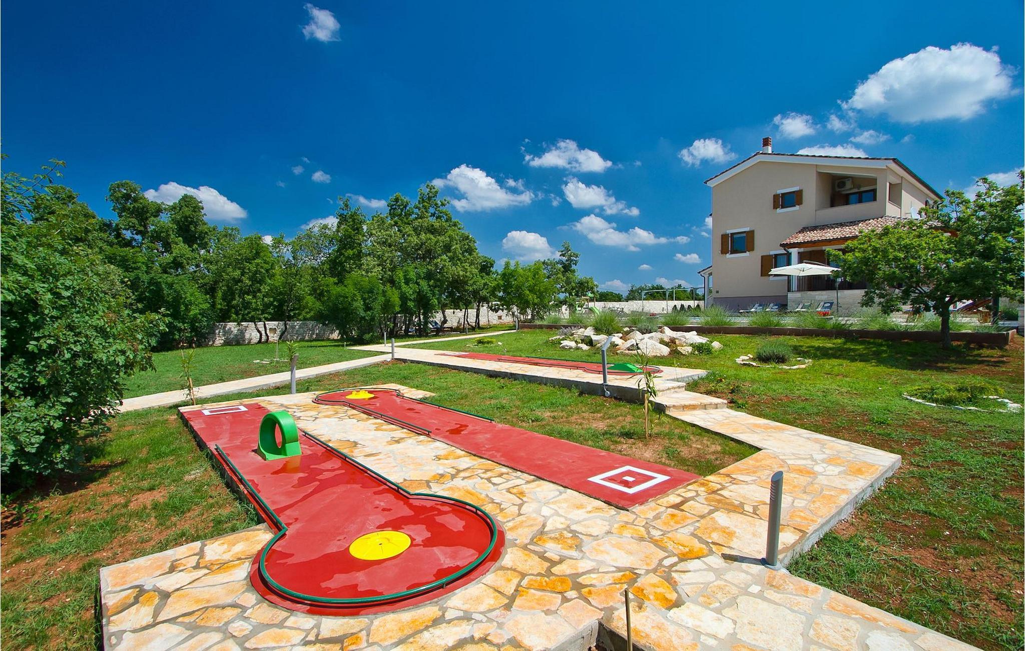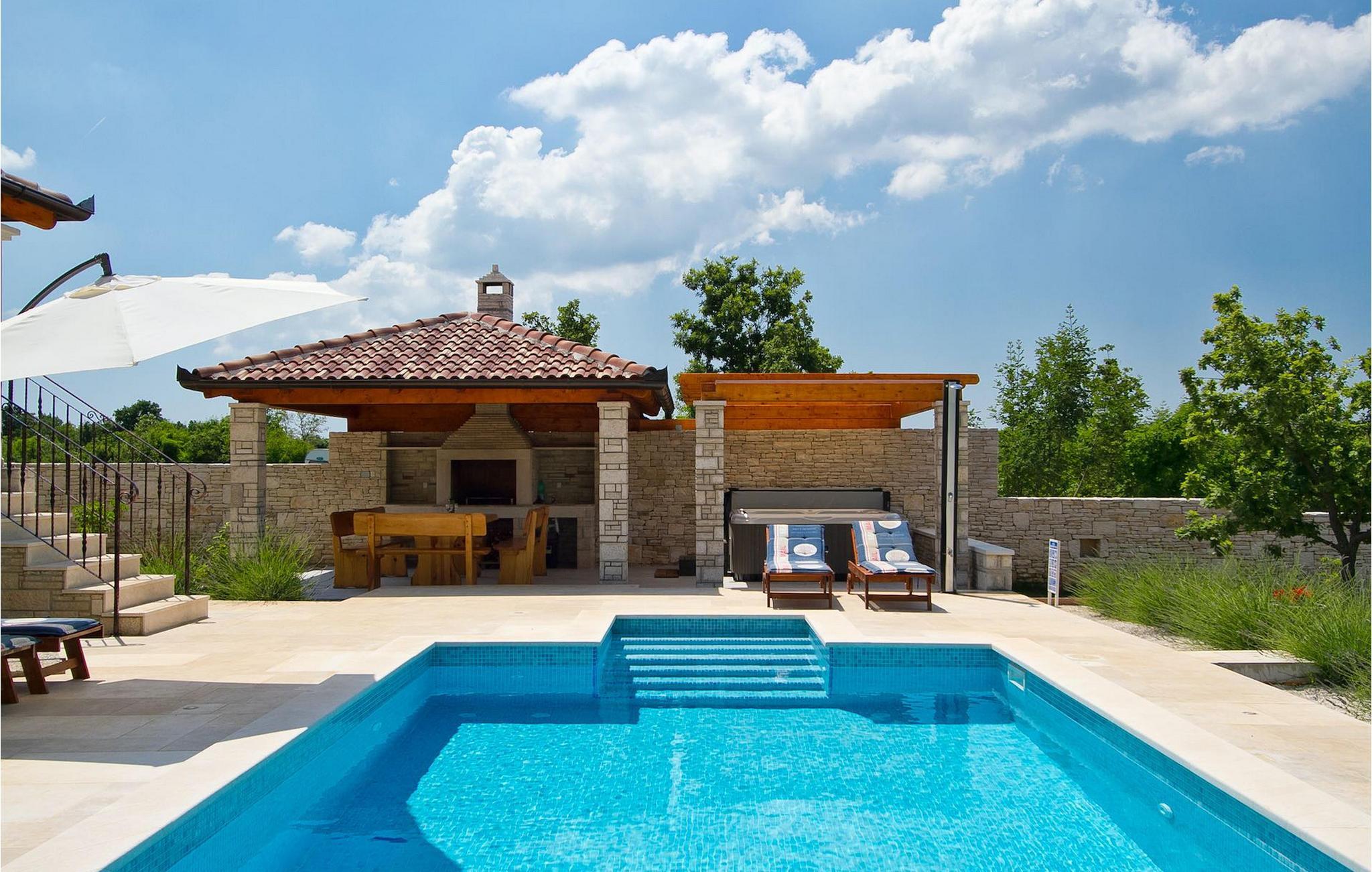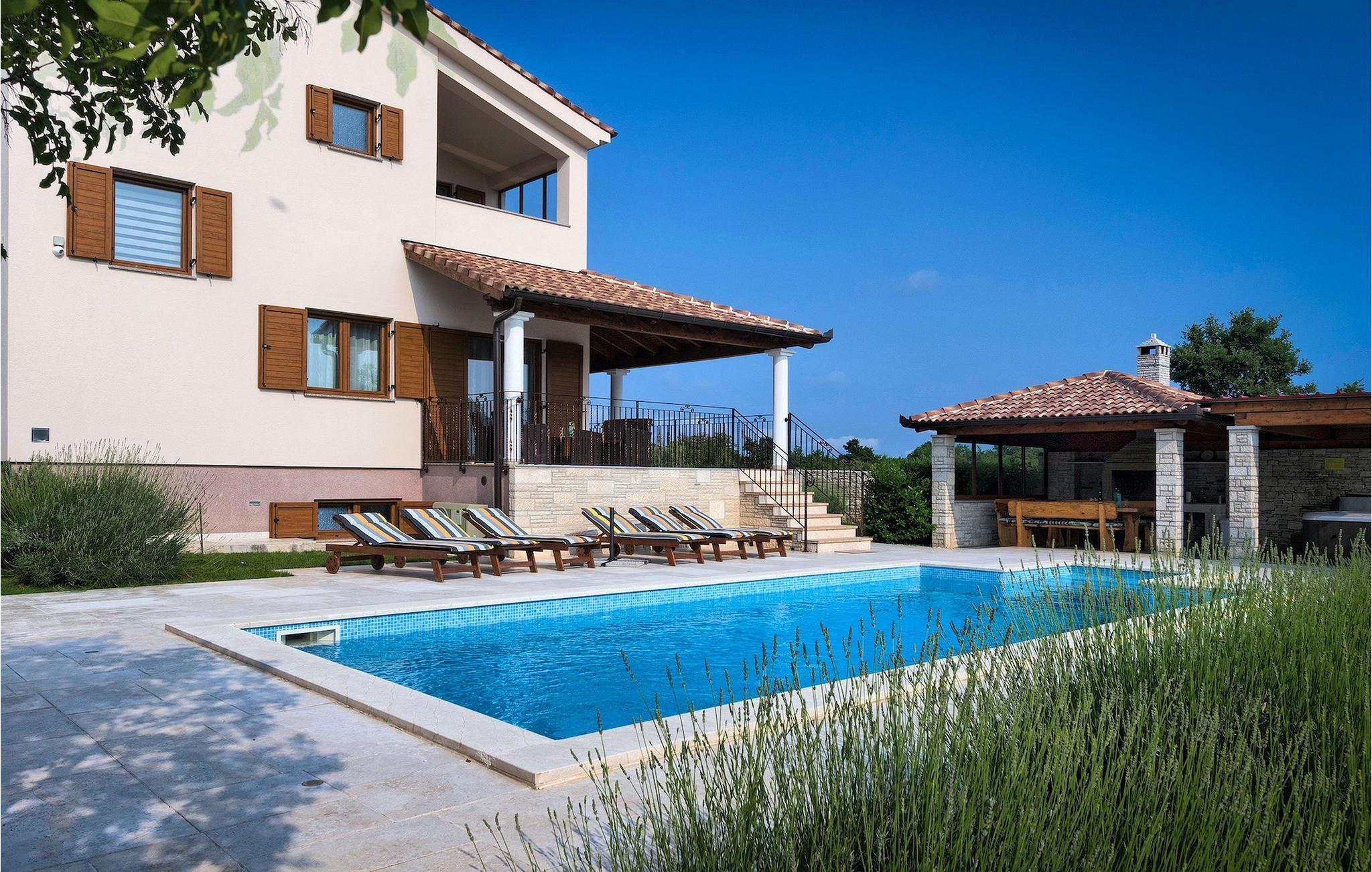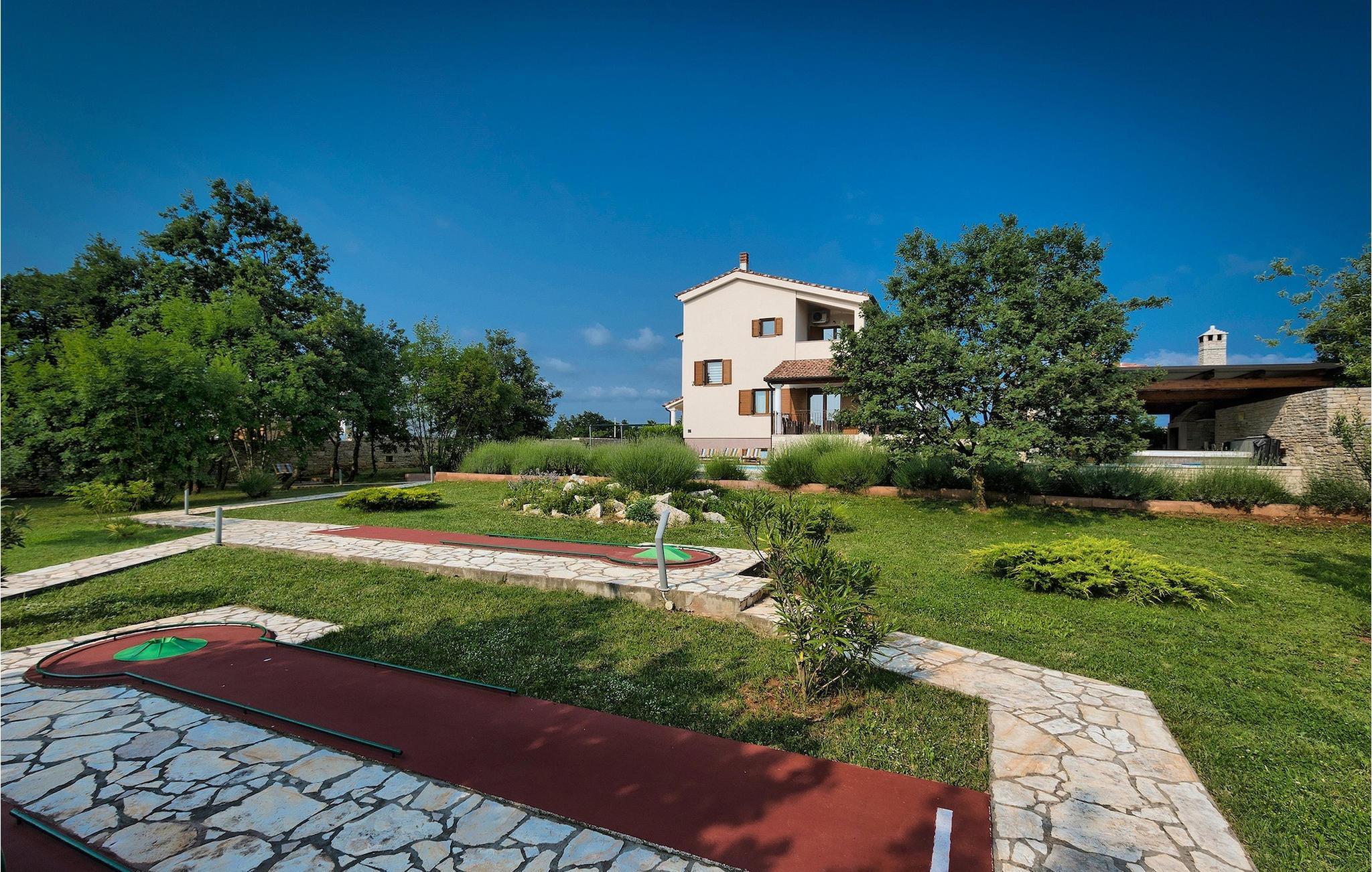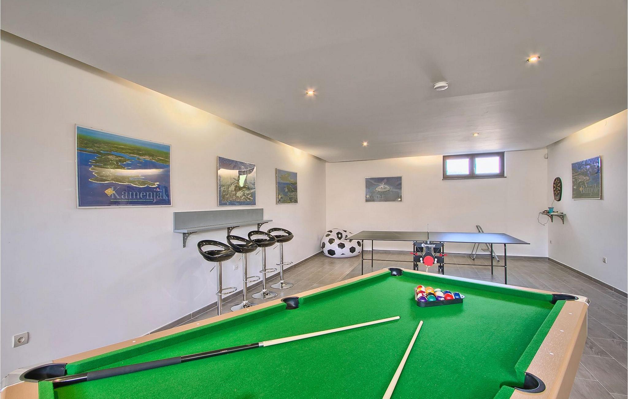 Villa Stokovci er et feriehus som er ideelt for en ferie med hele familien. Den har totalt 4 soverom, alle med eget bad og TV. To av soverommene har ekstra enkeltsenger, og det er også en sovesofa i stuen hvis du trenger mer plass. Huset er ganske romslig og godt utstyrt. I kjelleren er det et stort fritidsområde med biljardbord, treningsutstyr og bordtennisbord. Huset har en stor hage. I hagen er det et vakkert svømmebasseng med steinterrasse og utendørs boblebad, og om kvelden kan du nyte den overbygde uteserveringen og mursteinsgrillen. Barna vil elske lekeplassen. Den lille pittoreske landsbyen Stokovci ligger i nærheten av middelalderbyen Svetvincenat, den mest dominerende småbyen i det sør-sentrale Istria. Svetvincenat vil imponere deg med innbyggernes gjestfrihet og typiske istriske delikatesser, verdensberømte viner, fersk ekstra jomfruolivenolje, hjemmelaget konjakk og mye mer. Godt bevart romersk arkitektur, uberørt natur, historisk og kulturell arv er en del av den istriske kulturarven og kan nås med en 5 til 30 minutters kjøretur med fantastisk utsikt. Du kan føle antikken når du oppdager det romerske amfiteateret i den 3000 år gamle byen Pula (den største i Istria), spasere gjennom Porec (den kroatiske kystens perle og Istrias mest besøkte by) eller besøke den berømte Eufemiakirken i Rovinj (Istrias vakreste feriested, en by med kunst og gatekunstnere). Vi anbefaler absolutt et besøk til Brijuni-øyene (Kroatias mest berømte nasjonalpark med safaripark) og en 18-hulls golfbane.