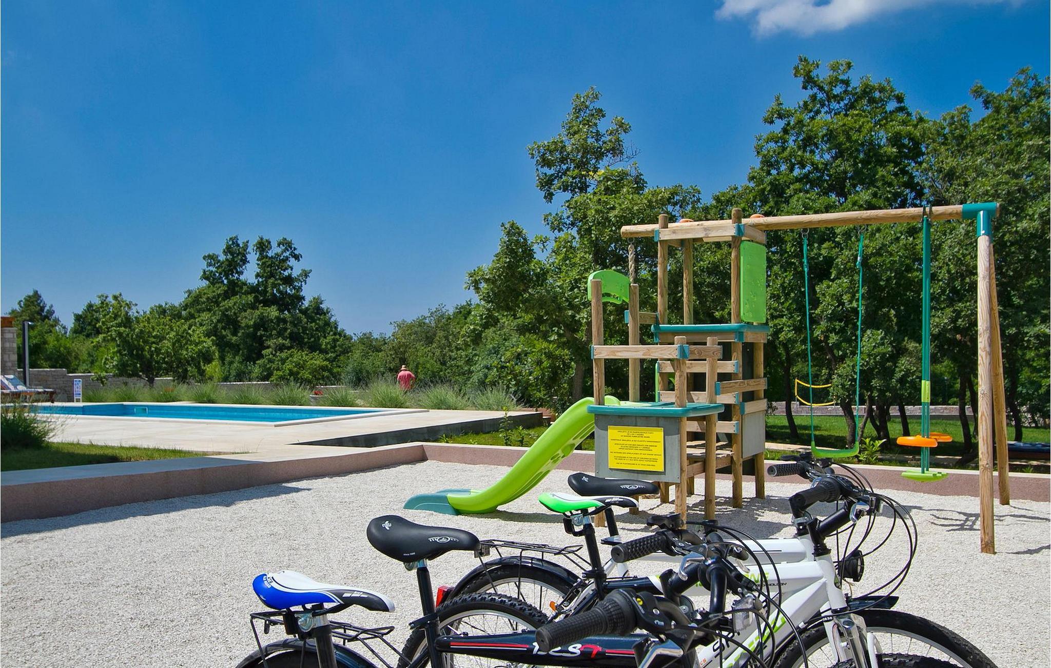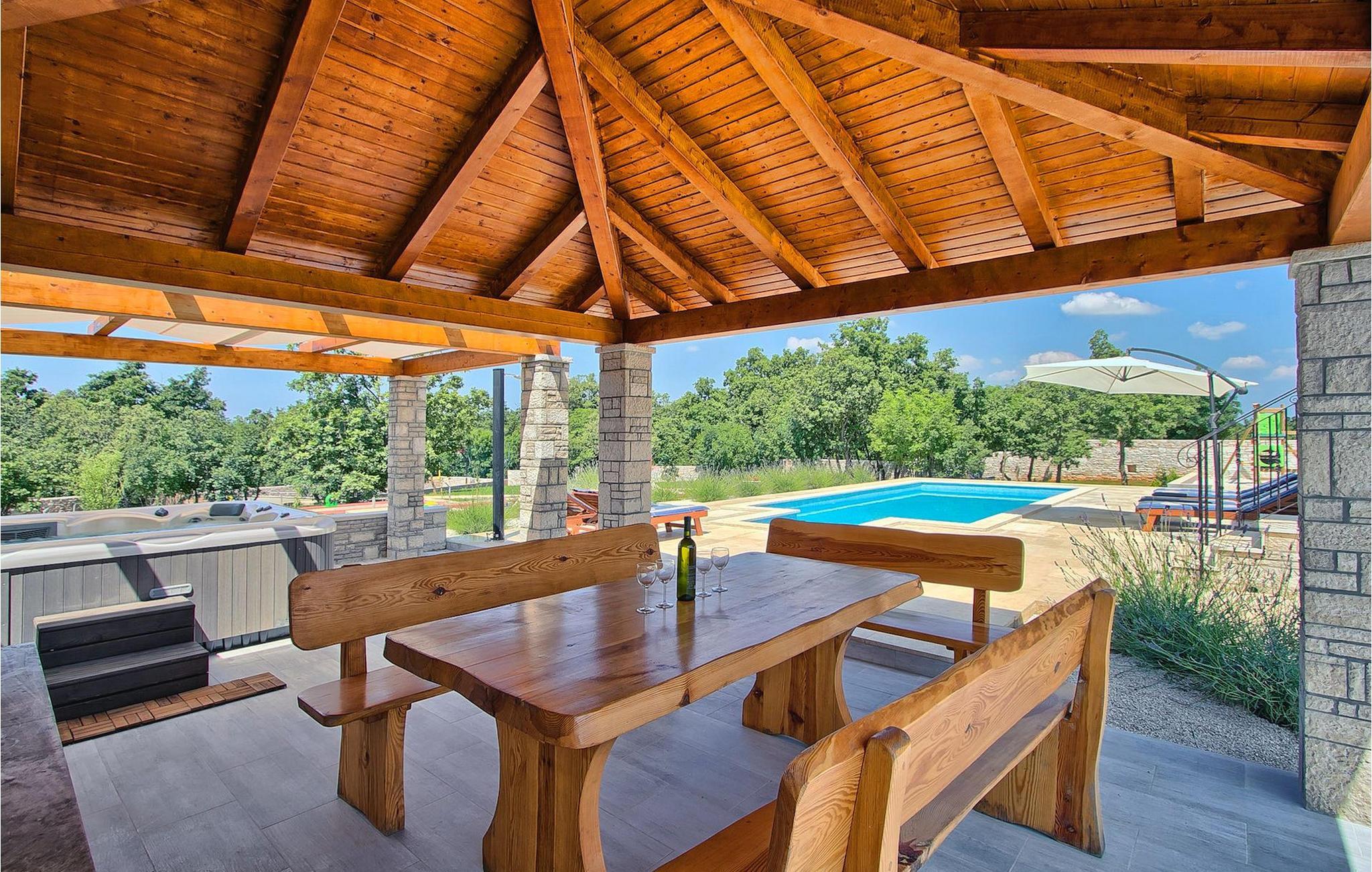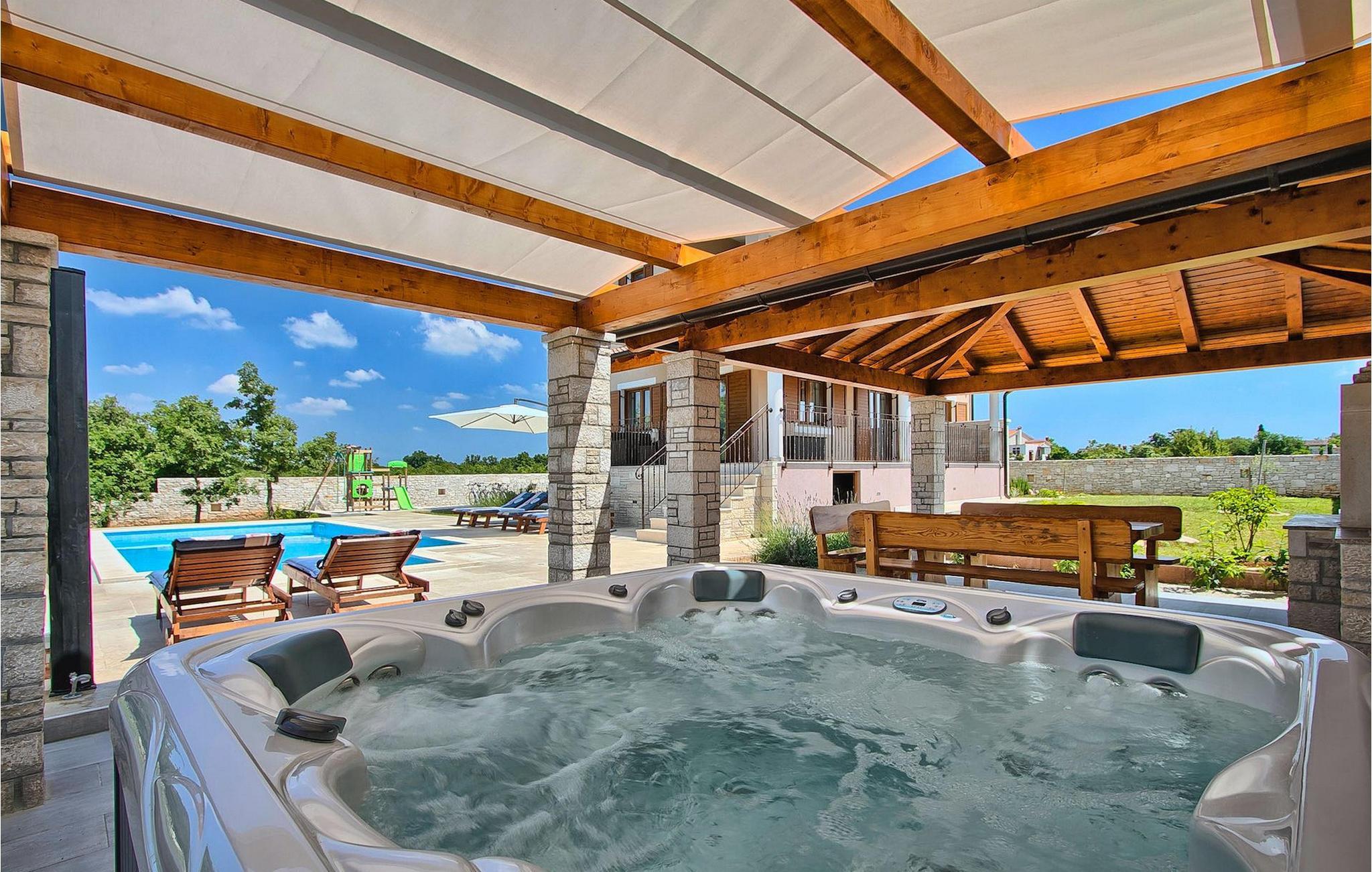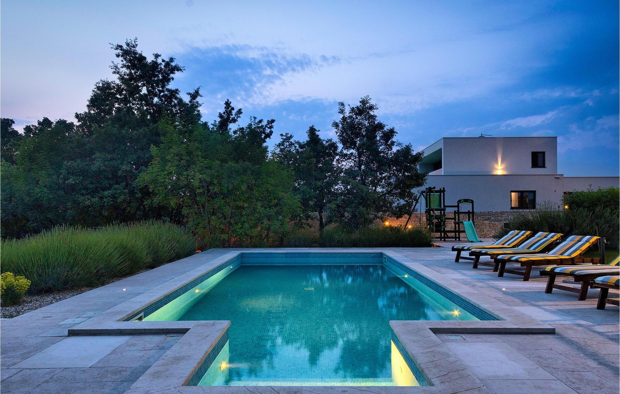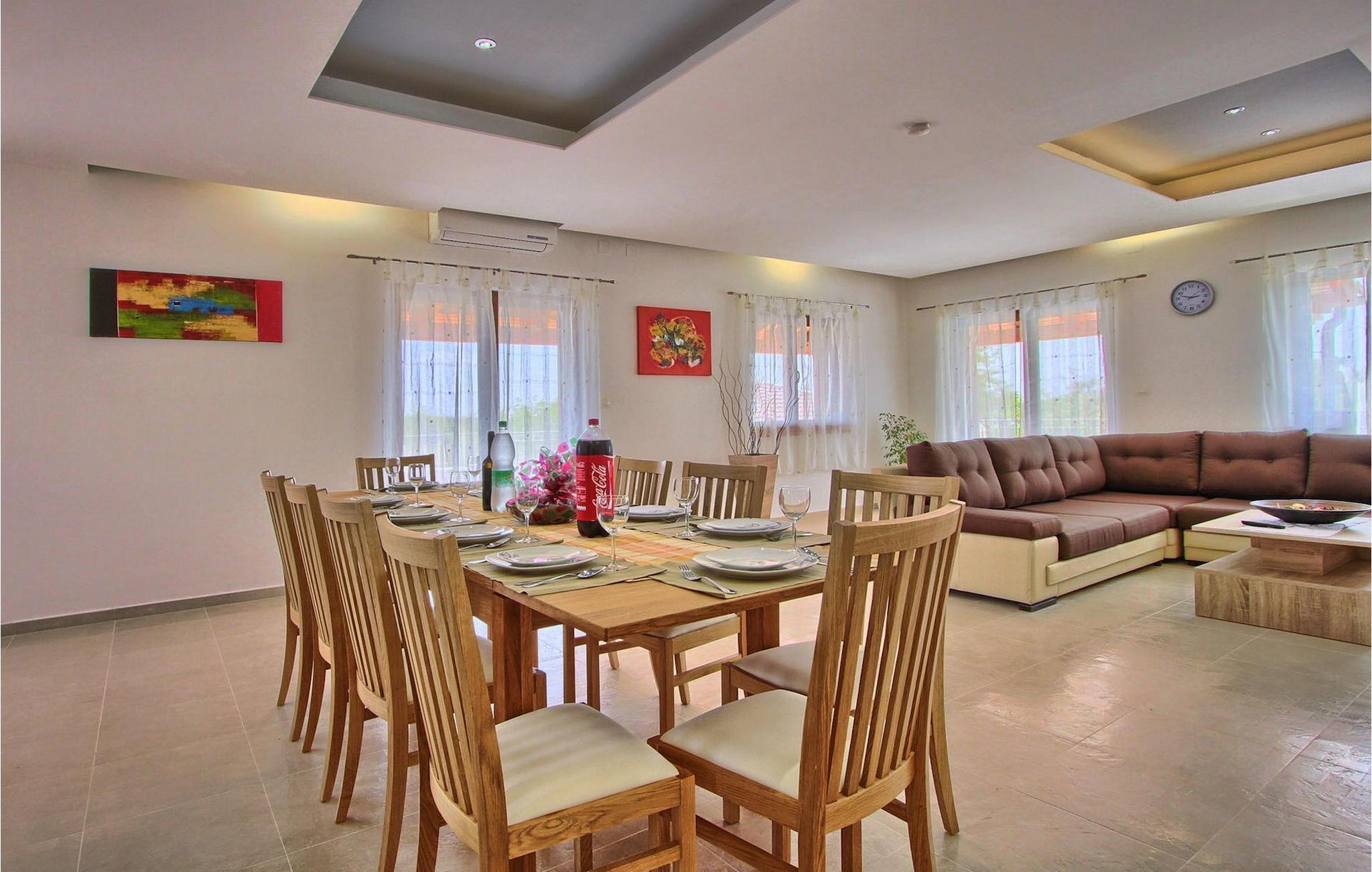 Villa Stokovci er et feriehus som er ideelt for en ferie med hele familien. Den har totalt 4 soverom, alle med eget bad og TV. To av soverommene har ekstra enkeltsenger, og det er også en sovesofa i stuen hvis du trenger mer plass. Huset er ganske romslig og godt utstyrt. I kjelleren er det et stort fritidsområde med biljardbord, treningsutstyr og bordtennisbord. Huset har en stor hage. I hagen er det et vakkert svømmebasseng med steinterrasse og utendørs boblebad, og om kvelden kan du nyte den overbygde uteserveringen og mursteinsgrillen. Barna vil elske lekeplassen. Den lille pittoreske landsbyen Stokovci ligger i nærheten av middelalderbyen Svetvincenat, den mest dominerende småbyen i det sør-sentrale Istria. Svetvincenat vil imponere deg med innbyggernes gjestfrihet og typiske istriske delikatesser, verdensberømte viner, fersk ekstra jomfruolivenolje, hjemmelaget konjakk og mye mer. Godt bevart romersk arkitektur, uberørt natur, historisk og kulturell arv er en del av den istriske kulturarven og kan nås med en 5 til 30 minutters kjøretur med fantastisk utsikt. Du kan føle antikken når du oppdager det romerske amfiteateret i den 3000 år gamle byen Pula (den største i Istria), spasere gjennom Porec (den kroatiske kystens perle og Istrias mest besøkte by) eller besøke den berømte Eufemiakirken i Rovinj (Istrias vakreste feriested, en by med kunst og gatekunstnere). Vi anbefaler absolutt et besøk til Brijuni-øyene (Kroatias mest berømte nasjonalpark med safaripark) og en 18-hulls golfbane.