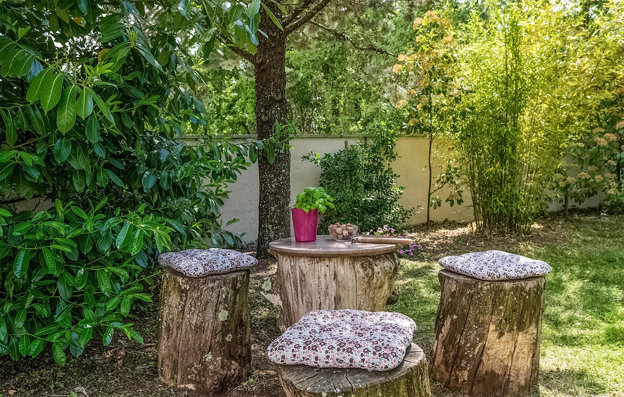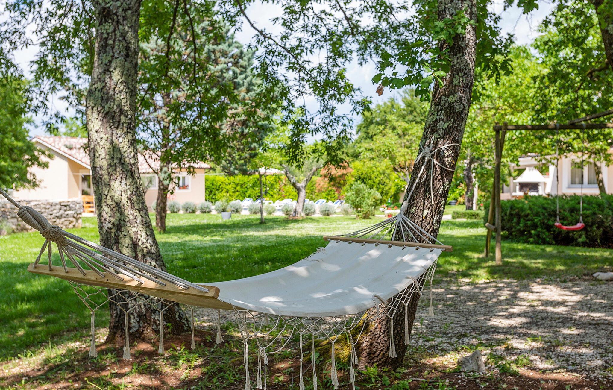 Mellom de to husene er det et privat svømmebasseng hvor du kan slappe av. Eiendommen har en stor hage med skyggefulle trær hvor du kan nyte ferien og naturen som omgir deg. I tillegg til å slappe av ved bassenget, kan du også ha det gøy med å spille badminton på den store plenen, og våre yngre gjester vil elske husken.