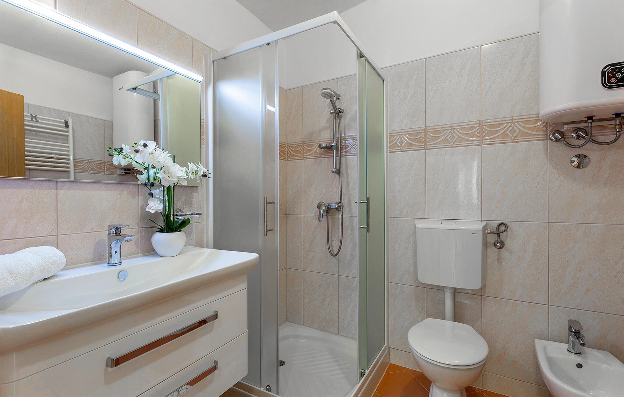 Baderom (nr. 2) - WC: Varmt og kaldt vann. Dusj