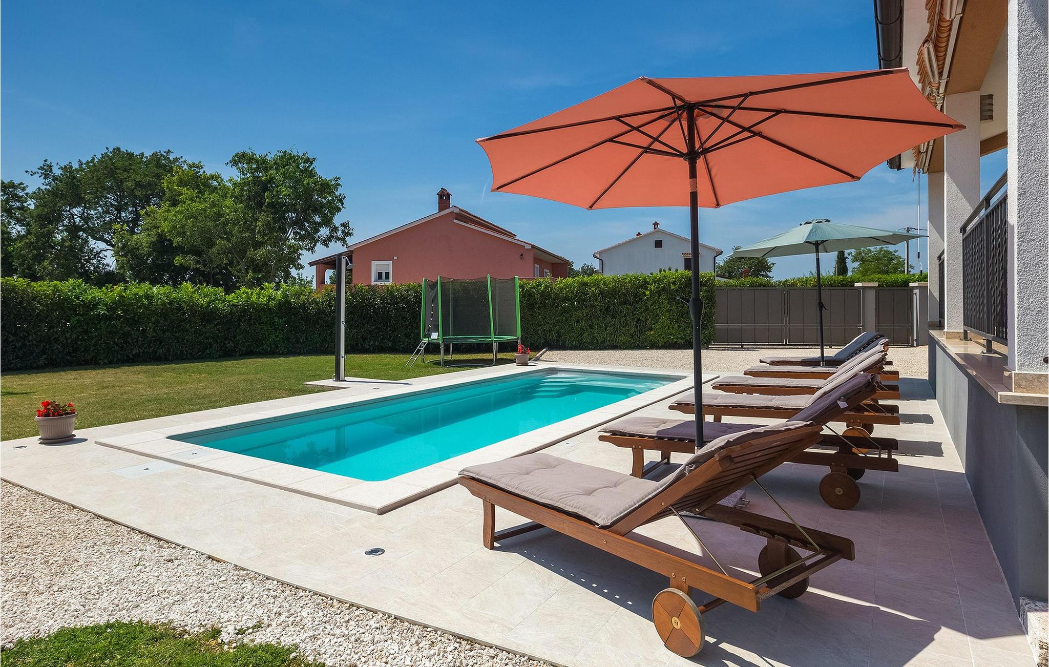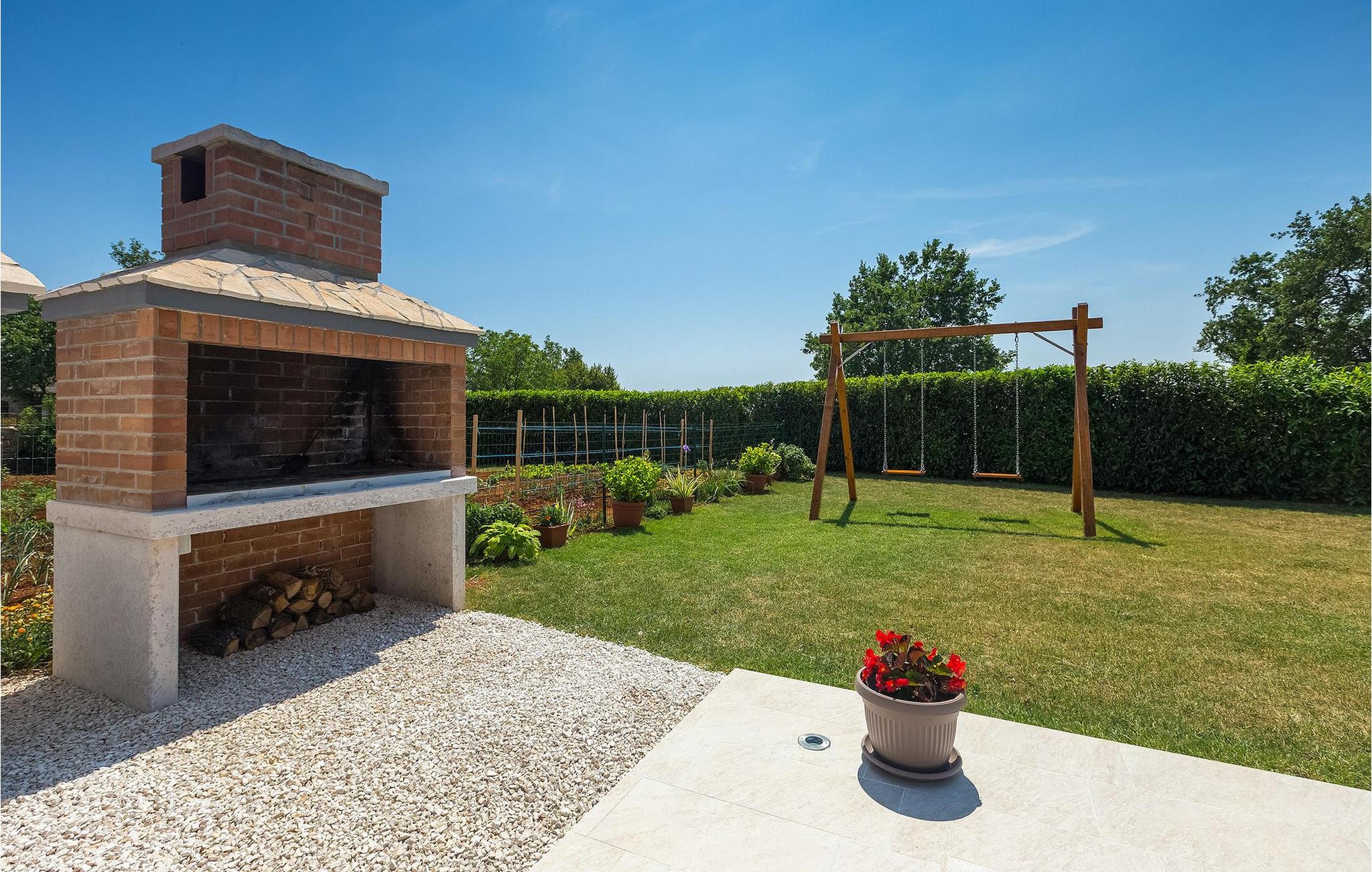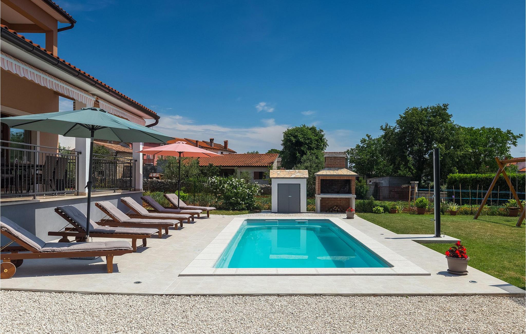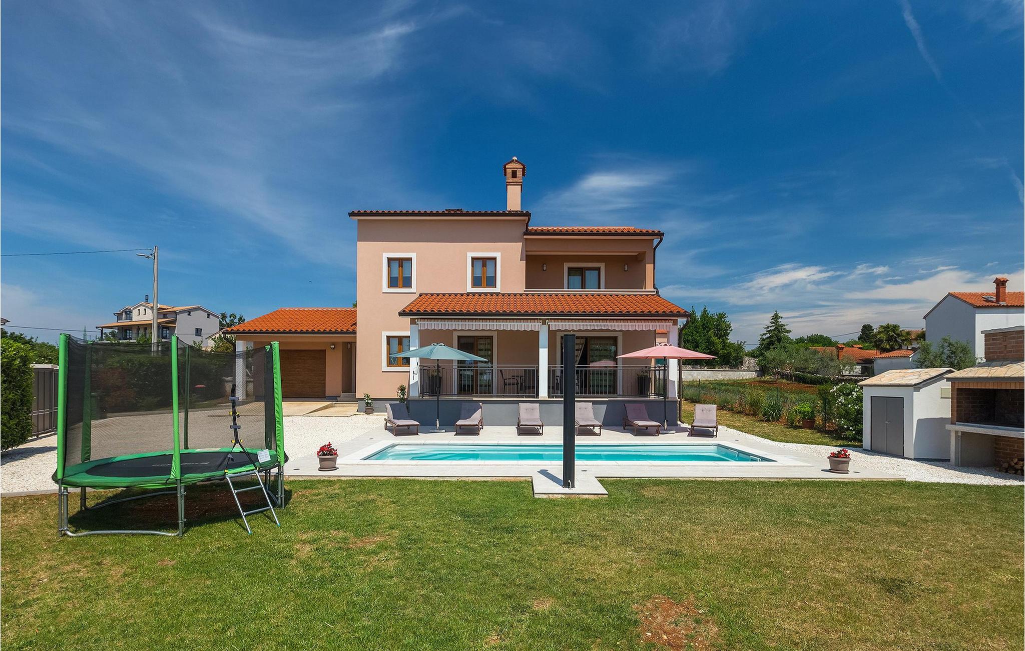 Denne vakre eiendommen ligger i hjertet av Istria. Villaens beliggenhet er ideell for en avslappende ferie, men også et utmerket utgangspunkt for en rekke dagsturer rundt halvøya. Villaen består av 3 soverom og tilbyr komfortabel innkvartering for 6 personer. Villaen ligger på en 900 m2 stor tomt hvor du har et utrolig innbydende privat basseng til disposisjon, samt en utendørsterrasse med spisebord for 6 personer og en kullgrill for de som ønsker å tilberede måltidene utendørs. Villaen er svært romslig innredet og utstyrt for at du skal føle deg hjemme så snart du ankommer. Første etasje består av en stue med en koselig sofa og TV, et fullt utstyrt kjøkken med spiseplass og utgang til utendørsterrassen. Ett bad ligger i første etasje og ett i andre etasje, sammen med de tre soverommene. Ett soverom har to separate enkeltsenger og to soverom har hver sin dobbeltseng. Ett av dem har utgang til den fantastiske loggiaen. Villaen er omgitt av en grønn eng som sammen med bassenget, husken og trampolinen gjør den til et utmerket valg for en flott familieferie.villaen ligger i hjertet av det landlige Istria, halvveis mellom Pazin og Pula, og er omgitt av et vakkert landskap med olivenlunder og idylliske vingårder. Sentrale Istria er kjent for sine vakre, pittoreske middelalderbyer. Du finner gode restauranter, kafeer, vingårder og butikker i Svetvincenat, en sjarmerende, rolig landsby i nærheten av villaen, som ikke bare er kjent for sin rike historiske og kulturelle arv, men også for sitt utmerkede autentiske istriske kjøkken. I denne regionen er det mange tur- og sykkelruter som gir deg en ekte istrisk opplevelse. De berømte, livlige byene langs den vakre kysten ligger bare en kort kjøretur unna i de pittoreske omgivelsene.