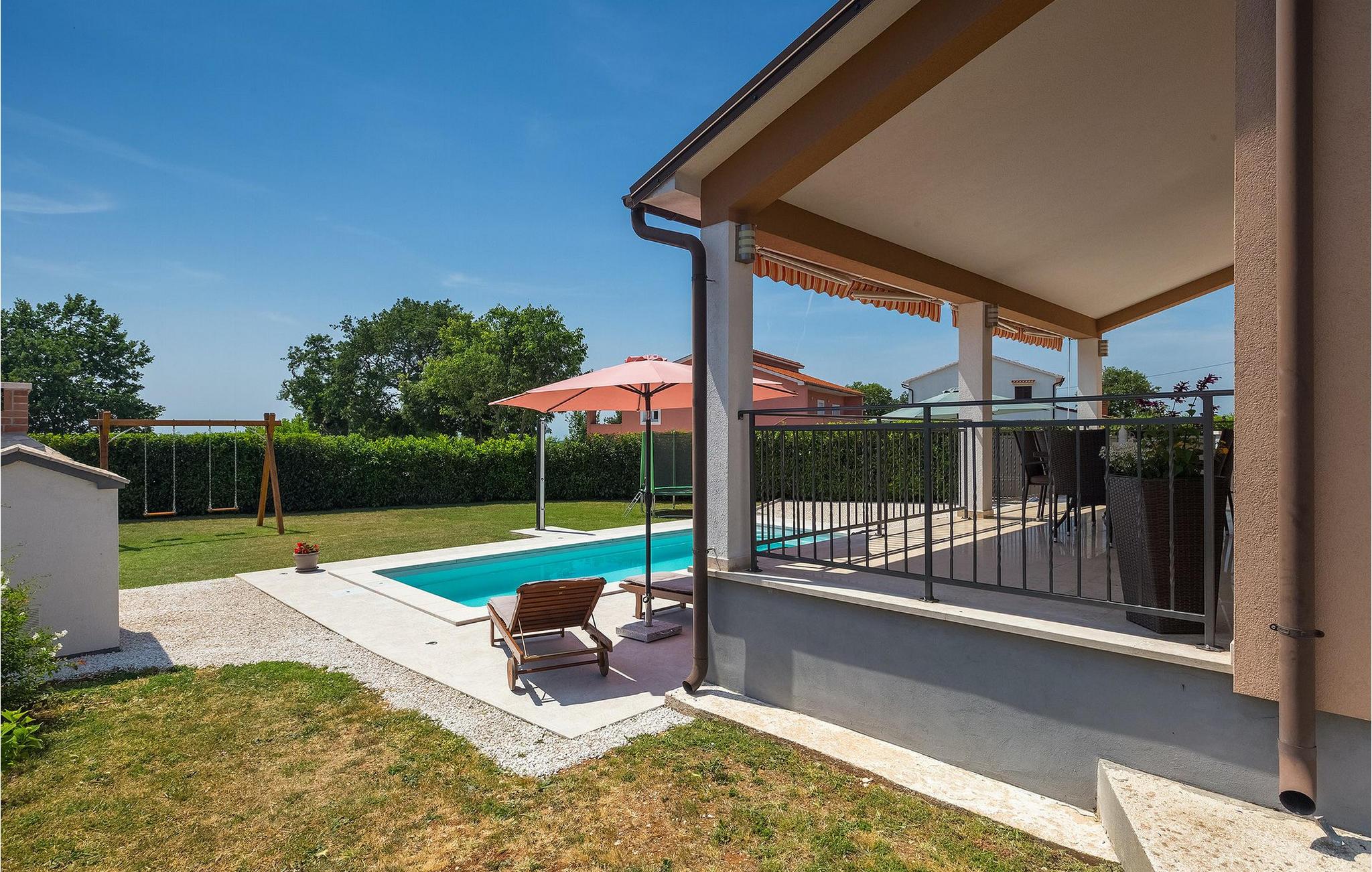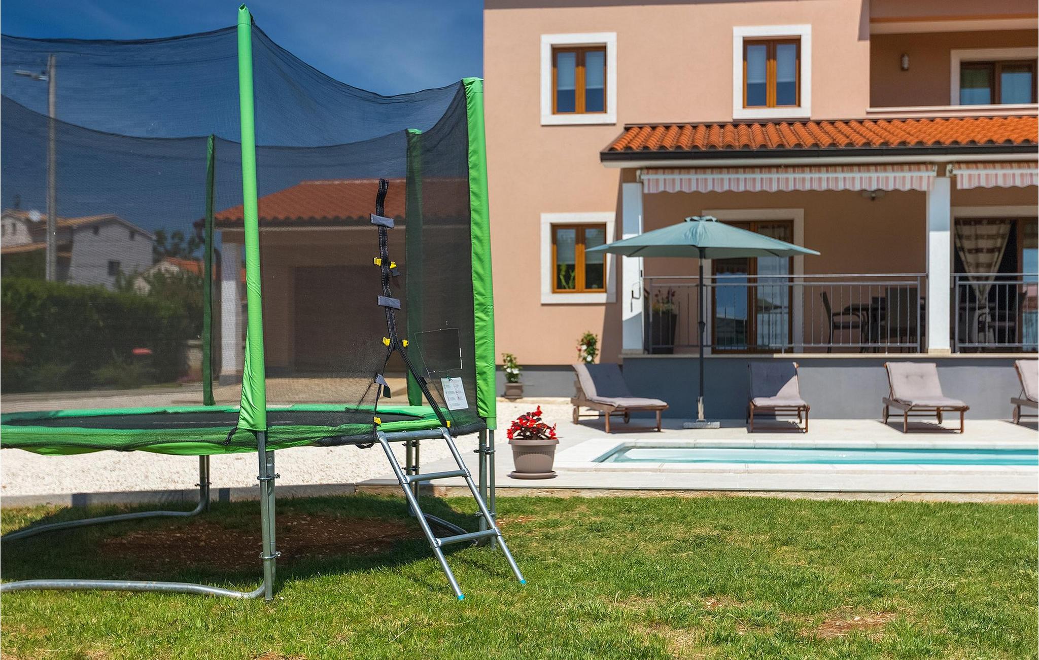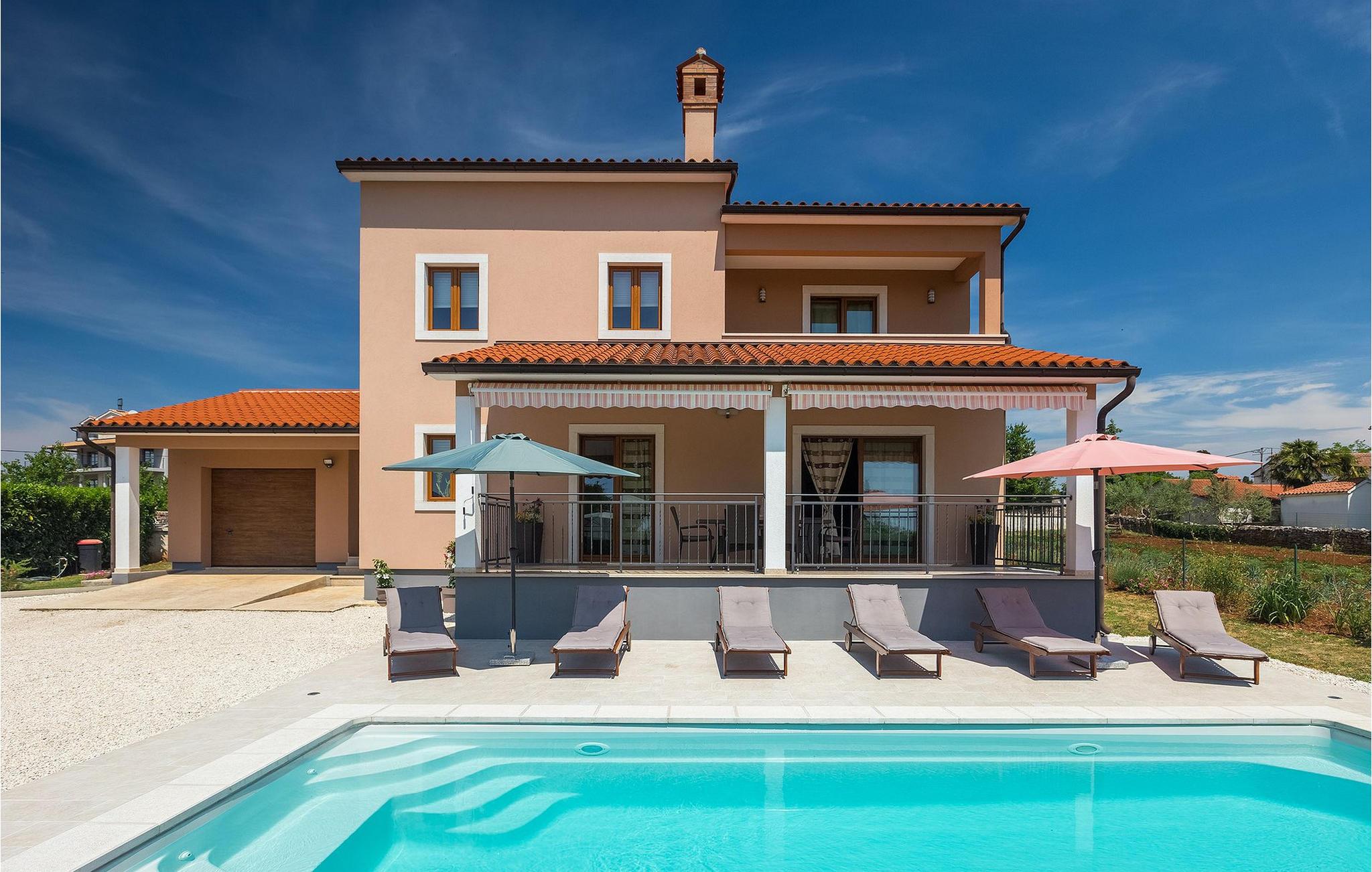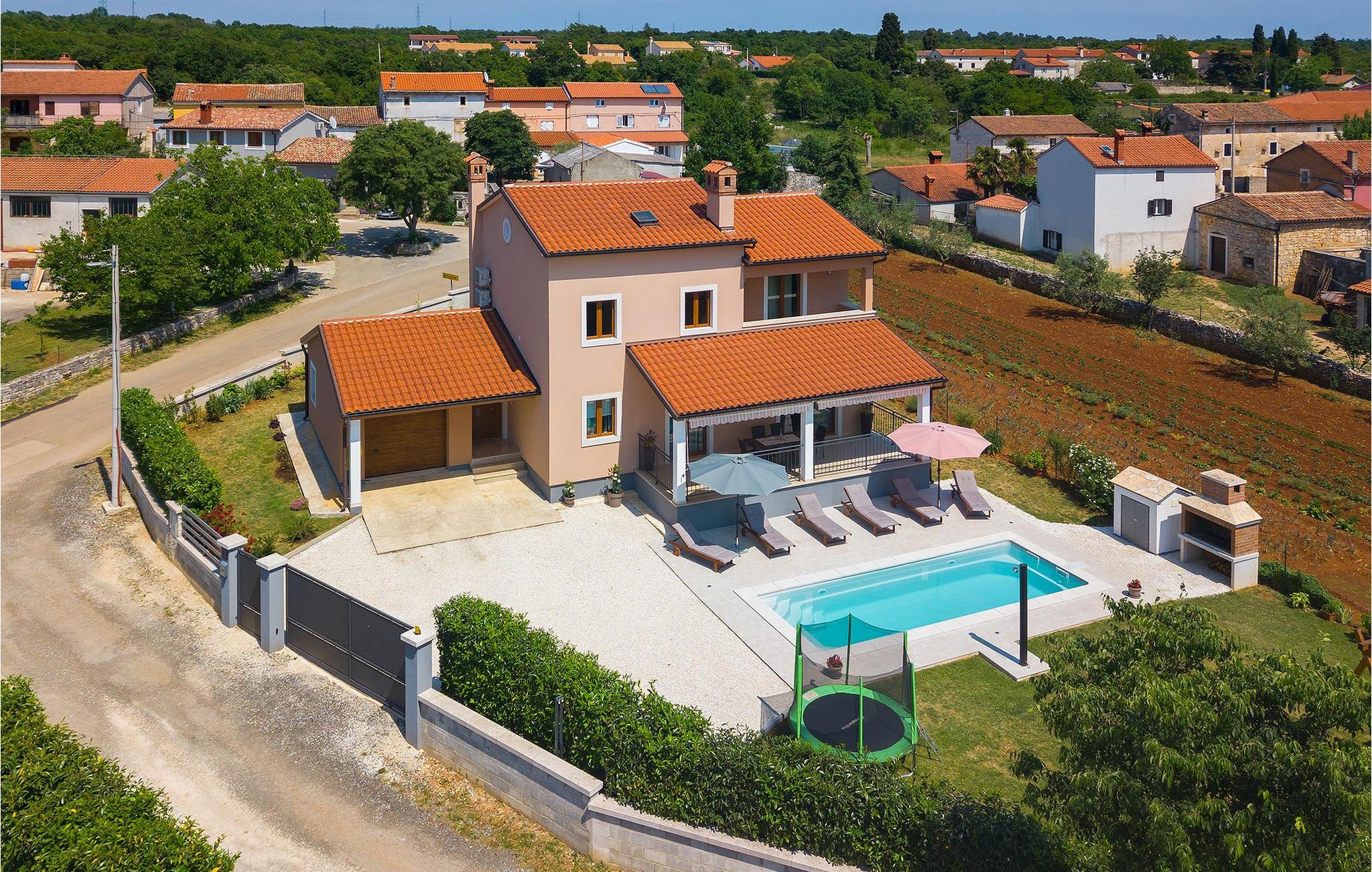 Denne vakre eiendommen ligger i hjertet av Istria. Villaens beliggenhet er ideell for en avslappende ferie, men også et utmerket utgangspunkt for en rekke dagsturer rundt halvøya. Villaen består av 3 soverom og tilbyr komfortabel innkvartering for 6 personer. Villaen ligger på en 900 m2 stor tomt hvor du har et utrolig innbydende privat basseng til disposisjon, samt en utendørsterrasse med spisebord for 6 personer og en kullgrill for de som ønsker å tilberede måltidene utendørs. Villaen er svært romslig innredet og utstyrt for at du skal føle deg hjemme så snart du ankommer. Første etasje består av en stue med en koselig sofa og TV, et fullt utstyrt kjøkken med spiseplass og utgang til utendørsterrassen. Ett bad ligger i første etasje og ett i andre etasje, sammen med de tre soverommene. Ett soverom har to separate enkeltsenger og to soverom har hver sin dobbeltseng. Ett av dem har utgang til den fantastiske loggiaen. Villaen er omgitt av en grønn eng som sammen med bassenget, husken og trampolinen gjør den til et utmerket valg for en flott familieferie.villaen ligger i hjertet av det landlige Istria, halvveis mellom Pazin og Pula, og er omgitt av et vakkert landskap med olivenlunder og idylliske vingårder. Sentrale Istria er kjent for sine vakre, pittoreske middelalderbyer. Du finner gode restauranter, kafeer, vingårder og butikker i Svetvincenat, en sjarmerende, rolig landsby i nærheten av villaen, som ikke bare er kjent for sin rike historiske og kulturelle arv, men også for sitt utmerkede autentiske istriske kjøkken. I denne regionen er det mange tur- og sykkelruter som gir deg en ekte istrisk opplevelse. De berømte, livlige byene langs den vakre kysten ligger bare en kort kjøretur unna i de pittoreske omgivelsene.