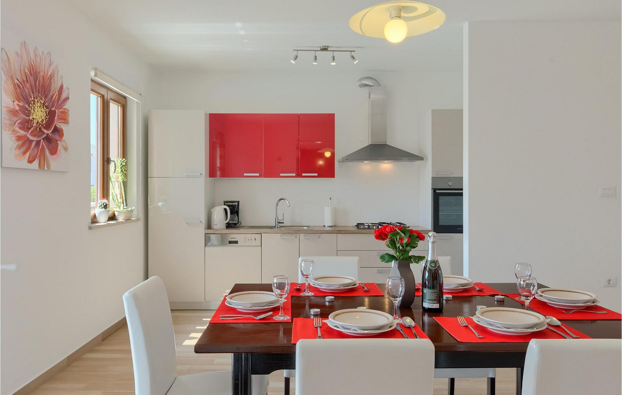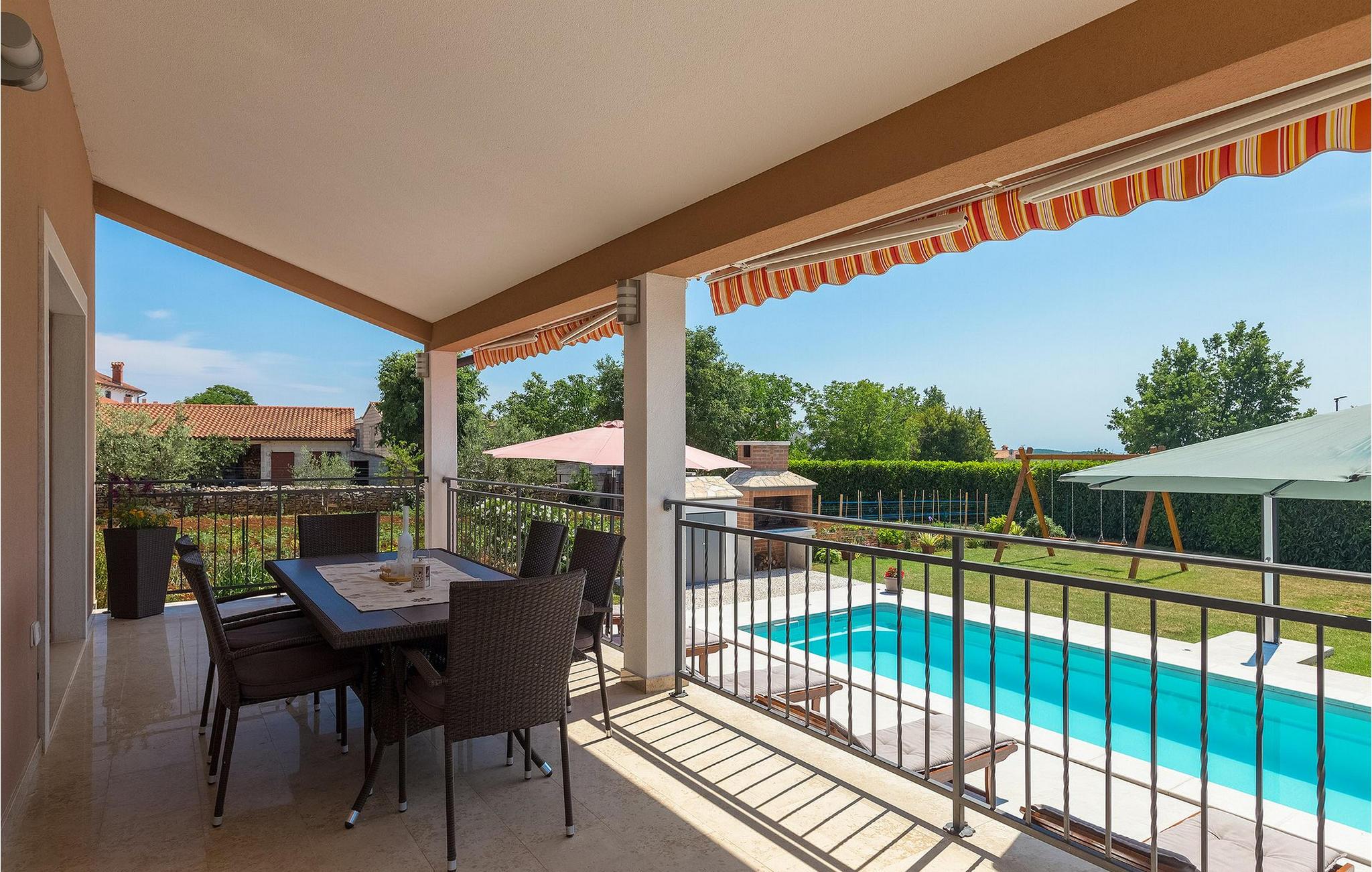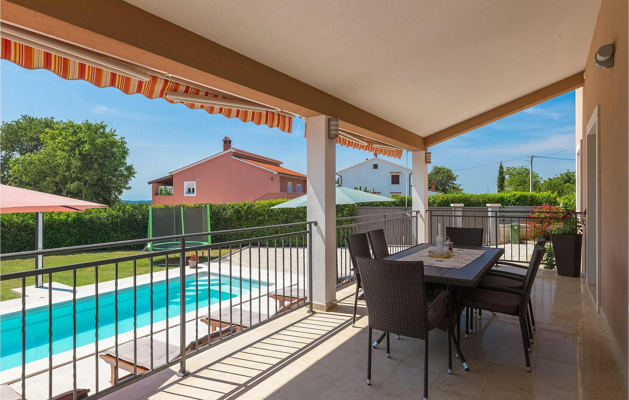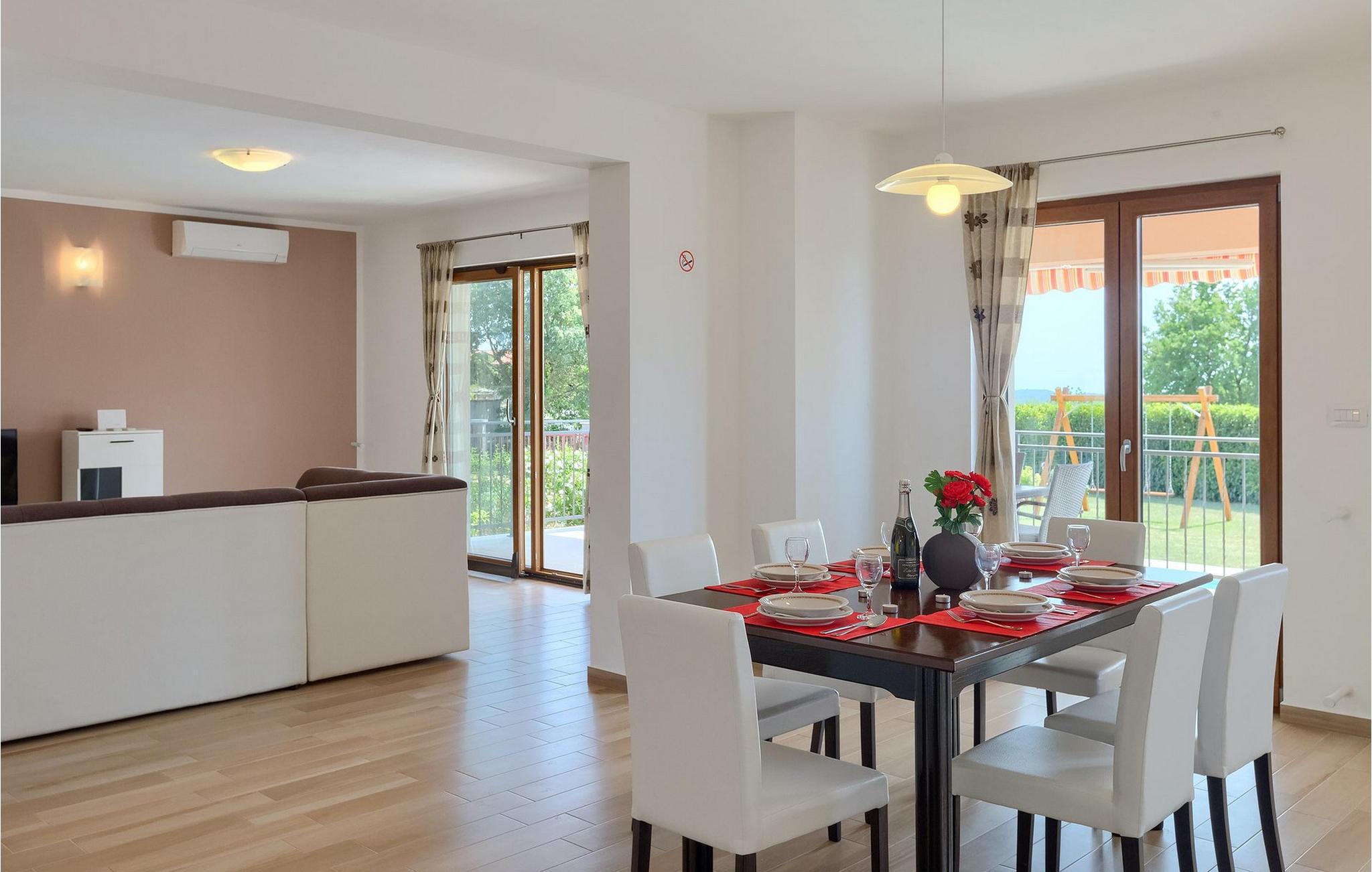 Denne vakre eiendommen ligger i hjertet av Istria. Villaens beliggenhet er ideell for en avslappende ferie, men også et utmerket utgangspunkt for en rekke dagsturer rundt halvøya. Villaen består av 3 soverom og tilbyr komfortabel innkvartering for 6 personer. Villaen ligger på en 900 m2 stor tomt hvor du har et utrolig innbydende privat basseng til disposisjon, samt en utendørsterrasse med spisebord for 6 personer og en kullgrill for de som ønsker å tilberede måltidene utendørs. Villaen er svært romslig innredet og utstyrt for at du skal føle deg hjemme så snart du ankommer. Første etasje består av en stue med en koselig sofa og TV, et fullt utstyrt kjøkken med spiseplass og utgang til utendørsterrassen. Ett bad ligger i første etasje og ett i andre etasje, sammen med de tre soverommene. Ett soverom har to separate enkeltsenger og to soverom har hver sin dobbeltseng. Ett av dem har utgang til den fantastiske loggiaen. Villaen er omgitt av en grønn eng som sammen med bassenget, husken og trampolinen gjør den til et utmerket valg for en flott familieferie.villaen ligger i hjertet av det landlige Istria, halvveis mellom Pazin og Pula, og er omgitt av et vakkert landskap med olivenlunder og idylliske vingårder. Sentrale Istria er kjent for sine vakre, pittoreske middelalderbyer. Du finner gode restauranter, kafeer, vingårder og butikker i Svetvincenat, en sjarmerende, rolig landsby i nærheten av villaen, som ikke bare er kjent for sin rike historiske og kulturelle arv, men også for sitt utmerkede autentiske istriske kjøkken. I denne regionen er det mange tur- og sykkelruter som gir deg en ekte istrisk opplevelse. De berømte, livlige byene langs den vakre kysten ligger bare en kort kjøretur unna i de pittoreske omgivelsene.