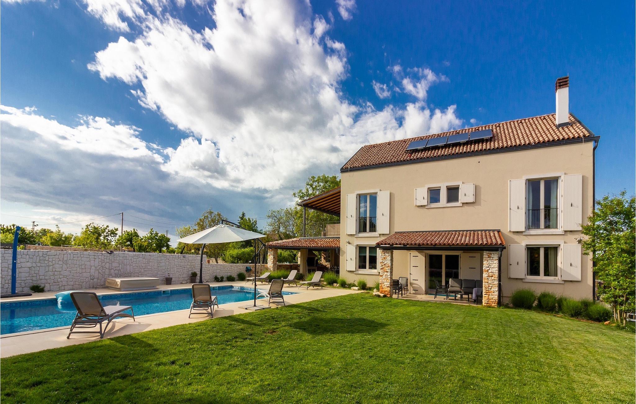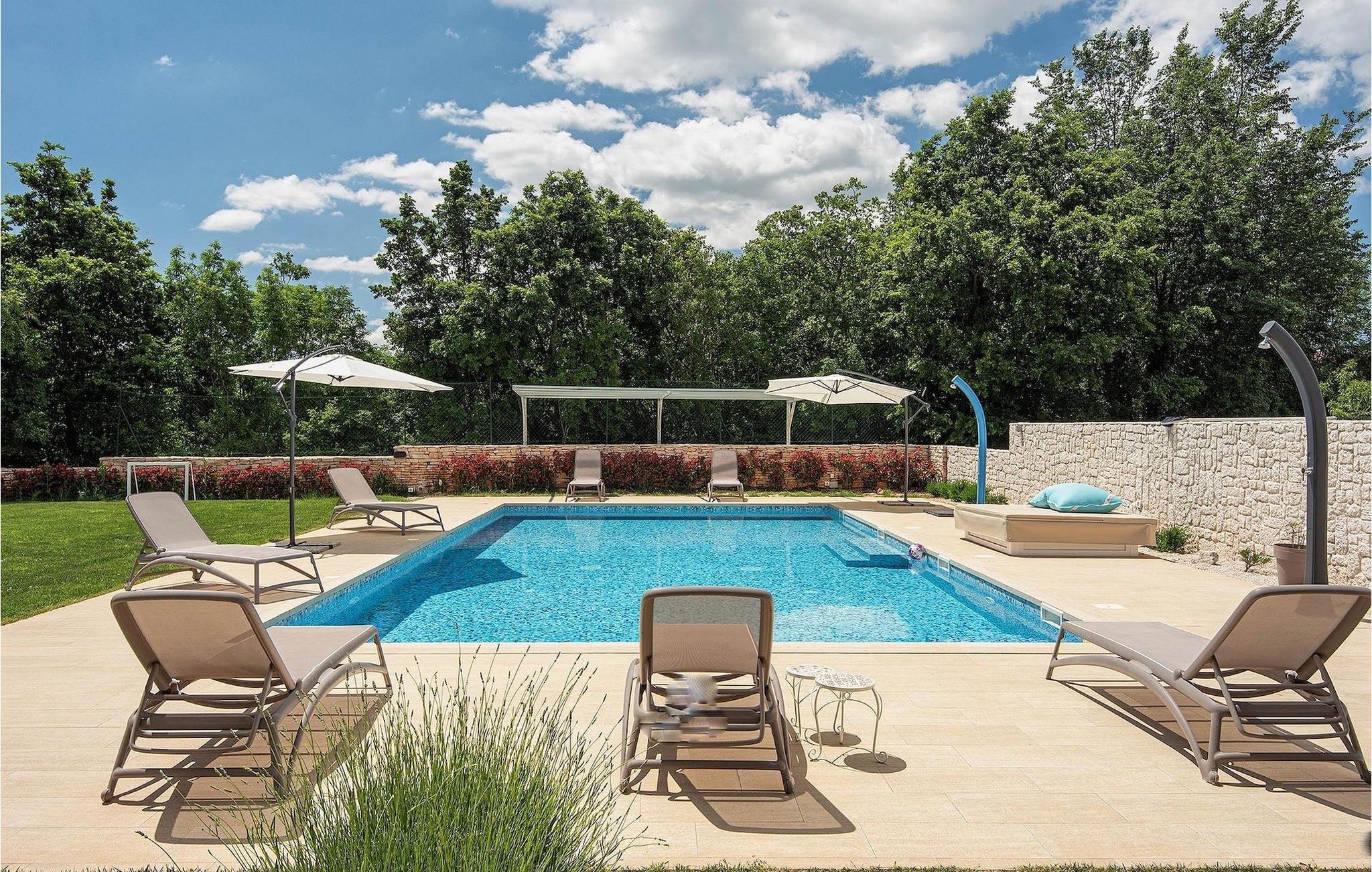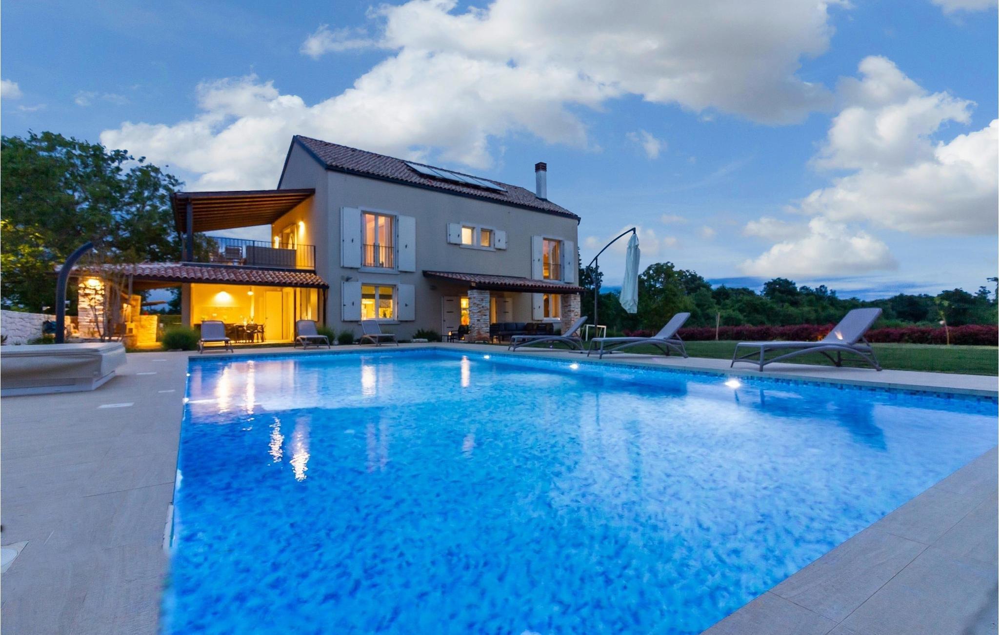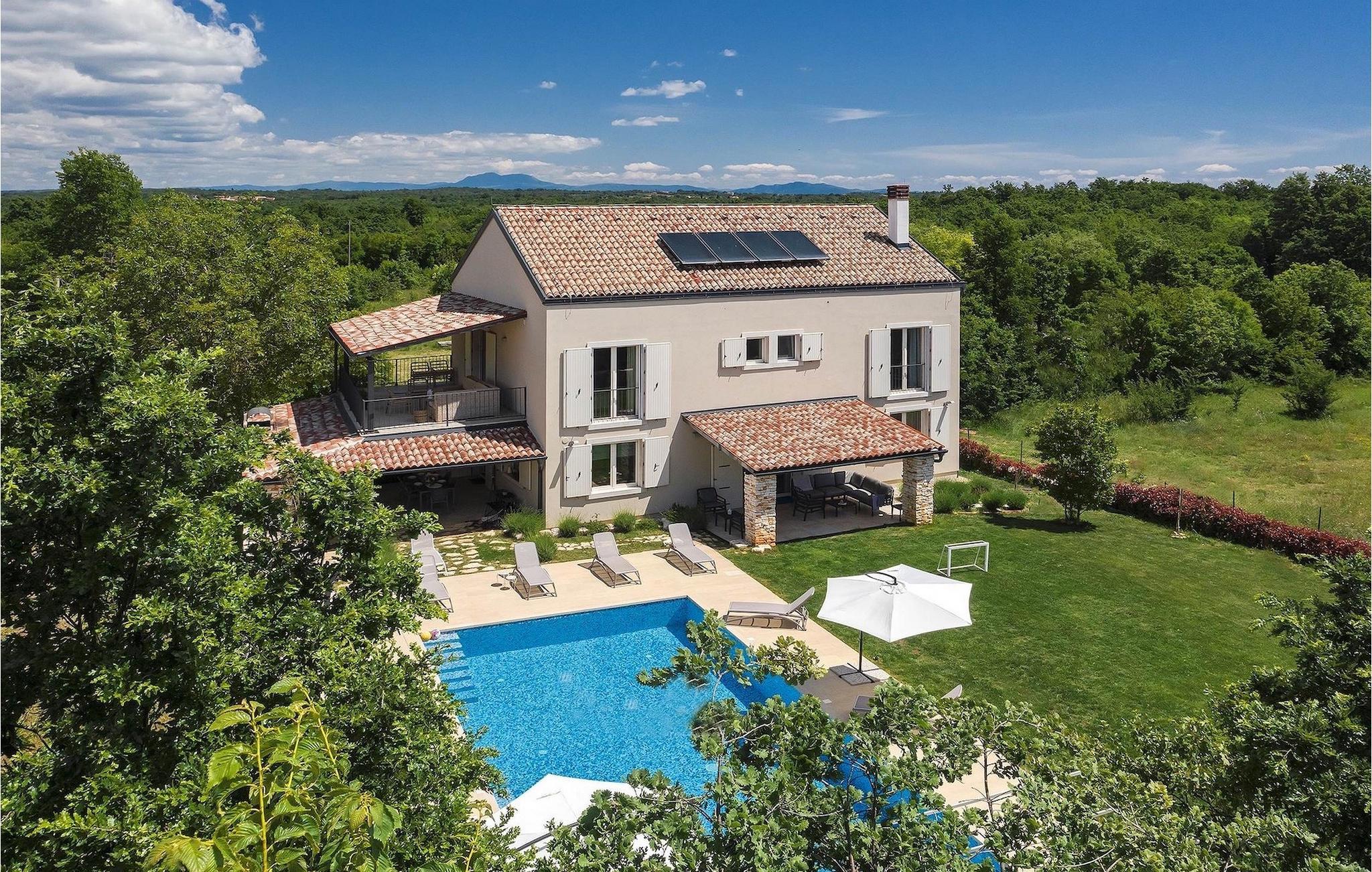 Villa My Koltrina er det ideelle valget for en avslappende familieferie i en villa med en rolig beliggenhet sentralt i Istria, men samtidig ikke så langt unna større turistbyer. Denne fantastiske villaen med et vakkert 72m2 privat basseng er innredet med stor oppmerksomhet og oppmerksomhet på detaljer for å tilby sine gjester en varm og innbydende atmosfære uten å ofre romslighet og luksus. Villaen har plass til maksimalt 10 personer. Ett soverom og den lyse, åpne stuen med et elegant, fullt utstyrt kjøkken og spiseplass ligger i første etasje. Fra stuen har du direkte tilgang til bassenget og hagen. Utendørs boblebad for 6 personer ved bassenget, stereo bose utendørs lydsystem, utendørs ismaskin og profesjonell bordfotball i underholdningsområdet. De tre andre soverommene med eget bad ligger i første etasje. Ett av soverommene har en nydelig balkong med utsikt over bassengområdet og området rundt, hvor du kan nyte rolige sommerkvelder. For ytterligere avslapning er det innendørs boblebad, badstue og treningsutstyr i kjelleren, mens toppetasjen tilbyr et fredelig tilfluktssted med en sovesofa.