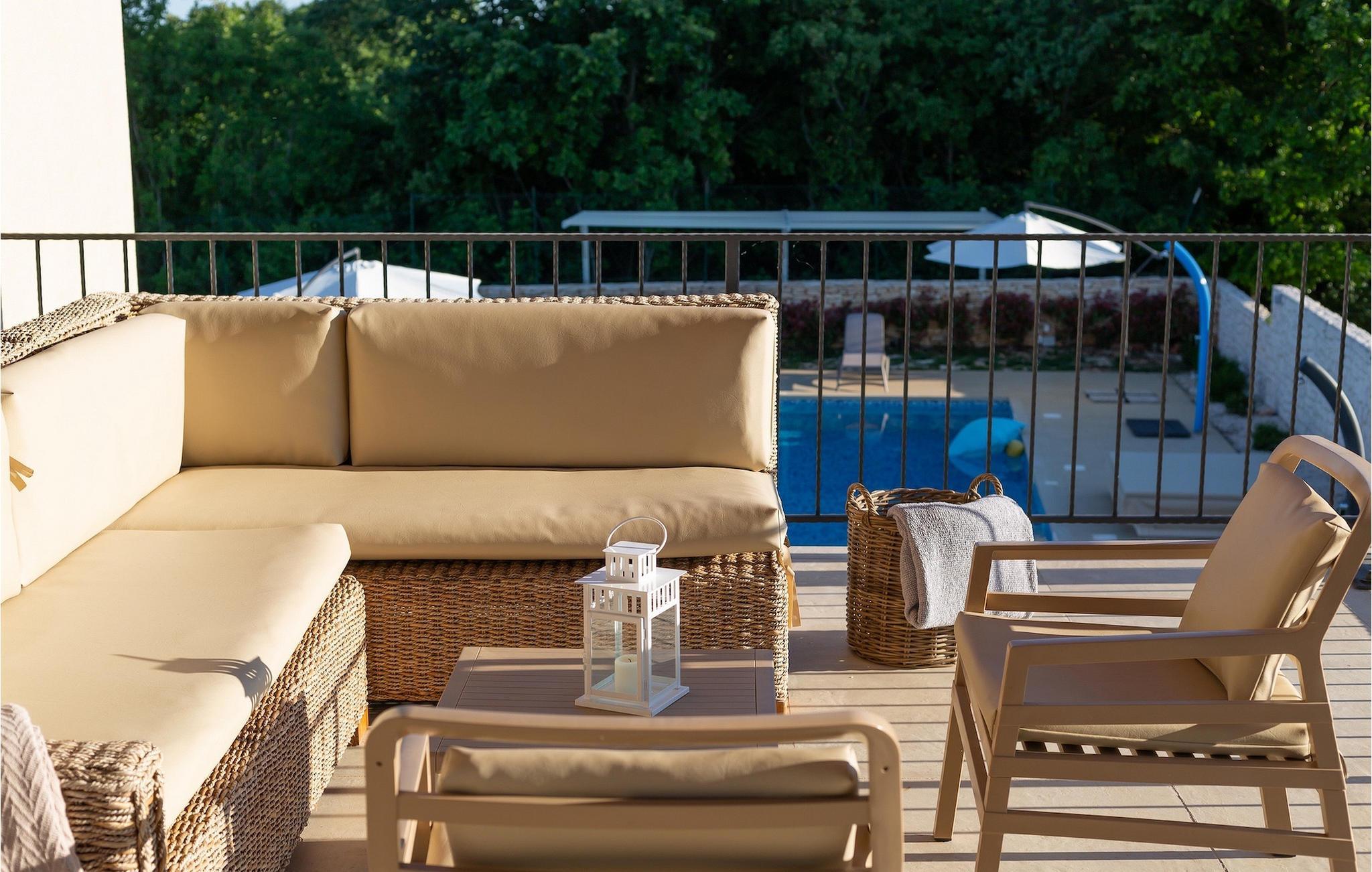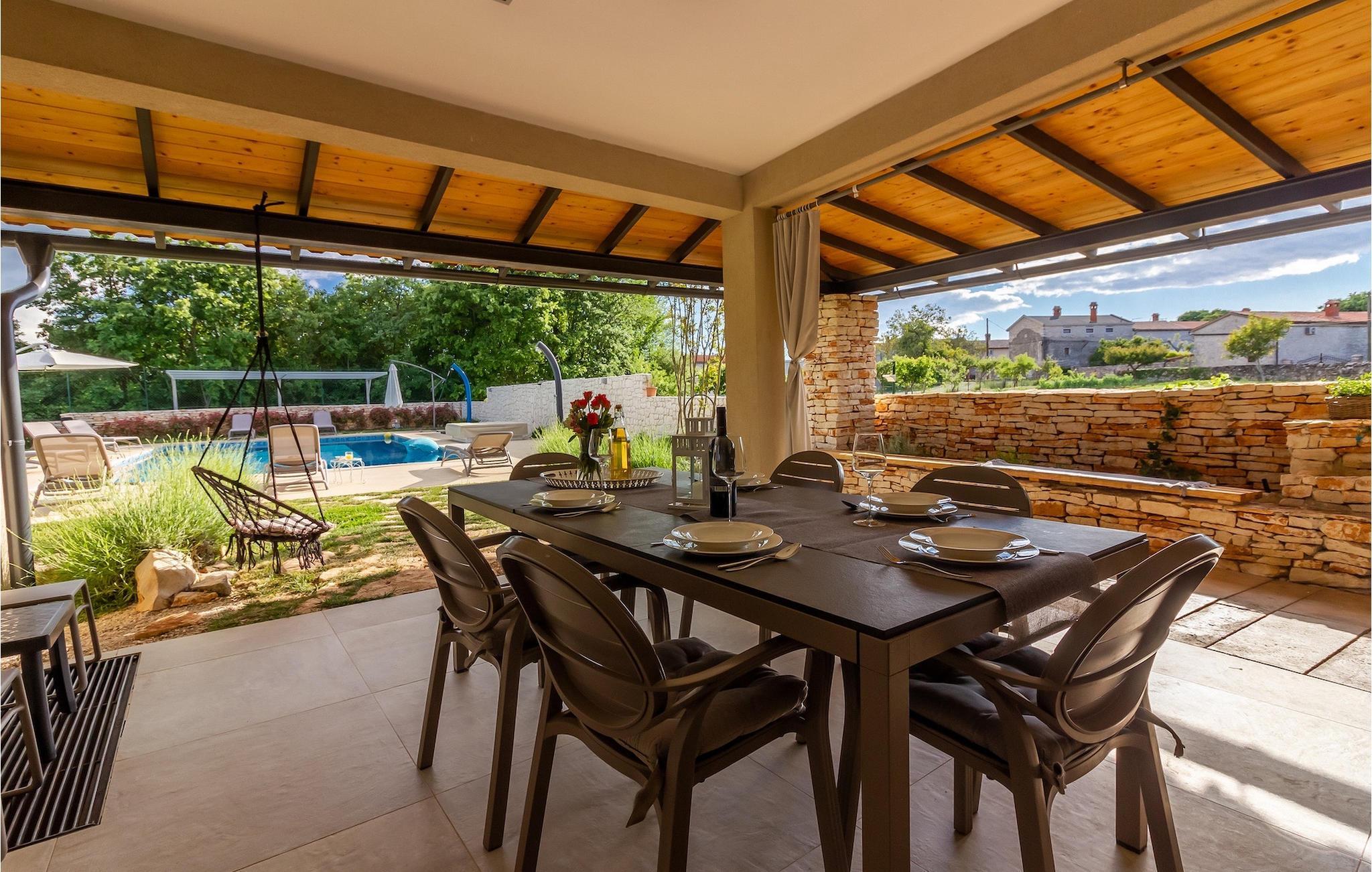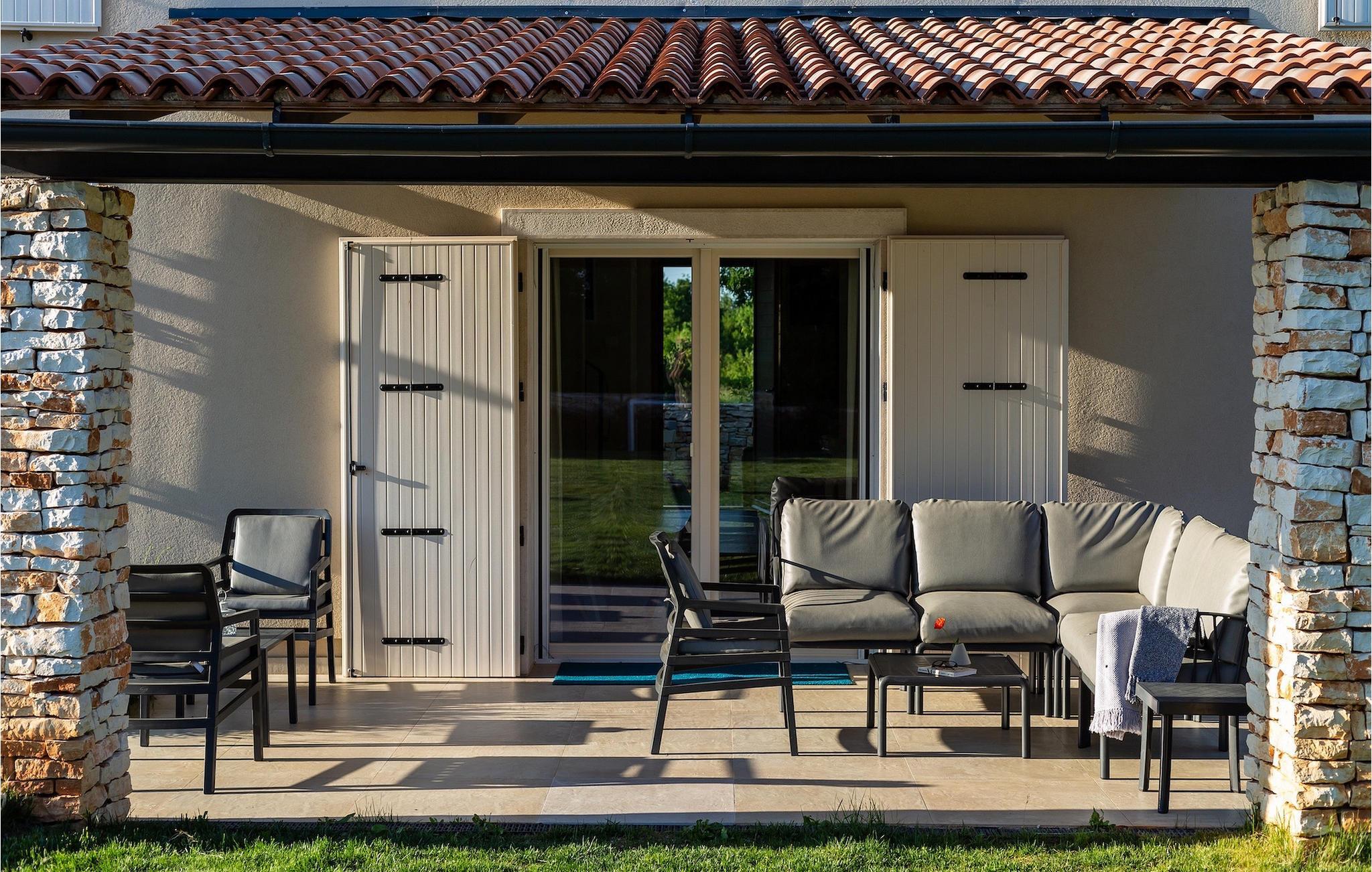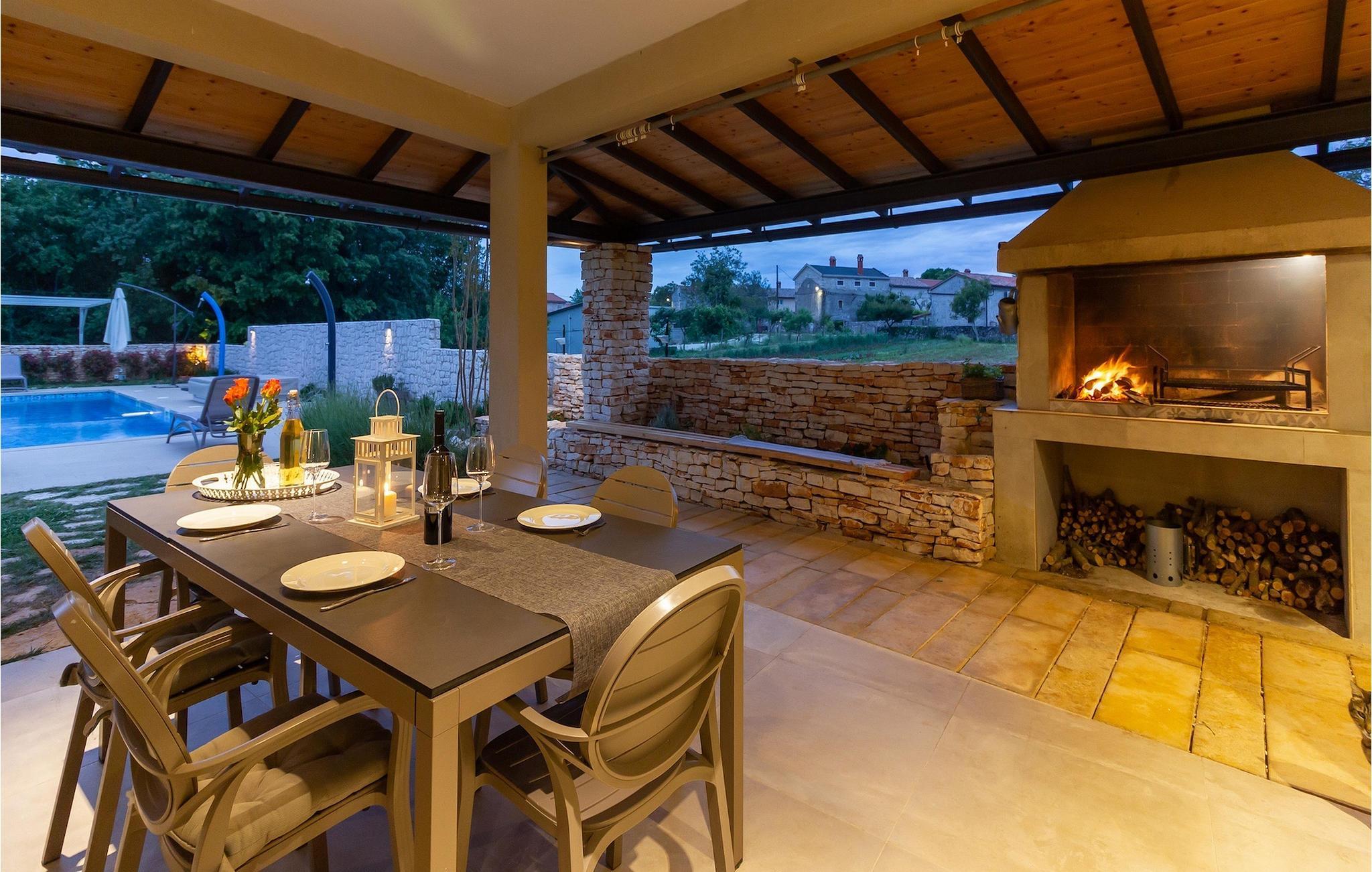 Villa My Koltrina er det ideelle valget for en avslappende familieferie i en villa med en rolig beliggenhet sentralt i Istria, men samtidig ikke så langt unna større turistbyer. Denne fantastiske villaen med et vakkert 72m2 privat basseng er innredet med stor oppmerksomhet og oppmerksomhet på detaljer for å tilby sine gjester en varm og innbydende atmosfære uten å ofre romslighet og luksus. Villaen har plass til maksimalt 10 personer. Ett soverom og den lyse, åpne stuen med et elegant, fullt utstyrt kjøkken og spiseplass ligger i første etasje. Fra stuen har du direkte tilgang til bassenget og hagen. Utendørs boblebad for 6 personer ved bassenget, stereo bose utendørs lydsystem, utendørs ismaskin og profesjonell bordfotball i underholdningsområdet. De tre andre soverommene med eget bad ligger i første etasje. Ett av soverommene har en nydelig balkong med utsikt over bassengområdet og området rundt, hvor du kan nyte rolige sommerkvelder. For ytterligere avslapning er det innendørs boblebad, badstue og treningsutstyr i kjelleren, mens toppetasjen tilbyr et fredelig tilfluktssted med en sovesofa.