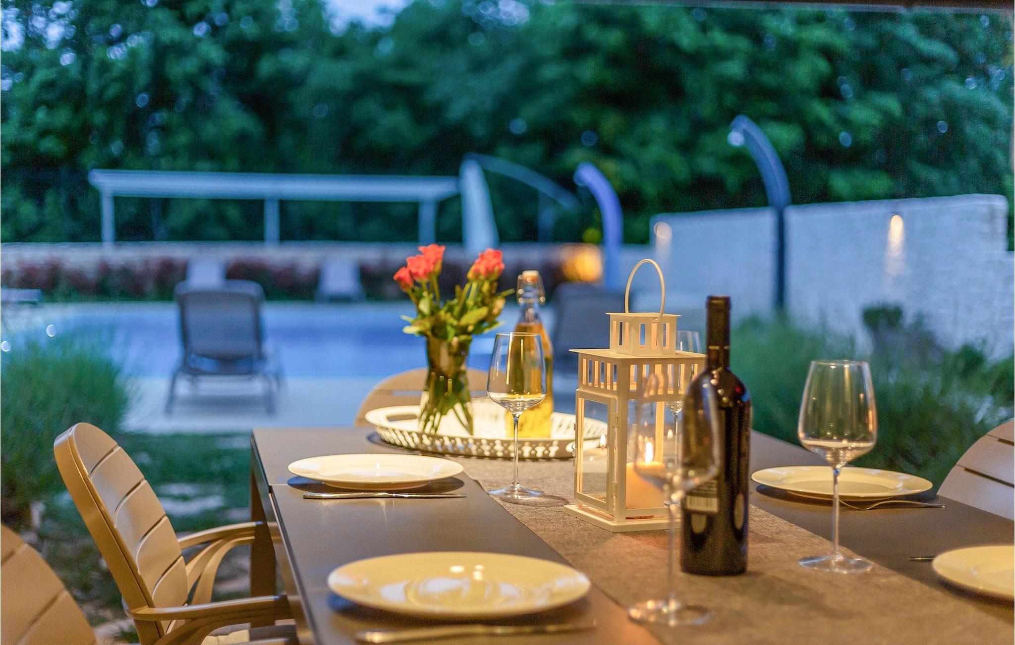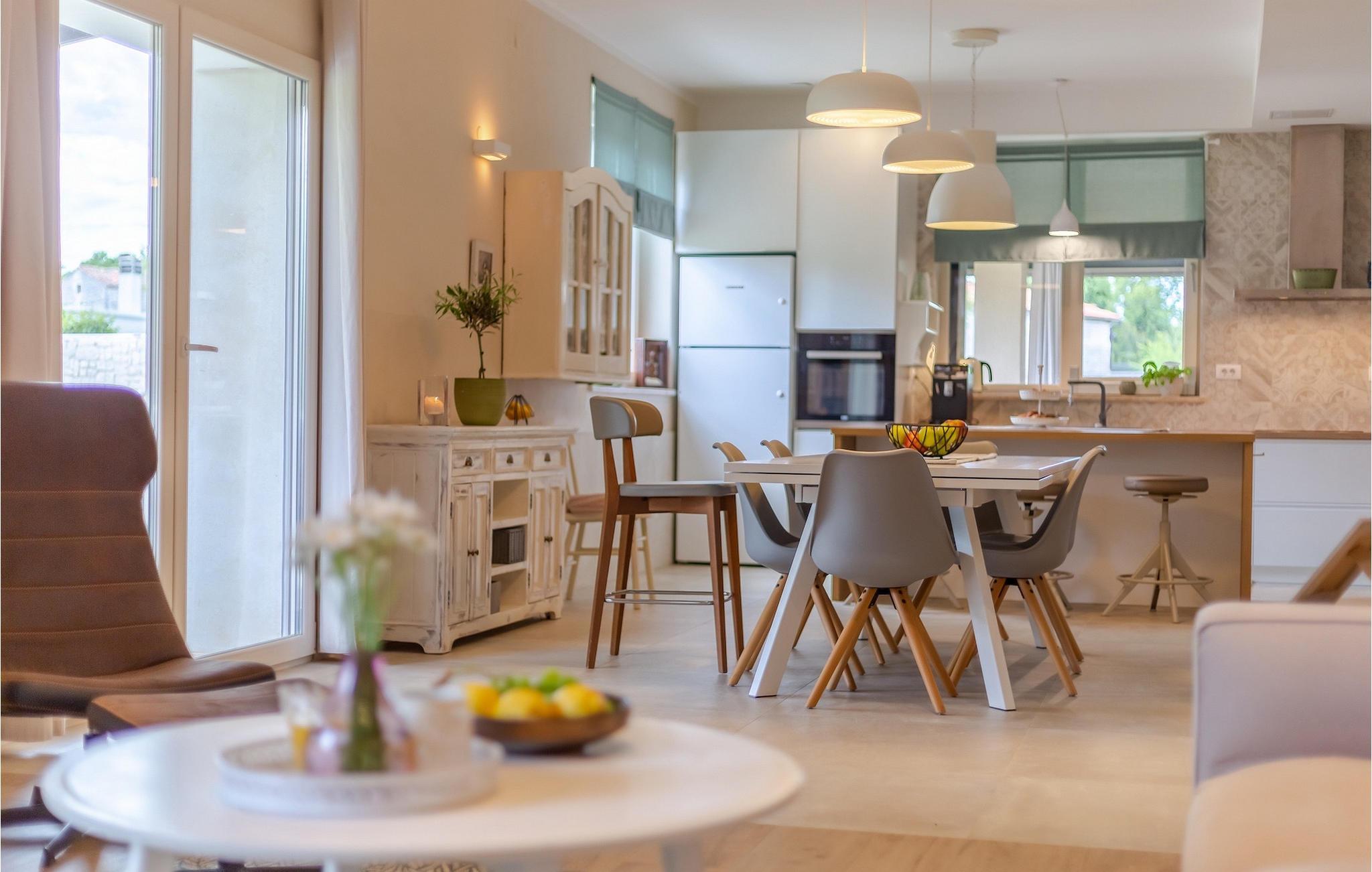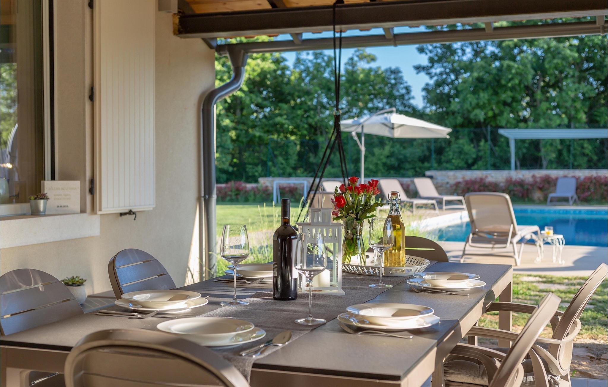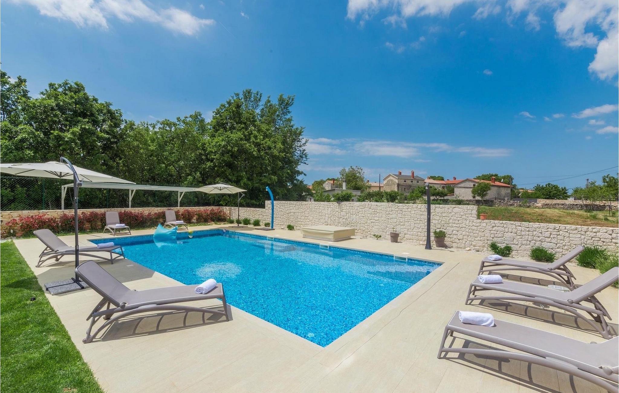 Villa My Koltrina er det ideelle valget for en avslappende familieferie i en villa med en rolig beliggenhet sentralt i Istria, men samtidig ikke så langt unna større turistbyer. Denne fantastiske villaen med et vakkert 72m2 privat basseng er innredet med stor oppmerksomhet og oppmerksomhet på detaljer for å tilby sine gjester en varm og innbydende atmosfære uten å ofre romslighet og luksus. Villaen har plass til maksimalt 10 personer. Ett soverom og den lyse, åpne stuen med et elegant, fullt utstyrt kjøkken og spiseplass ligger i første etasje. Fra stuen har du direkte tilgang til bassenget og hagen. Utendørs boblebad for 6 personer ved bassenget, stereo bose utendørs lydsystem, utendørs ismaskin og profesjonell bordfotball i underholdningsområdet. De tre andre soverommene med eget bad ligger i første etasje. Ett av soverommene har en nydelig balkong med utsikt over bassengområdet og området rundt, hvor du kan nyte rolige sommerkvelder. For ytterligere avslapning er det innendørs boblebad, badstue og treningsutstyr i kjelleren, mens toppetasjen tilbyr et fredelig tilfluktssted med en sovesofa.