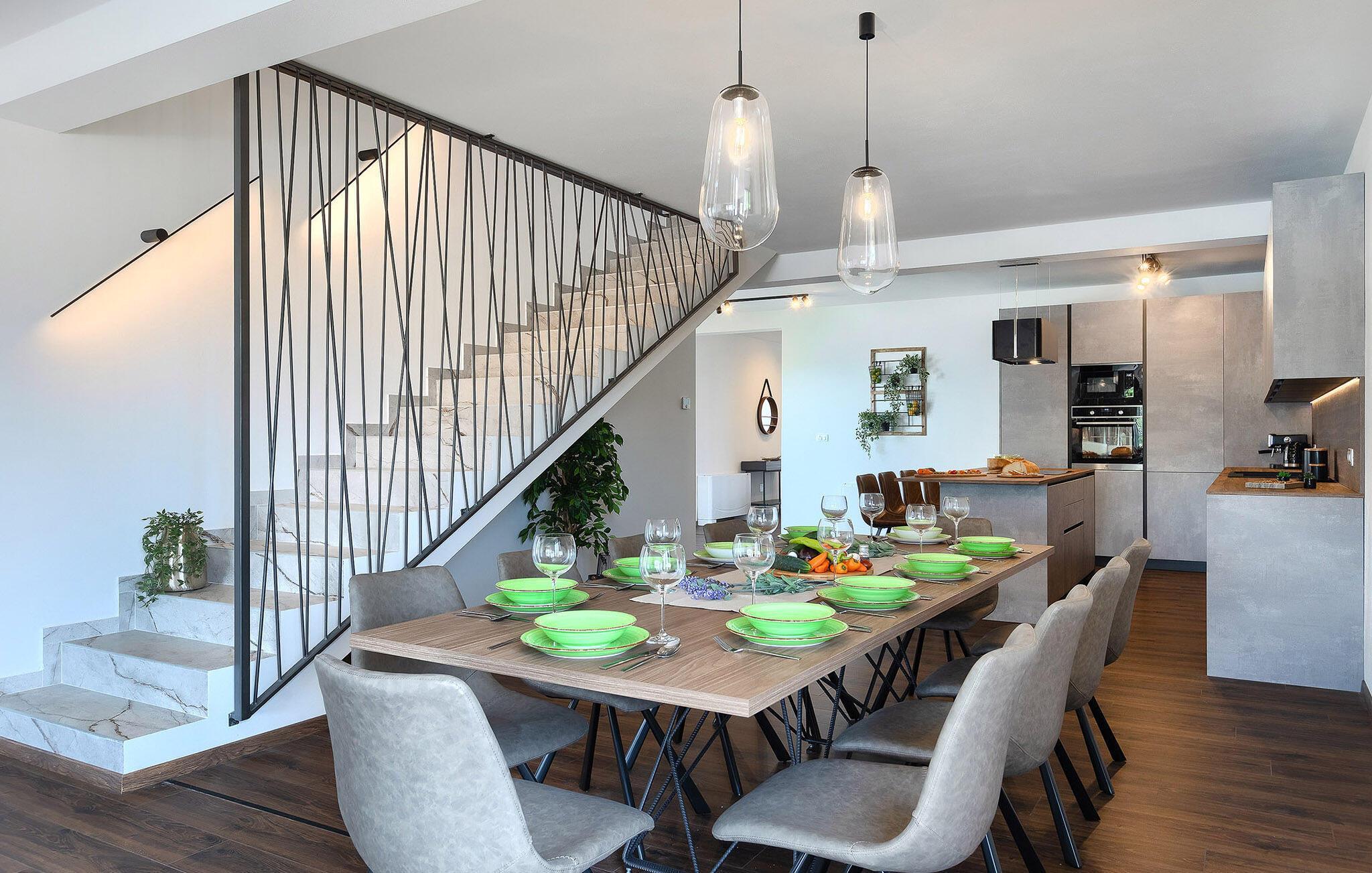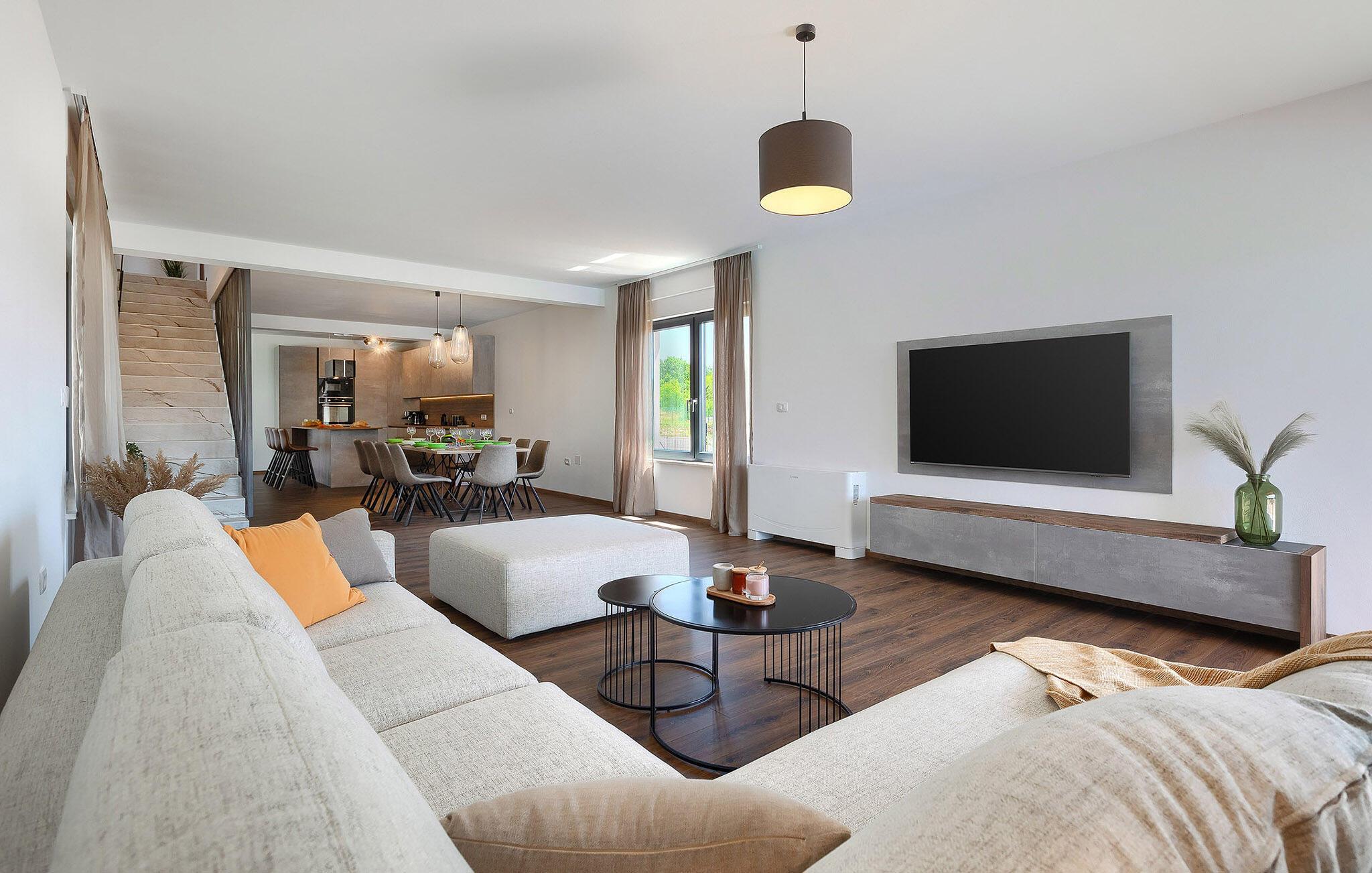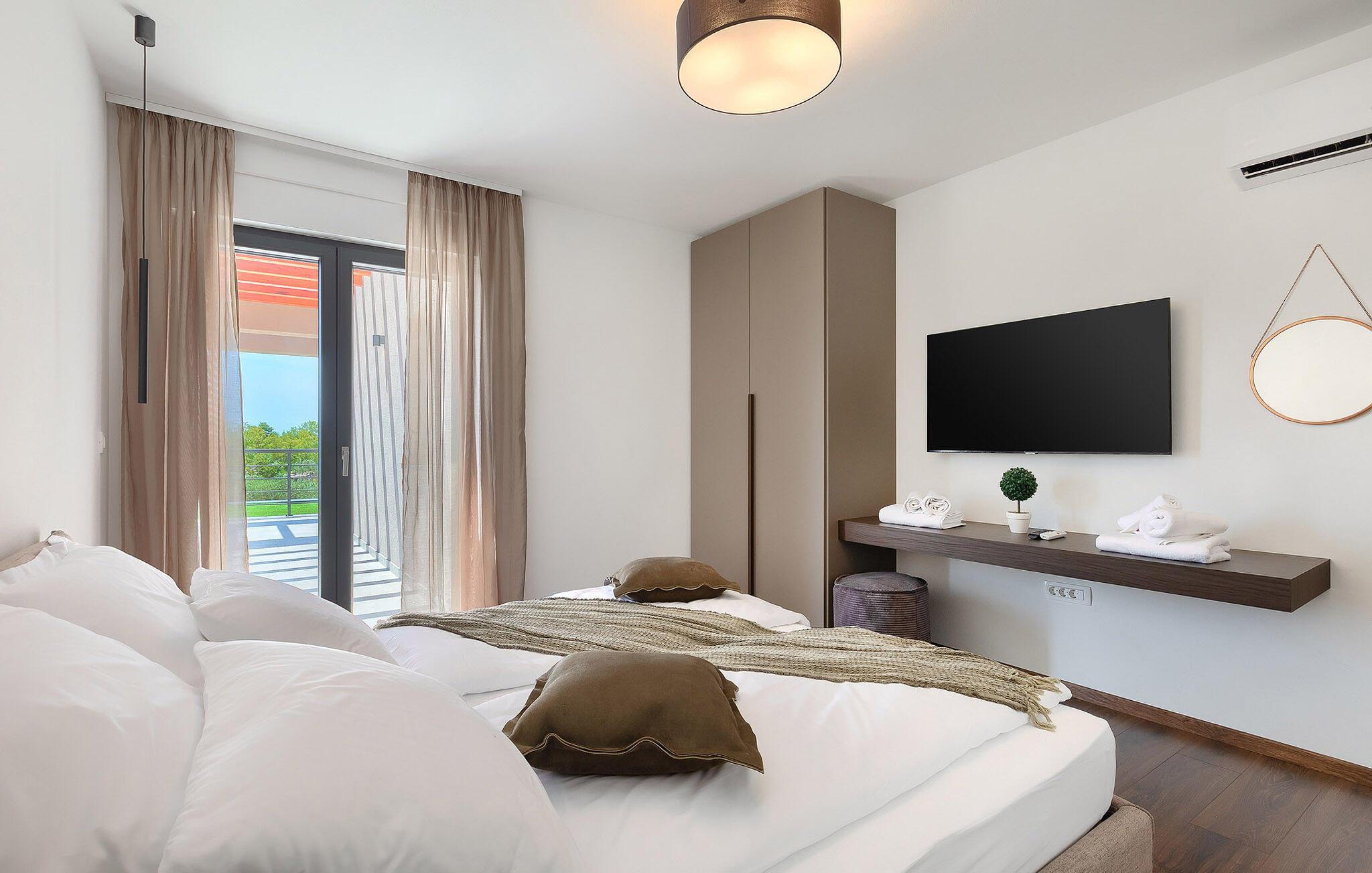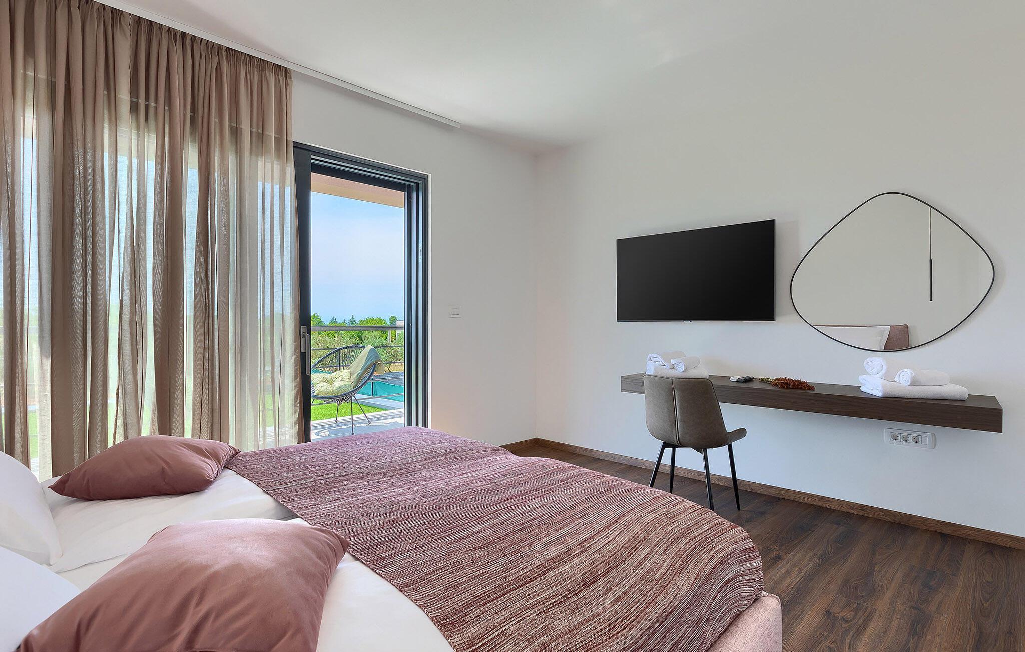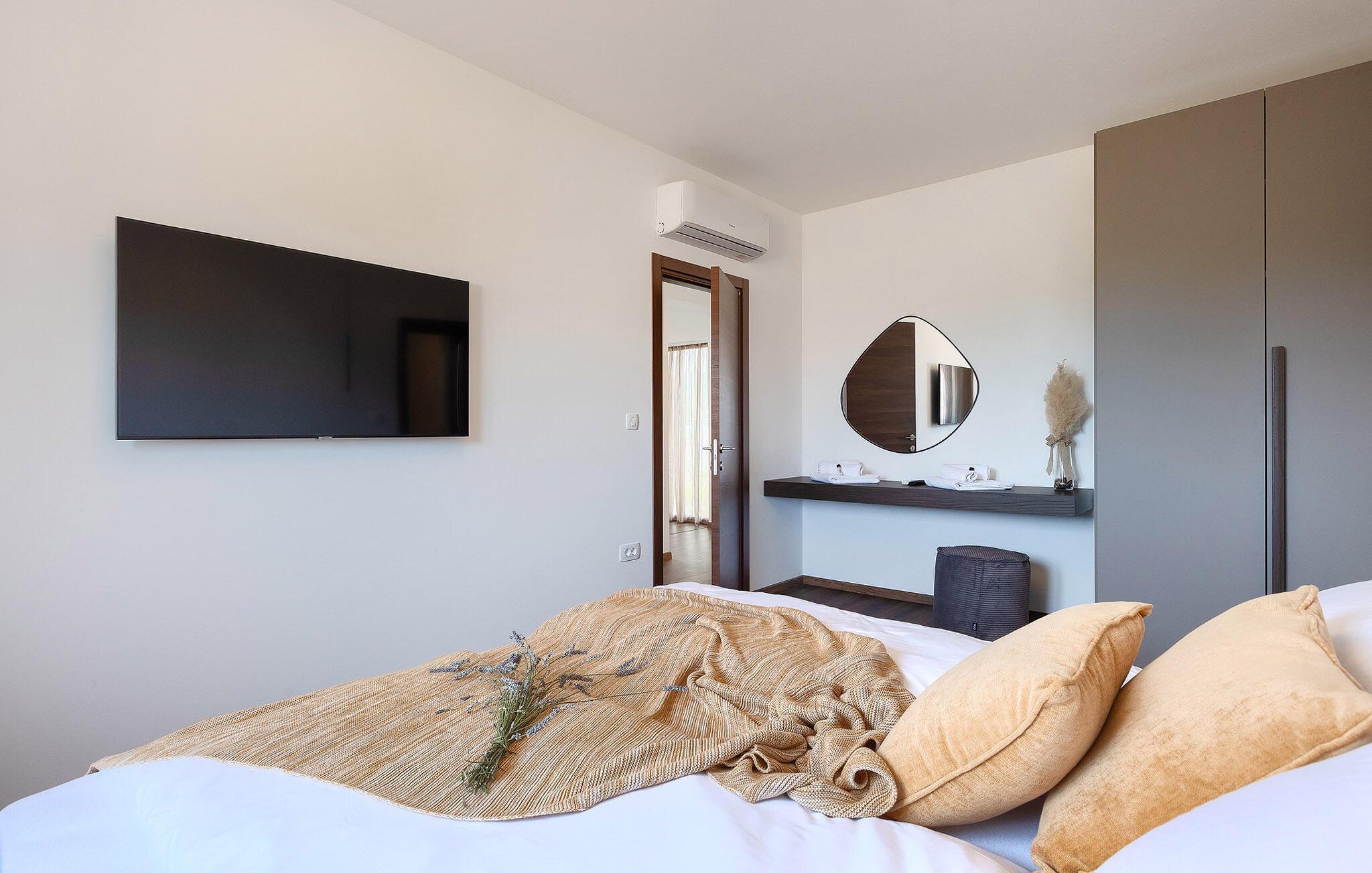 Den vakre familievillaen Artsi ligger i middelalderbyen Svetvincenat. Den fullt inngjerdede villaen tilbyr deg en intim ferie med familie, venner og kjæledyr. Foran villaen ligger et imponerende oppvarmet basseng på 50 m2. Nyt soling på solsengene eller tilbring uforglemmelige sammenkomster ved bassenget i det overbygde området ved et bord med ti sitteplasser. Tilbered tradisjonelle istriske retter på grillen for hele familien. Ha det gøy utendørs med dine kjære når du spiller bordfotball og bordtennis. De yngste gjestene kan ha det gøy på lekeplassen med sklie. Interiøret i villaen er innredet i en moderne stil. I første etasje av villaen er det en åpen planløsning med en romslig stue, et fullt utstyrt kjøkken der hele familien kan delta i matlagingen, og en spisestue med plass til ti personer der dere kan tilbringe tid sammen. I første etasje av villaen er det et separat toalett og det første soverommet med dobbeltseng og eget bad. De resterende fire soverommene med dobbeltsenger og eget bad ligger i andre etasje. Alle soverommene har TV og klimaanlegg, noe som er ideelt for en fredelig natts søvn og ønsket fred og ro. Alle soverommene har tilgang til villaens terrasse, hvor du kan nyte morgenkaffen eller en forfriskende drink mens du beundrer den vakre utsikten over den uberørte naturen. Velg denne vakre villaen, som er ideell for en familieferie med venner og kjæledyr i landlige omgivelser. Nyt en unik ferie i det indre av Istria. Villa Artsi ligger i nærheten av middelalderbyen Svetvincenat, i landsbyen Stokovci i det sør-sentrale Istria. Svetvincenat vil glede deg med sitt renessansetorg Placa med Morosini-Grimani-slottet, byens landemerke. En viktig del av Svetvincenats kulturarv er de bevarte restene av veggmalerier i Sankt Vincents kirke nær byens kirkegård og i Sankt Katarinas kirke. Denne spesielle byen tiltrekker seg besøkende med interessante og varierte lokale arrangementer. Det mest fremtredende er middelalderfestivalen, der du kan prøve deg på middelalderske leker. Du vil bli imponert over lokalbefolkningens gjestfrihet, det rike tradisjonelle istriske kjøkkenet og den ekstra jomfruolivenoljen. Oppdag skjønnheten i denne regionen på de mange sykkel- og turstiene. Besøk de viktigste turistsentrene i Istria: Rovinj, Porec, Labin, Pula. I Rovinj kan du besøke barokkirken St Euphemia, mens du i Porec kan se den bysantinske Eufrasius-basilikaen, som står på UNESCOs verdensarvliste. Gå ikke glipp av et besøk til Istrias største by Pula, der du kan se Pula Arena, Augustus-tempelet, Den gylne port og mange andre kulturelle og historiske monumenter. Til slutt kan du utforske Brijuni-skjærgården med den berømte Brijuni nasjonalpark. Temperaturen i det oppvarmede bassenget avhenger av eksterne faktorer, blant annet værforholdene, og vanntemperaturen kan derfor ikke garanteres.