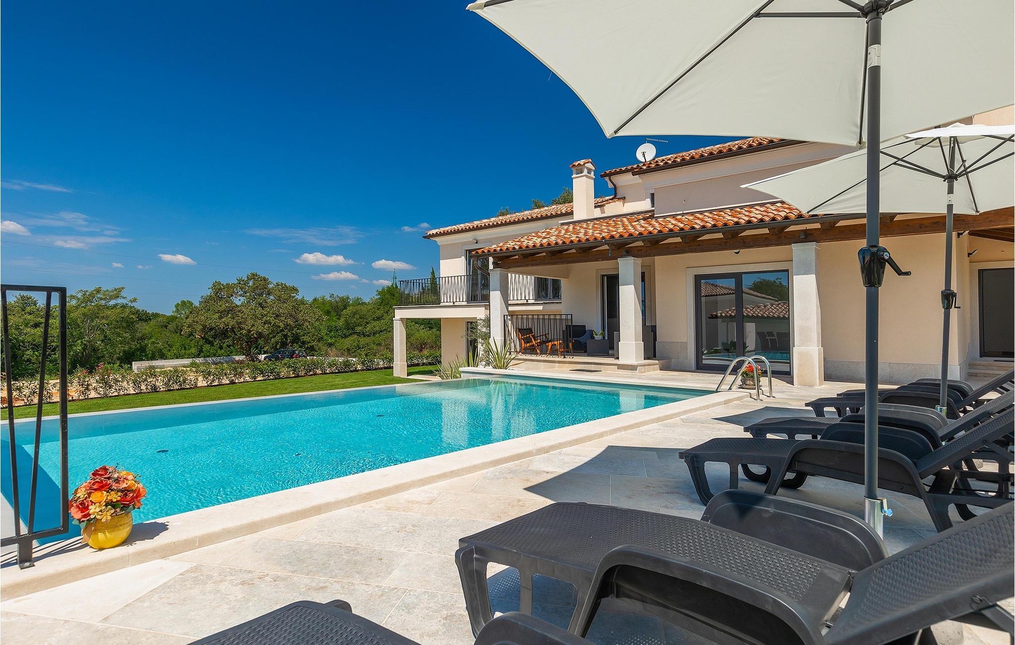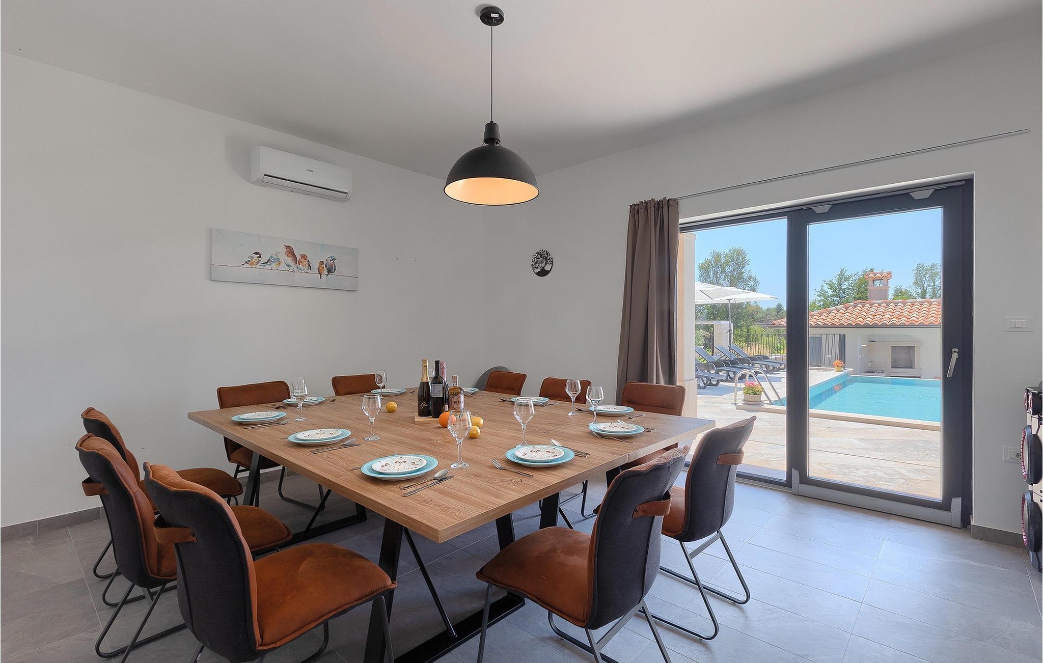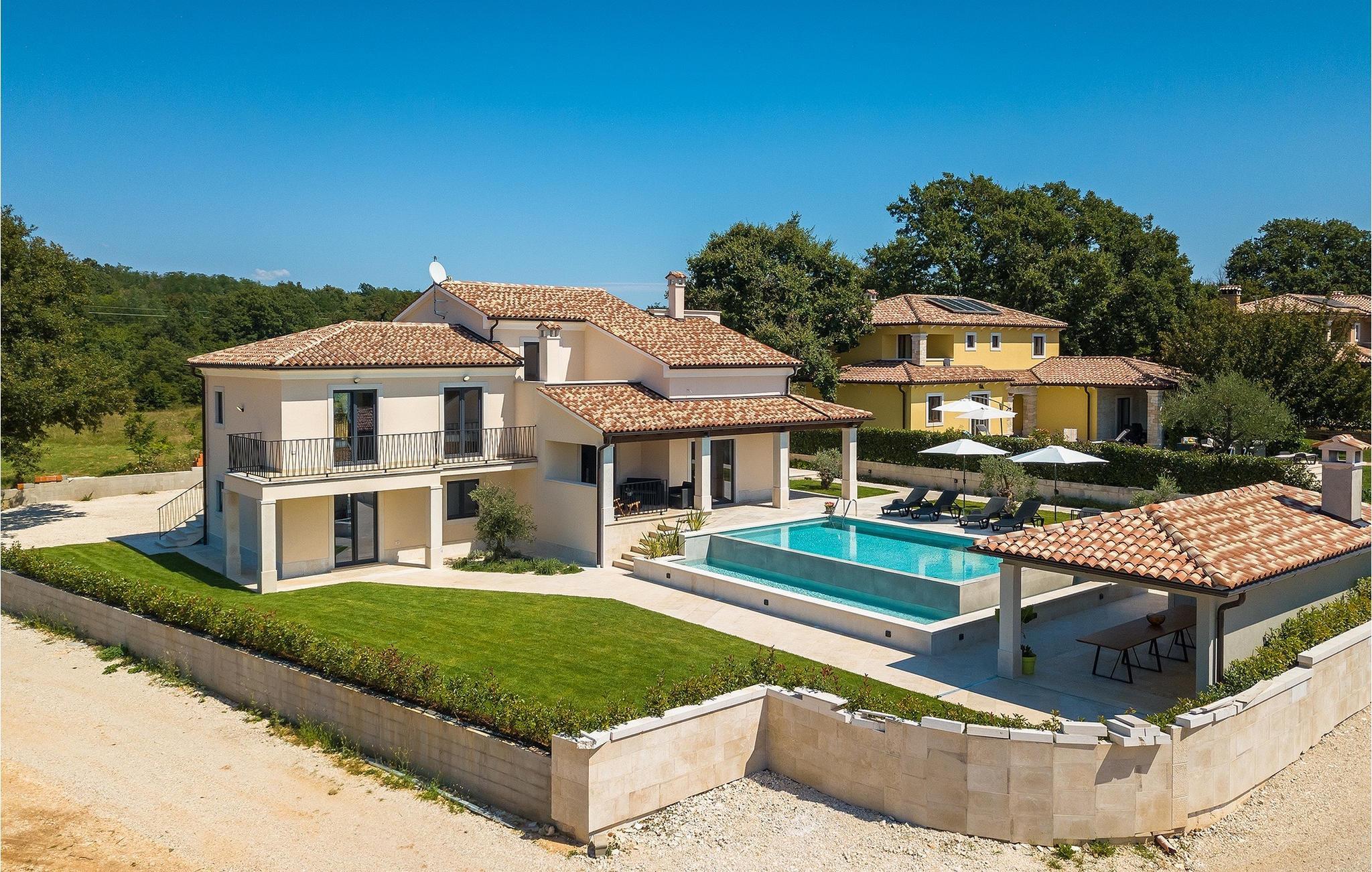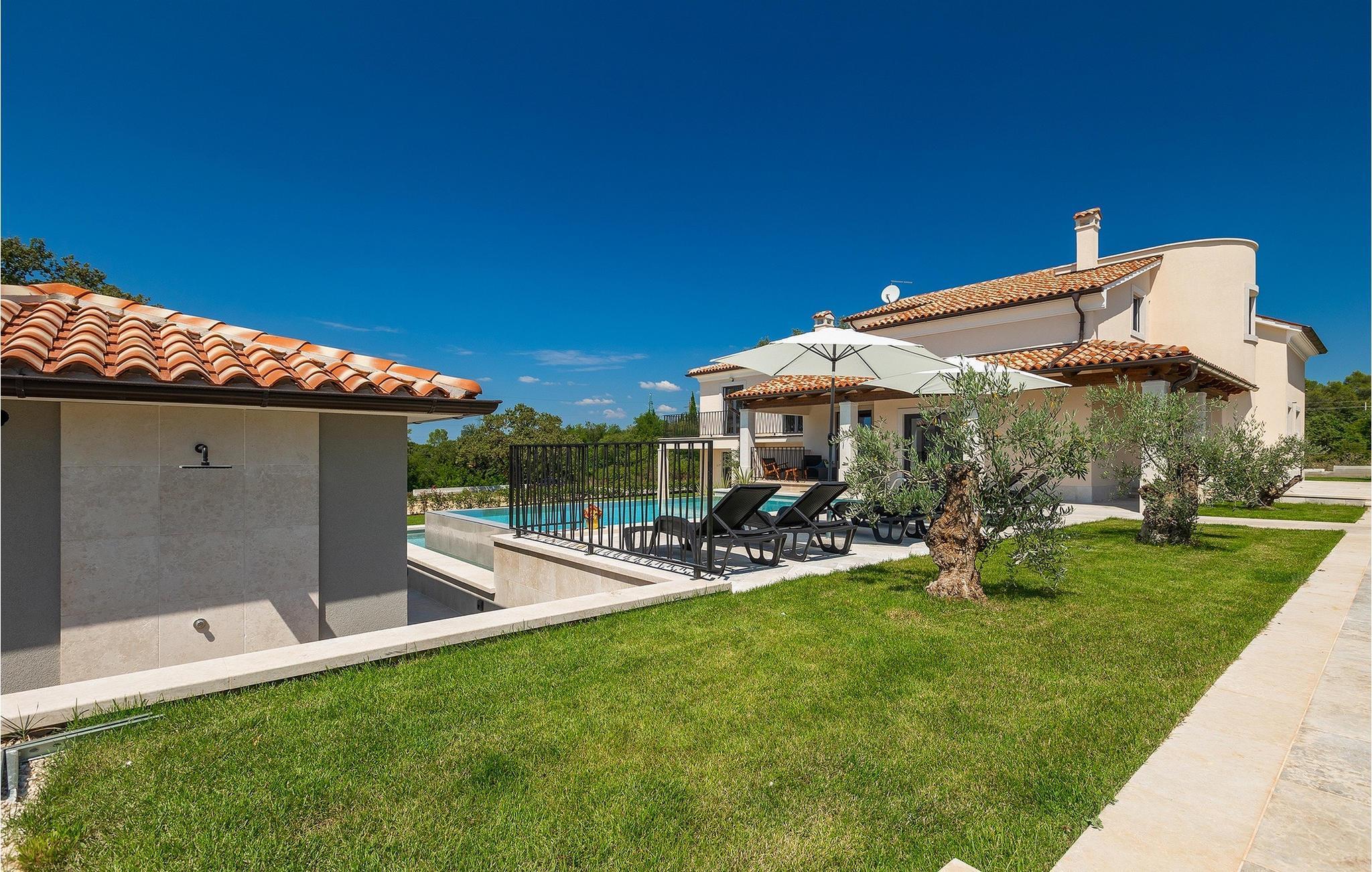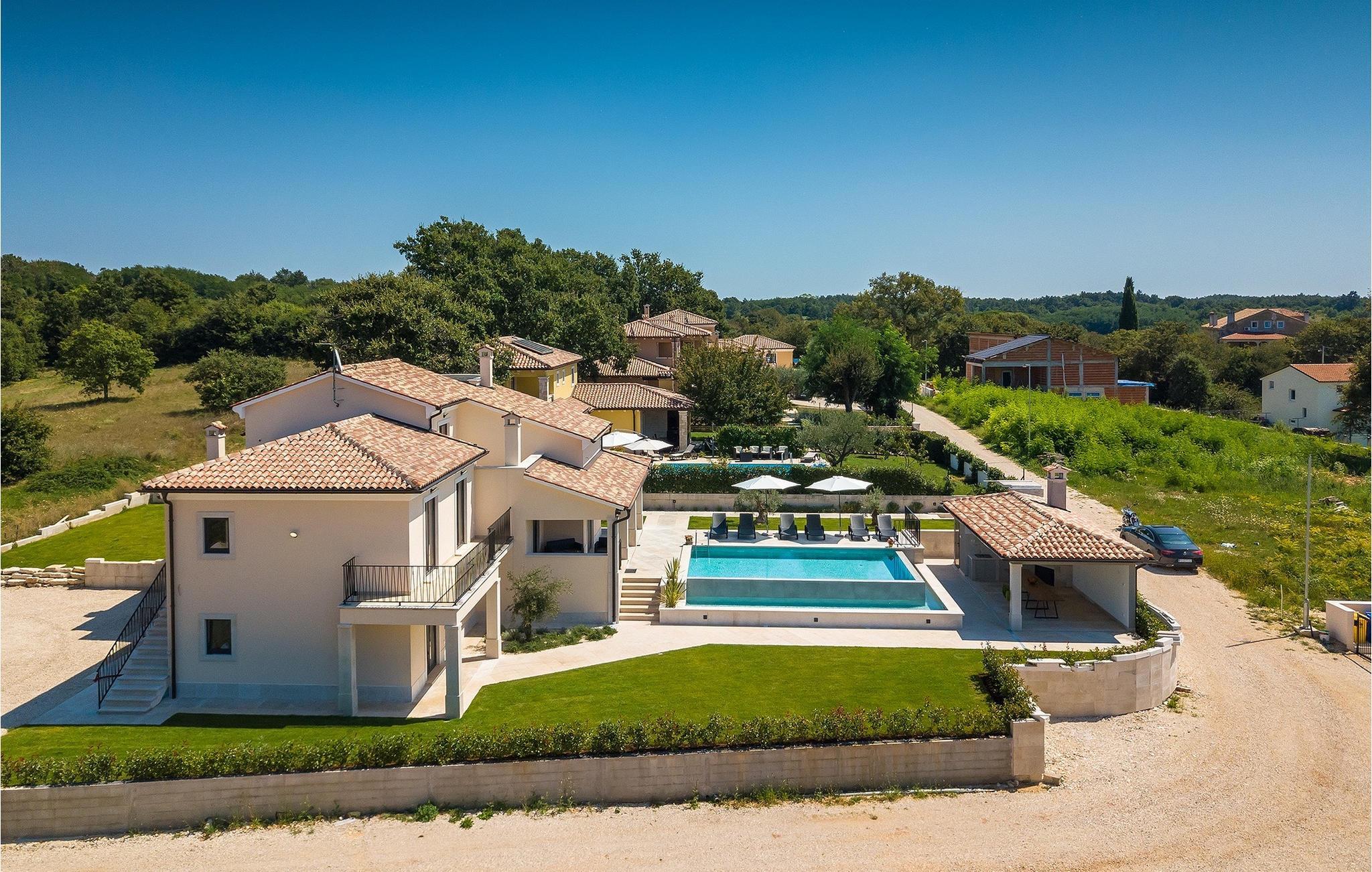 Den vakre familievillaen La Fierra med plass til 14 personer i det sentrale Istria er det perfekte valget for en drømmeferie med familie og venner. Villaens hage har et svømmebasseng med solsenger, ideelt for å slappe av og forfriske hele familien i sommervarmen. På varme sommerdager kan du flykte ut på den overbygde terrassen og nyte en forfriskende drink. Eiendommen har en kullgrill for tilberedning av regionale delikatesser og et utekjøkken med et spisebord for 14 personer, perfekt for kvalitetstid med familien. Villaen er et hus i to plan, noe som betyr at hver etasje har et øvre og et nedre plan, noe som skaper et mer dynamisk boareal. I første etasje i øverste etasje ligger det første soverommet med eget bad, samt en stue, et fullt utstyrt kjøkken og en spisestue. I underetasjen i første etasje er det et andre soverom med eget bad. I første etasje av villaen er det 5 soverom med eget bad. To av soverommene, ett i første etasje og ett i andre etasje, har egen inngang fra utsiden. Alle soverommene er utstyrt med dobbeltsenger, TV og klimaanlegg og gir den nødvendige fred og ro. Ikke gå glipp av en ferie i hjertet av Istria i familievillaen La Fierra. Svetvincenat er en renessanseby med et rikt gastronomisk og turisttilbud og mange lokale arrangementer som finner sted i de historiske severdighetene i denne byen. De mest kjente arrangementene er ostefestivalen, middelalderfestivalen og dansefestivalen, der du vil bli fortryllet av den gjestfrie lokalbefolkningen og lære om de ulike tradisjonene i denne regionen. Ikke gå glipp av å smake på tradisjonell istrisk mat på lokale restauranter bare 50 meter fra villaen. Svetvincenat vil glede deg med sitt renessansetorg Placa med Morosini-Grimani slott, byens landemerke. En viktig del av Svetvincenats kulturarv er de bevarte restene av veggmalerier i Sankt Vincents kirke nær byens kirkegård og i Sankt Katarinas kirke. Oppdag naturskjønnheten i det sentrale Istria på de mange sykkel- og turstiene. Brijuni nasjonalpark og Ucka naturpark er uunngåelige reisemål for naturelskere. Den ideelle beliggenheten i hjertet av Istria inviterer deg til dagsturer i hele Istria. Besøk de viktigste turistsentrene i Istria: Rovinj, Porec, Labin, Pula.