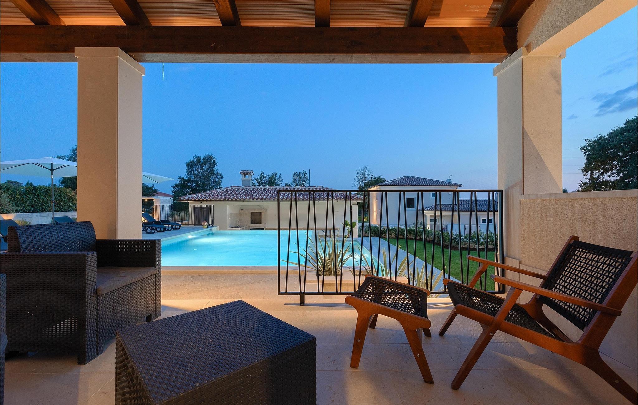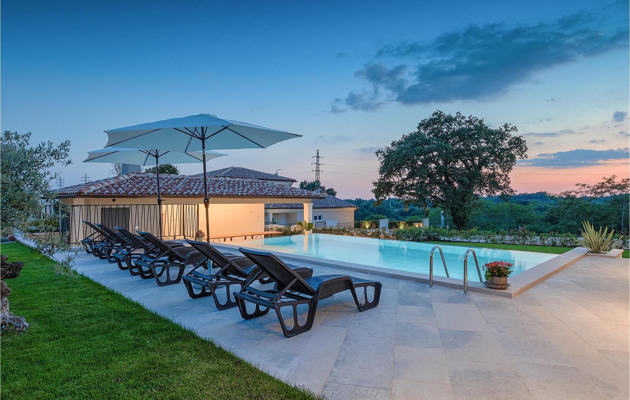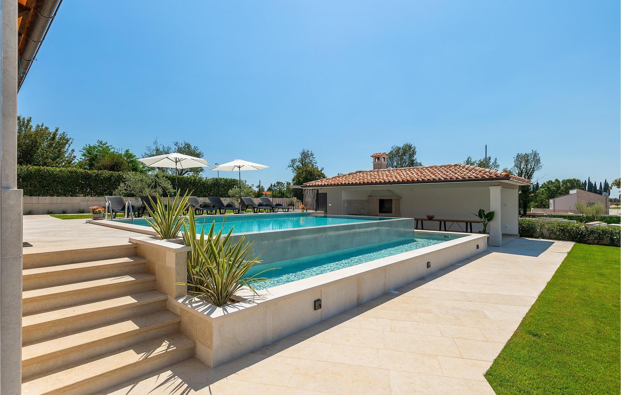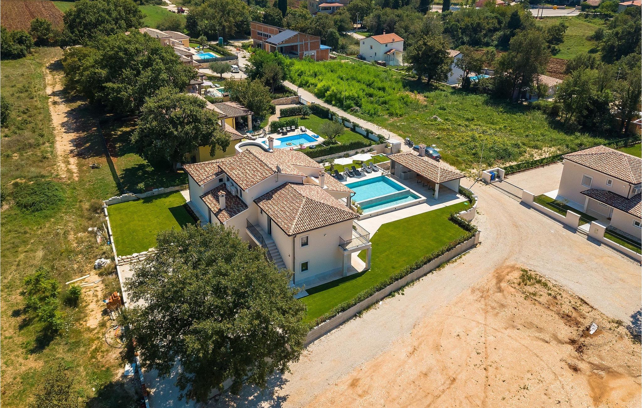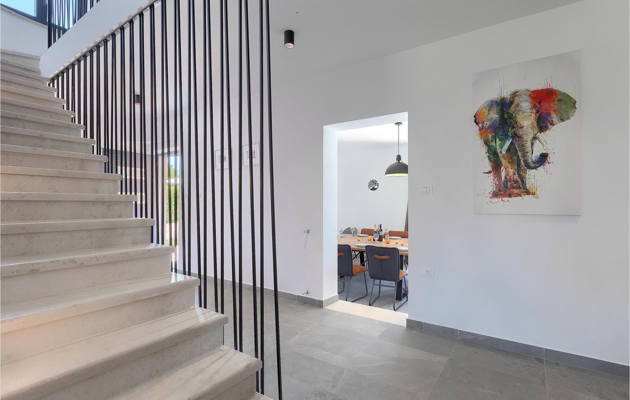Den vakre familievillaen La Fierra med plass til 14 personer i det sentrale Istria er det perfekte valget for en drømmeferie med familie og venner. Villaens hage har et svømmebasseng med solsenger, ideelt for å slappe av og forfriske hele familien i sommervarmen. På varme sommerdager kan du flykte ut på den overbygde terrassen og nyte en forfriskende drink. Eiendommen har en kullgrill for tilberedning av regionale delikatesser og et utekjøkken med et spisebord for 14 personer, perfekt for kvalitetstid med familien. Villaen er et hus i to plan, noe som betyr at hver etasje har et øvre og et nedre plan, noe som skaper et mer dynamisk boareal. I første etasje i øverste etasje ligger det første soverommet med eget bad, samt en stue, et fullt utstyrt kjøkken og en spisestue. I underetasjen i første etasje er det et andre soverom med eget bad. I første etasje av villaen er det 5 soverom med eget bad. To av soverommene, ett i første etasje og ett i andre etasje, har egen inngang fra utsiden. Alle soverommene er utstyrt med dobbeltsenger, TV og klimaanlegg og gir den nødvendige fred og ro. Ikke gå glipp av en ferie i hjertet av Istria i familievillaen La Fierra. Svetvincenat er en renessanseby med et rikt gastronomisk og turisttilbud og mange lokale arrangementer som finner sted i de historiske severdighetene i denne byen. De mest kjente arrangementene er ostefestivalen, middelalderfestivalen og dansefestivalen, der du vil bli fortryllet av den gjestfrie lokalbefolkningen og lære om de ulike tradisjonene i denne regionen. Ikke gå glipp av å smake på tradisjonell istrisk mat på lokale restauranter bare 50 meter fra villaen. Svetvincenat vil glede deg med sitt renessansetorg Placa med Morosini-Grimani slott, byens landemerke. En viktig del av Svetvincenats kulturarv er de bevarte restene av veggmalerier i Sankt Vincents kirke nær byens kirkegård og i Sankt Katarinas kirke. Oppdag naturskjønnheten i det sentrale Istria på de mange sykkel- og turstiene. Brijuni nasjonalpark og Ucka naturpark er uunngåelige reisemål for naturelskere. Den ideelle beliggenheten i hjertet av Istria inviterer deg til dagsturer i hele Istria. Besøk de viktigste turistsentrene i Istria: Rovinj, Porec, Labin, Pula.