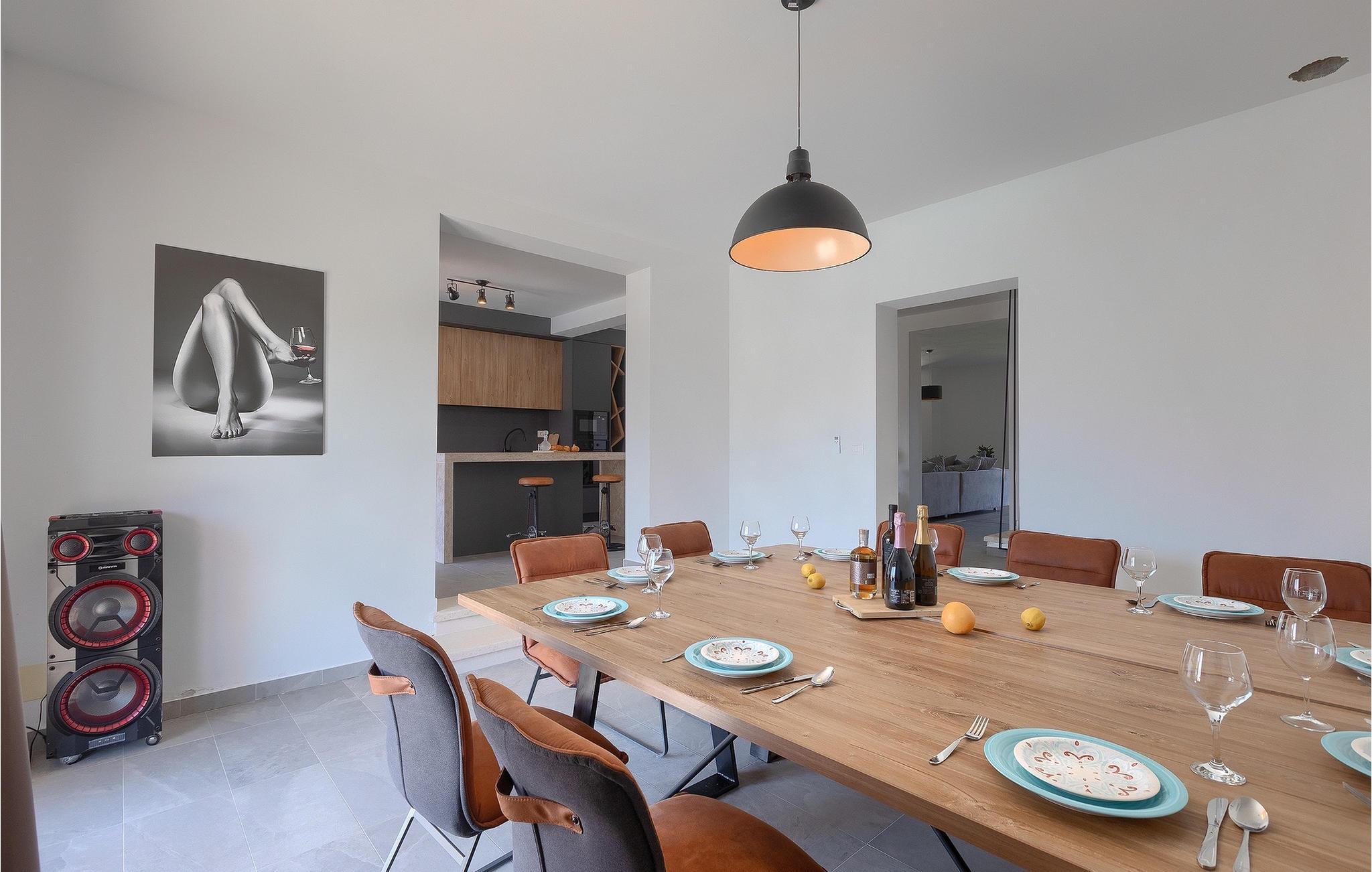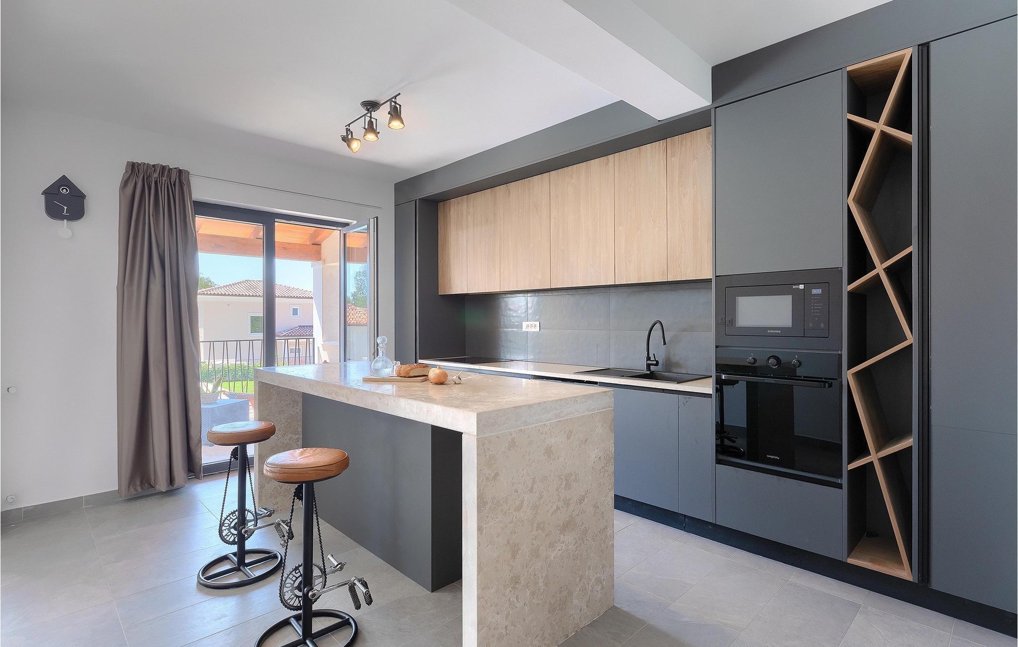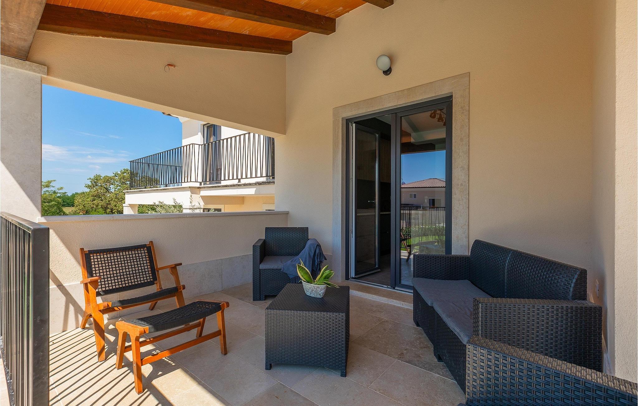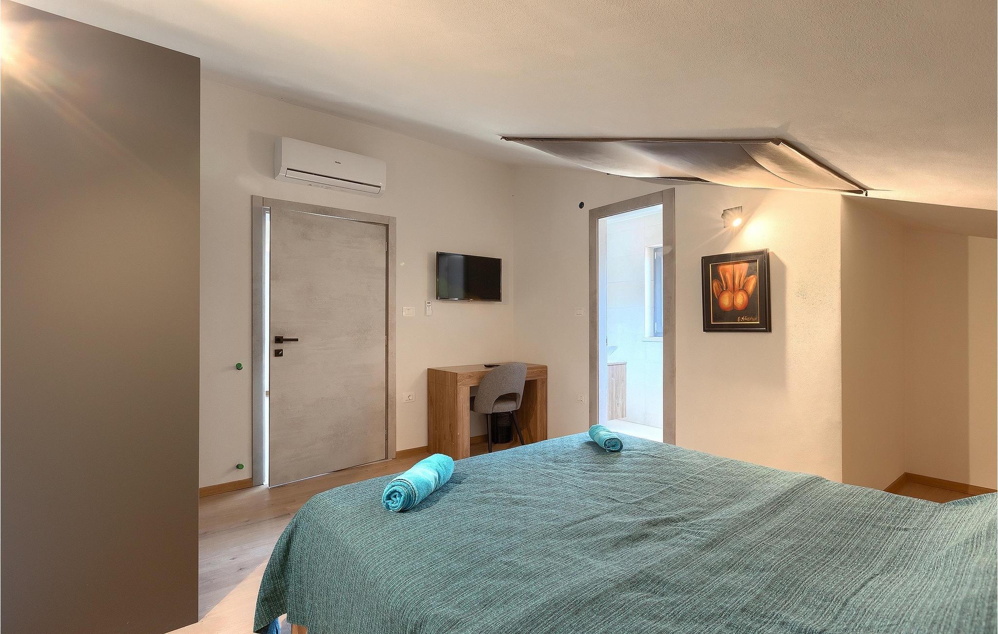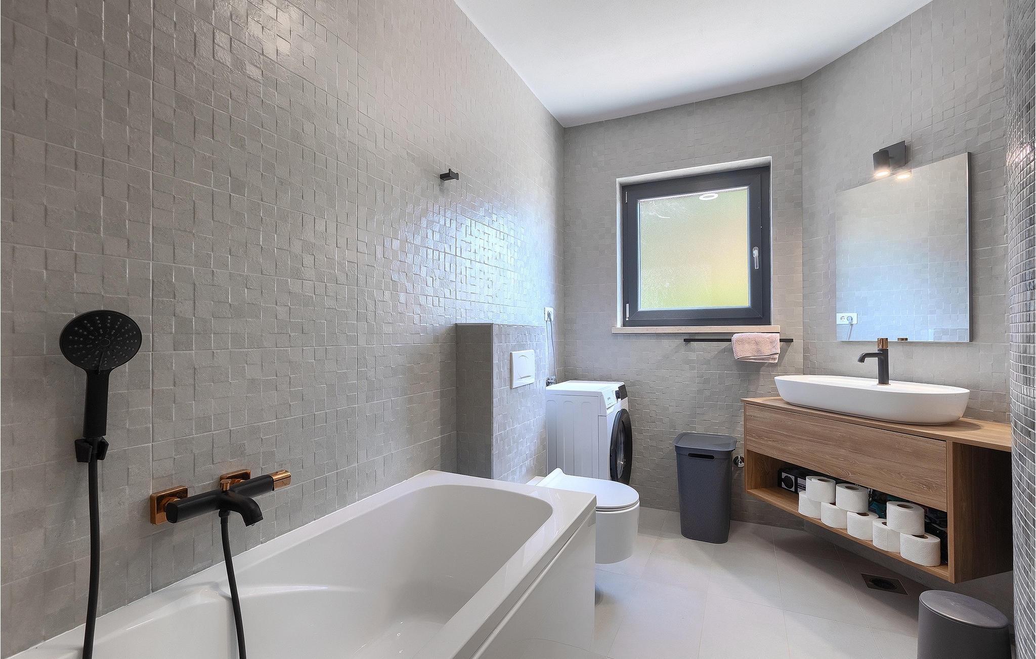 Den vakre familievillaen La Fierra med plass til 14 personer i det sentrale Istria er det perfekte valget for en drømmeferie med familie og venner. Villaens hage har et svømmebasseng med solsenger, ideelt for å slappe av og forfriske hele familien i sommervarmen. På varme sommerdager kan du flykte ut på den overbygde terrassen og nyte en forfriskende drink. Eiendommen har en kullgrill for tilberedning av regionale delikatesser og et utekjøkken med et spisebord for 14 personer, perfekt for kvalitetstid med familien. Villaen er et hus i to plan, noe som betyr at hver etasje har et øvre og et nedre plan, noe som skaper et mer dynamisk boareal. I første etasje i øverste etasje ligger det første soverommet med eget bad, samt en stue, et fullt utstyrt kjøkken og en spisestue. I underetasjen i første etasje er det et andre soverom med eget bad. I første etasje av villaen er det 5 soverom med eget bad. To av soverommene, ett i første etasje og ett i andre etasje, har egen inngang fra utsiden. Alle soverommene er utstyrt med dobbeltsenger, TV og klimaanlegg og gir den nødvendige fred og ro. Ikke gå glipp av en ferie i hjertet av Istria i familievillaen La Fierra. Svetvincenat er en renessanseby med et rikt gastronomisk og turisttilbud og mange lokale arrangementer som finner sted i de historiske severdighetene i denne byen. De mest kjente arrangementene er ostefestivalen, middelalderfestivalen og dansefestivalen, der du vil bli fortryllet av den gjestfrie lokalbefolkningen og lære om de ulike tradisjonene i denne regionen. Ikke gå glipp av å smake på tradisjonell istrisk mat på lokale restauranter bare 50 meter fra villaen. Svetvincenat vil glede deg med sitt renessansetorg Placa med Morosini-Grimani slott, byens landemerke. En viktig del av Svetvincenats kulturarv er de bevarte restene av veggmalerier i Sankt Vincents kirke nær byens kirkegård og i Sankt Katarinas kirke. Oppdag naturskjønnheten i det sentrale Istria på de mange sykkel- og turstiene. Brijuni nasjonalpark og Ucka naturpark er uunngåelige reisemål for naturelskere. Den ideelle beliggenheten i hjertet av Istria inviterer deg til dagsturer i hele Istria. Besøk de viktigste turistsentrene i Istria: Rovinj, Porec, Labin, Pula.