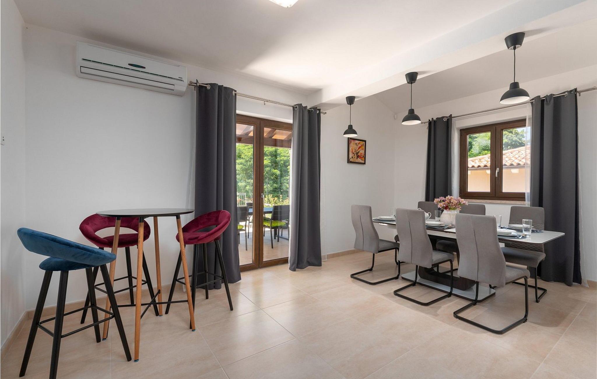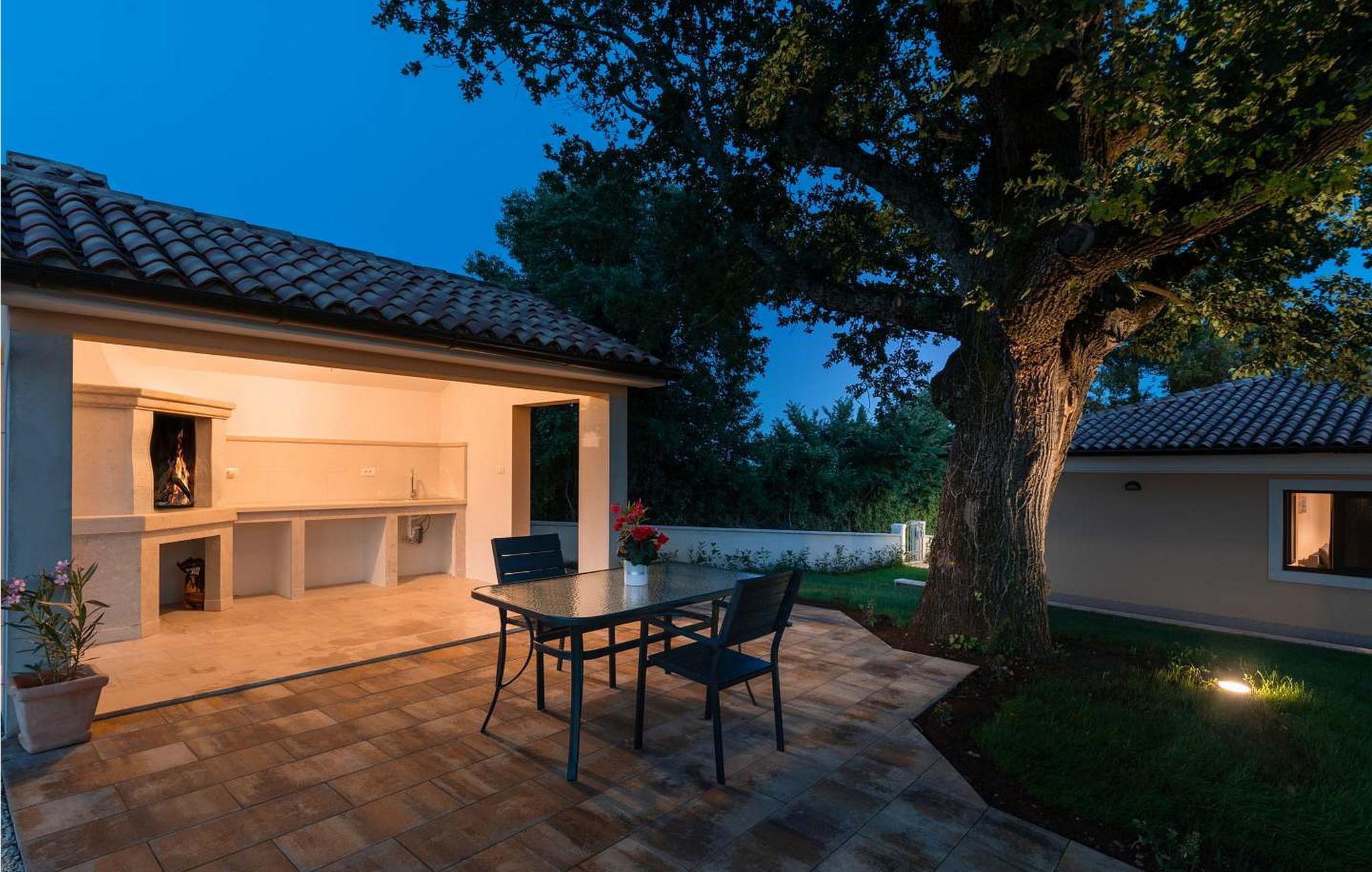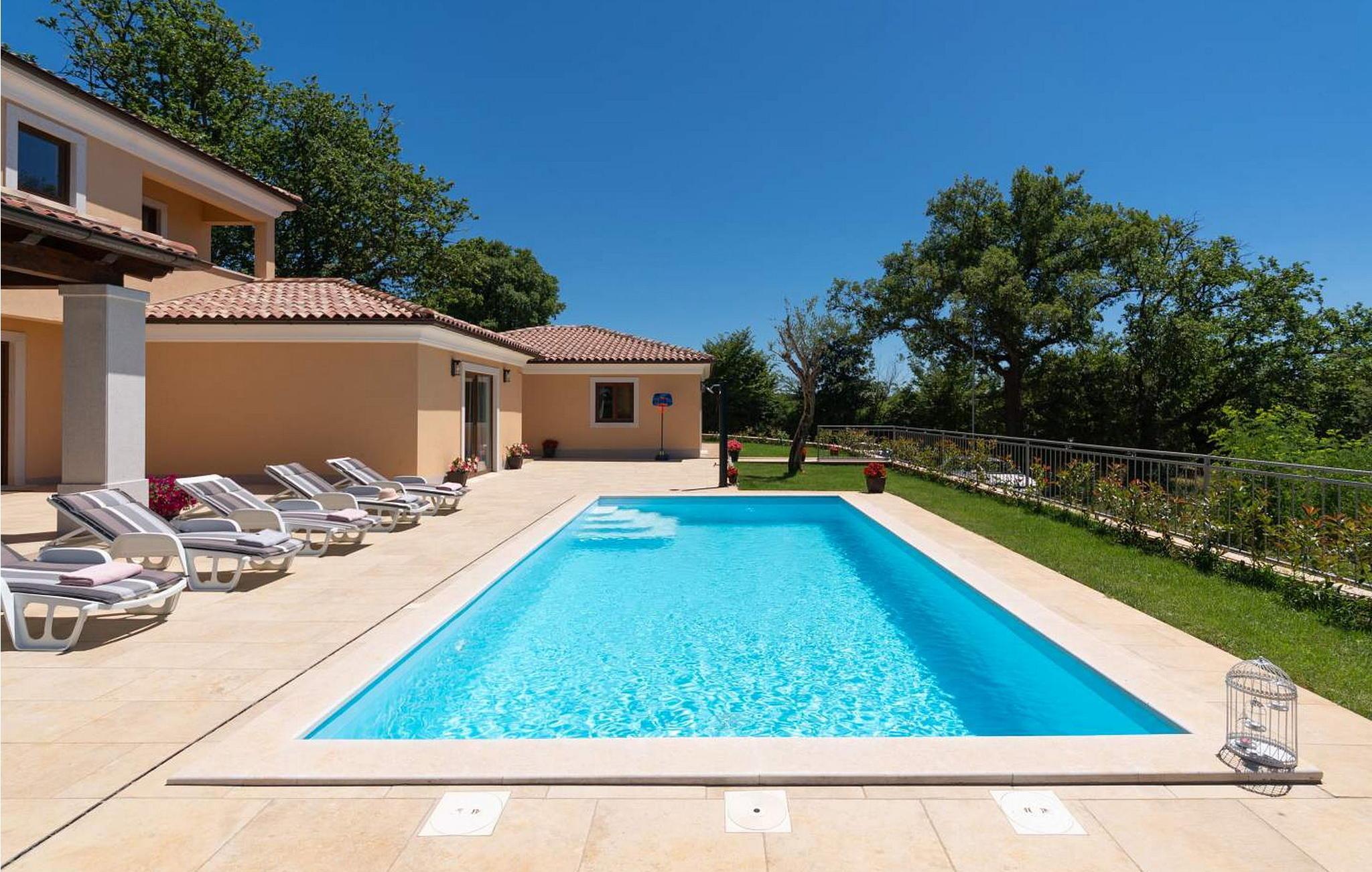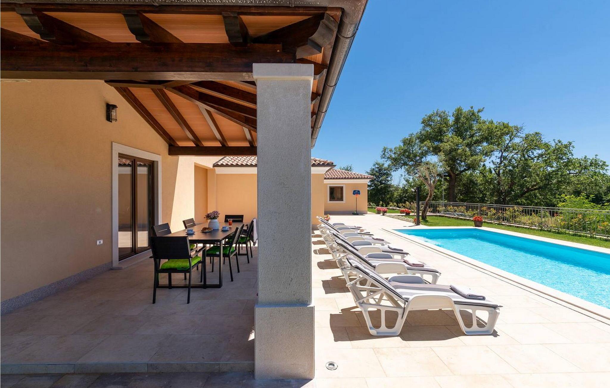 Velkommen til Villa Re, en nybygd oase i det sentrale Istria, bare en kort kjøretur fra den fortryllende byen Rovinj. Villaen ligger på en romslig, inngjerdet tomt på 800 kvadratmeter, og har en velstelt plen, et glitrende basseng for forfriskende dukkerter og en overbygd terrasse hvor du kan nyte måltidene dine ved spisebordet. Sommerkjøkkenet er perfekt for å tilberede deilige festmåltider, og det er to parkeringsplasser til din disposisjon. I den sjarmerende landsbyen Svetvincenat finner du kafeer, en pizzeria og et supermarked for dine daglige behov, mens den nærmeste stranden ligger bare 17 km unna. Rovinj, med sin pittoreske gamleby og fantastiske utsikt over kysten, er et must å se under oppholdet. Villa Re er det ideelle tilfluktsstedet for en uforglemmelig og avslappende ferie.