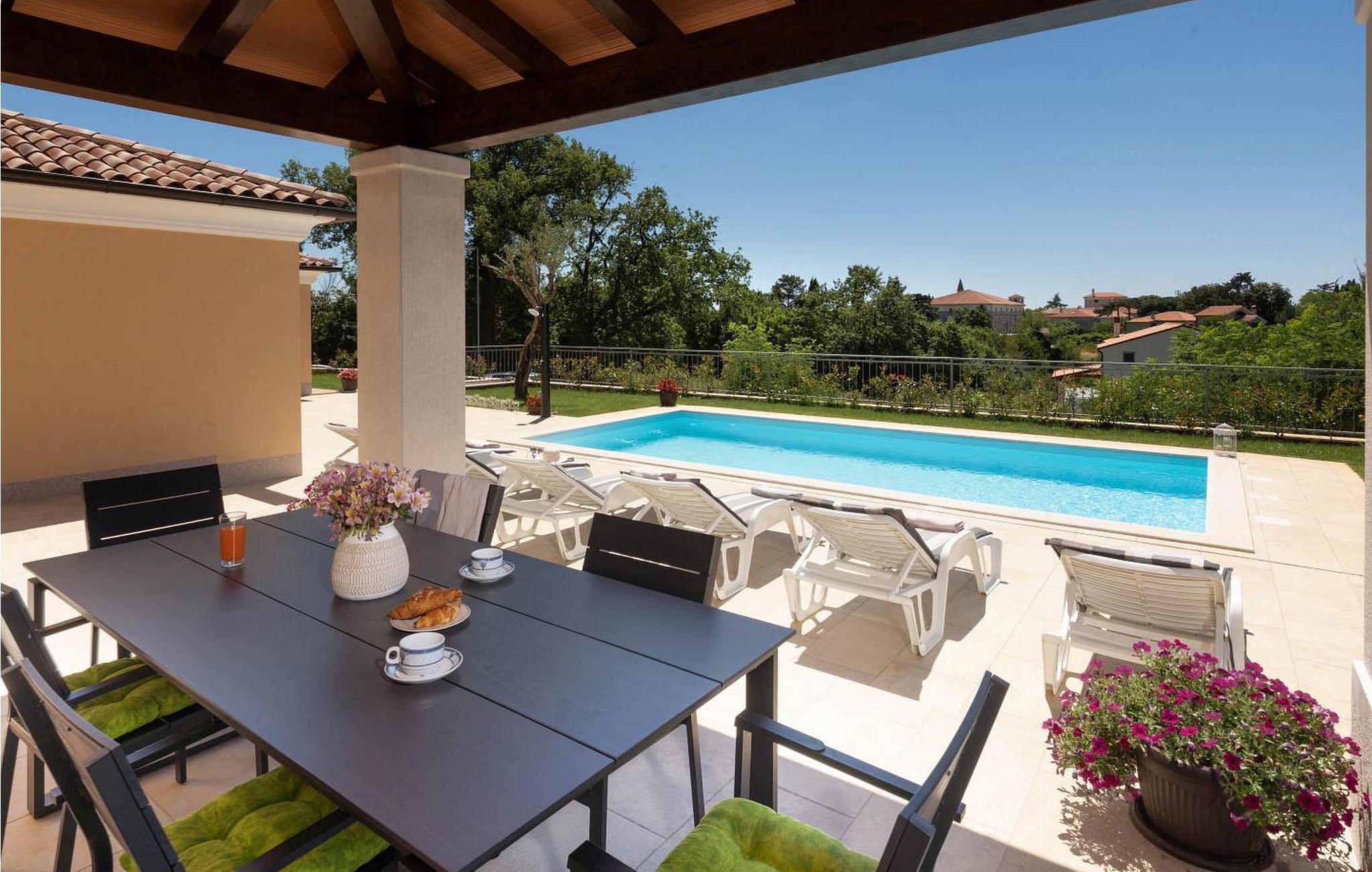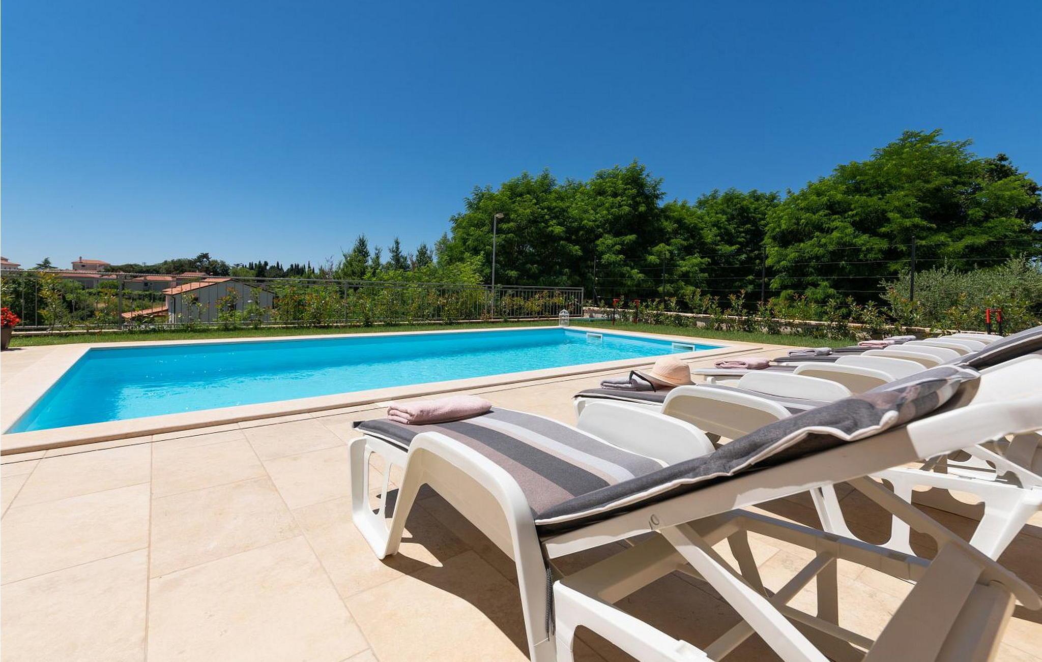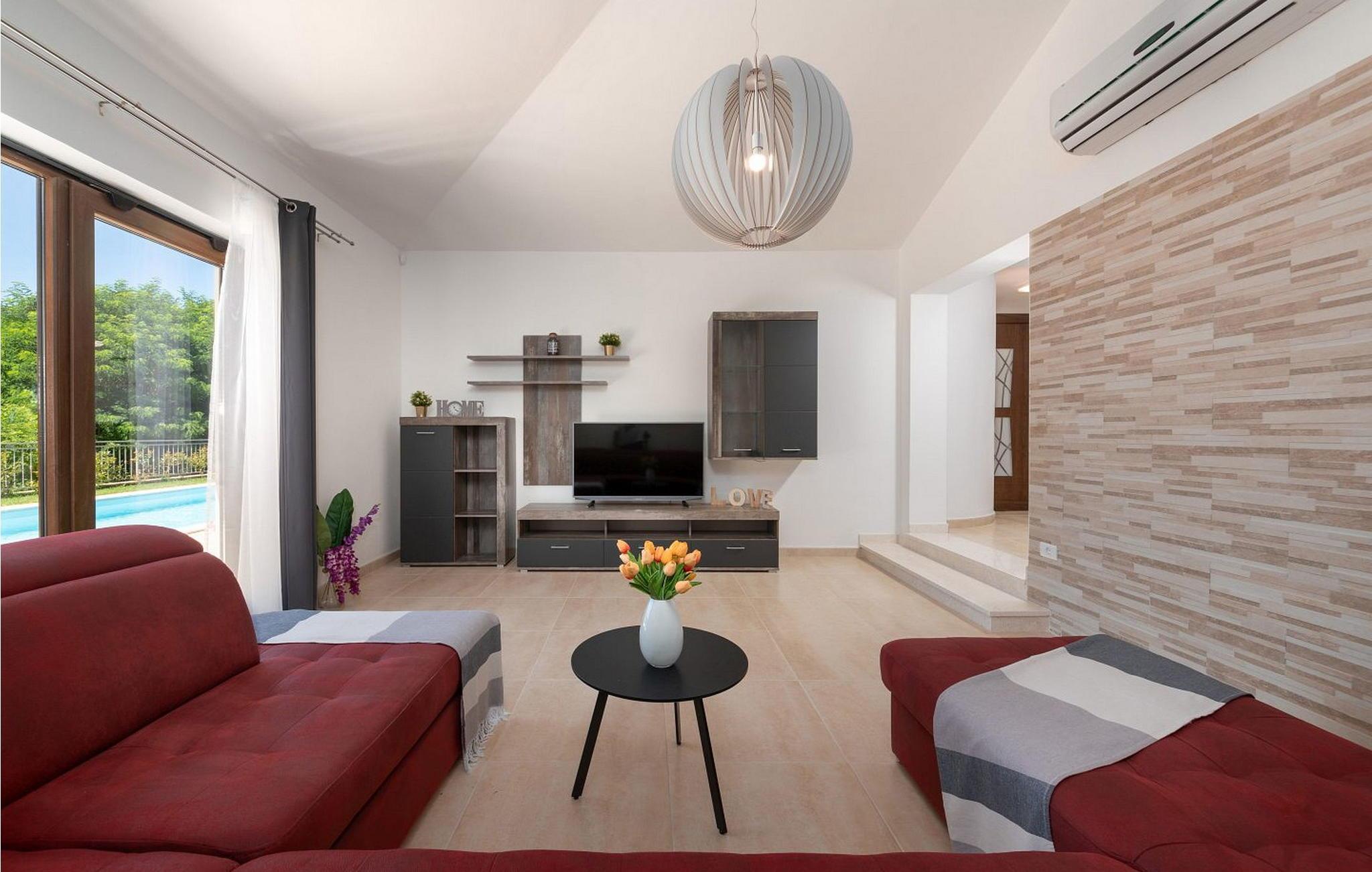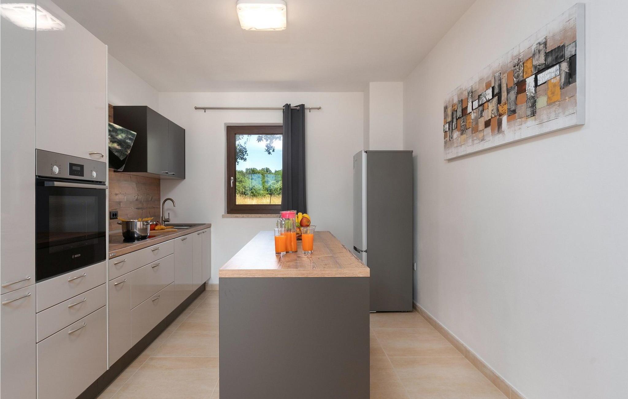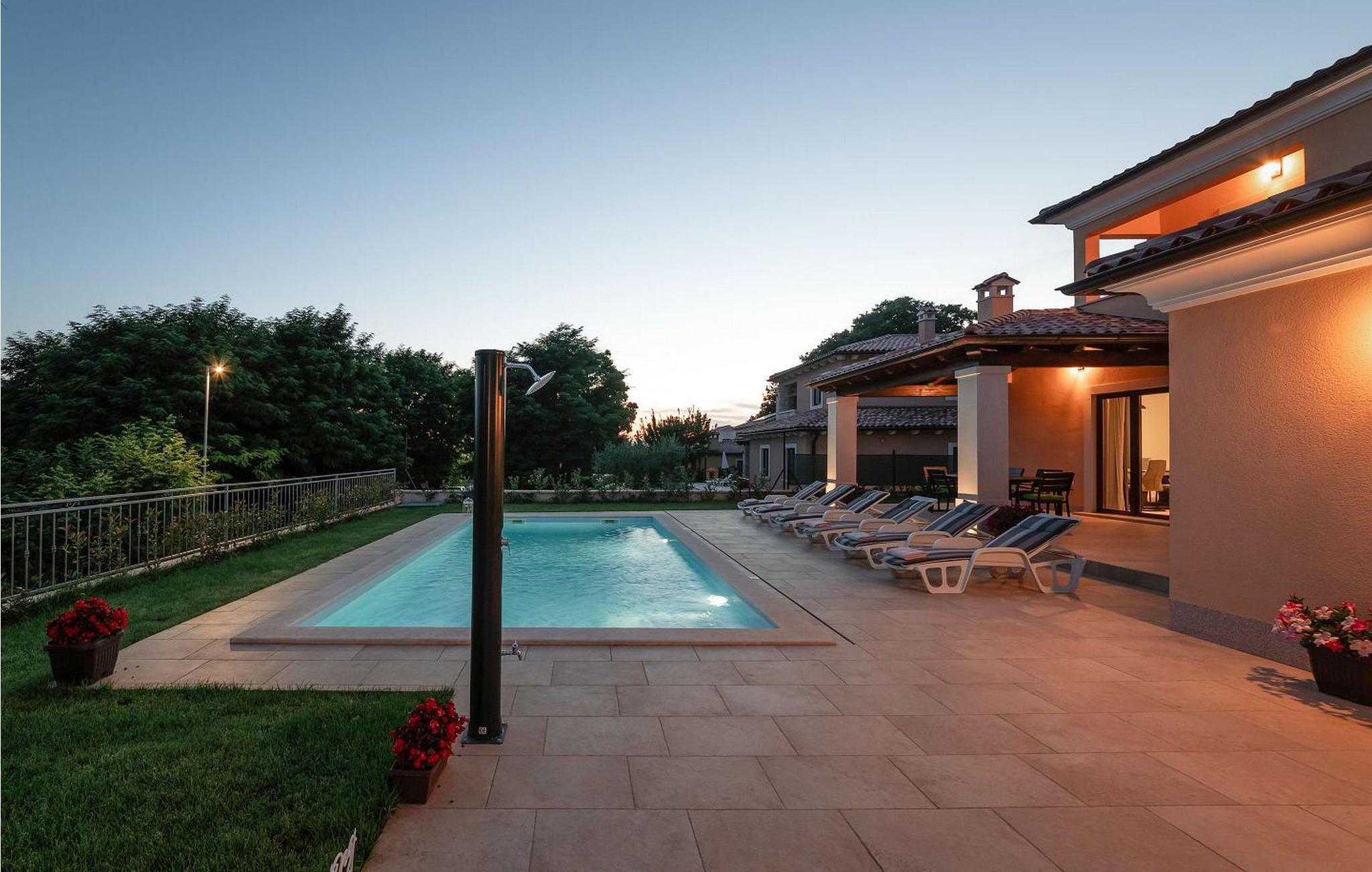 Velkommen til Villa Re, en nybygd oase i det sentrale Istria, bare en kort kjøretur fra den fortryllende byen Rovinj. Villaen ligger på en romslig, inngjerdet tomt på 800 kvadratmeter, og har en velstelt plen, et glitrende basseng for forfriskende dukkerter og en overbygd terrasse hvor du kan nyte måltidene dine ved spisebordet. Sommerkjøkkenet er perfekt for å tilberede deilige festmåltider, og det er to parkeringsplasser til din disposisjon. I den sjarmerende landsbyen Svetvincenat finner du kafeer, en pizzeria og et supermarked for dine daglige behov, mens den nærmeste stranden ligger bare 17 km unna. Rovinj, med sin pittoreske gamleby og fantastiske utsikt over kysten, er et must å se under oppholdet. Villa Re er det ideelle tilfluktsstedet for en uforglemmelig og avslappende ferie.