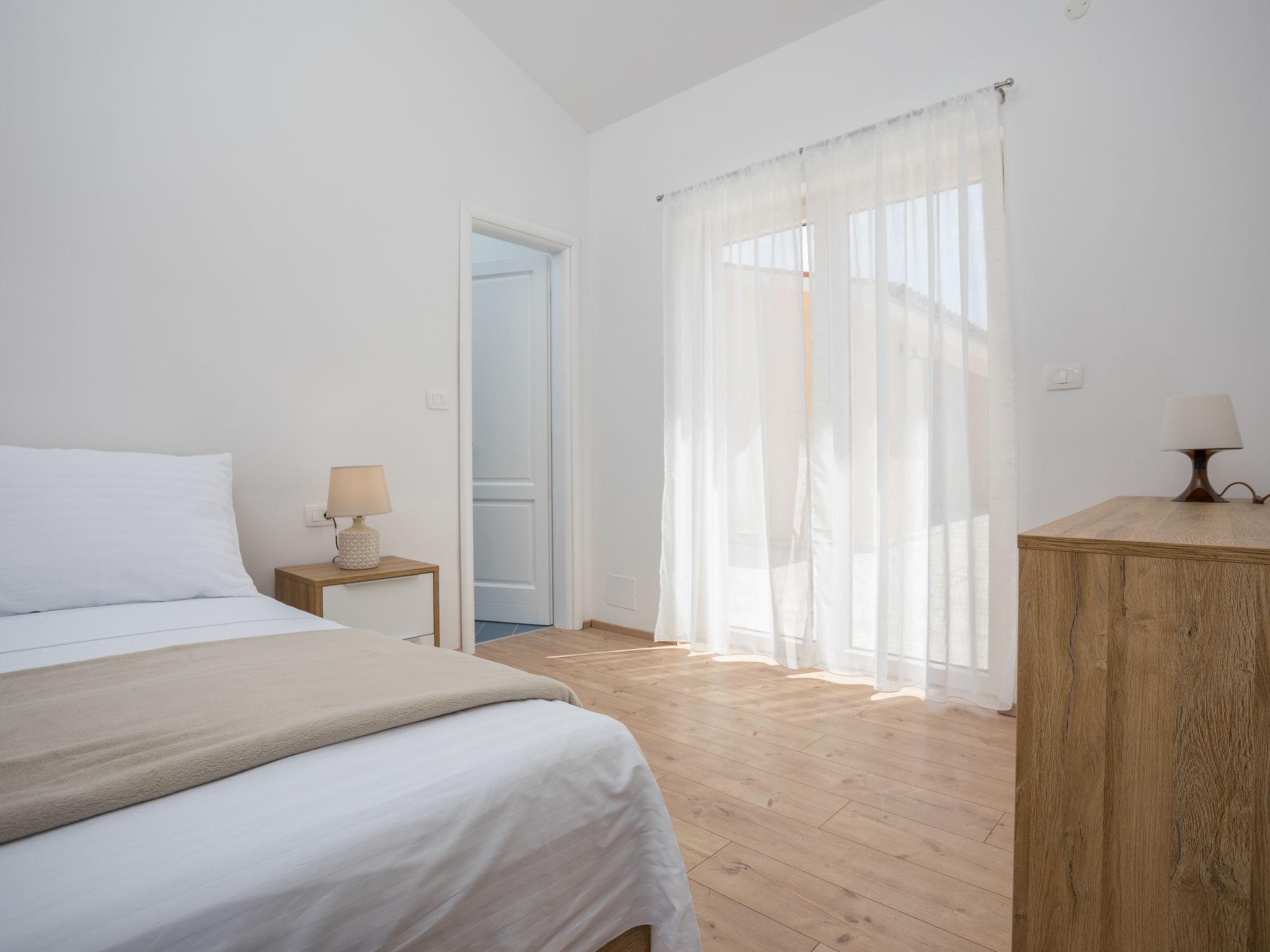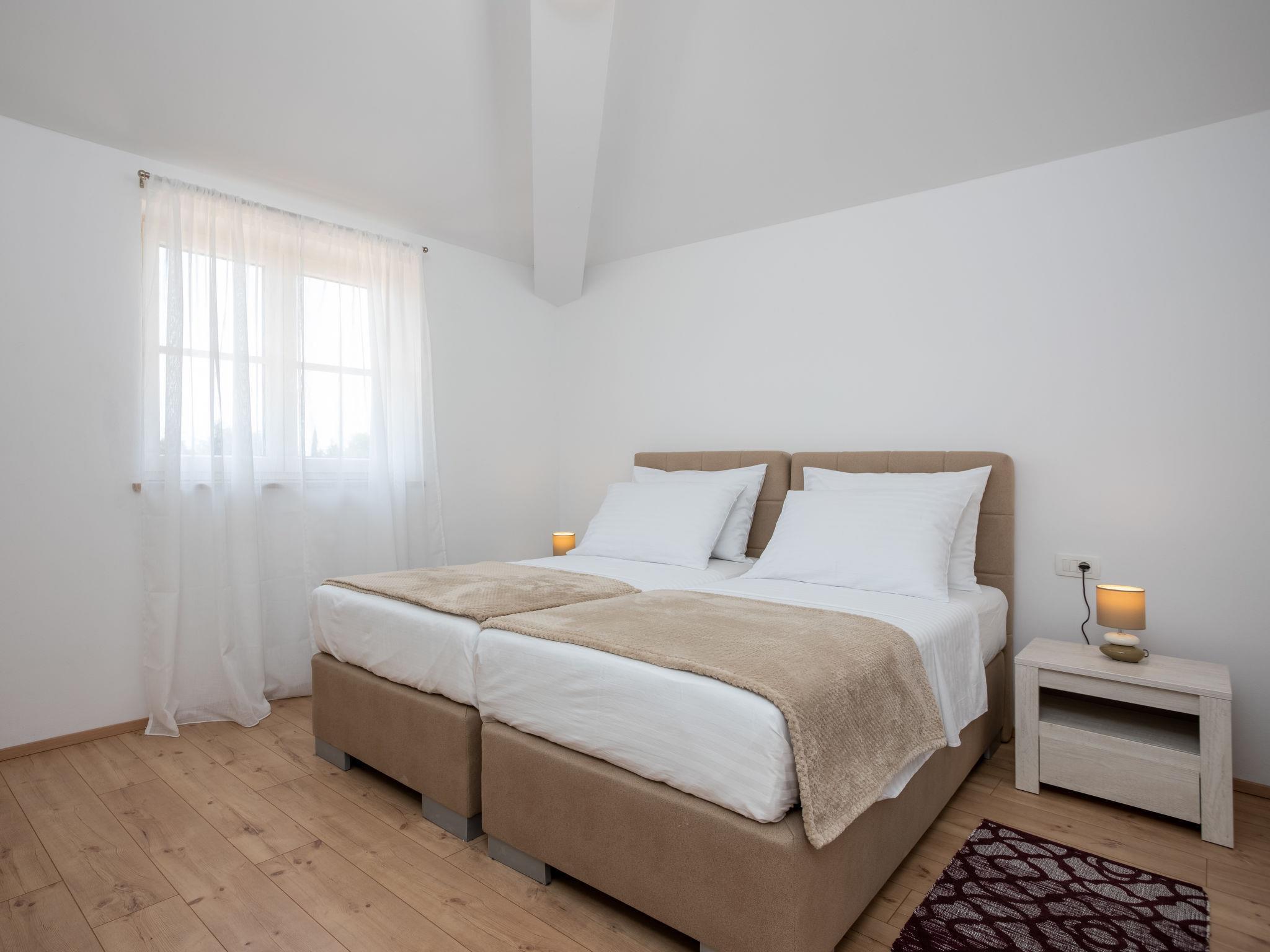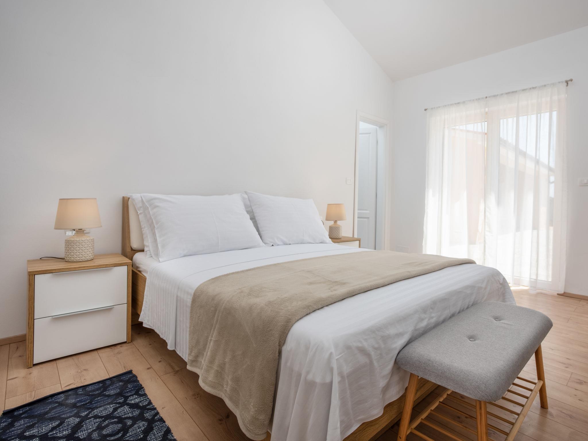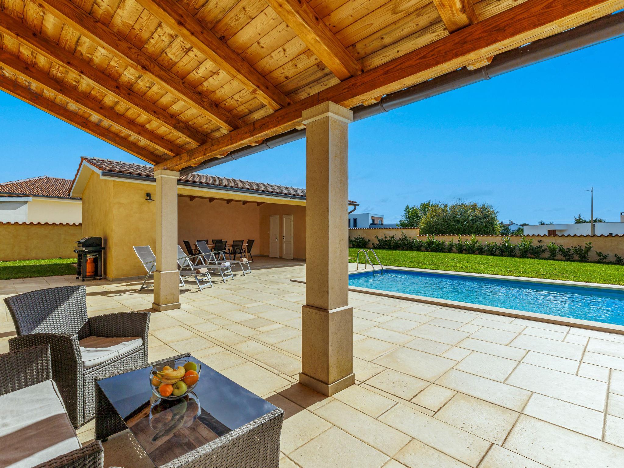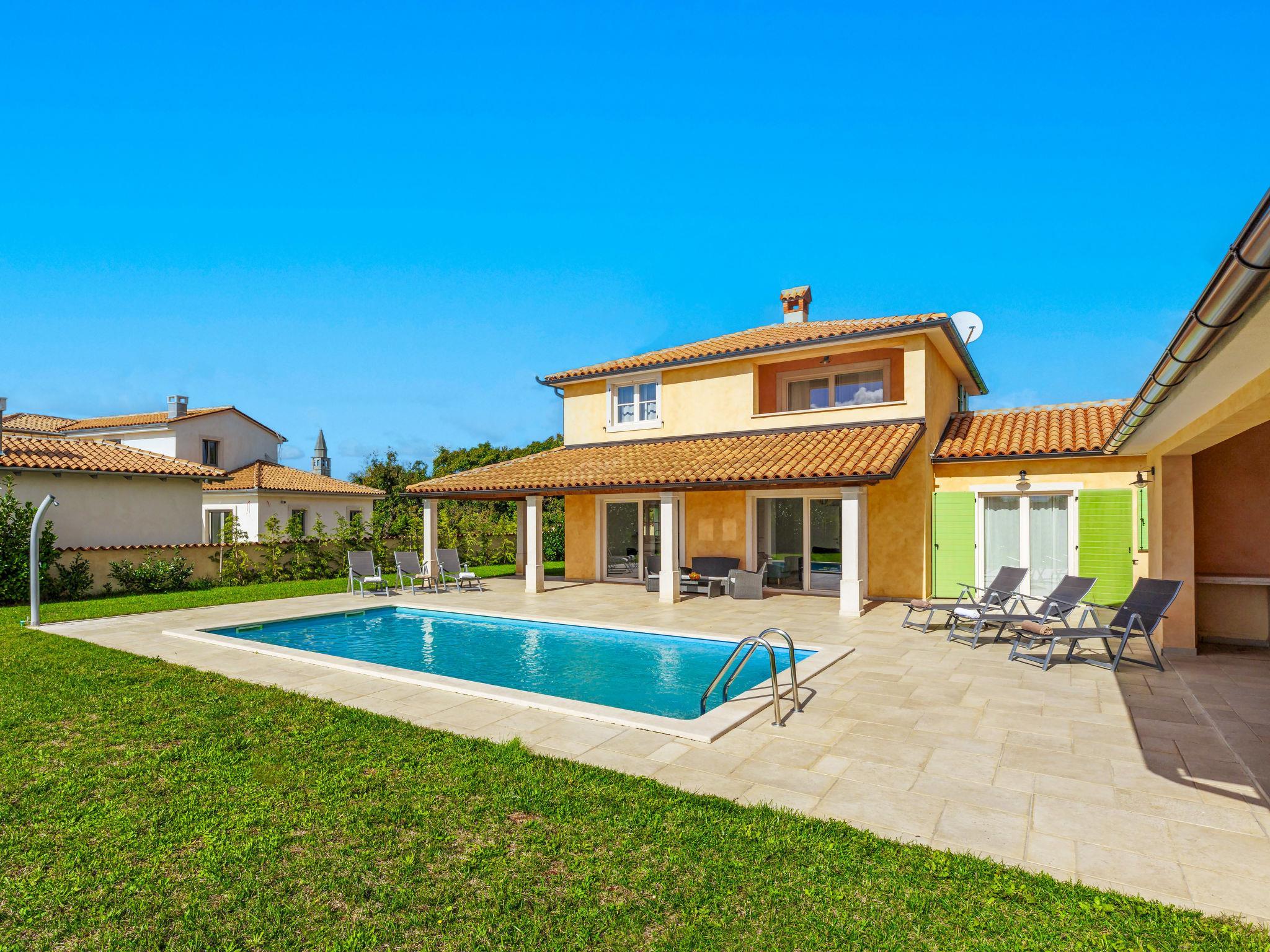 Villa "Flori", 2 storeys, built in 2019. 300 m from the centre of Svetvincenat, in a quiet, sunny position, 20 km from the sea. Private: property 1'080 m2 (fenced), garden with lawn and wildlife garden, swimming pool angular (8 x 4 m, 36 m2, depth 150 cm, seasonal availability: 01.May. - 30.Sep.). WC in the pool area, outdoor shower, terrace (35 m2), garden furniture, barbecue. In the house: internet access, washing machine. Motor access to the house (100 m via unmade road). Parking (for 4 cars) at the house on the premises. Shop, supermarket, restaurant 300 m, bus stop 1.1 km, pebble beach 20 km. Riding stable 15 km, walking paths from the house 50 m, cycle lane 100 m. Nearby attractions: adventure park 13 km, amusement park 3.5 km. By groups of young people double deposit is requested on arrival.
