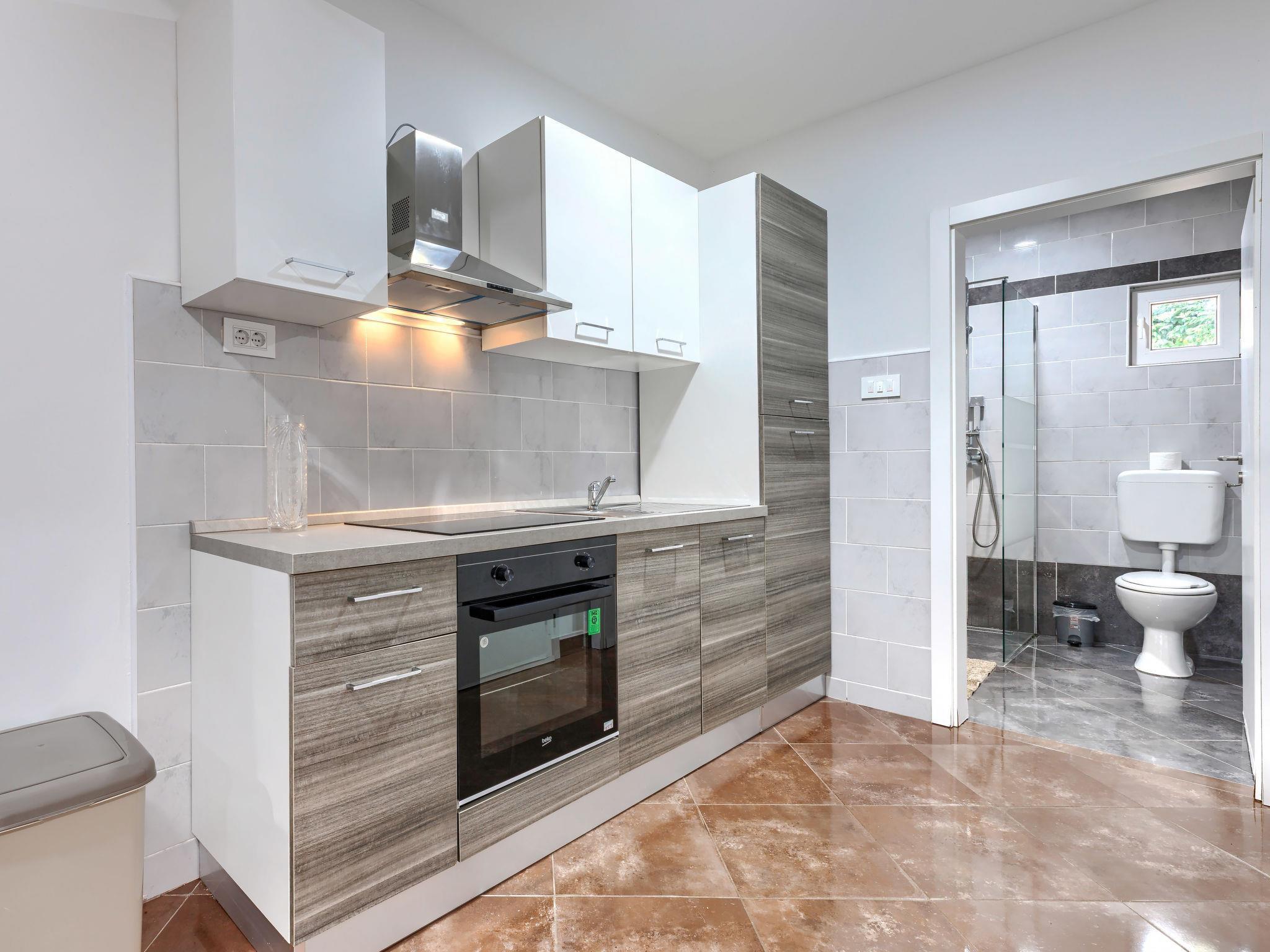 2-room semi-detached house on the ground floor. Living/dining room with satellite TV (flat screen), air conditioning. Exit to the terrace. 1 room with 1 french bed (180 cm, length 200 cm). Open kitchen (oven, 4 ceramic glass hob hotplates, freezer, electric coffee machine). Shower/WC. No heating option. Facilities: Internet (WiFi, free). Maximum 2 pets/ dogs allowed.