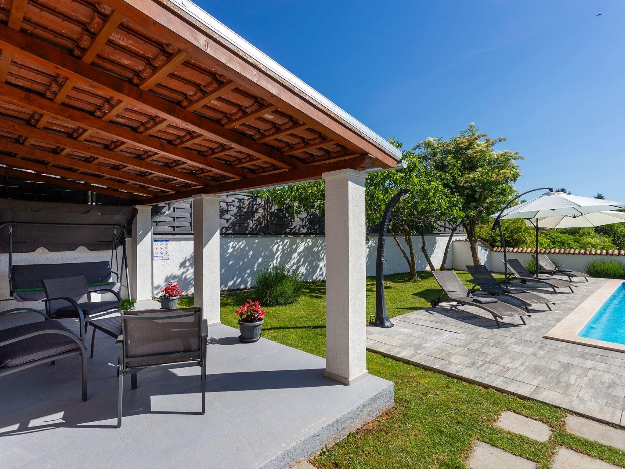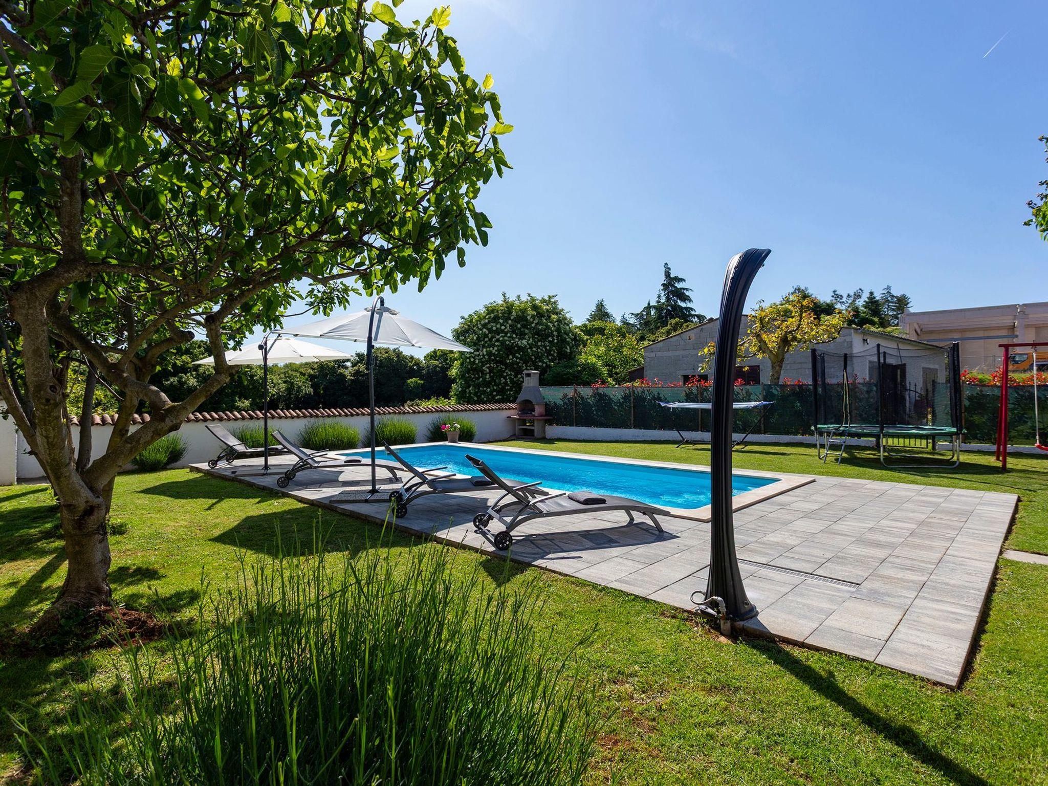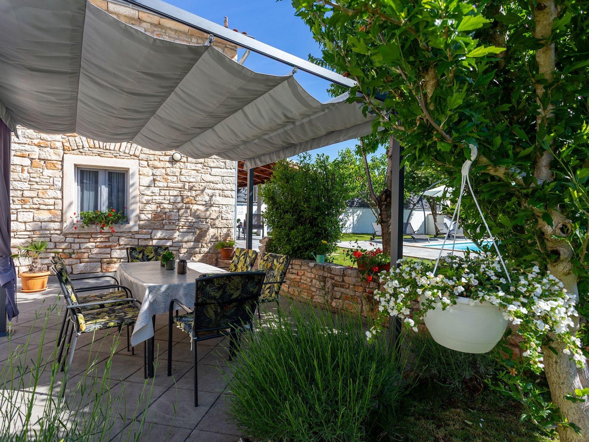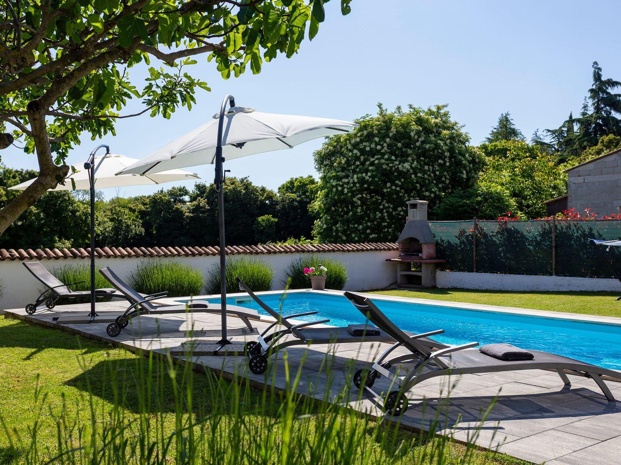 The exterior doesn't fall short of expectations, with a beautiful garden inviting guests to relax and soak in the summer days. It's equipped with a table and chairs for outdoor meals or moments of quiet contemplation. A significant highlight is the private swimming pool, spanning 26m2, perfect for a refreshing dip under the warm Istrian sun.