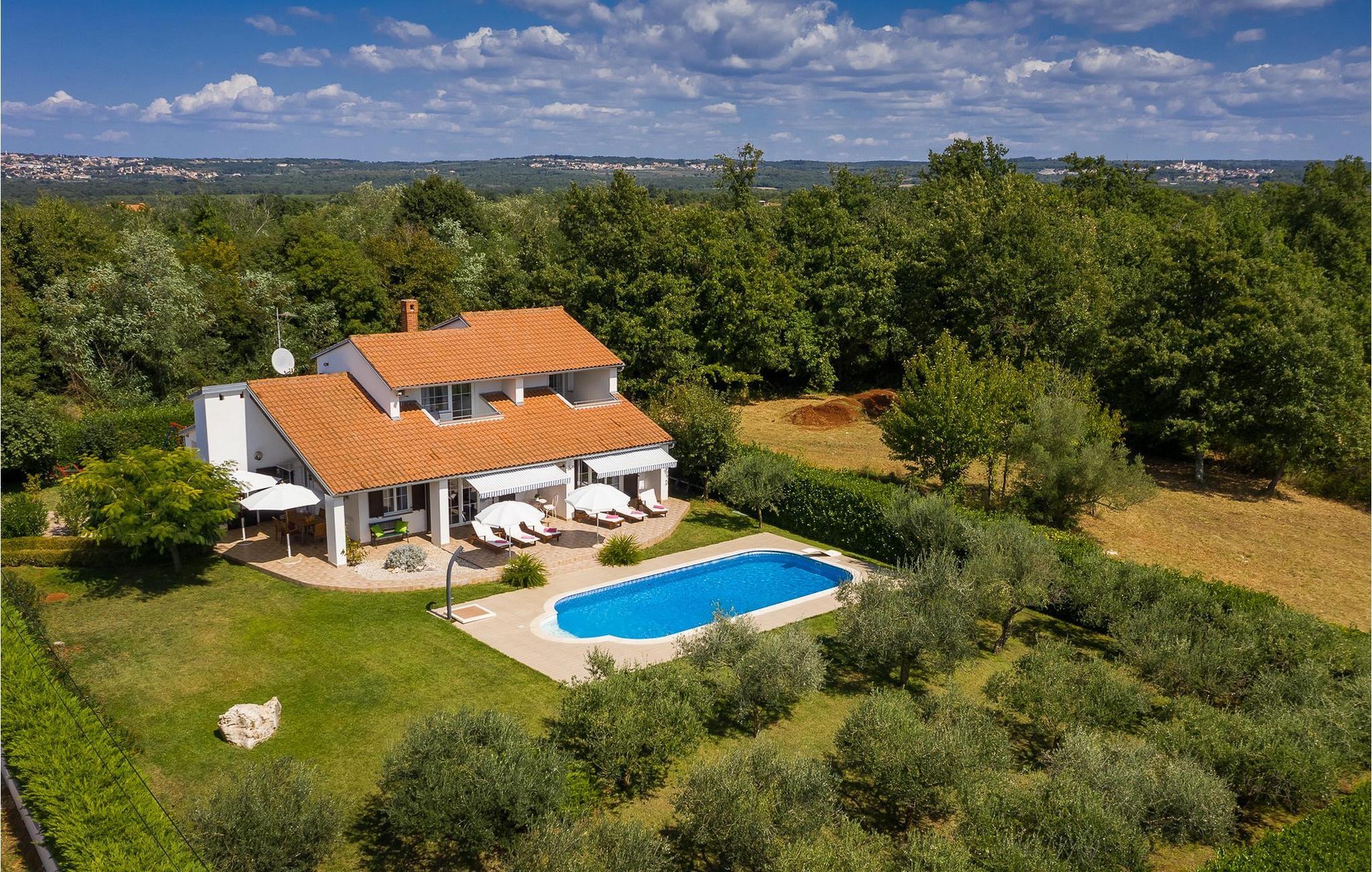Selv om villaen bare ligger 5 kilometer fra stranden, er det stor sannsynlighet for at du vil tilbringe mesteparten av ferien i villaens flotte uteområde. Her kan du prøve svømmebassenget, søke ly i skyggen av en av parasollene, ta en skive vannmelon og unne deg et glass forfriskende drikke for å kjøle deg ned på varme sommerdager. Barna kan leke på lekeplassen mens du slapper av i uteserveringen. Eventyrlystne reisende vil oppdage at de fire syklene som er tilgjengelige i villaen er den beste måten å utforske området rundt villaen, som ligger i en liten landsby i nærheten av turistbyen Porec. Beliggenheten nær sjøen vil glede alle strandgjester, for den vakre Spadici-stranden og det berømte turiststedet Zelena Laguna i Porec ligger bare en kort kjøretur unna villaen. Porec byr på en rekke stein- og rullesteinstrender, og det vakre, turkise Adriaterhavet vil ta pusten fra deg! Hvis du er mer interessert i historie og kultur, kan du ta en spasertur gjennom det historiske sentrum og besøke Eufrasius-basilikaen, som står på UNESCOs verdensarvliste. Istria er også kjent for sine gode transportforbindelser, slik at du raskt kommer deg til andre populære turistmål som Novigrad, Umag eller Pula med bil. For de som ønsker en aktiv ferie, ligger den vakre grussykkelveien Parenzana like i nærheten. Stien går langs en tidligere jernbane fra Porec til Trieste og er den beste måten å bli kjent med Istria på to hjul!