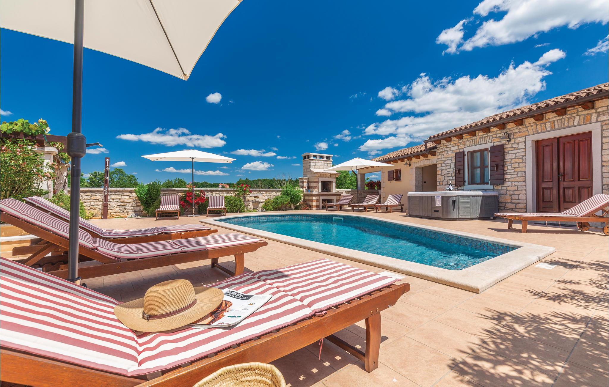 Tilbring ferien i innlandet i Istria, hvor naturen er spesielt vakker og folk er veldig vennlige. Dette feriehuset ligger på en 400 m2 inngjerdet og velholdt tomt. Huset ble bygget i 1870 og har nylig blitt fullstendig renovert, og har beholdt sin opprinnelige sjarm og moderne komfort. Utendørsbassenget med vannmassasje er en oase av velvære for store og små. Fellesrommet i konobaen er et ideelt møtested for å tilbringe tid sammen med deilig mat og god vin. Feriehuset ligger i sentrum av halvøya, og på bare en halv times kjøretur sørover kan du nå Pula, Istrias hemmelige hovedstad, med sine mange historiske monumenter fra romertiden, som Sergian-buen, som dateres tilbake til det 1. århundre f.Kr. og det imponerende Colosseum, hvor det fortsatt holdes store pop- og klassiske konserter i dag.