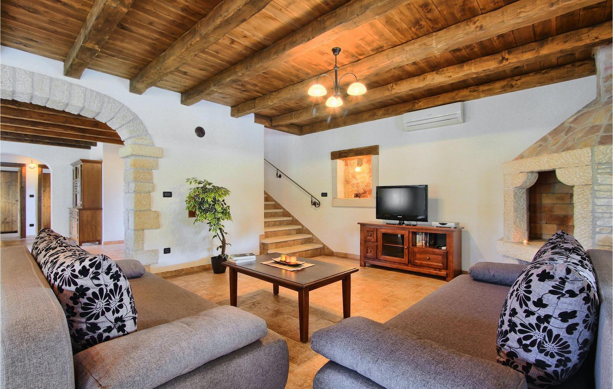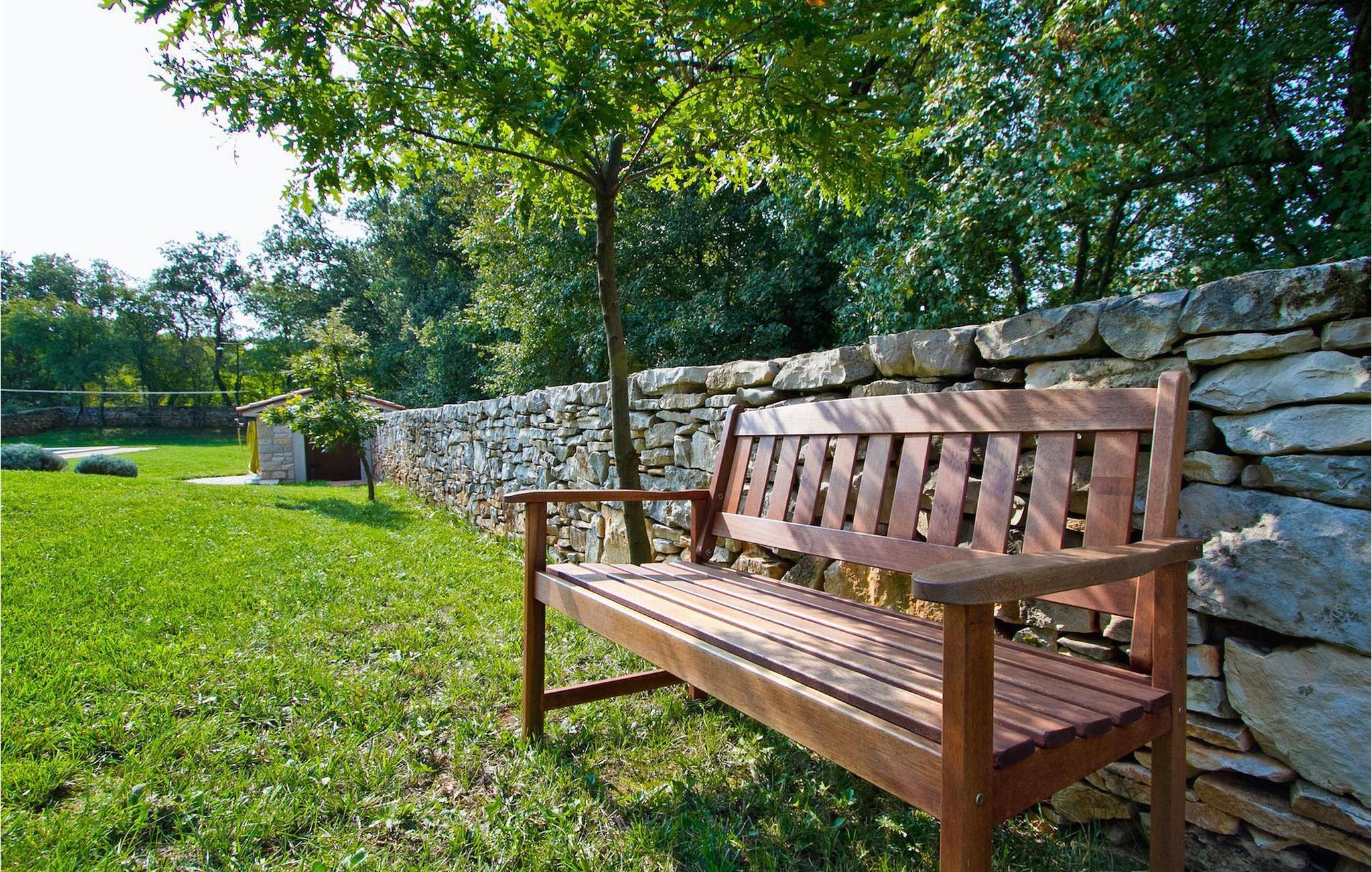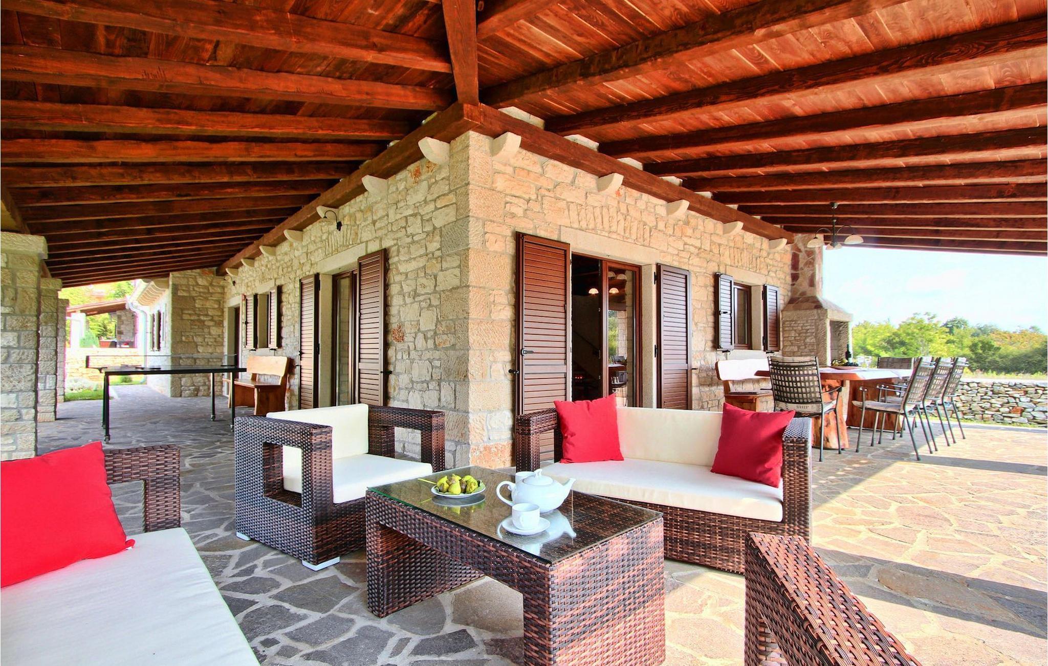 Denne koselige familievillaen ligger i utkanten av landsbyen Danijeli, i hjertet av Istria. Denne tradisjonelle steinvillaen har totalt fem soverom fordelt på to etasjer og plass til ti personer. Fra første etasje er det utgang til den overbygde terrassen, som innbyr til en kopp kaffe i den koselige salongen. Du kan grille ved den åpne peisen på terrassen og nyte måltidene utendørs. I første etasje ligger den rustikke stue- og spisestuen med peis, kjøkkenet, et bad og to doble soverom, hvorav det ene har eget bad med dusj. Ovenpå ligger de resterende tre soverommene, to med dobbeltsenger og ett med to enkeltsenger. Ett av dobbeltrommene har eget bad, mens de to andre rommene deler bad. Villaen har en privat parkeringsplass med tre parkeringsplasser.