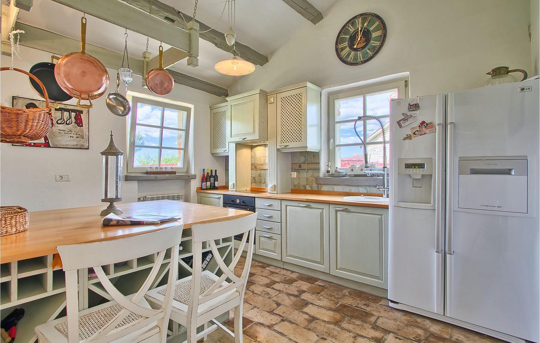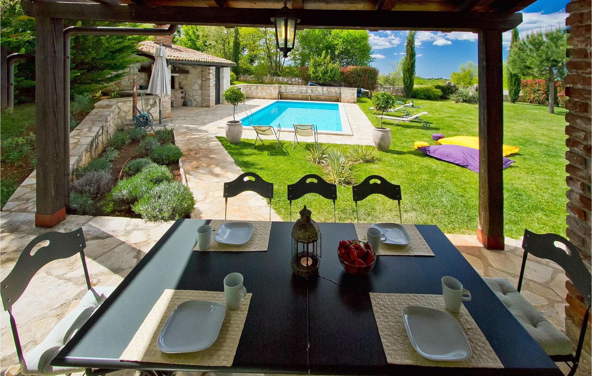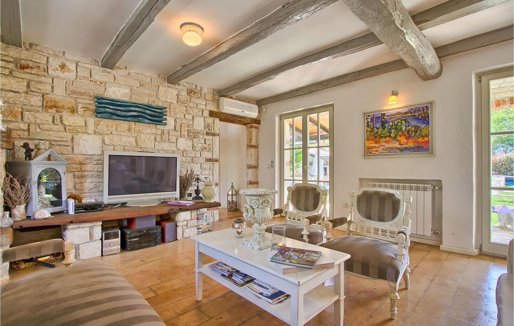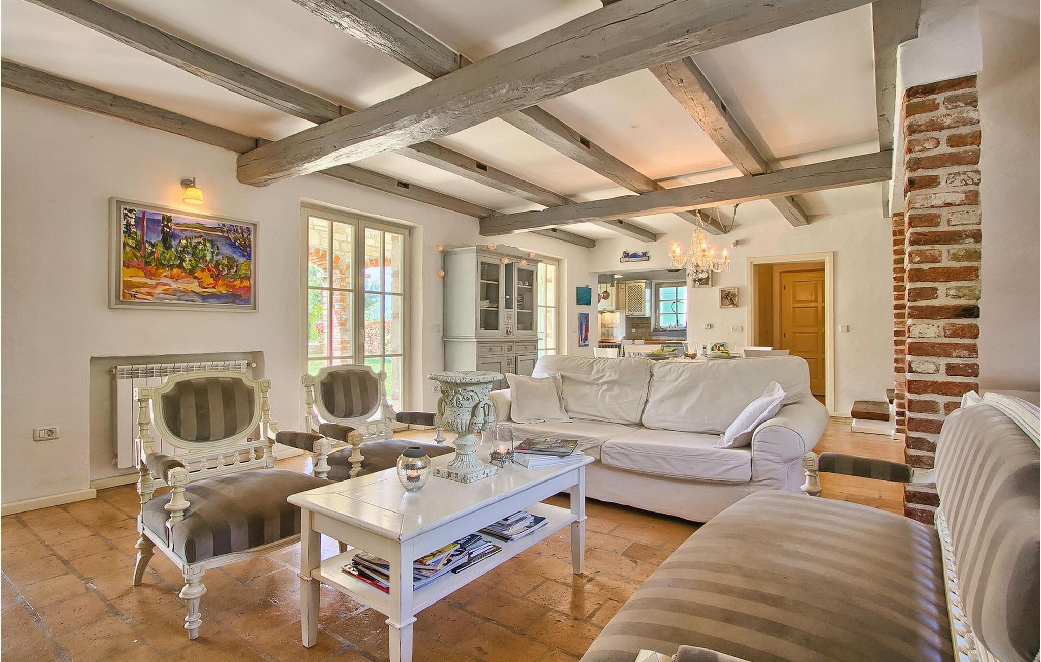 Vakkert og smakfullt innredet feriehus for drømmeferien. Feriehuset byr på luksuriøs innkvartering i 3 soverom, som er innredet med stor sans for detaljer. Overalt finner du gjenstander som passer inn i husets avslappende atmosfære. Feriehuset er velutstyrt og godt vedlikeholdt. Huset har en inngjerdet parkeringsplass for to biler. Nyt det store svømmebassenget og forfrisk deg på varme istriske sommerdager. Huset har klimaanlegg, satellitt-TV, Wi-Fi og et sikkerhetssystem for våre gjester. Feriehuset har en vakker beliggenhet i utkanten av en liten landsby i Istria. Sentrale Istria er en av de sjeldne middelhavsregionene som kjennetegnes av et uberørt naturlandskap og en rik kulturarv. Mange bukter og åser forbinder og skiller de mange fortryllende bosetningene og skaper et nesten uvirkelig landskap.