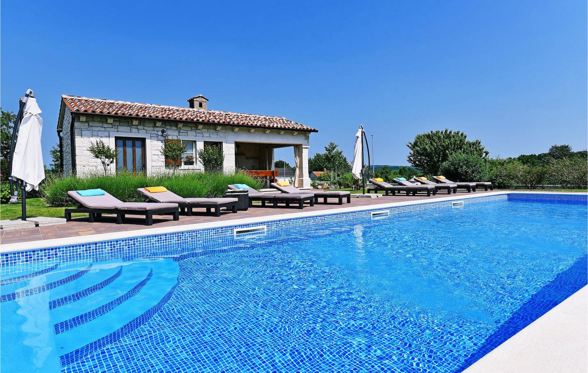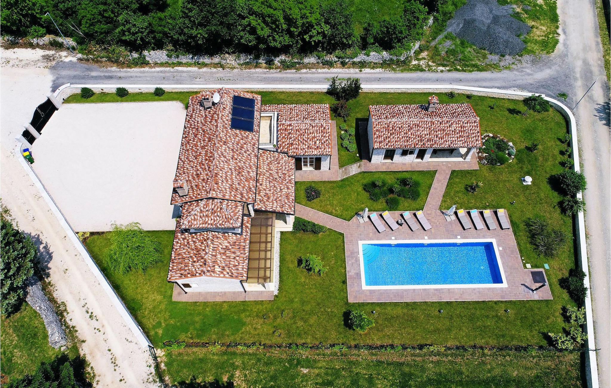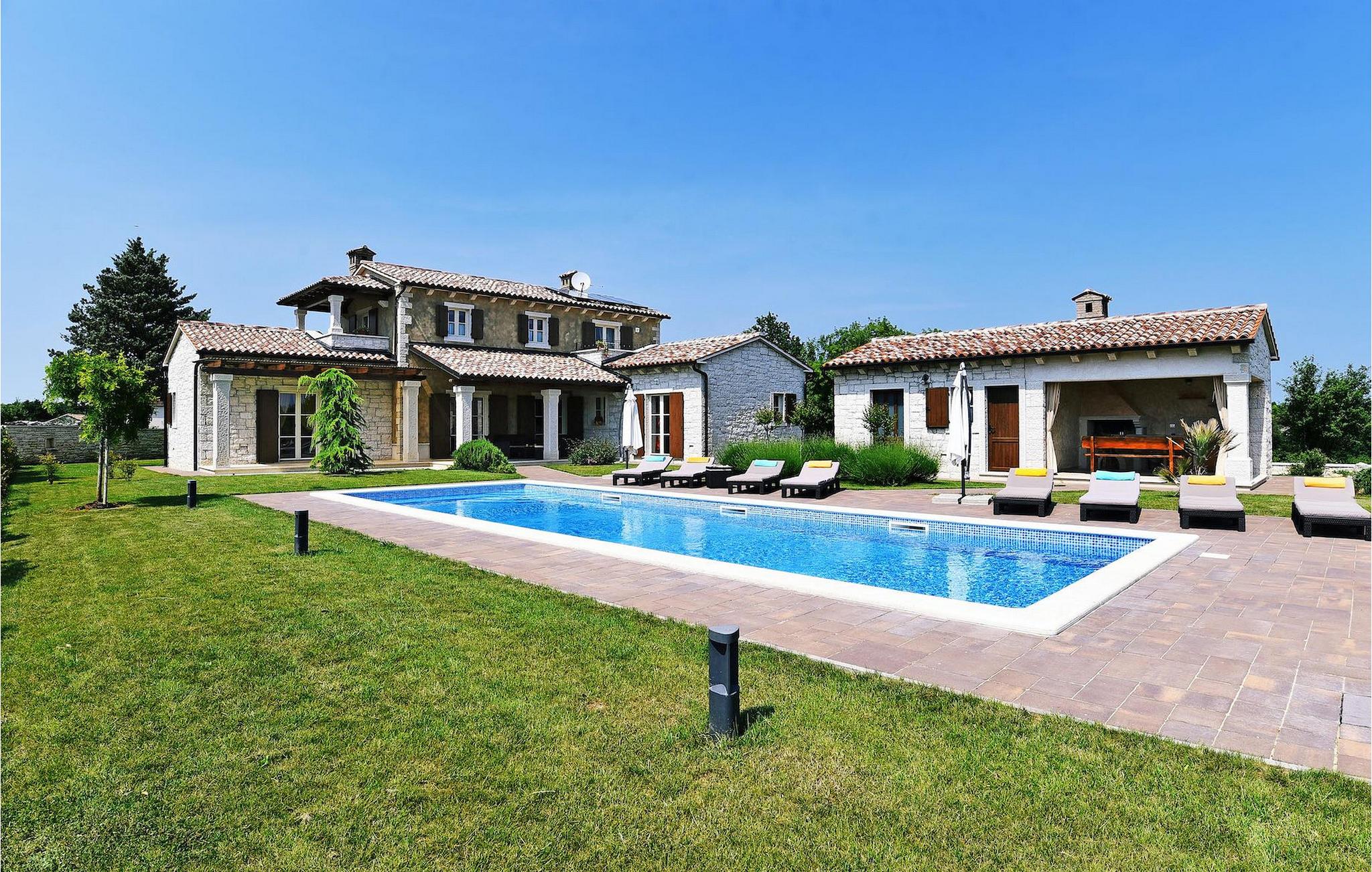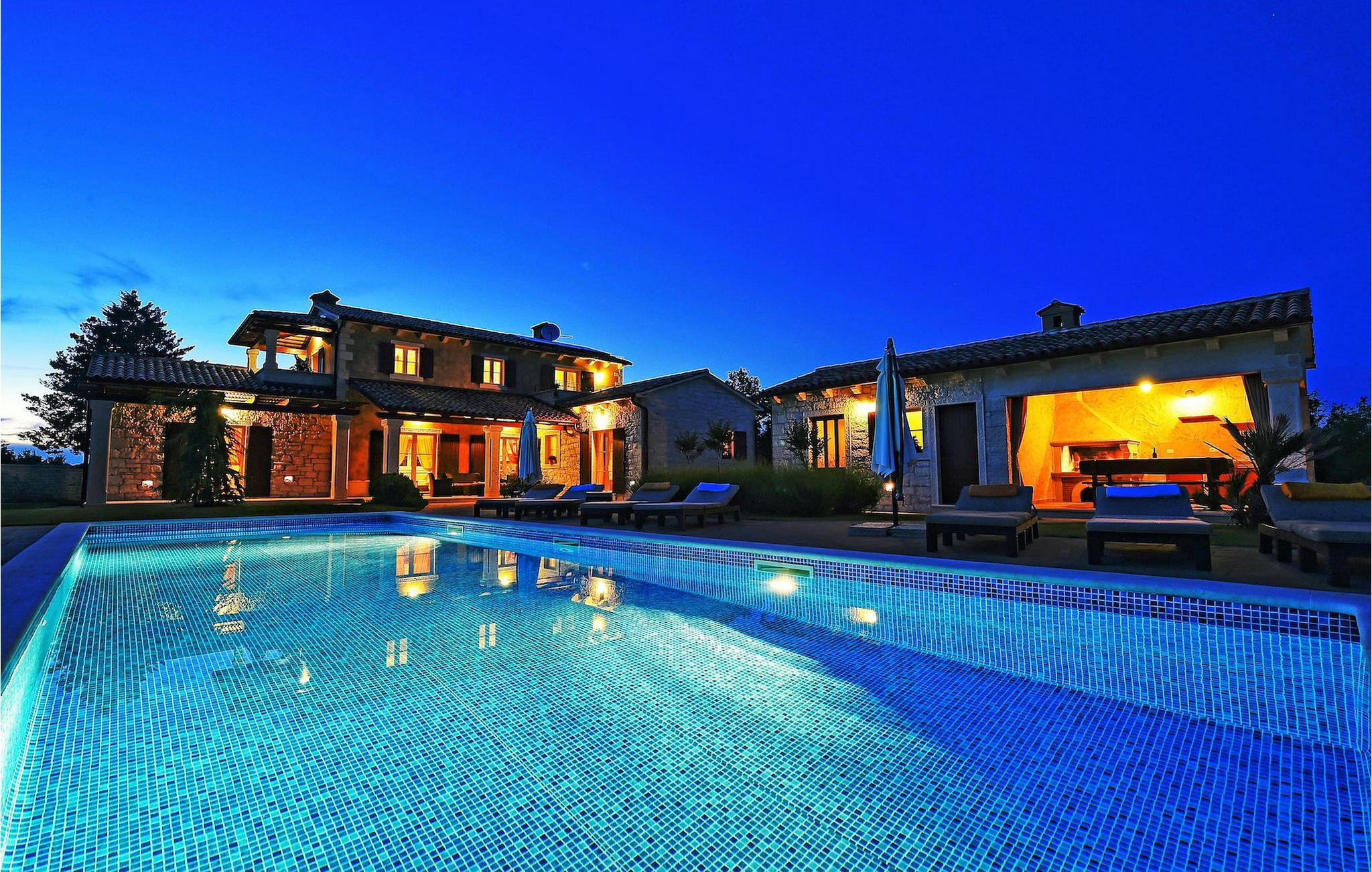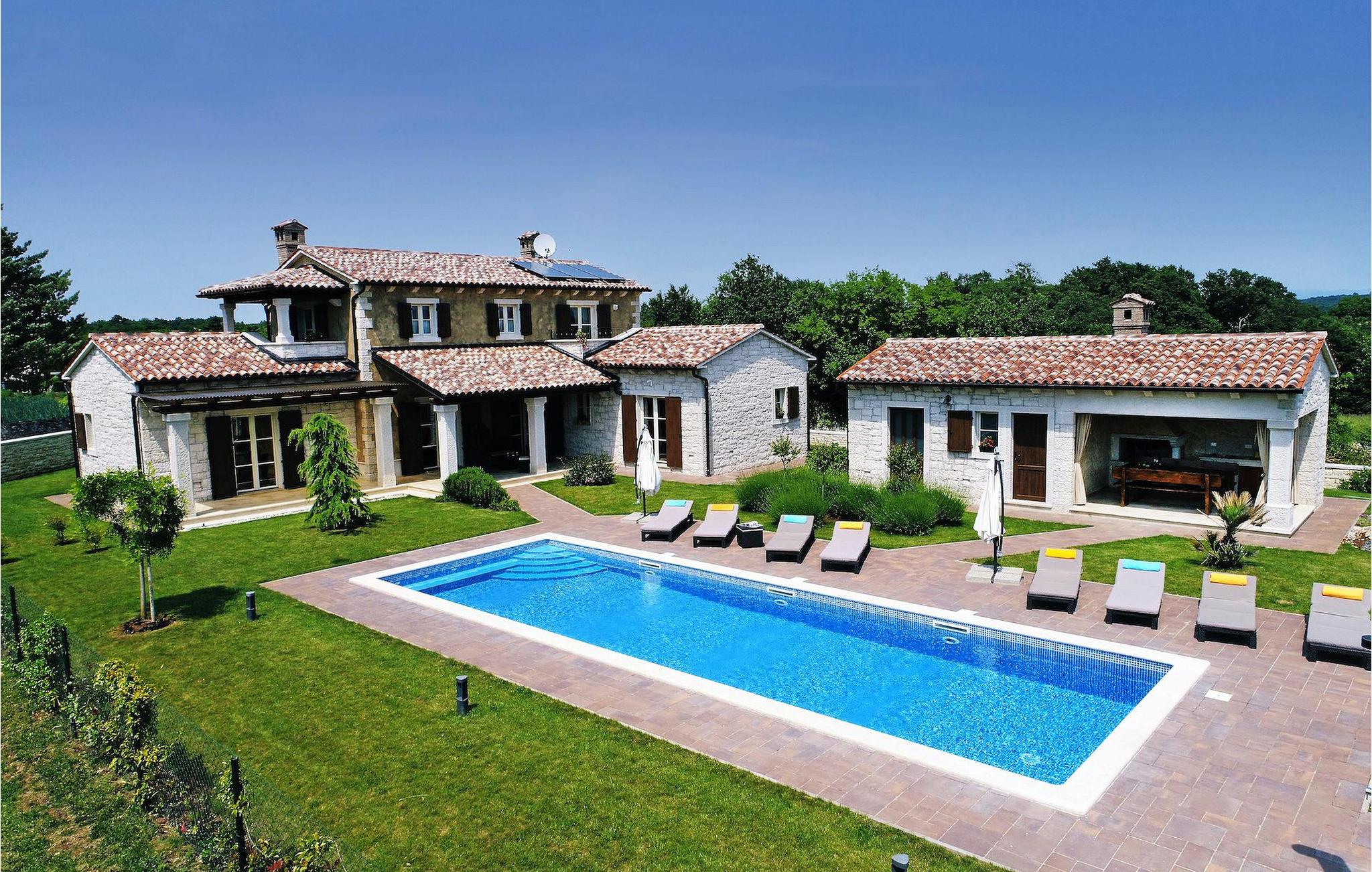 Denne nybygde villaen ligger i utkanten av en liten landsby på Istria. Her er det fred og ro, men likevel bare noen minutters kjøring fra strendene og turistsentrene. I første etasje er det en stor stue og to soverom med eget bad. Ovenpå er det ytterligere 2 soverom med eget bad. Utenfor er det et stort, privat basseng, en overbygd spiseplass, solsenger og en privat parkeringsplass. Denne villaen har klimaanlegg og er omgitt av grønne enger og skog.