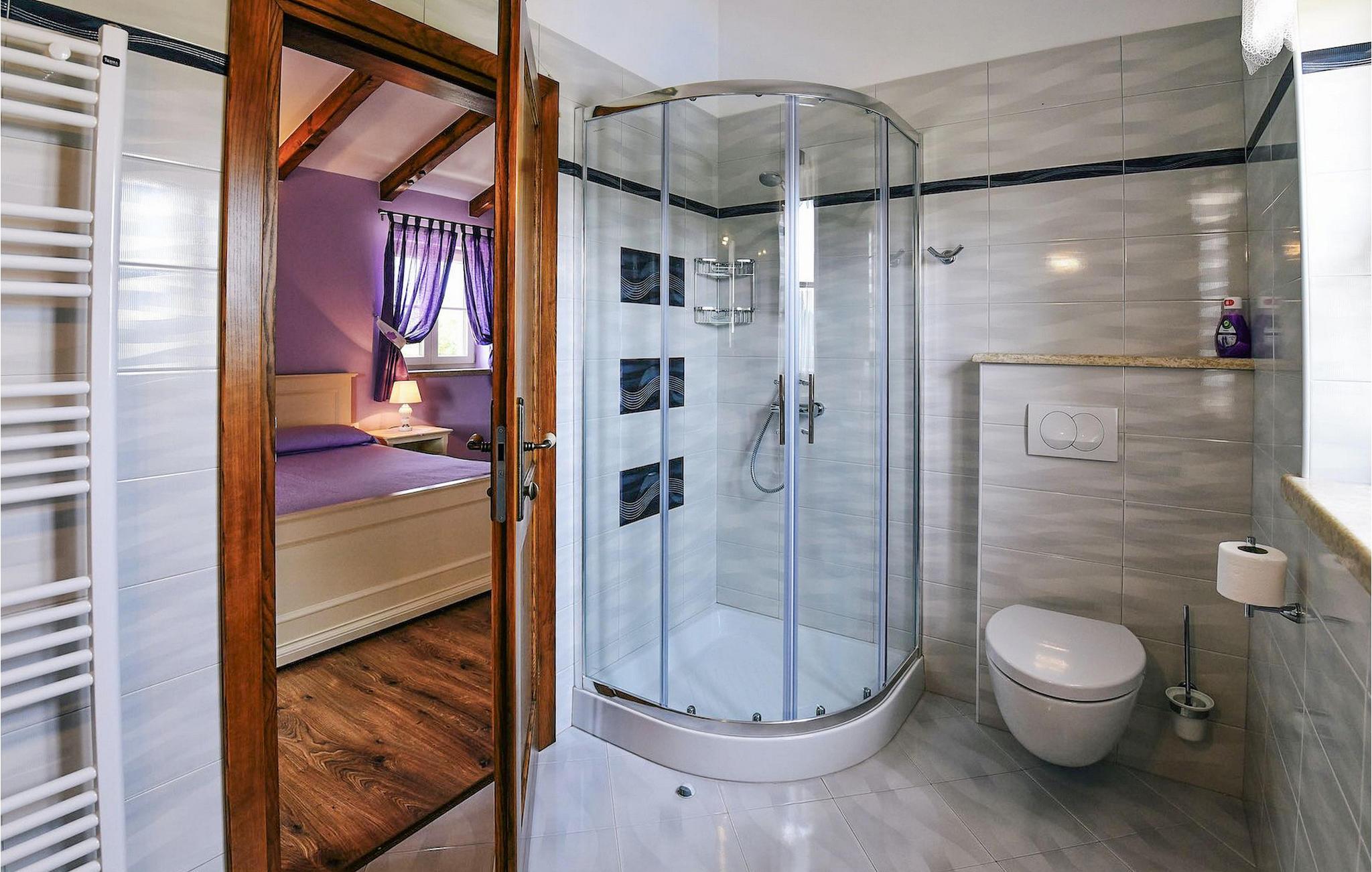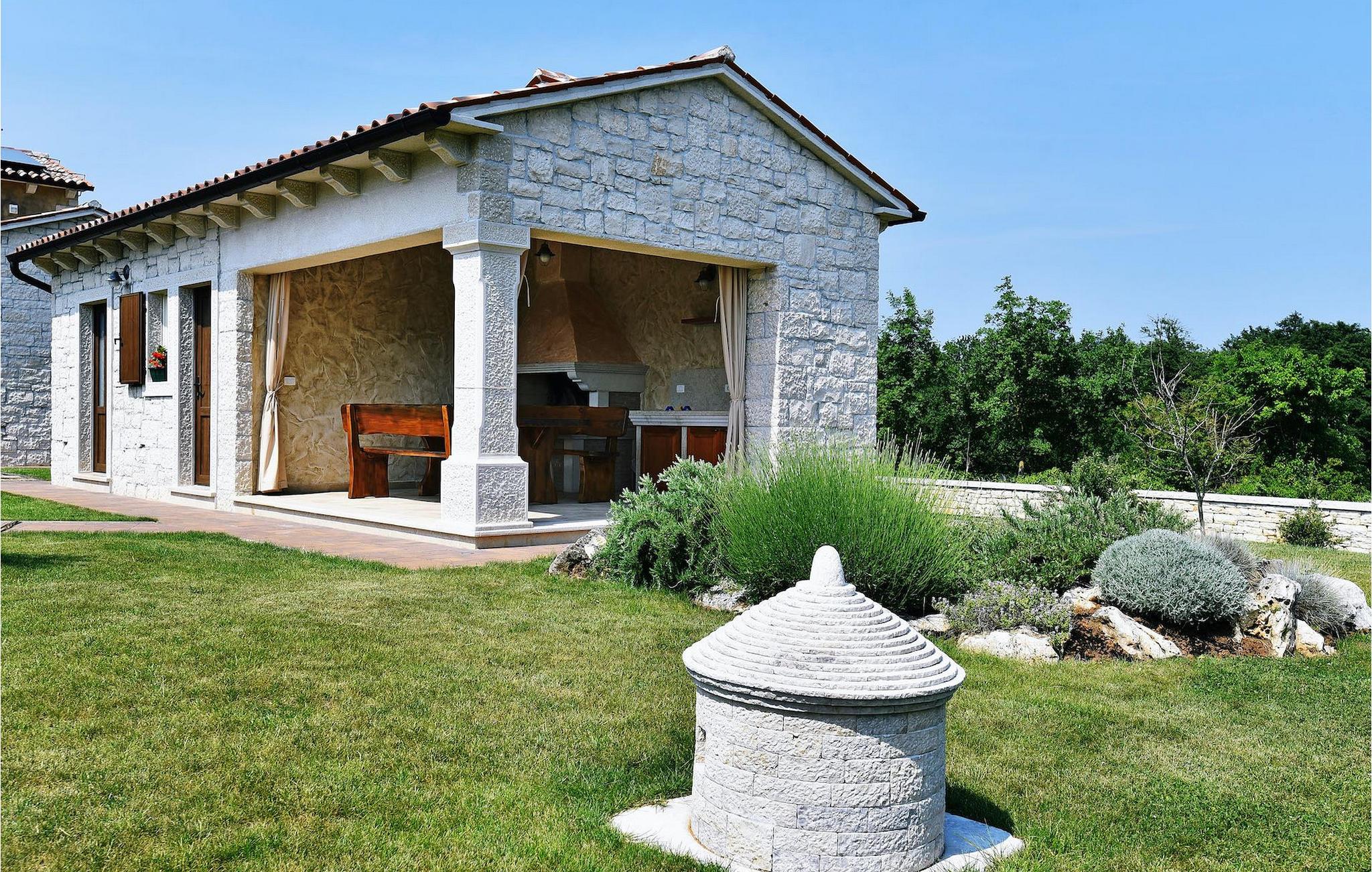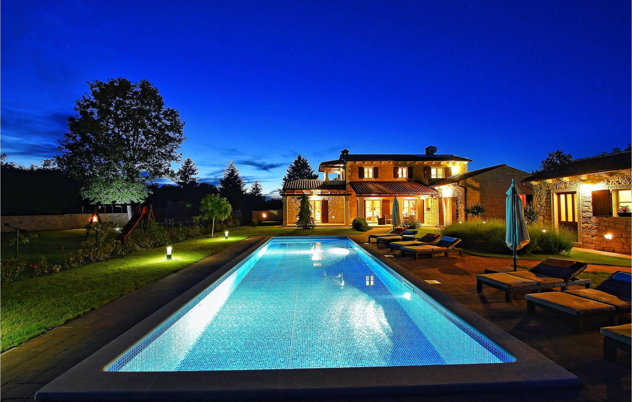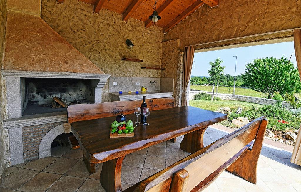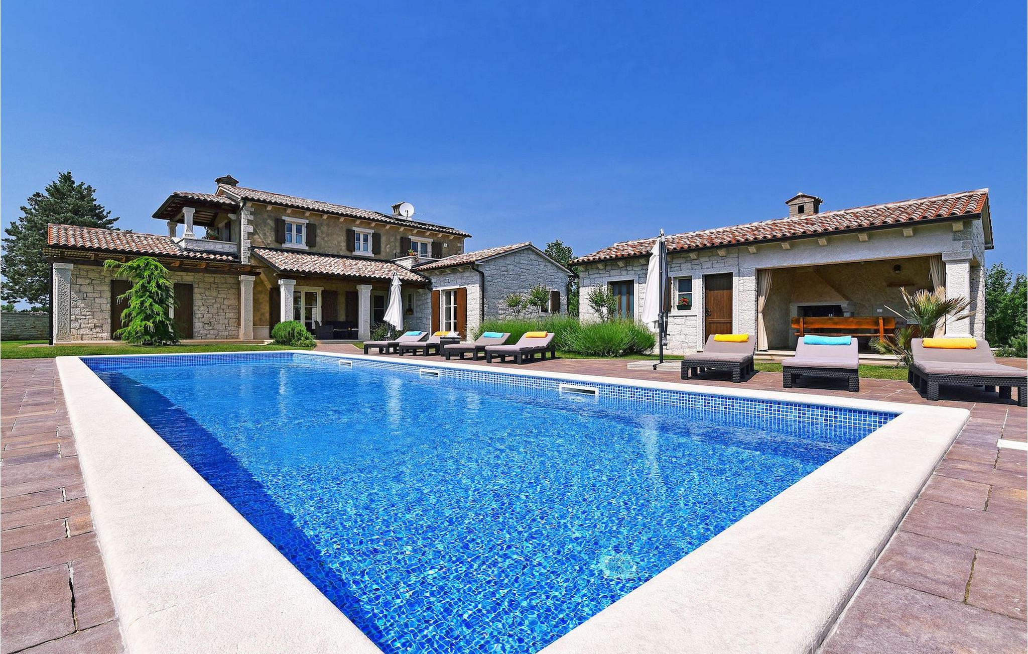 Denne nybygde villaen ligger i utkanten av en liten landsby på Istria. Her er det fred og ro, men likevel bare noen minutters kjøring fra strendene og turistsentrene. I første etasje er det en stor stue og to soverom med eget bad. Ovenpå er det ytterligere 2 soverom med eget bad. Utenfor er det et stort, privat basseng, en overbygd spiseplass, solsenger og en privat parkeringsplass. Denne villaen har klimaanlegg og er omgitt av grønne enger og skog.