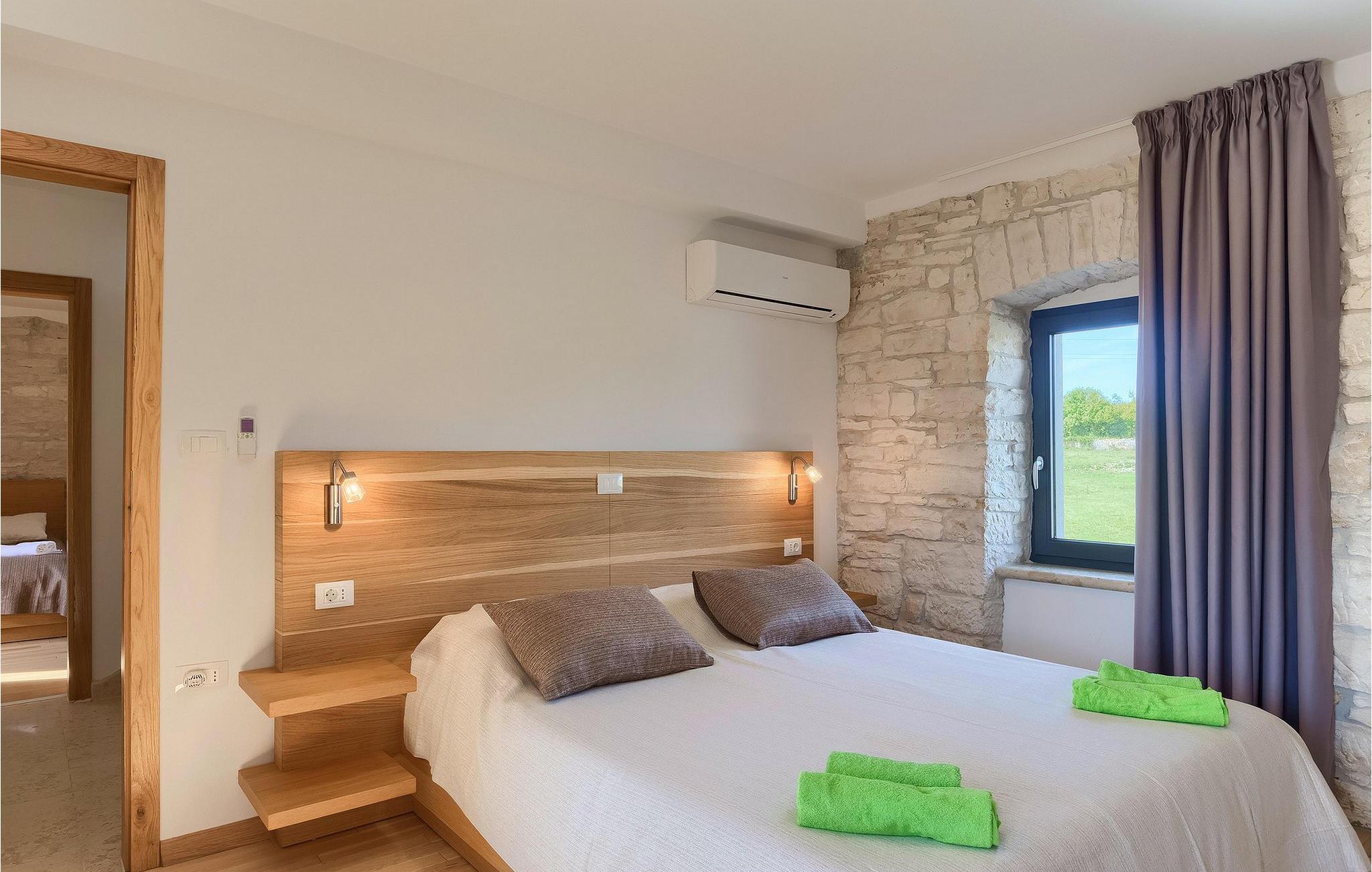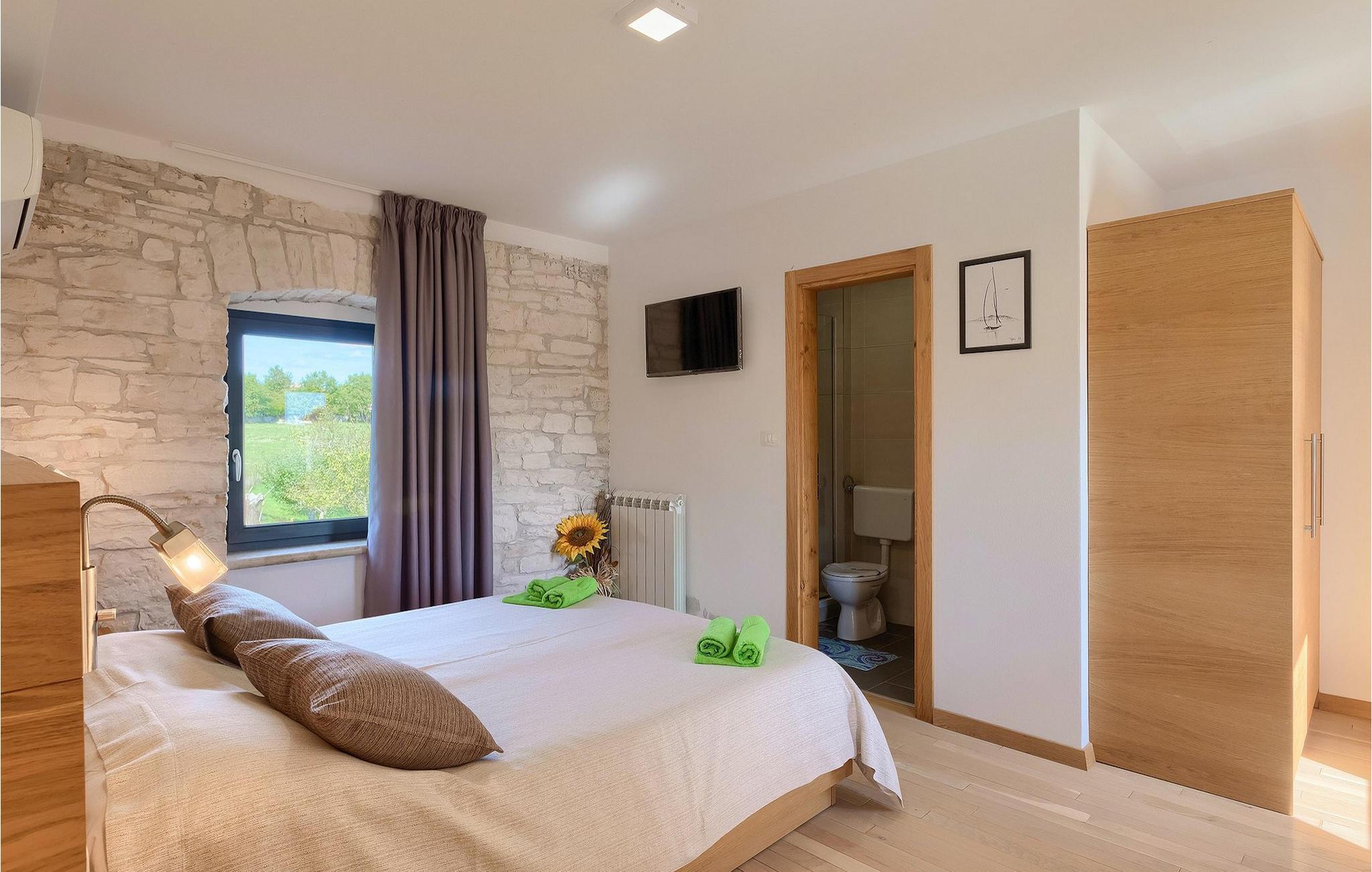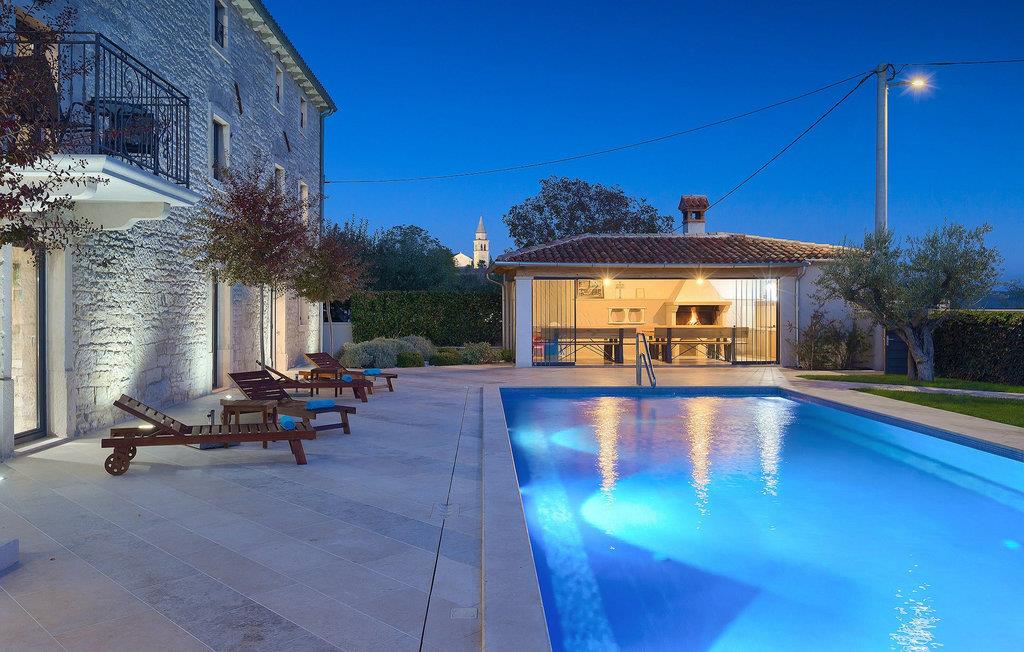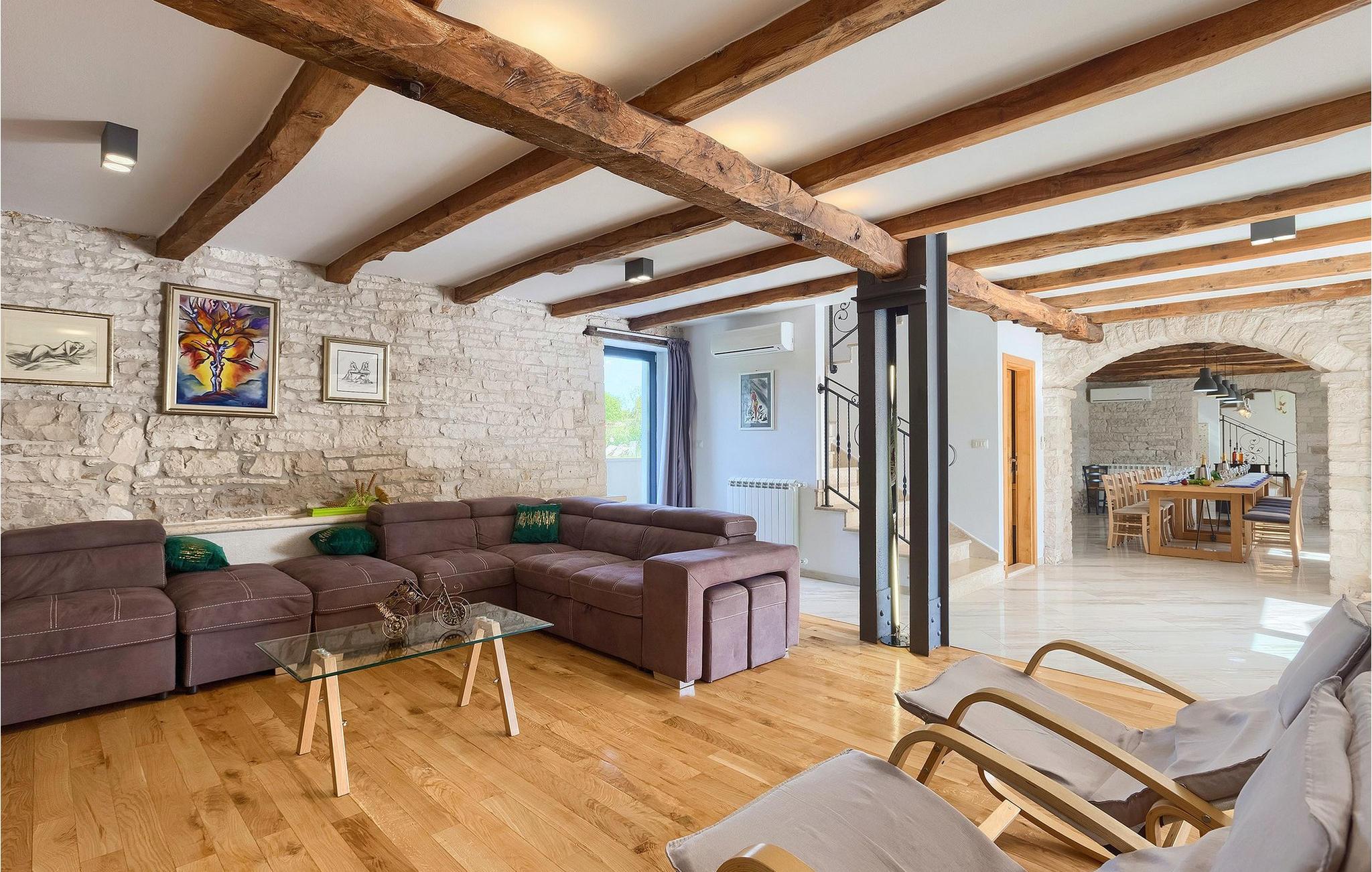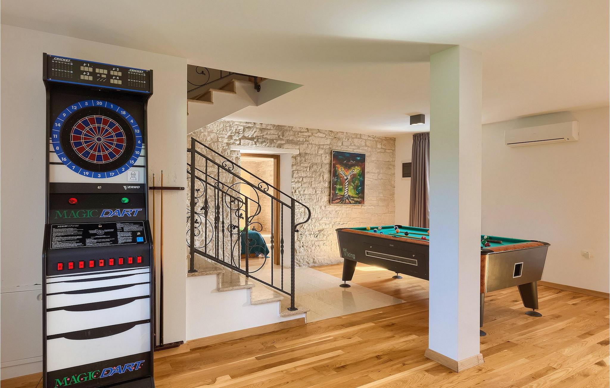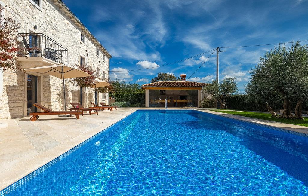 Luksuriøse Villa Simeanna ligger midt i det vakre istriske landskapet, bare en kort kjøretur fra Tinjan og Sveti Lovrec. Denne praktfulle eiendommen ble bygget i 1805 og totalrenovert i 2016. I dag har villaen totalt 9 soverom og plass til opptil 20 personer. På den ene siden gir de mange trebjelkene og de delvis åpne steinveggene villaen en landlig sjarm. På den andre siden har denne fantastiske villaen aircondition, fullt utstyrt kjøkken, 9 ensuite-bad og alt du trenger for en avslappende ferie. I første etasje er det et moderne kjøkken, en romslig stue med peis, et soverom med eget bad og et separat toalett. Ytterligere soverom ligger i første og andre etasje. Hvis du vil ha det gøy sammen med venner eller hele familien, finner du salongen med biljardbord og dart i første etasje. Skjem deg bort i badstuen eller nyt det innbydende private bassenget. De varme, solfylte dagene kan du tilbringe på terrassen, hvor du kan tilberede tradisjonelle kroatiske spesialiteter.Denne luksuriøse villaen ligger i det sentrale Istria, i den lille landsbyen Kringa, bare 5 kilometer sør for Tinjan. Sentrale Istria er ikke bare kjent for sitt uberørte landskap, bølgende åser, olivenåkre og tørre steinmurer, men også for sin utmerkede gastronomi. Nyt de tradisjonelle spesialitetene og prøv den verdensberømte istriske prosciuttoen og den lokale olivenoljen. Den rike kulturarven, den lange historien og de pittoreske landsbyene og byene gjør regionen enda vakrere. Det slående landskapet er ideelt for turentusiaster som ønsker å nyte en avslappende og fredelig ferie.