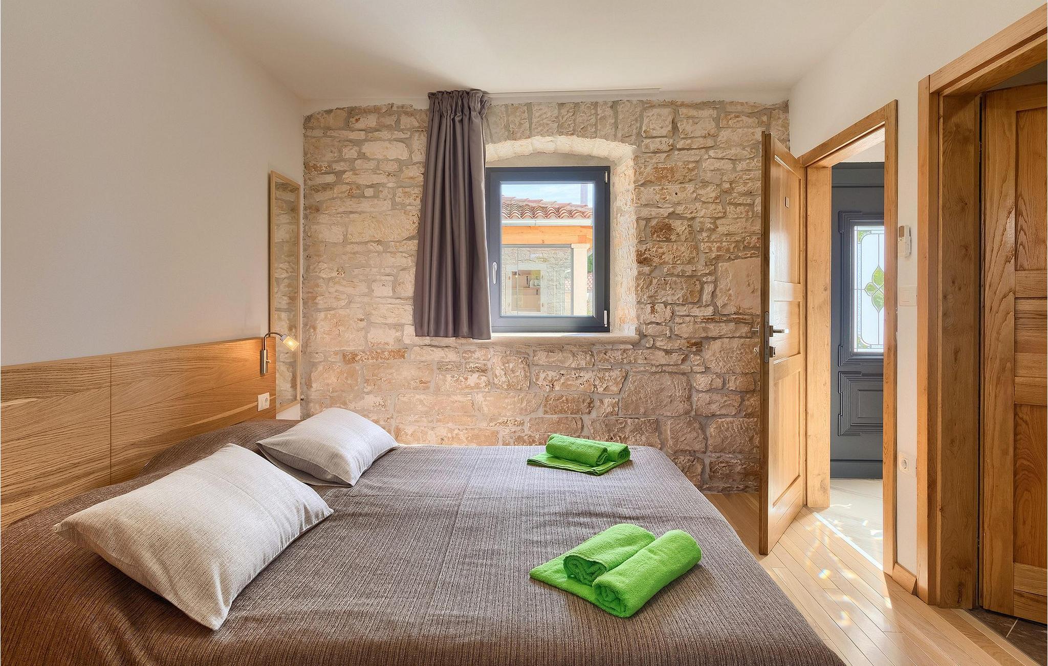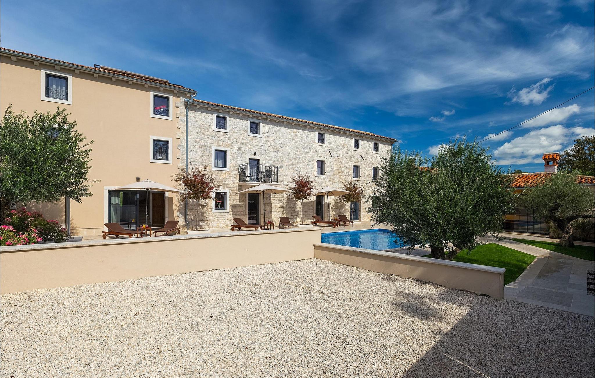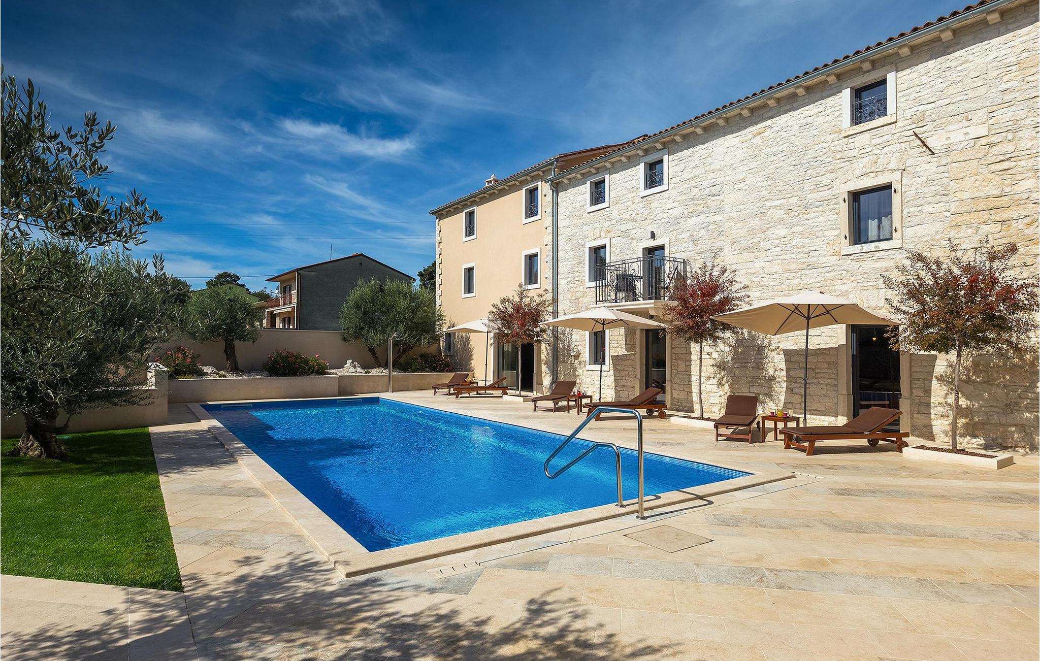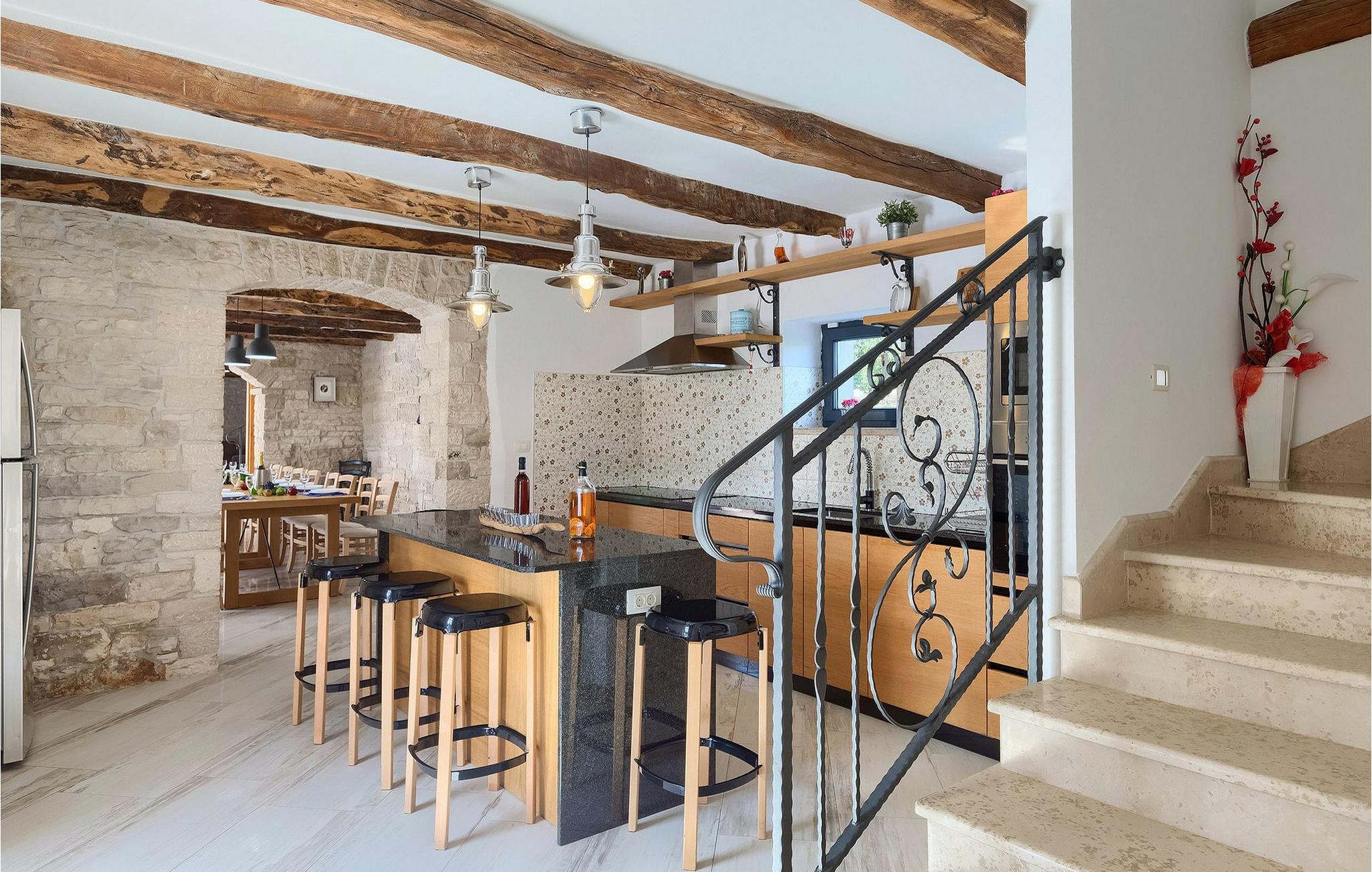 Luksuriøse Villa Simeanna ligger midt i det vakre istriske landskapet, bare en kort kjøretur fra Tinjan og Sveti Lovrec. Denne praktfulle eiendommen ble bygget i 1805 og totalrenovert i 2016. I dag har villaen totalt 9 soverom og plass til opptil 20 personer. På den ene siden gir de mange trebjelkene og de delvis åpne steinveggene villaen en landlig sjarm. På den andre siden har denne fantastiske villaen aircondition, fullt utstyrt kjøkken, 9 ensuite-bad og alt du trenger for en avslappende ferie. I første etasje er det et moderne kjøkken, en romslig stue med peis, et soverom med eget bad og et separat toalett. Ytterligere soverom ligger i første og andre etasje. Hvis du vil ha det gøy sammen med venner eller hele familien, finner du salongen med biljardbord og dart i første etasje. Skjem deg bort i badstuen eller nyt det innbydende private bassenget. De varme, solfylte dagene kan du tilbringe på terrassen, hvor du kan tilberede tradisjonelle kroatiske spesialiteter.Denne luksuriøse villaen ligger i det sentrale Istria, i den lille landsbyen Kringa, bare 5 kilometer sør for Tinjan. Sentrale Istria er ikke bare kjent for sitt uberørte landskap, bølgende åser, olivenåkre og tørre steinmurer, men også for sin utmerkede gastronomi. Nyt de tradisjonelle spesialitetene og prøv den verdensberømte istriske prosciuttoen og den lokale olivenoljen. Den rike kulturarven, den lange historien og de pittoreske landsbyene og byene gjør regionen enda vakrere. Det slående landskapet er ideelt for turentusiaster som ønsker å nyte en avslappende og fredelig ferie.