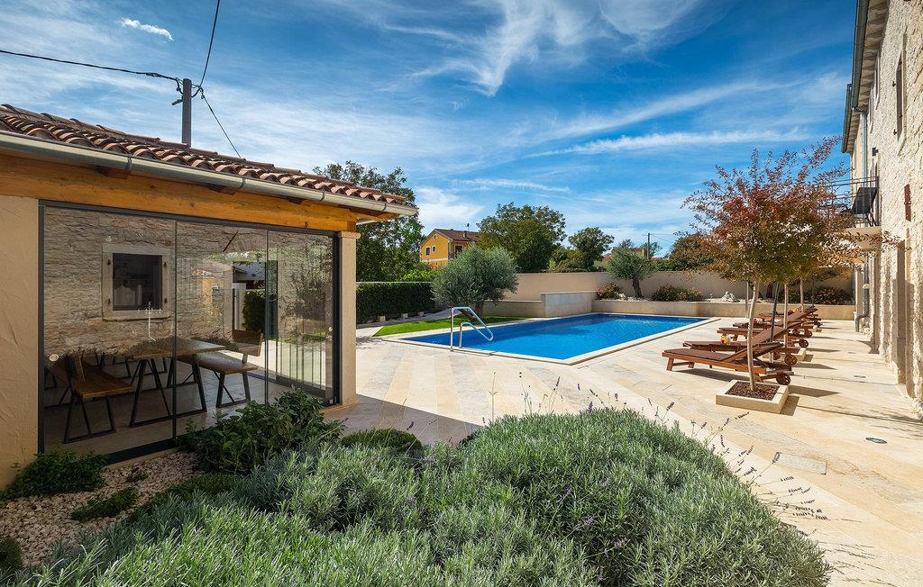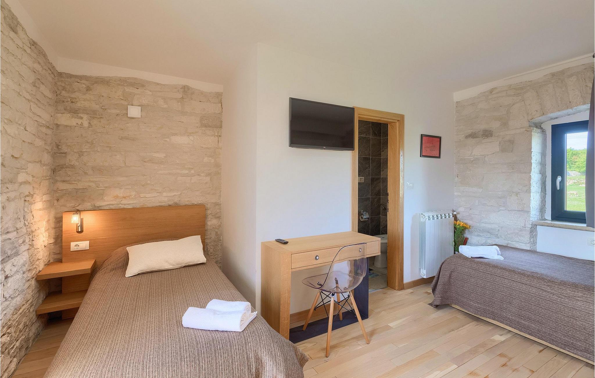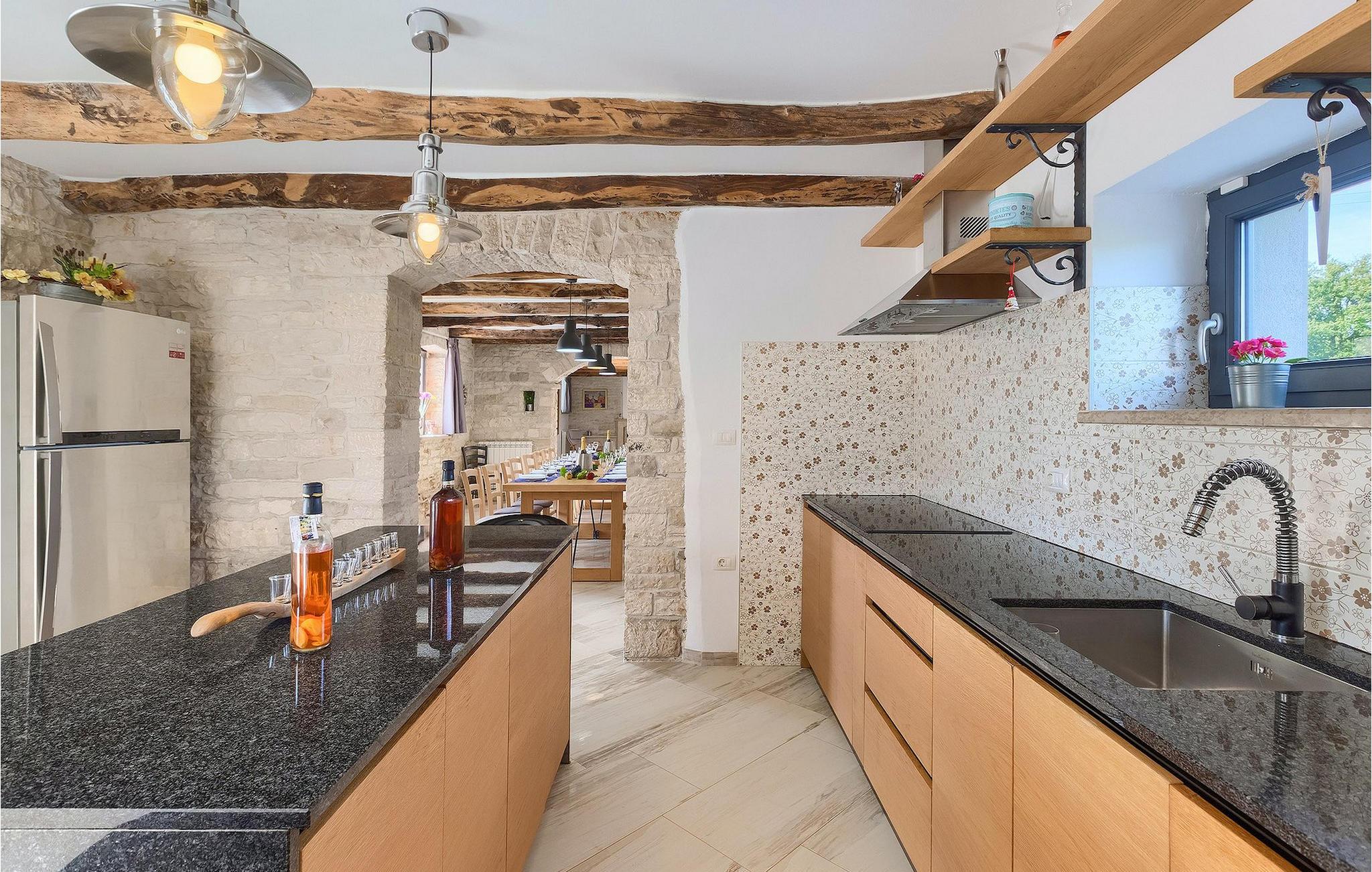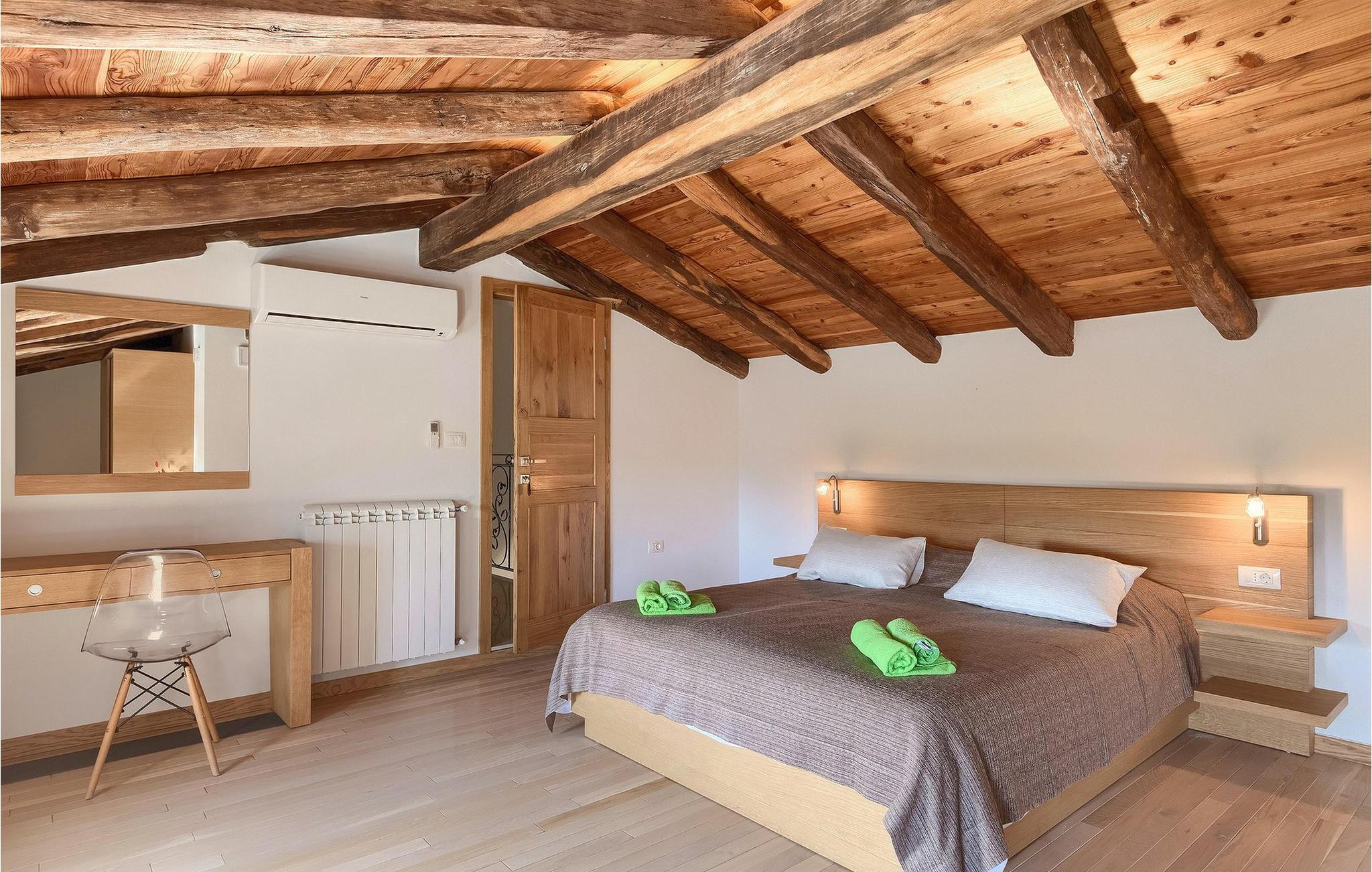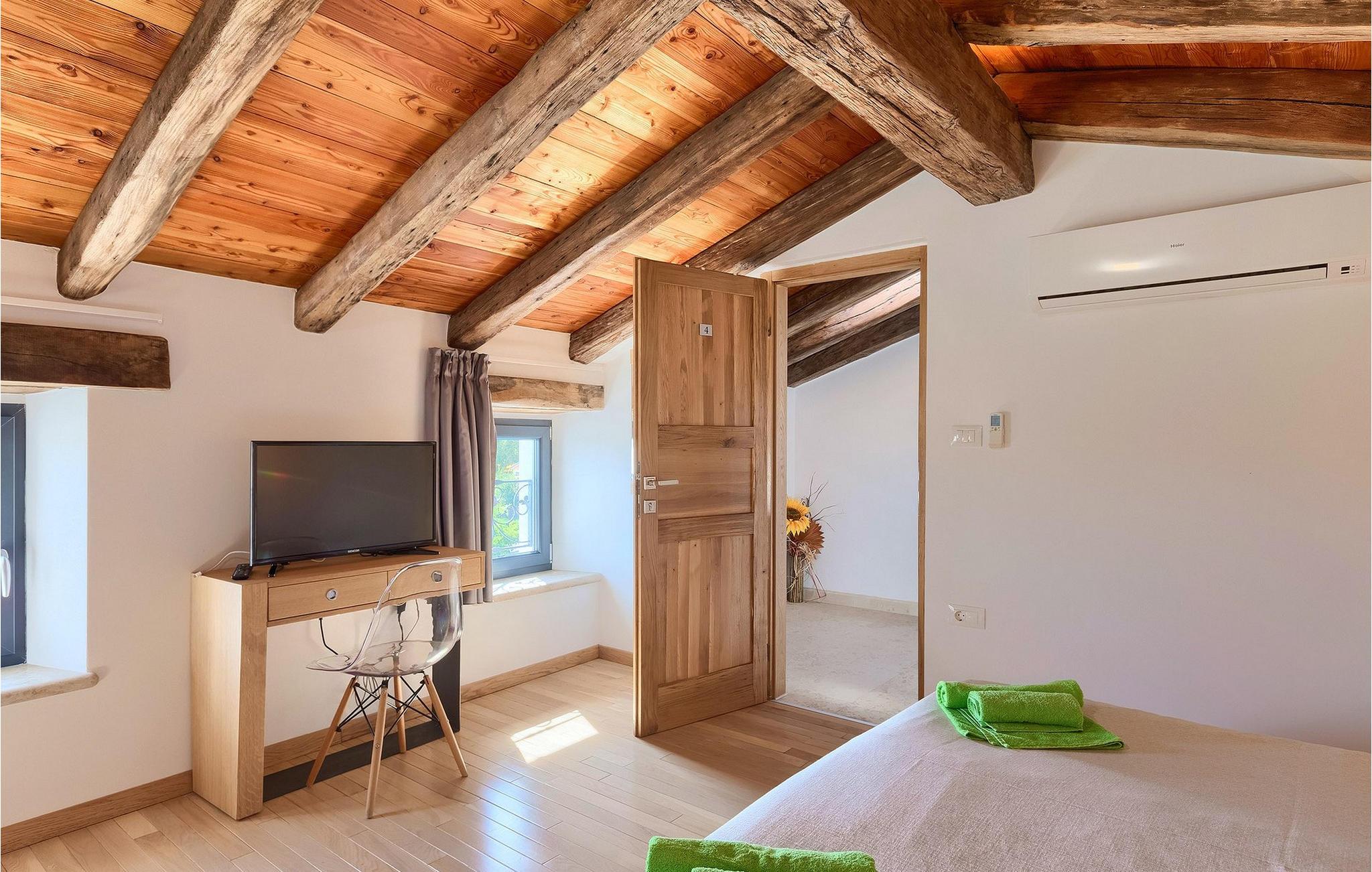 Luksuriøse Villa Simeanna ligger midt i det vakre istriske landskapet, bare en kort kjøretur fra Tinjan og Sveti Lovrec. Denne praktfulle eiendommen ble bygget i 1805 og totalrenovert i 2016. I dag har villaen totalt 9 soverom og plass til opptil 20 personer. På den ene siden gir de mange trebjelkene og de delvis åpne steinveggene villaen en landlig sjarm. På den andre siden har denne fantastiske villaen aircondition, fullt utstyrt kjøkken, 9 ensuite-bad og alt du trenger for en avslappende ferie. I første etasje er det et moderne kjøkken, en romslig stue med peis, et soverom med eget bad og et separat toalett. Ytterligere soverom ligger i første og andre etasje. Hvis du vil ha det gøy sammen med venner eller hele familien, finner du salongen med biljardbord og dart i første etasje. Skjem deg bort i badstuen eller nyt det innbydende private bassenget. De varme, solfylte dagene kan du tilbringe på terrassen, hvor du kan tilberede tradisjonelle kroatiske spesialiteter.Denne luksuriøse villaen ligger i det sentrale Istria, i den lille landsbyen Kringa, bare 5 kilometer sør for Tinjan. Sentrale Istria er ikke bare kjent for sitt uberørte landskap, bølgende åser, olivenåkre og tørre steinmurer, men også for sin utmerkede gastronomi. Nyt de tradisjonelle spesialitetene og prøv den verdensberømte istriske prosciuttoen og den lokale olivenoljen. Den rike kulturarven, den lange historien og de pittoreske landsbyene og byene gjør regionen enda vakrere. Det slående landskapet er ideelt for turentusiaster som ønsker å nyte en avslappende og fredelig ferie.