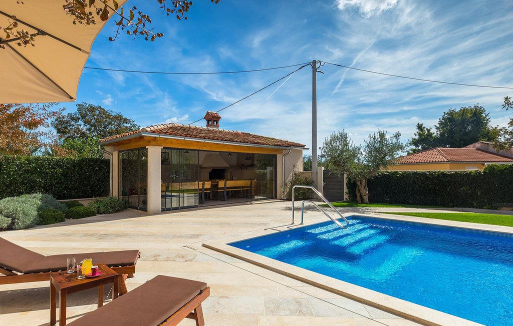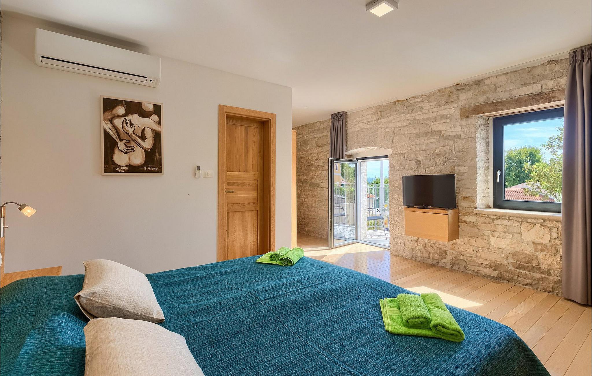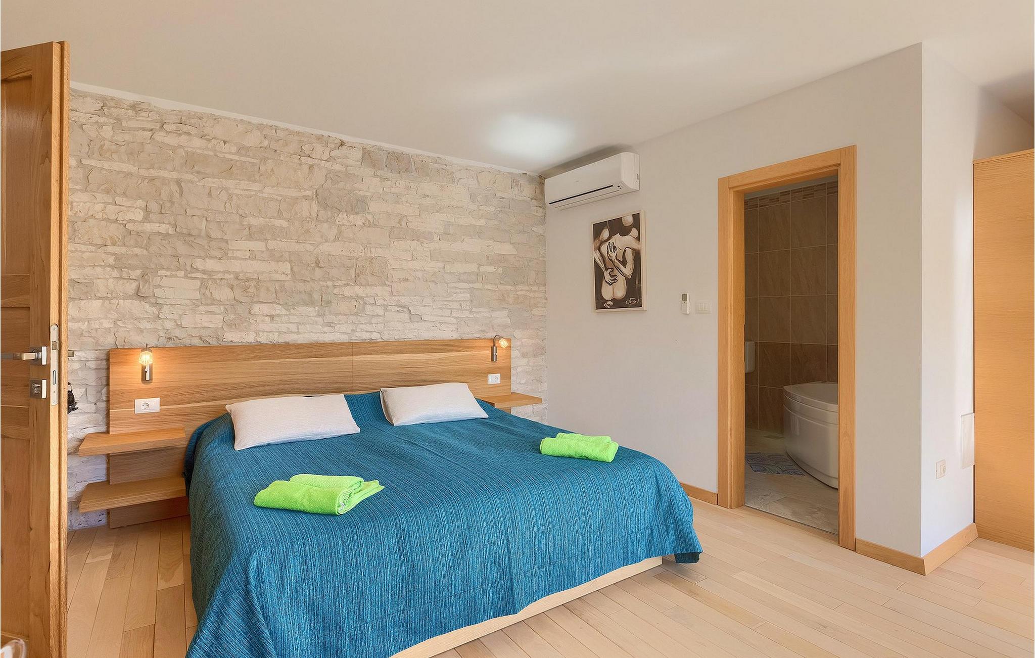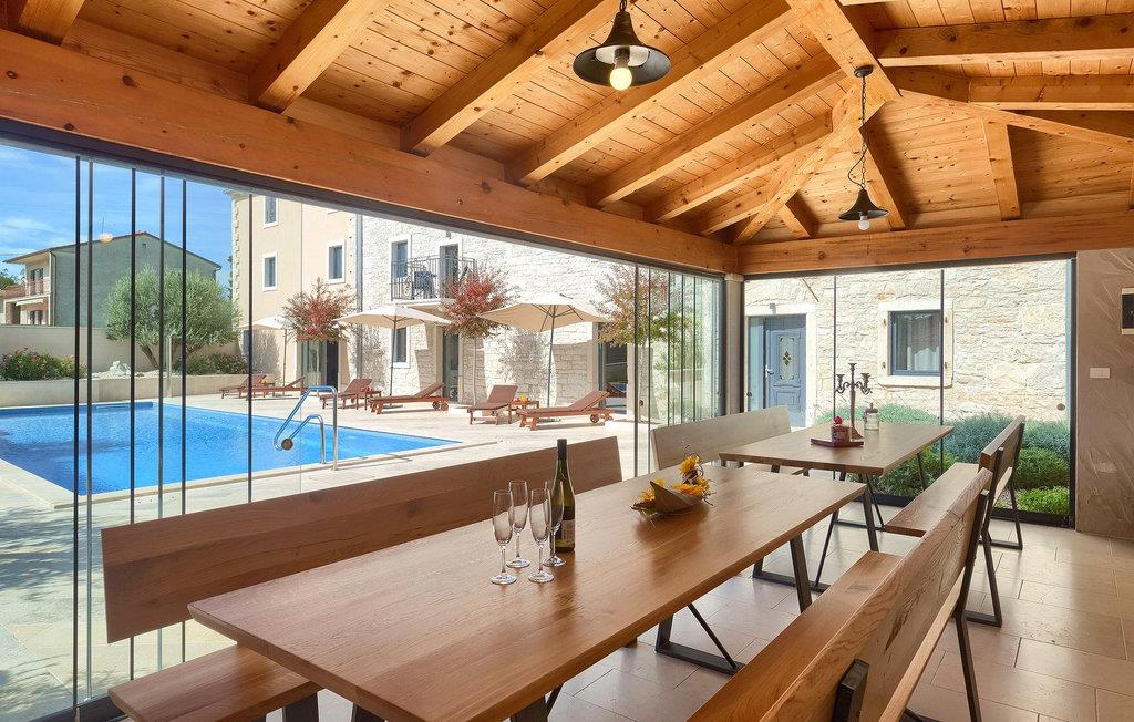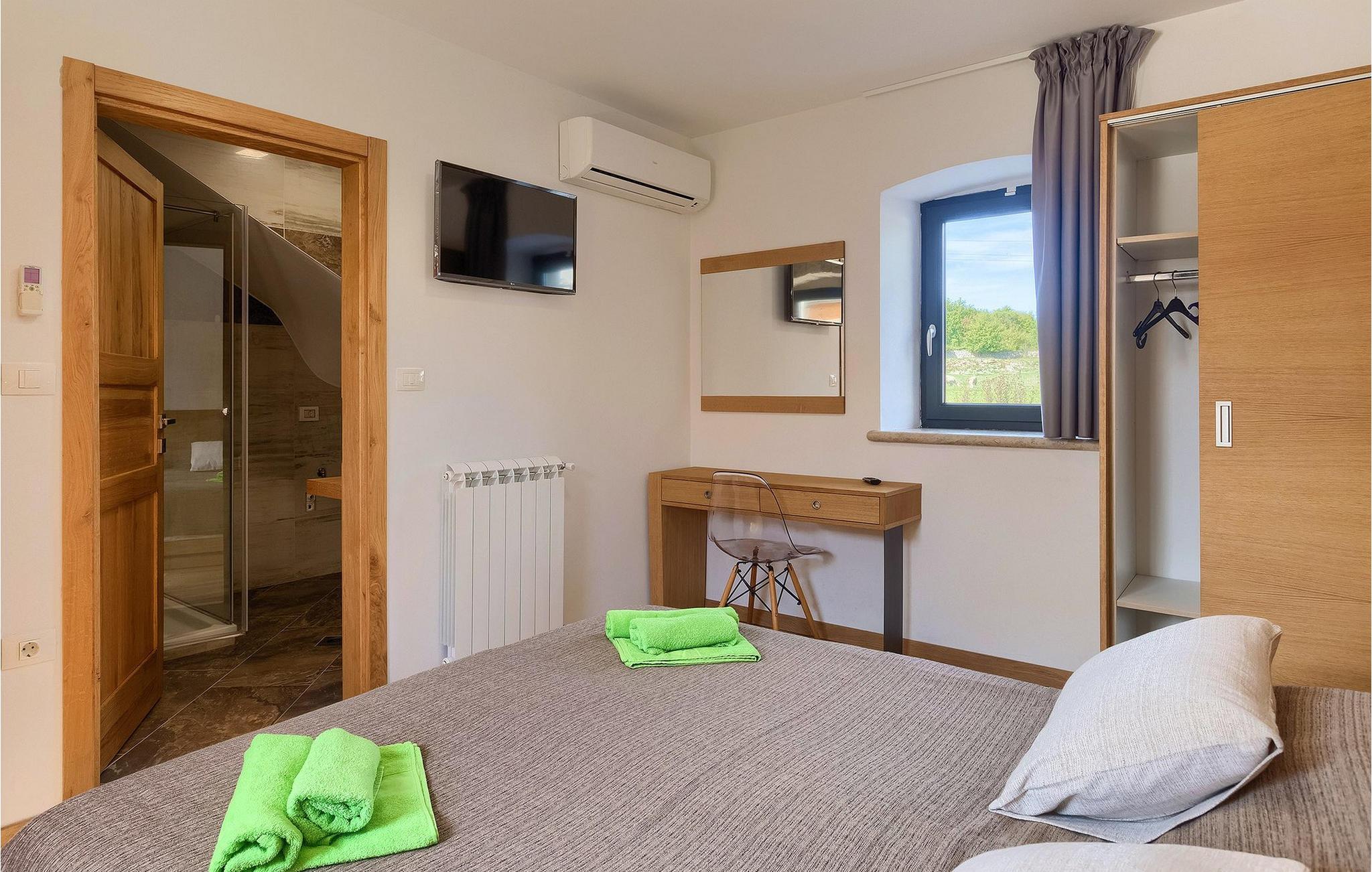 Luksuriøse Villa Simeanna ligger midt i det vakre istriske landskapet, bare en kort kjøretur fra Tinjan og Sveti Lovrec. Denne praktfulle eiendommen ble bygget i 1805 og totalrenovert i 2016. I dag har villaen totalt 9 soverom og plass til opptil 20 personer. På den ene siden gir de mange trebjelkene og de delvis åpne steinveggene villaen en landlig sjarm. På den andre siden har denne fantastiske villaen aircondition, fullt utstyrt kjøkken, 9 ensuite-bad og alt du trenger for en avslappende ferie. I første etasje er det et moderne kjøkken, en romslig stue med peis, et soverom med eget bad og et separat toalett. Ytterligere soverom ligger i første og andre etasje. Hvis du vil ha det gøy sammen med venner eller hele familien, finner du salongen med biljardbord og dart i første etasje. Skjem deg bort i badstuen eller nyt det innbydende private bassenget. De varme, solfylte dagene kan du tilbringe på terrassen, hvor du kan tilberede tradisjonelle kroatiske spesialiteter.Denne luksuriøse villaen ligger i det sentrale Istria, i den lille landsbyen Kringa, bare 5 kilometer sør for Tinjan. Sentrale Istria er ikke bare kjent for sitt uberørte landskap, bølgende åser, olivenåkre og tørre steinmurer, men også for sin utmerkede gastronomi. Nyt de tradisjonelle spesialitetene og prøv den verdensberømte istriske prosciuttoen og den lokale olivenoljen. Den rike kulturarven, den lange historien og de pittoreske landsbyene og byene gjør regionen enda vakrere. Det slående landskapet er ideelt for turentusiaster som ønsker å nyte en avslappende og fredelig ferie.