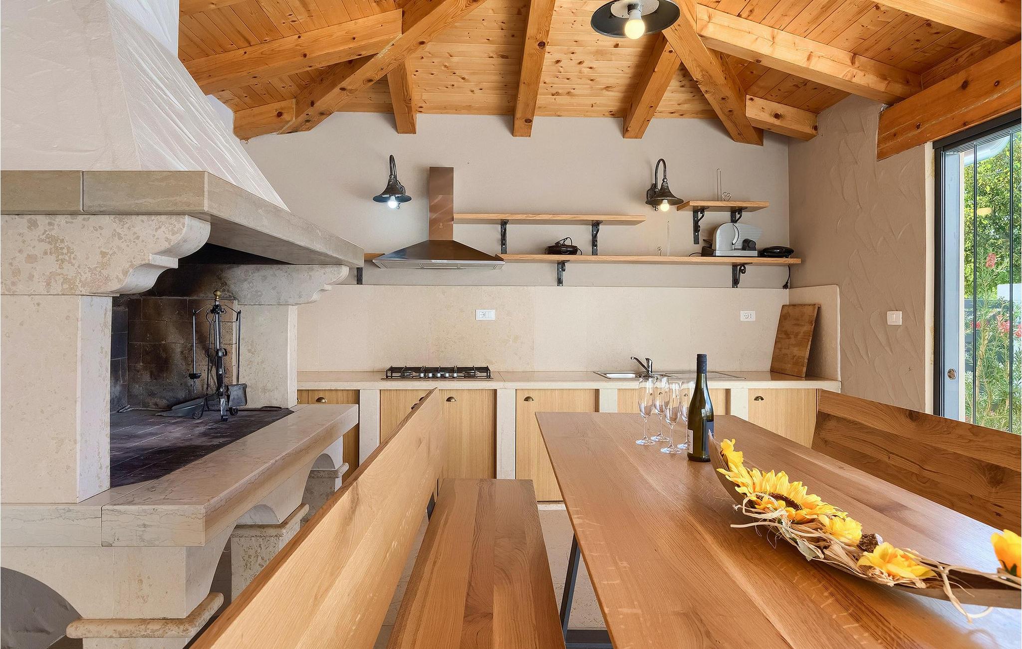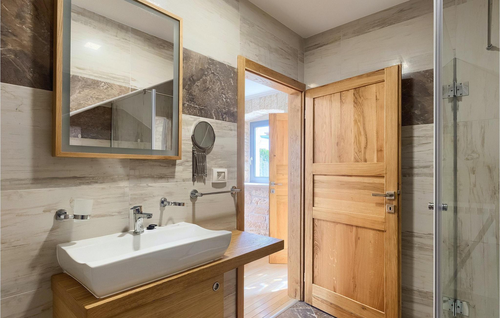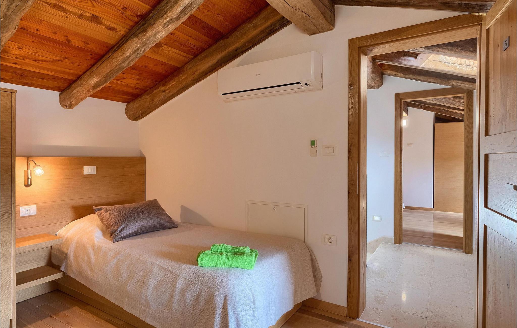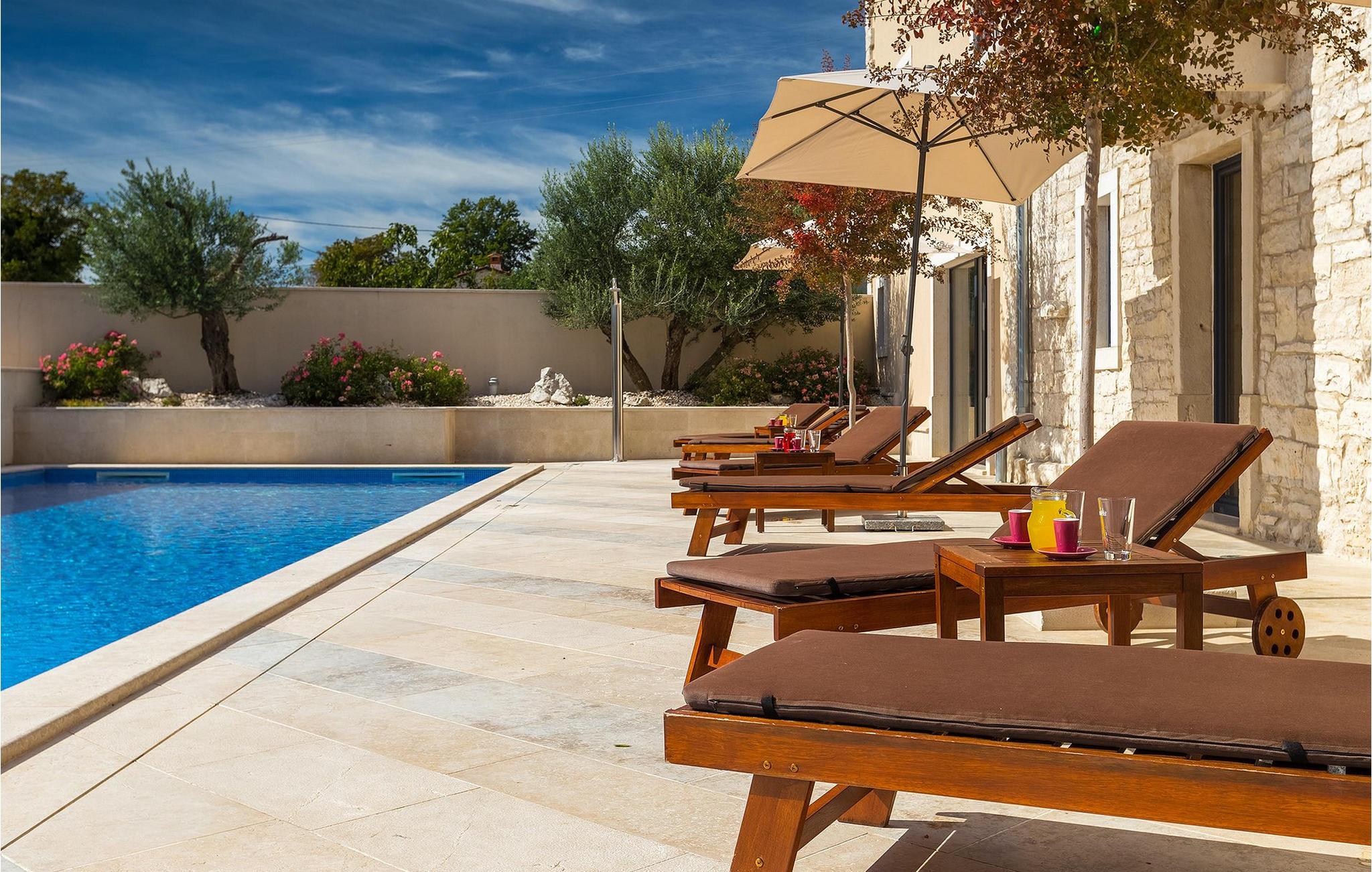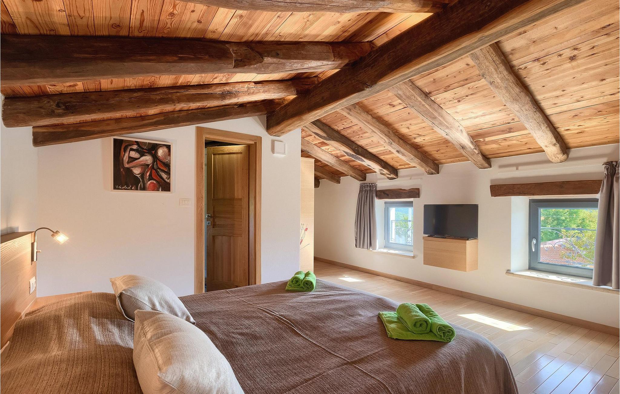 Luksuriøse Villa Simeanna ligger midt i det vakre istriske landskapet, bare en kort kjøretur fra Tinjan og Sveti Lovrec. Denne praktfulle eiendommen ble bygget i 1805 og totalrenovert i 2016. I dag har villaen totalt 9 soverom og plass til opptil 20 personer. På den ene siden gir de mange trebjelkene og de delvis åpne steinveggene villaen en landlig sjarm. På den andre siden har denne fantastiske villaen aircondition, fullt utstyrt kjøkken, 9 ensuite-bad og alt du trenger for en avslappende ferie. I første etasje er det et moderne kjøkken, en romslig stue med peis, et soverom med eget bad og et separat toalett. Ytterligere soverom ligger i første og andre etasje. Hvis du vil ha det gøy sammen med venner eller hele familien, finner du salongen med biljardbord og dart i første etasje. Skjem deg bort i badstuen eller nyt det innbydende private bassenget. De varme, solfylte dagene kan du tilbringe på terrassen, hvor du kan tilberede tradisjonelle kroatiske spesialiteter.Denne luksuriøse villaen ligger i det sentrale Istria, i den lille landsbyen Kringa, bare 5 kilometer sør for Tinjan. Sentrale Istria er ikke bare kjent for sitt uberørte landskap, bølgende åser, olivenåkre og tørre steinmurer, men også for sin utmerkede gastronomi. Nyt de tradisjonelle spesialitetene og prøv den verdensberømte istriske prosciuttoen og den lokale olivenoljen. Den rike kulturarven, den lange historien og de pittoreske landsbyene og byene gjør regionen enda vakrere. Det slående landskapet er ideelt for turentusiaster som ønsker å nyte en avslappende og fredelig ferie.