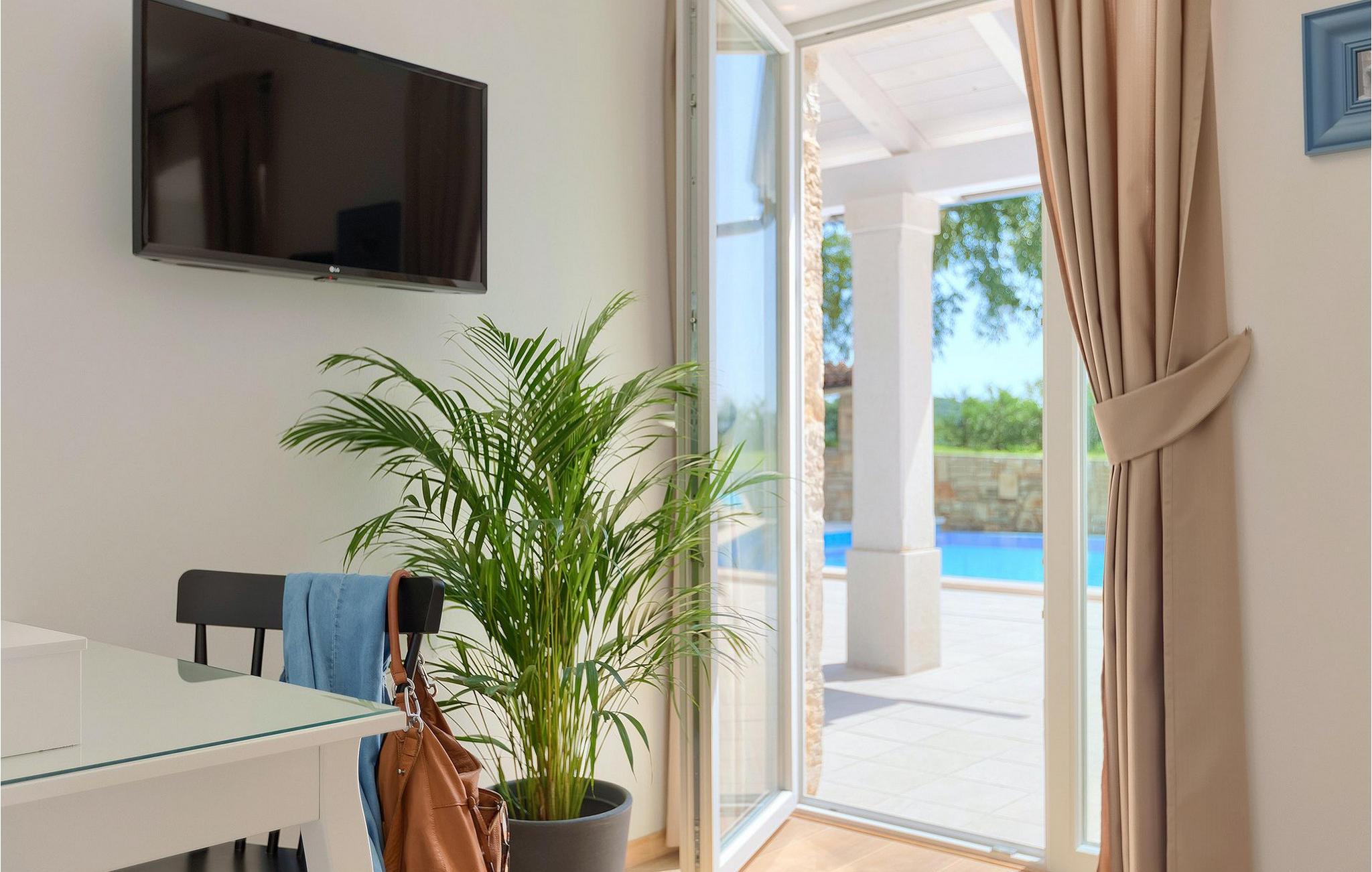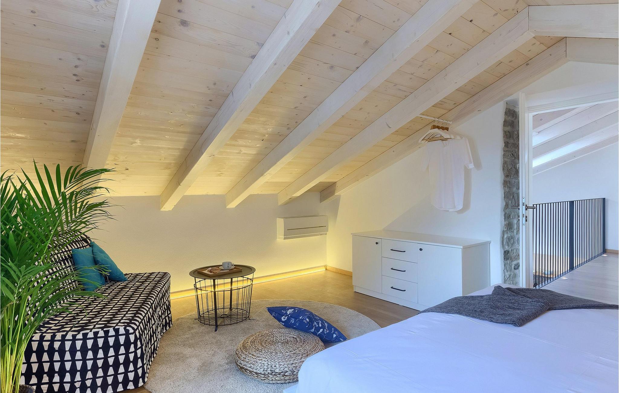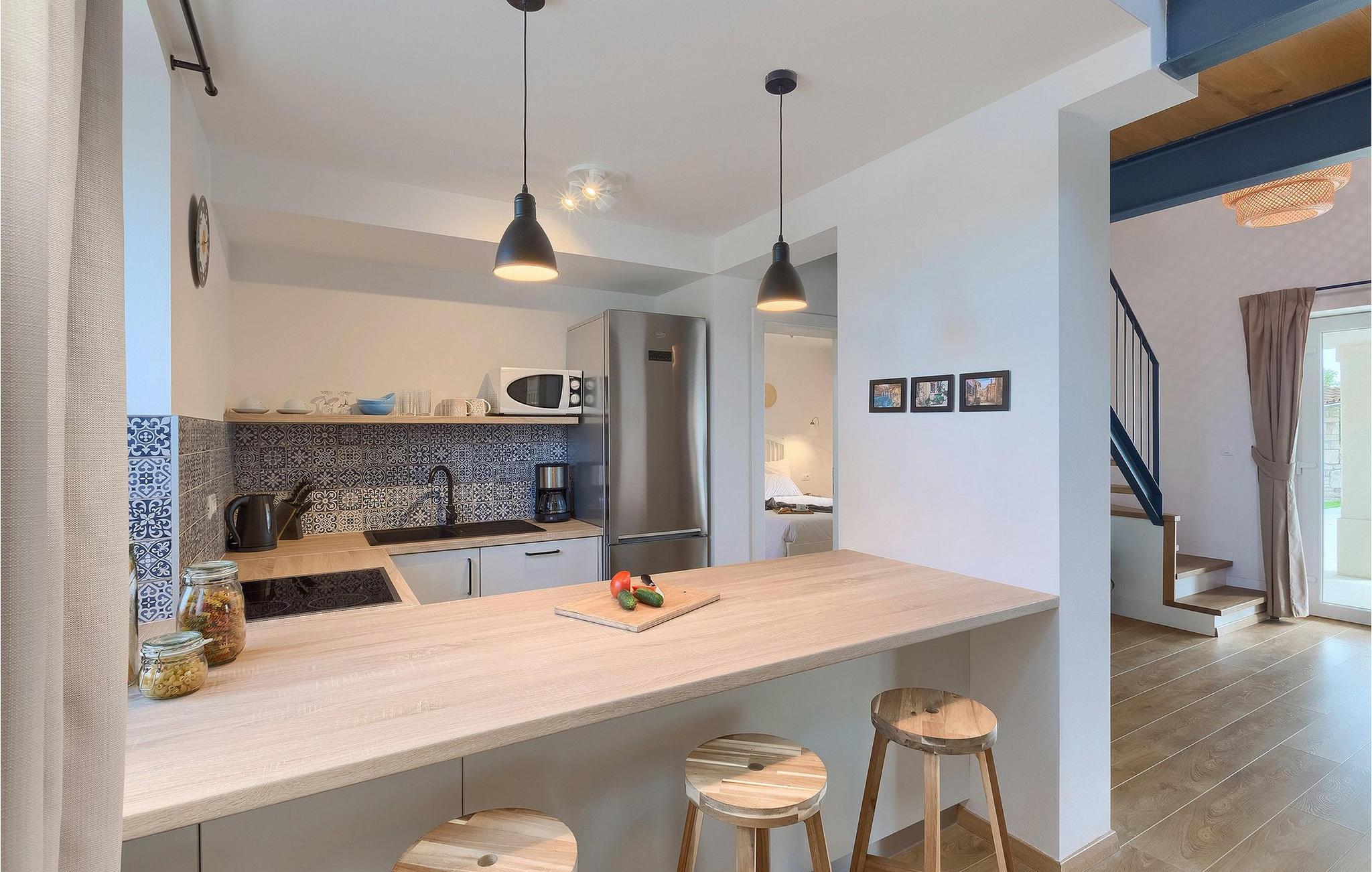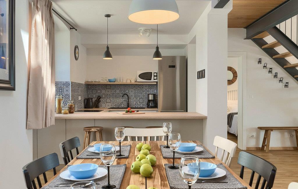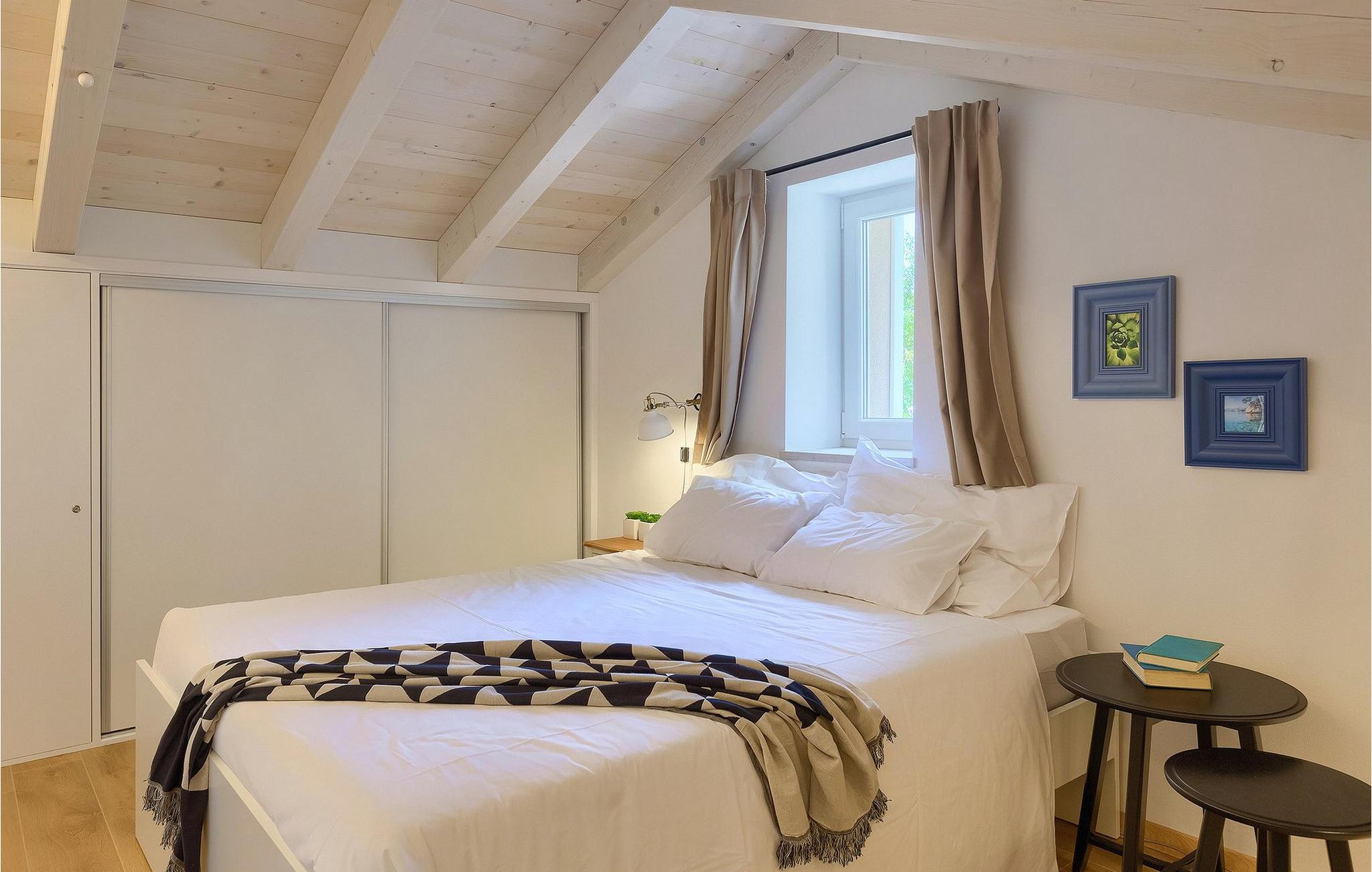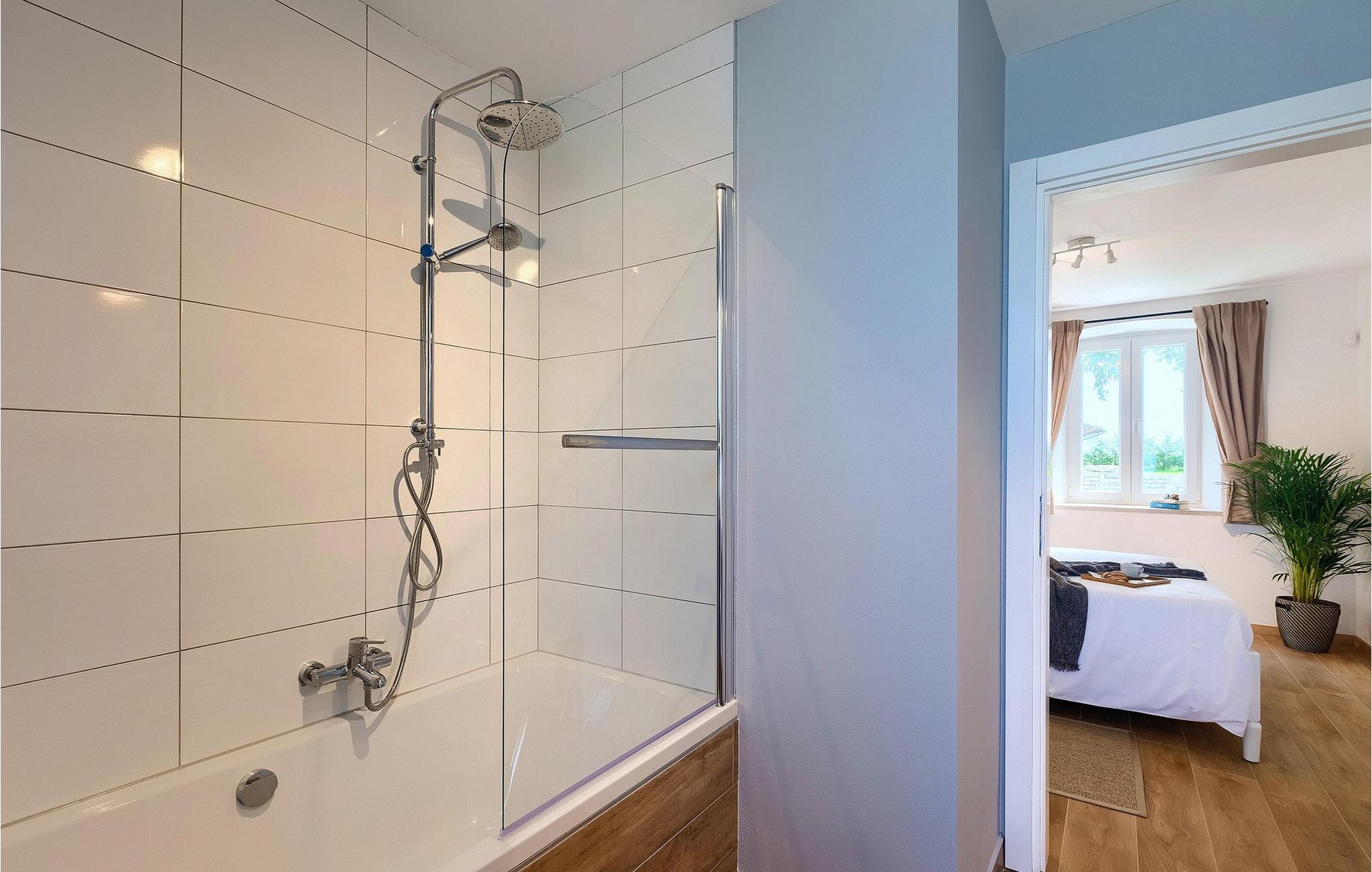 Denne villaen er et vakkert restaurert steinhus fra Istria med alle nødvendige moderne bekvemmeligheter og en fantastisk bevart tradisjonell sjarm. Villaen tilbyr overnatting for maksimalt 8 + 2 gjester i de 4 smakfullt innredede dobbeltrommene. I første etasje ligger to dobbeltrom med eget bad, en kreativ, moderne, åpen stue- og spisestue med direkte utgang til bassenget, et fullt utstyrt kjøkken og et gjestetoalett. Den åpne stuen har stor takhøyde med takvinduer, noe som gjør rommet spesielt lyst og gjennomstrømmet av lys. Trappen fører deg til den sjarmerende hemsen, som består av de resterende 2 soverommene (1 med en ekstra sovesofa for 2 personer) og et felles bad. En bro, som ligger over oppholdsrommet, forbinder de to soverommene i øverste etasje.