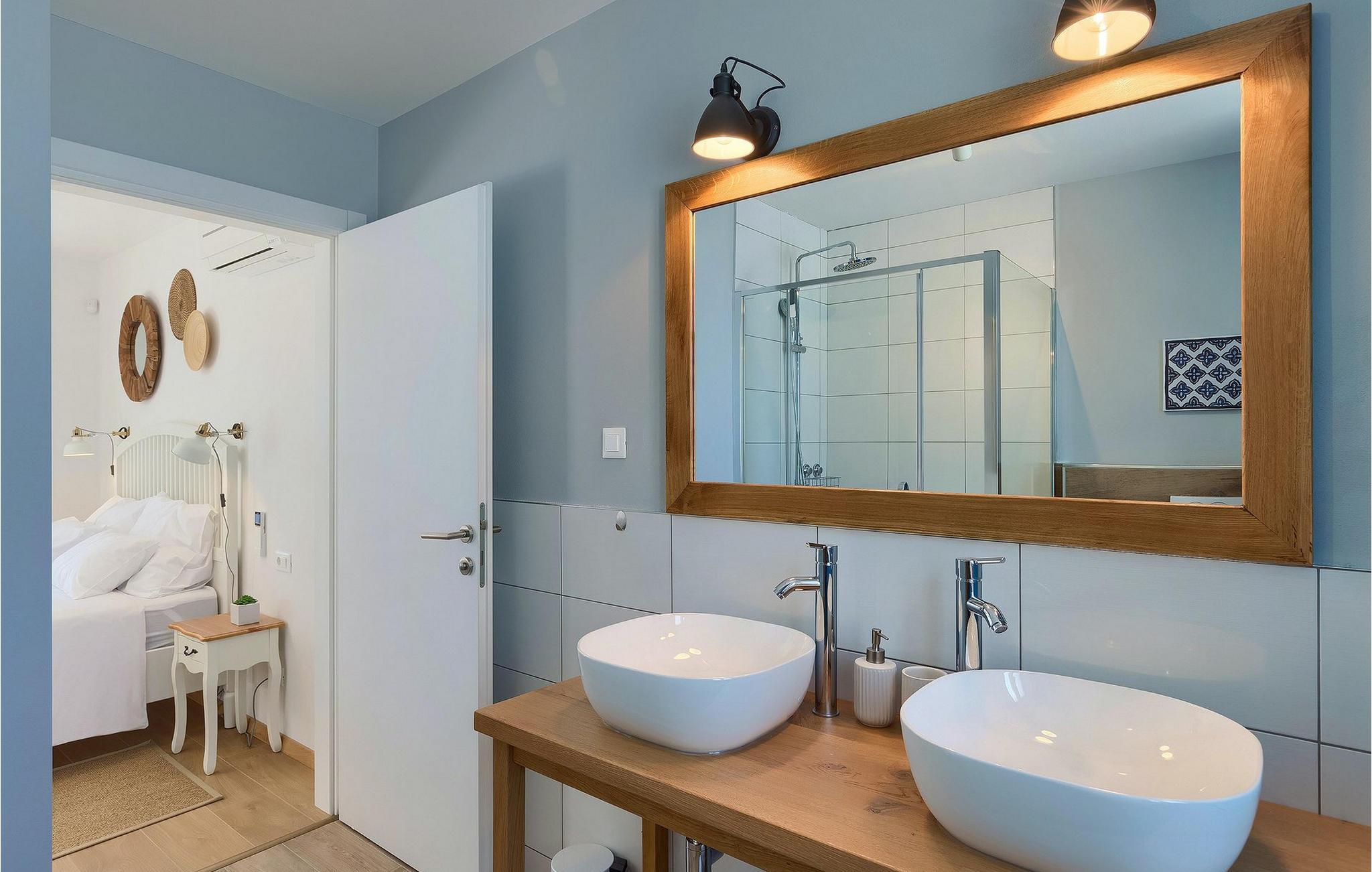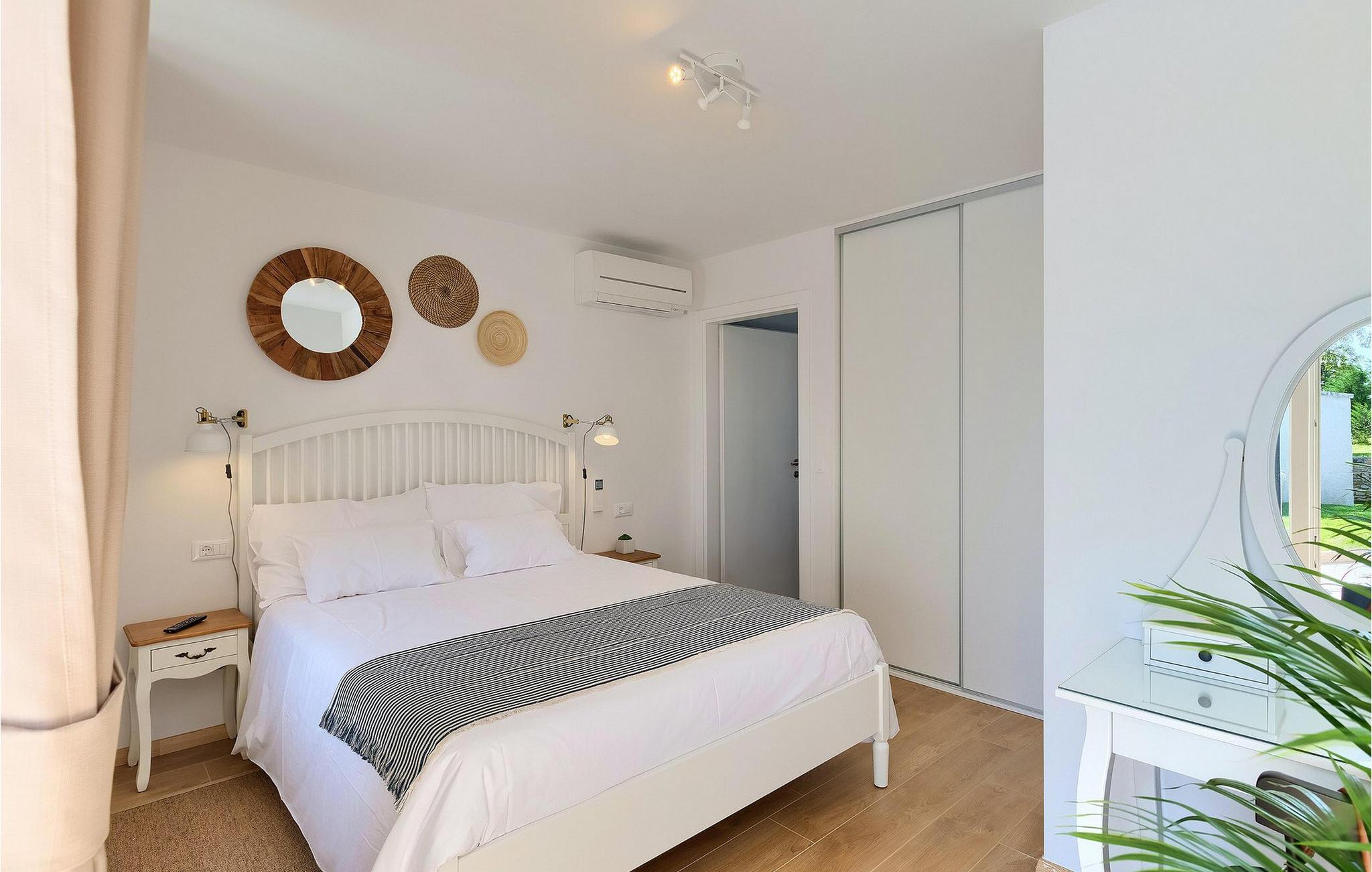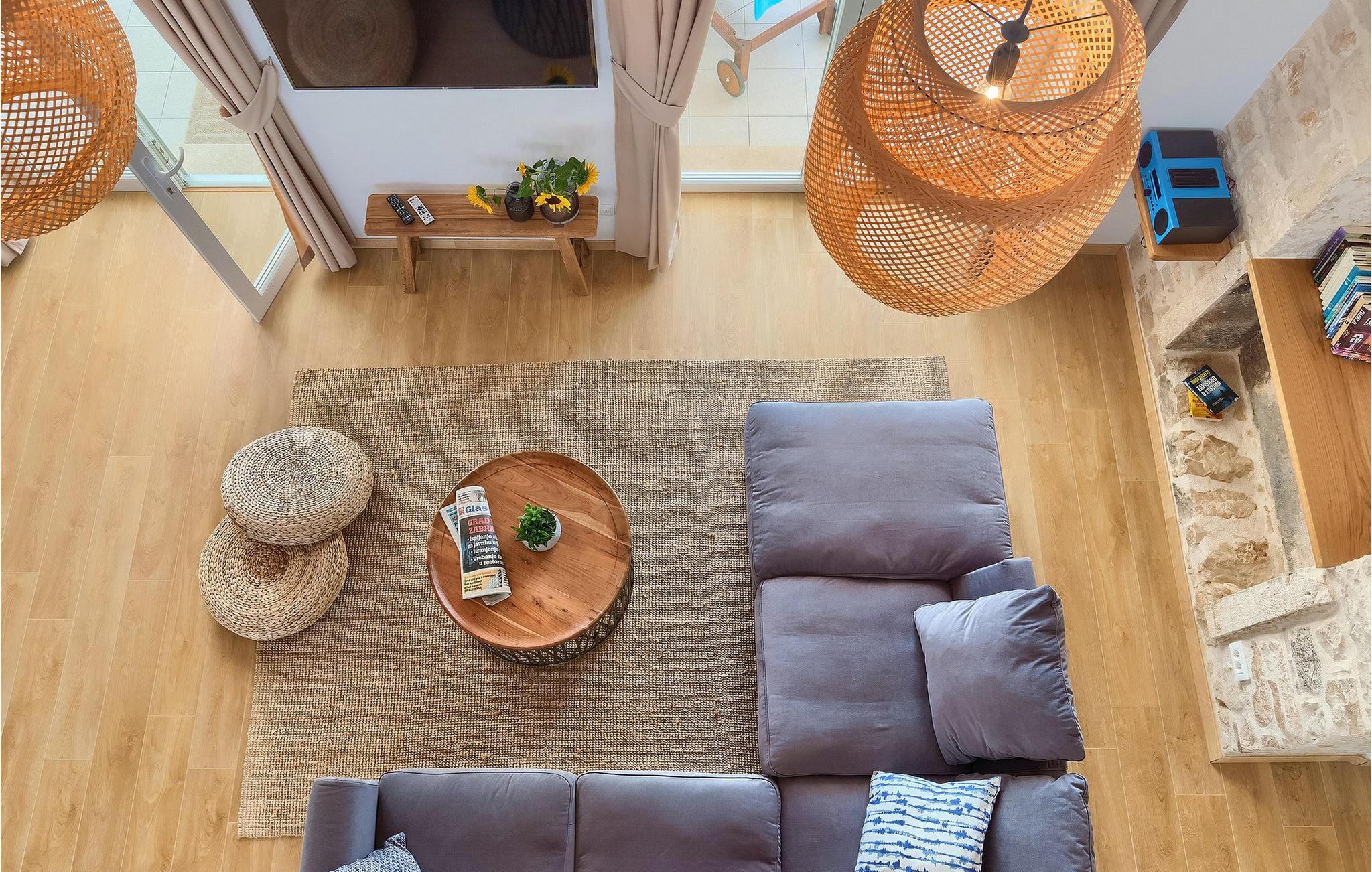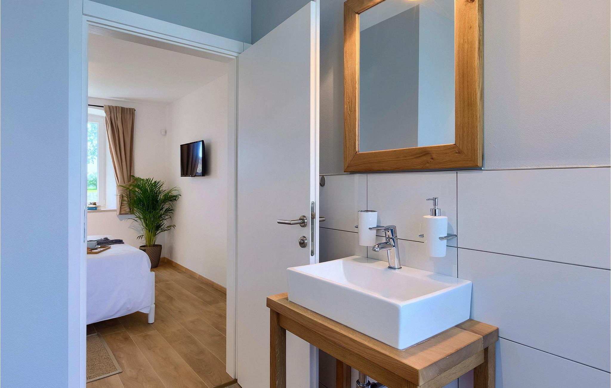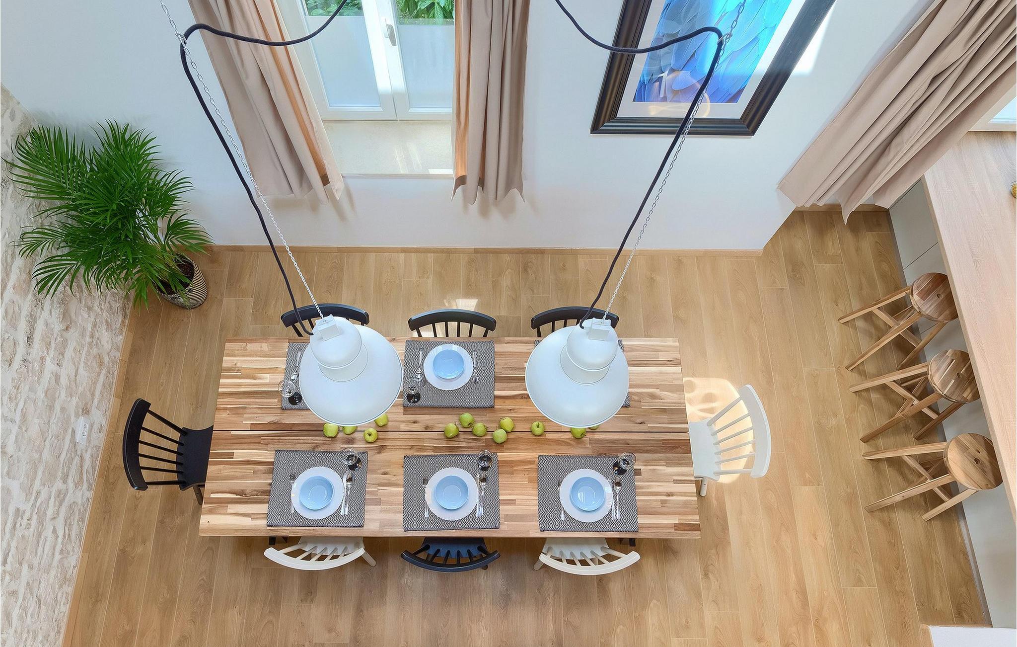 Denne villaen er et vakkert restaurert steinhus fra Istria med alle nødvendige moderne bekvemmeligheter og en fantastisk bevart tradisjonell sjarm. Villaen tilbyr overnatting for maksimalt 8 + 2 gjester i de 4 smakfullt innredede dobbeltrommene. I første etasje ligger to dobbeltrom med eget bad, en kreativ, moderne, åpen stue- og spisestue med direkte utgang til bassenget, et fullt utstyrt kjøkken og et gjestetoalett. Den åpne stuen har stor takhøyde med takvinduer, noe som gjør rommet spesielt lyst og gjennomstrømmet av lys. Trappen fører deg til den sjarmerende hemsen, som består av de resterende 2 soverommene (1 med en ekstra sovesofa for 2 personer) og et felles bad. En bro, som ligger over oppholdsrommet, forbinder de to soverommene i øverste etasje.