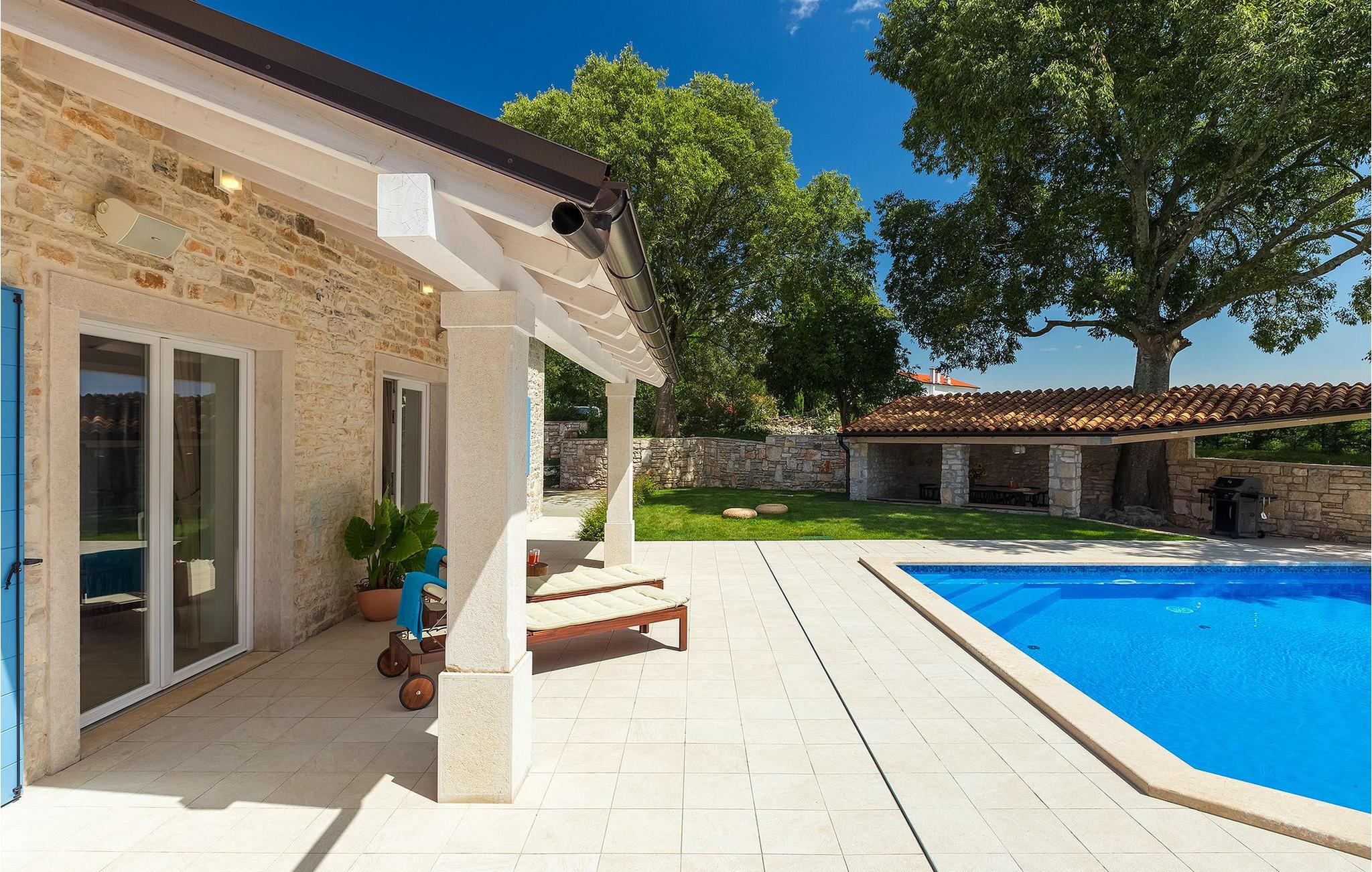 Uteområdet er et herlig sted å slappe av, enten du vil sole deg ved bassenget eller ta en forfriskende svømmetur. Den overbygde uteserveringen er utstyrt med en gassgrill for uteservering, hvor du kan la deg inspirere av den velkjente istriske gastronomien :). Villaen er utstyrt med WiFi og har 2 parkeringsplasser. Villa Viva ønsker deg velkommen - nyt drømmeferien med familie og venner i disse vakre omgivelsene :)