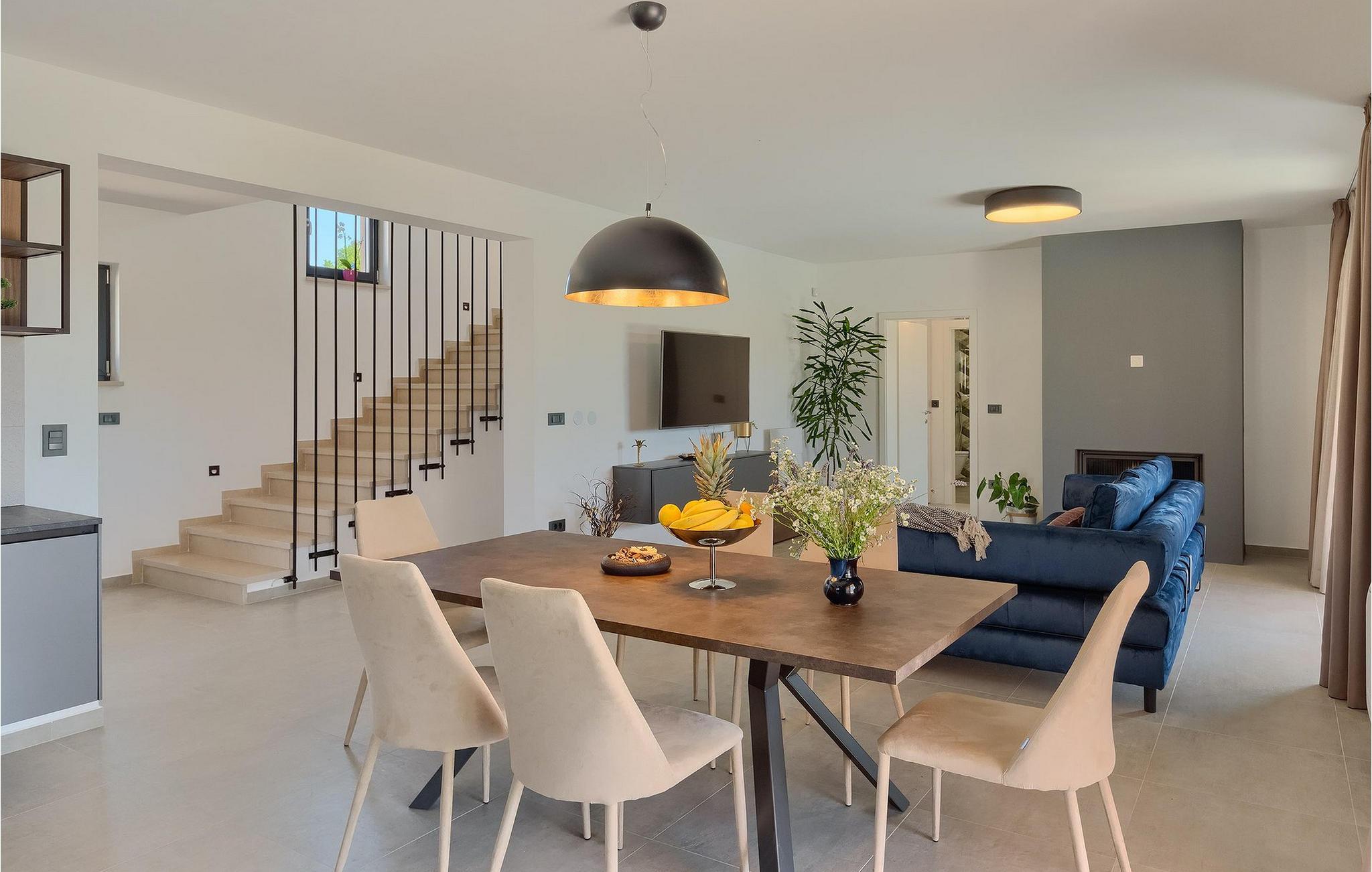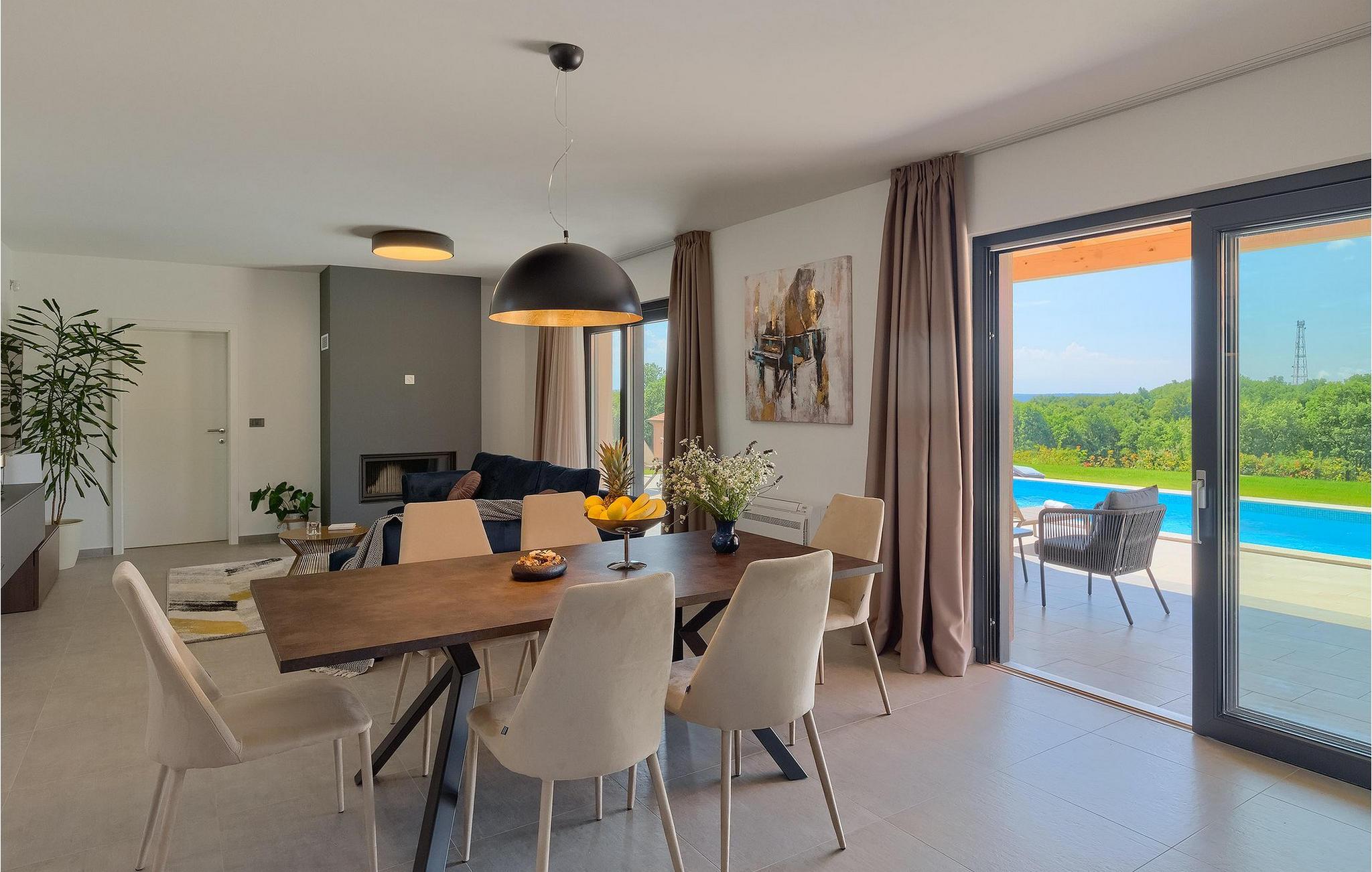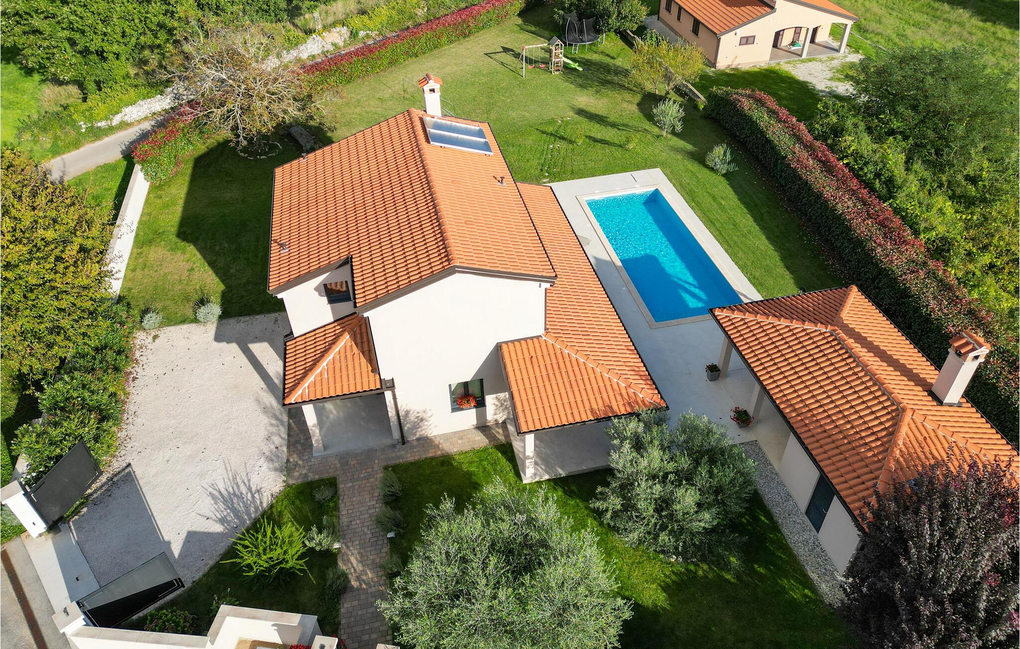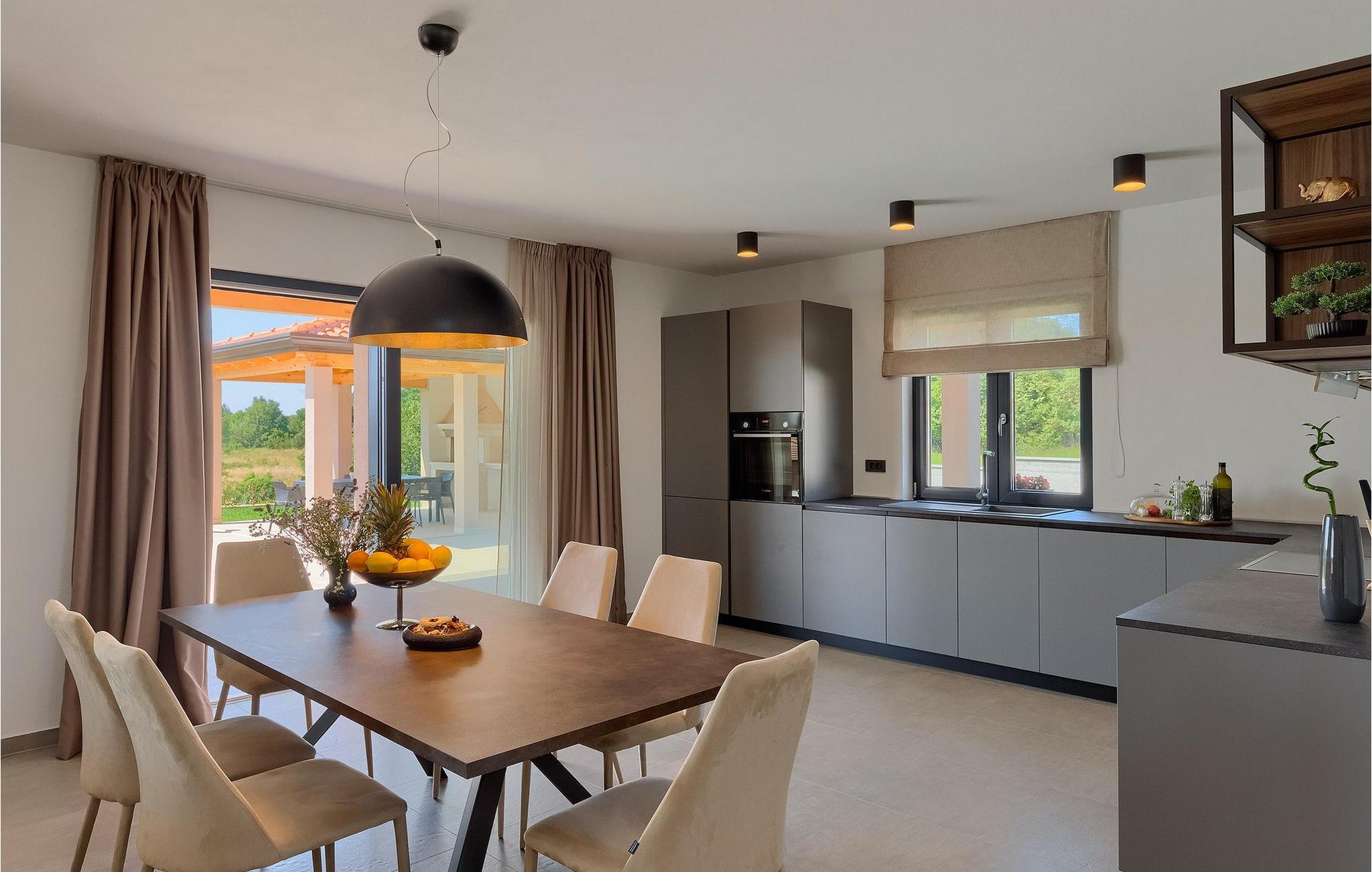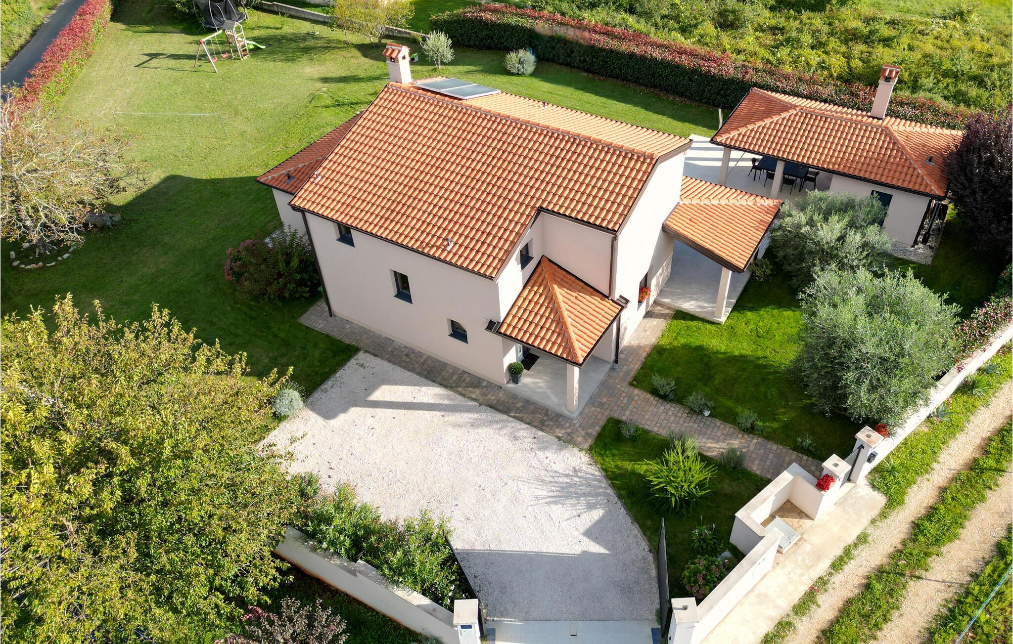 Villaens moderne og elegante design gjenspeiles også i uteområdet med privat basseng omgitt av solsenger. Villaen er inngjerdet og har en romslig gressplen som er ideell for barnas lek og moro. De minste kan boltre seg på husker, sklie og trampoline, slik at de kan få flere timer med lek. I tillegg til bassenget er uteområdet utstyrt med en baldakin med kullgrill og et spisebord for måltider i det fri. Avslutt de felles aktivitetene med bordtennis eller en piknik på en benk ved siden av treet for en uforglemmelig opplevelse. Denne villaen er ledende i kategorien miljøbevissthet fordi den bruker alternative metoder i form av solcellepaneler for å varme opp vann om sommeren, og tilbyr til og med besøkende med elbiler en spesiell ladetilkobling på parkeringsplassen.Villa Joze ligger i hjertet av Istria i landsbyen Tinjan, som ligger ca. 20 km fra byen Porec. Tinjan er en liten landsby som er kjent for sin utmerkede gastronomi og produksjonen av en av verdens beste prosciutto. Prøv tradisjonelle istriske retter på en av de mange topprestaurantene ikke langt fra villaen. Glem ikke å besøke de romantiske kystbyene Pula, Rovinj og Porec. Rovinj er en spesielt vakker by som vil begeistre deg med sine trange gater, flotte restauranter og vennlige lokalbefolkning. For alle kulturelskere anbefaler vi et besøk i byen Pula med sitt romerske amfiteater eller et besøk i Brijuni nasjonalpark, der det finnes mange arkeologiske funnsteder. Sentrale Istria er ideelt for aktive feriegjester og sportsentusiaster, syklister og turgåere. Besøk små middelalderbyer som ligger på høyder som Motovun, Buzet, Visnjan eller Hum (verdens minste by).