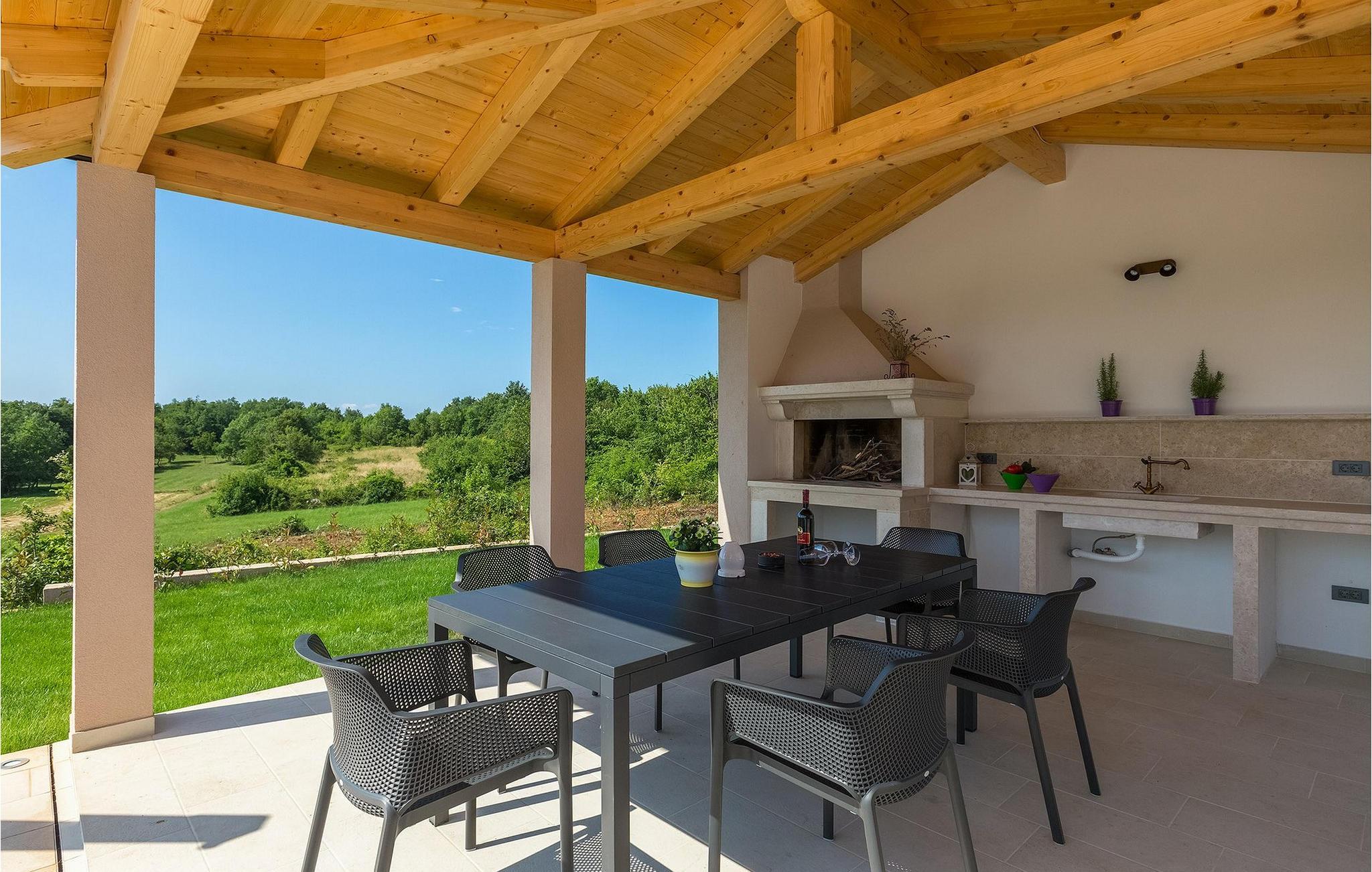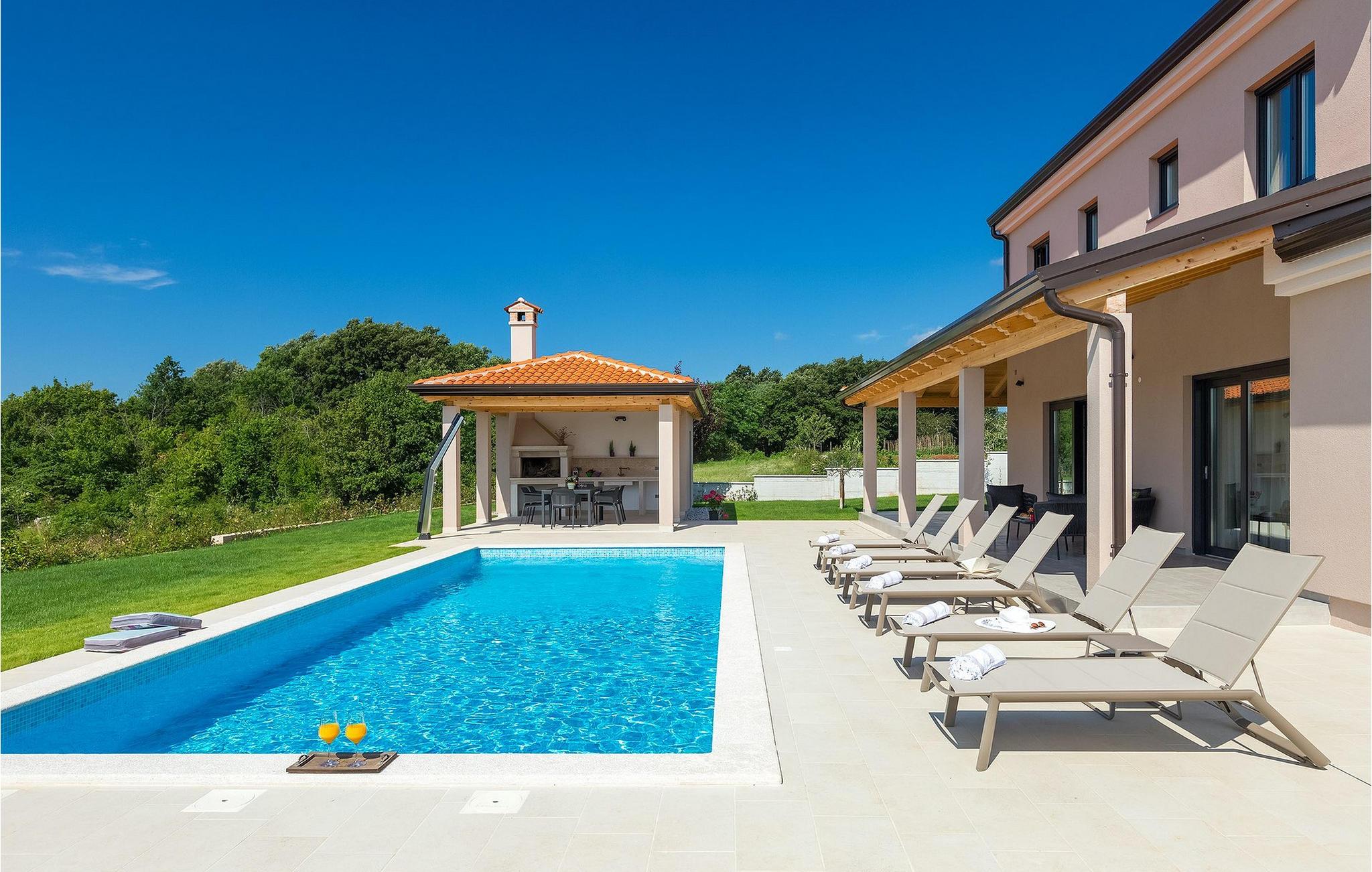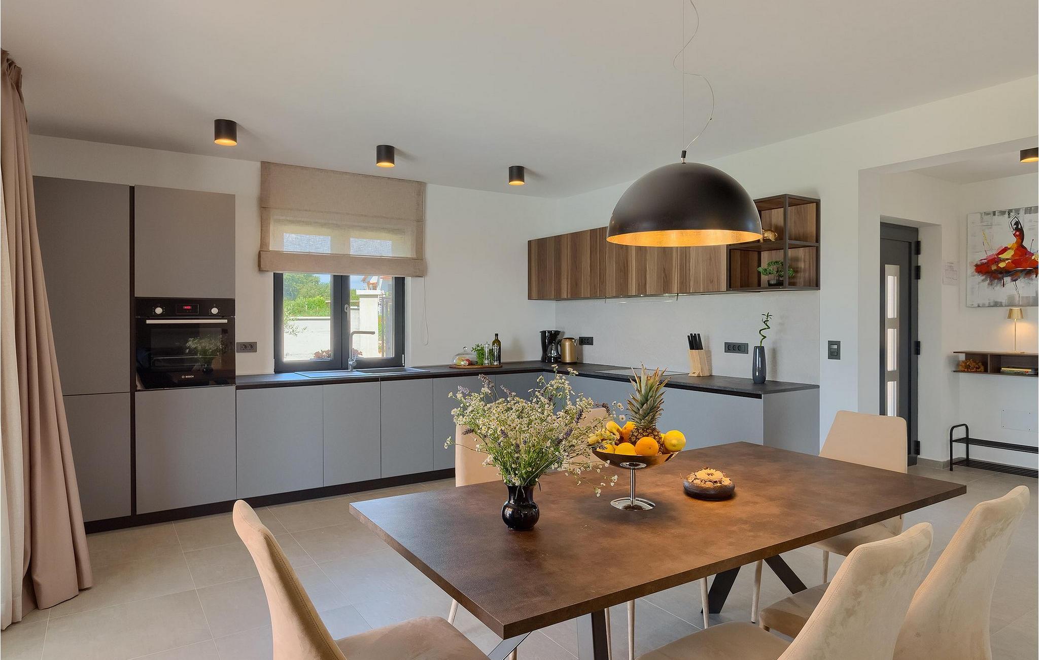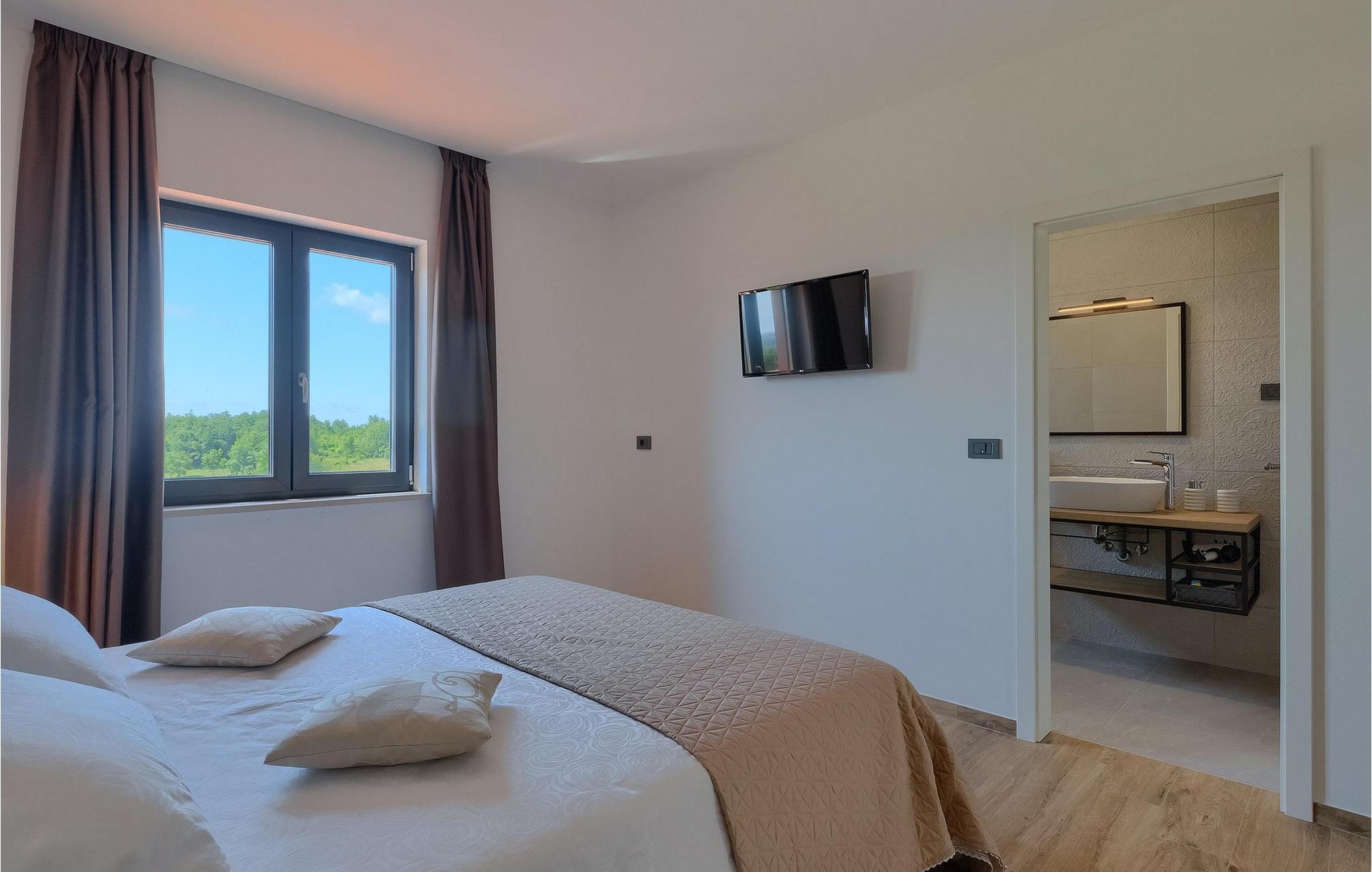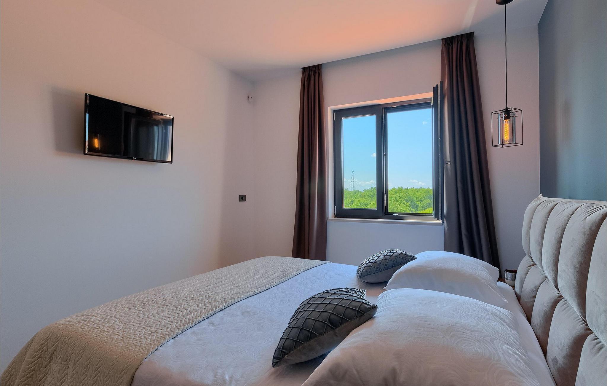 Villaens moderne og elegante design gjenspeiles også i uteområdet med privat basseng omgitt av solsenger. Villaen er inngjerdet og har en romslig gressplen som er ideell for barnas lek og moro. De minste kan boltre seg på husker, sklie og trampoline, slik at de kan få flere timer med lek. I tillegg til bassenget er uteområdet utstyrt med en baldakin med kullgrill og et spisebord for måltider i det fri. Avslutt de felles aktivitetene med bordtennis eller en piknik på en benk ved siden av treet for en uforglemmelig opplevelse. Denne villaen er ledende i kategorien miljøbevissthet fordi den bruker alternative metoder i form av solcellepaneler for å varme opp vann om sommeren, og tilbyr til og med besøkende med elbiler en spesiell ladetilkobling på parkeringsplassen.Villa Joze ligger i hjertet av Istria i landsbyen Tinjan, som ligger ca. 20 km fra byen Porec. Tinjan er en liten landsby som er kjent for sin utmerkede gastronomi og produksjonen av en av verdens beste prosciutto. Prøv tradisjonelle istriske retter på en av de mange topprestaurantene ikke langt fra villaen. Glem ikke å besøke de romantiske kystbyene Pula, Rovinj og Porec. Rovinj er en spesielt vakker by som vil begeistre deg med sine trange gater, flotte restauranter og vennlige lokalbefolkning. For alle kulturelskere anbefaler vi et besøk i byen Pula med sitt romerske amfiteater eller et besøk i Brijuni nasjonalpark, der det finnes mange arkeologiske funnsteder. Sentrale Istria er ideelt for aktive feriegjester og sportsentusiaster, syklister og turgåere. Besøk små middelalderbyer som ligger på høyder som Motovun, Buzet, Visnjan eller Hum (verdens minste by).