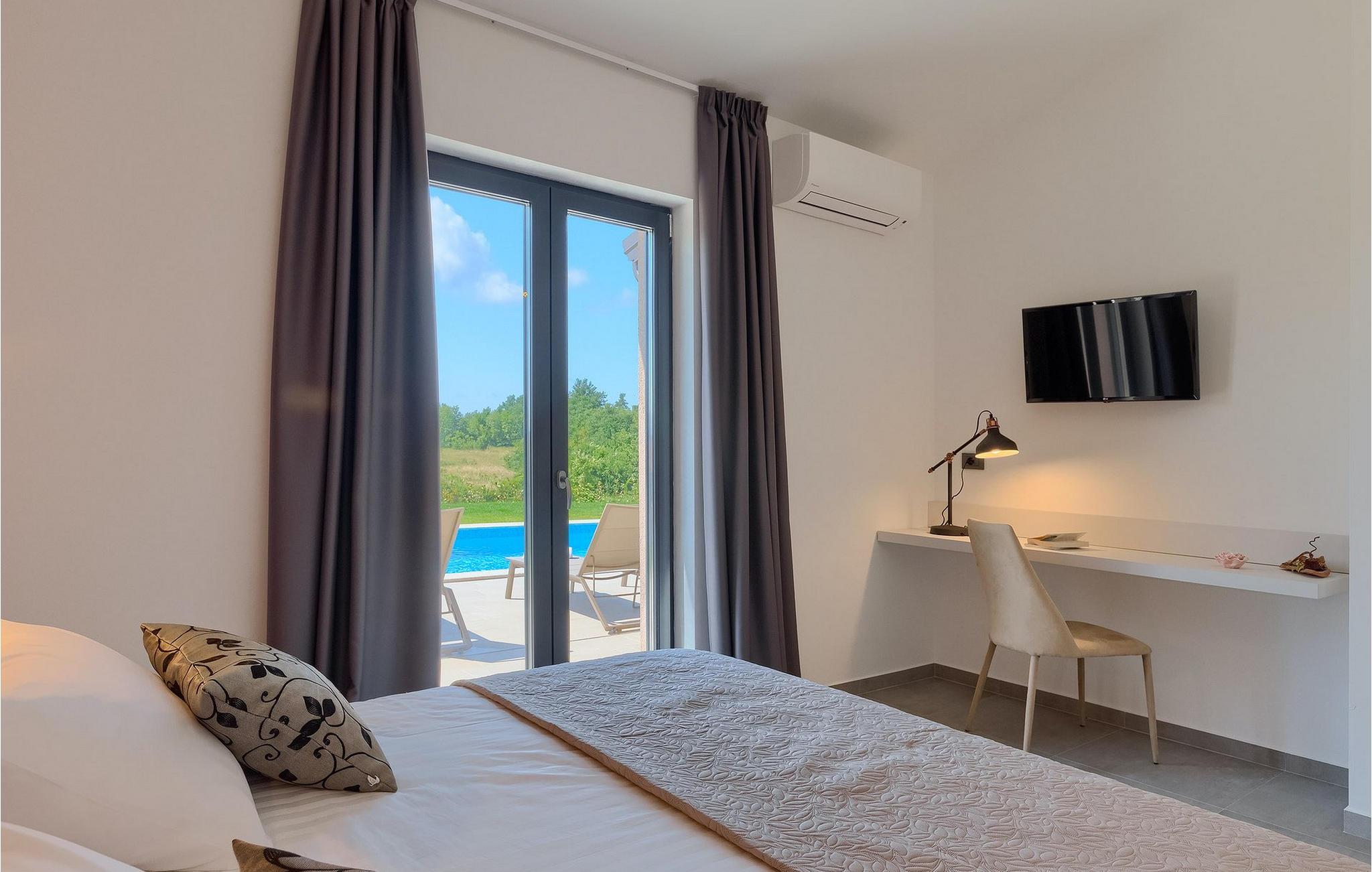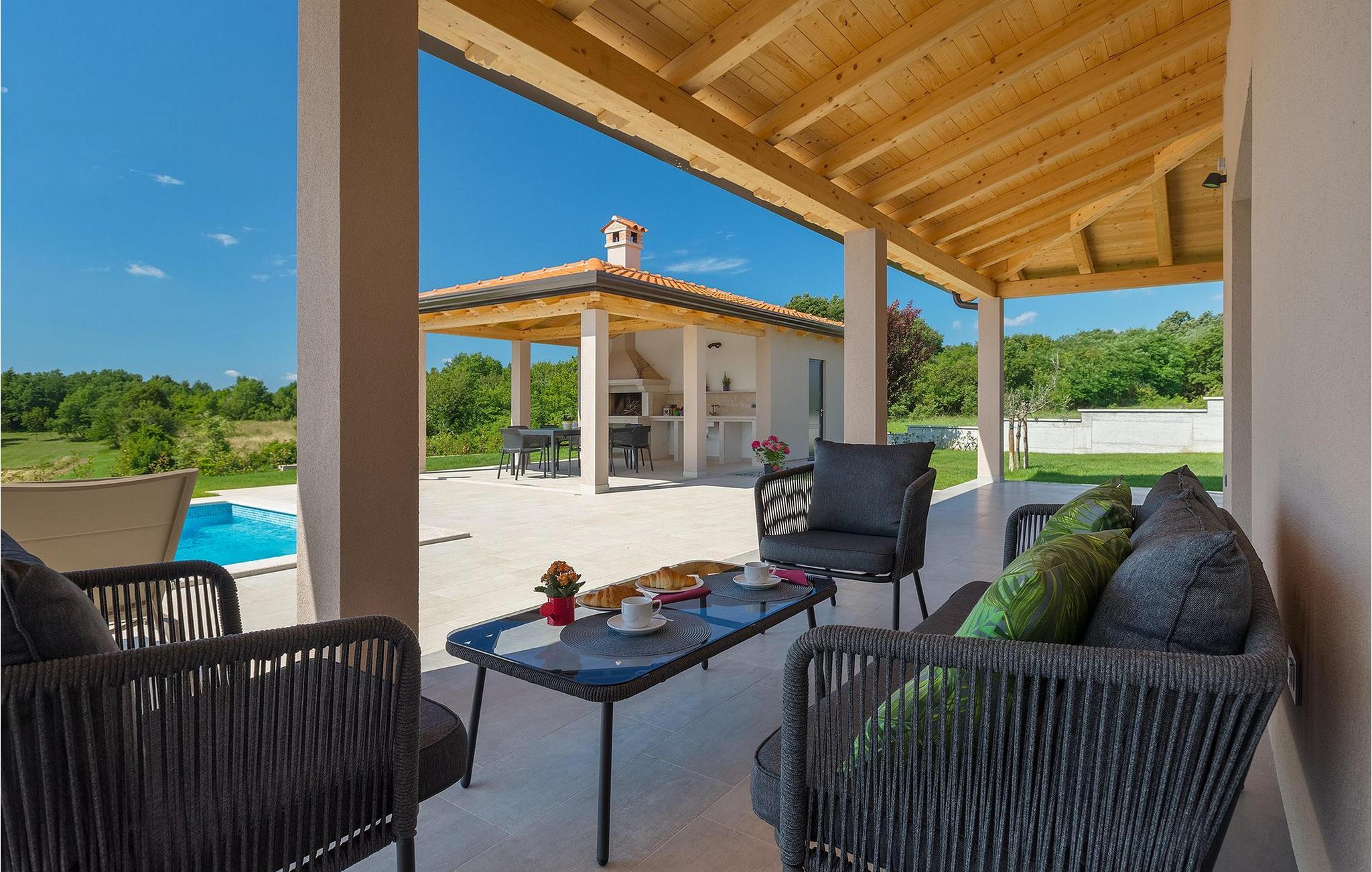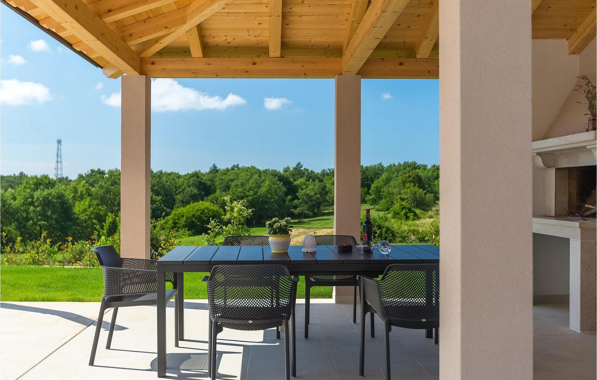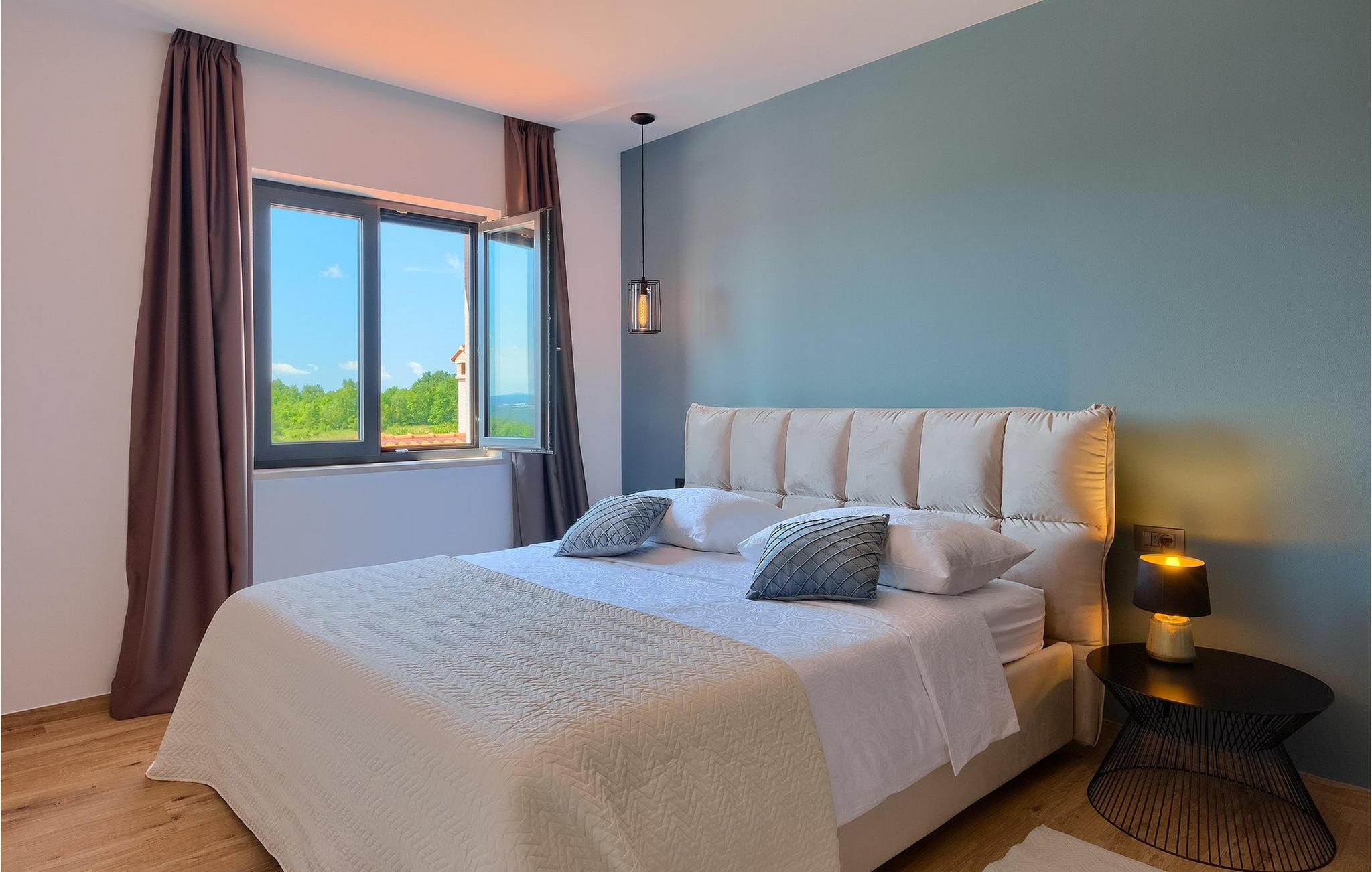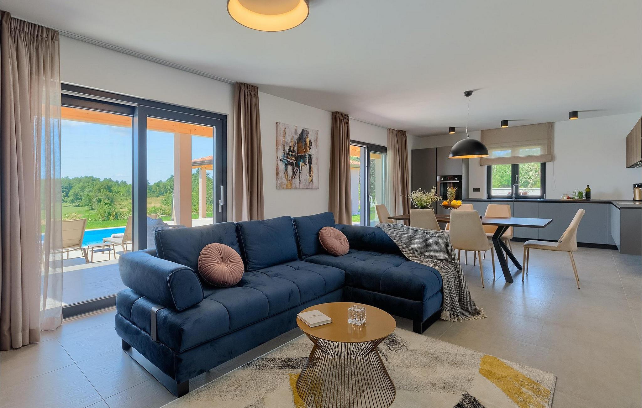 Villaens moderne og elegante design gjenspeiles også i uteområdet med privat basseng omgitt av solsenger. Villaen er inngjerdet og har en romslig gressplen som er ideell for barnas lek og moro. De minste kan boltre seg på husker, sklie og trampoline, slik at de kan få flere timer med lek. I tillegg til bassenget er uteområdet utstyrt med en baldakin med kullgrill og et spisebord for måltider i det fri. Avslutt de felles aktivitetene med bordtennis eller en piknik på en benk ved siden av treet for en uforglemmelig opplevelse. Denne villaen er ledende i kategorien miljøbevissthet fordi den bruker alternative metoder i form av solcellepaneler for å varme opp vann om sommeren, og tilbyr til og med besøkende med elbiler en spesiell ladetilkobling på parkeringsplassen.Villa Joze ligger i hjertet av Istria i landsbyen Tinjan, som ligger ca. 20 km fra byen Porec. Tinjan er en liten landsby som er kjent for sin utmerkede gastronomi og produksjonen av en av verdens beste prosciutto. Prøv tradisjonelle istriske retter på en av de mange topprestaurantene ikke langt fra villaen. Glem ikke å besøke de romantiske kystbyene Pula, Rovinj og Porec. Rovinj er en spesielt vakker by som vil begeistre deg med sine trange gater, flotte restauranter og vennlige lokalbefolkning. For alle kulturelskere anbefaler vi et besøk i byen Pula med sitt romerske amfiteater eller et besøk i Brijuni nasjonalpark, der det finnes mange arkeologiske funnsteder. Sentrale Istria er ideelt for aktive feriegjester og sportsentusiaster, syklister og turgåere. Besøk små middelalderbyer som ligger på høyder som Motovun, Buzet, Visnjan eller Hum (verdens minste by).