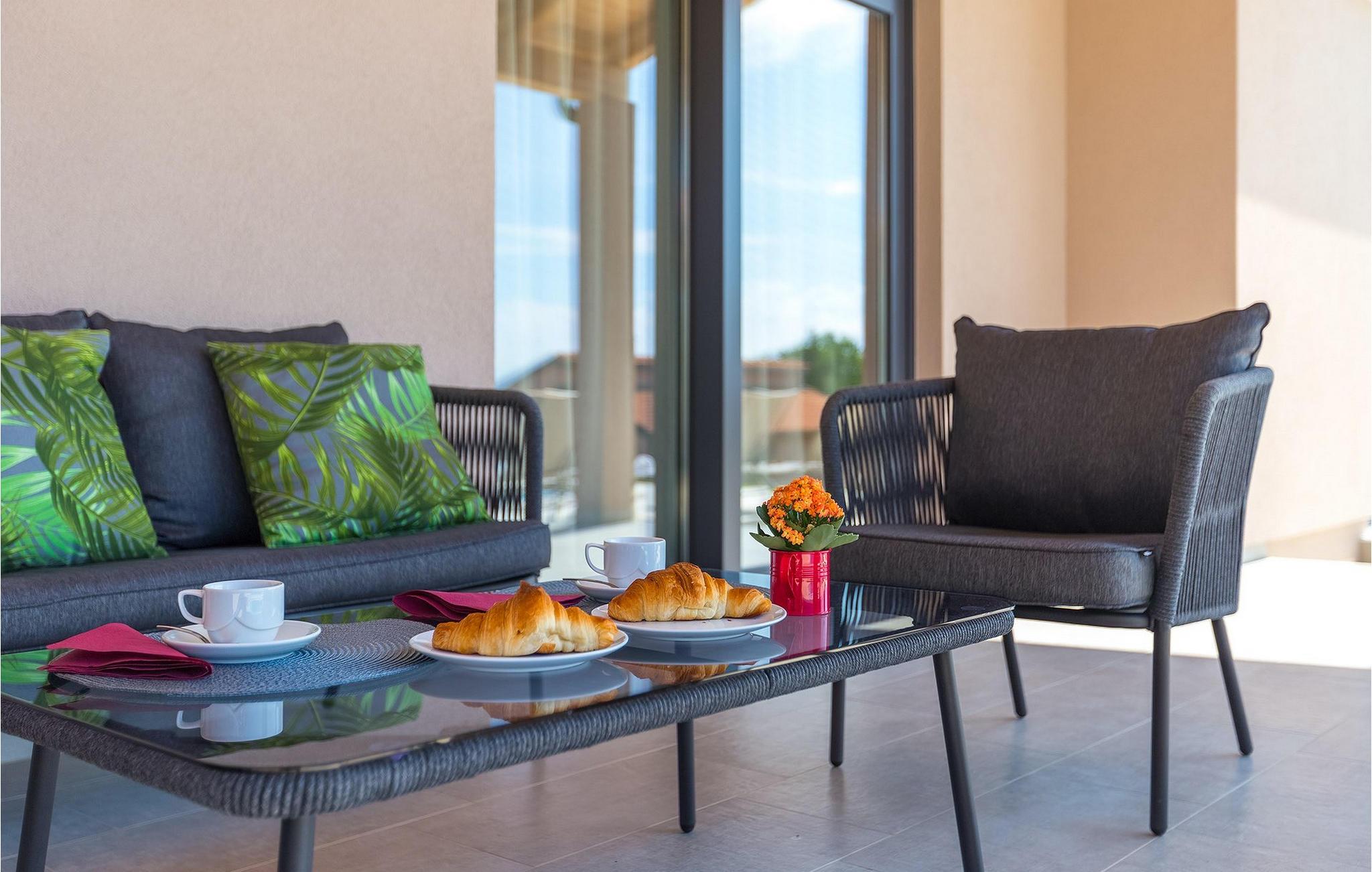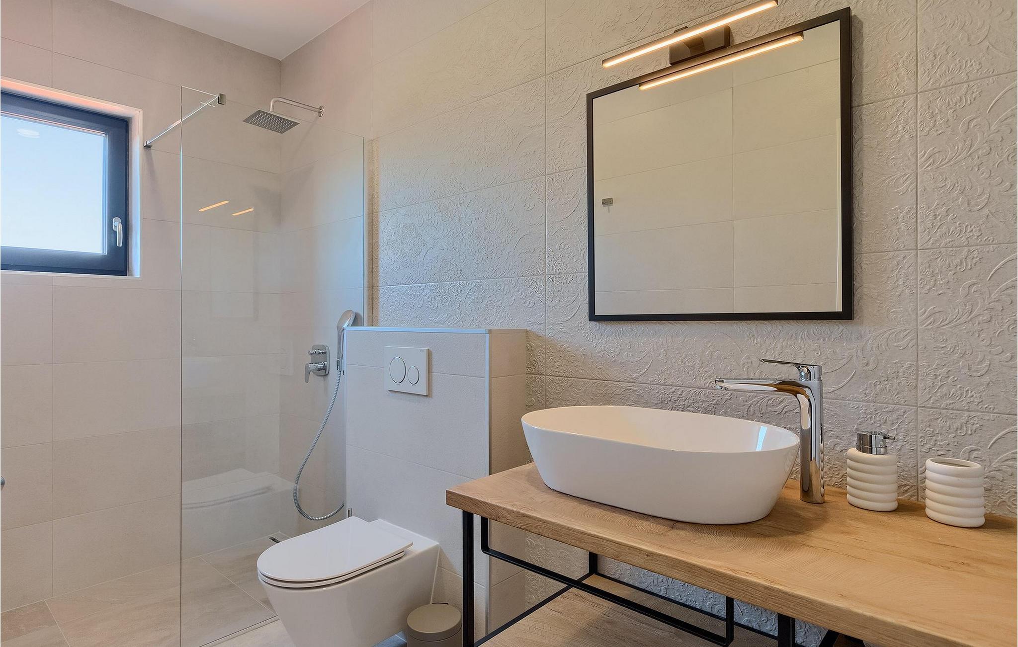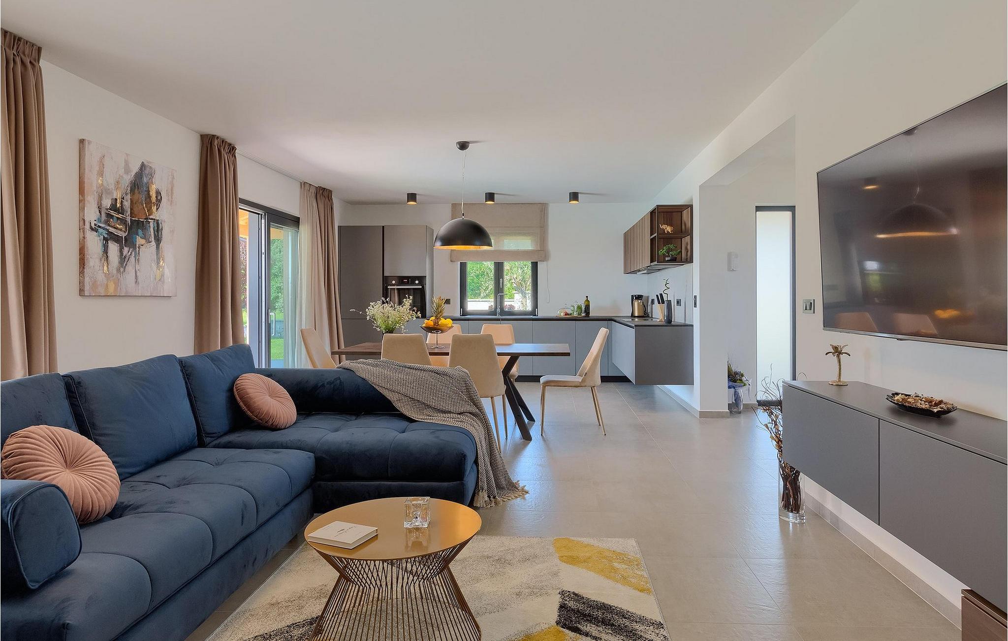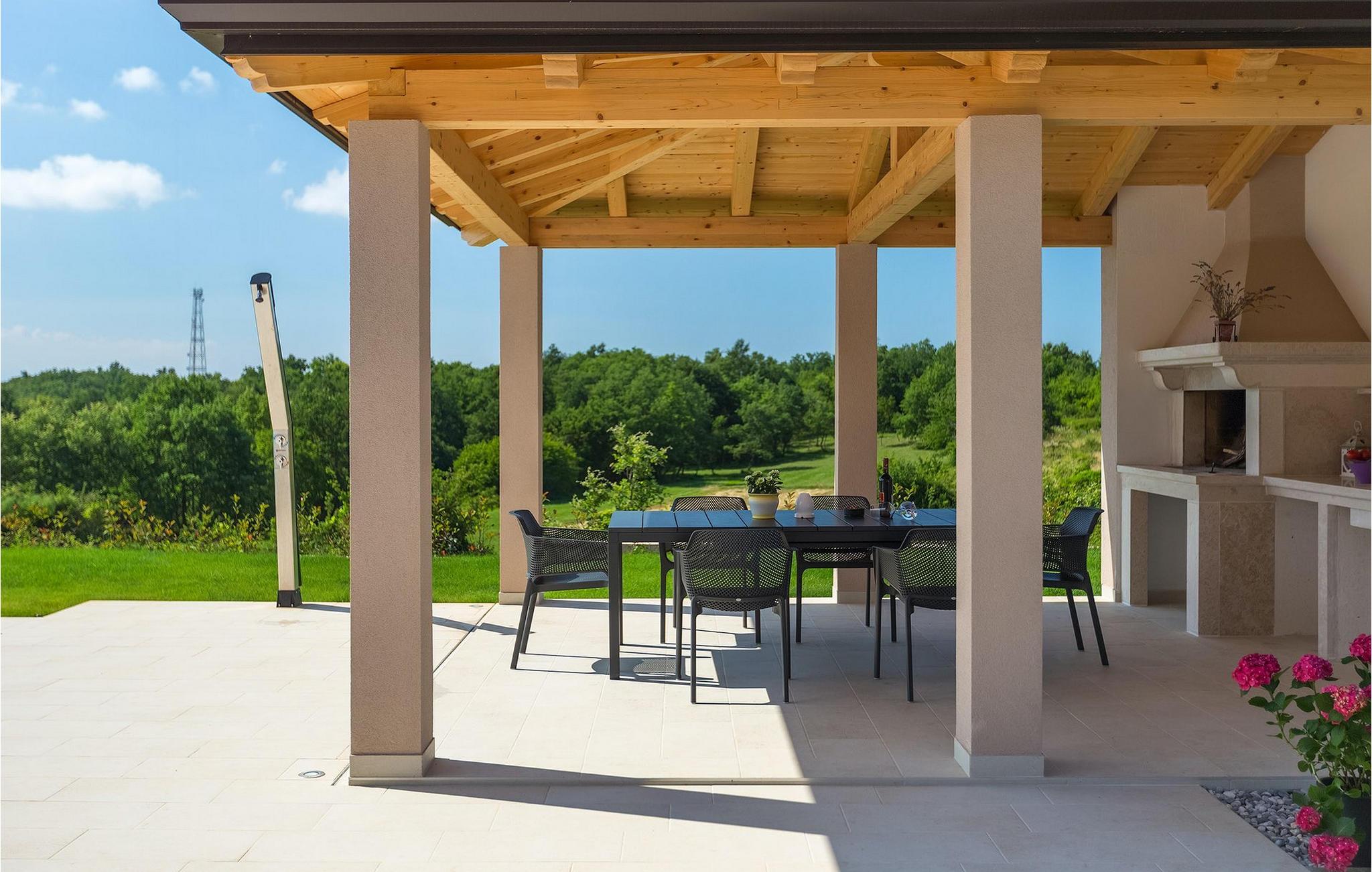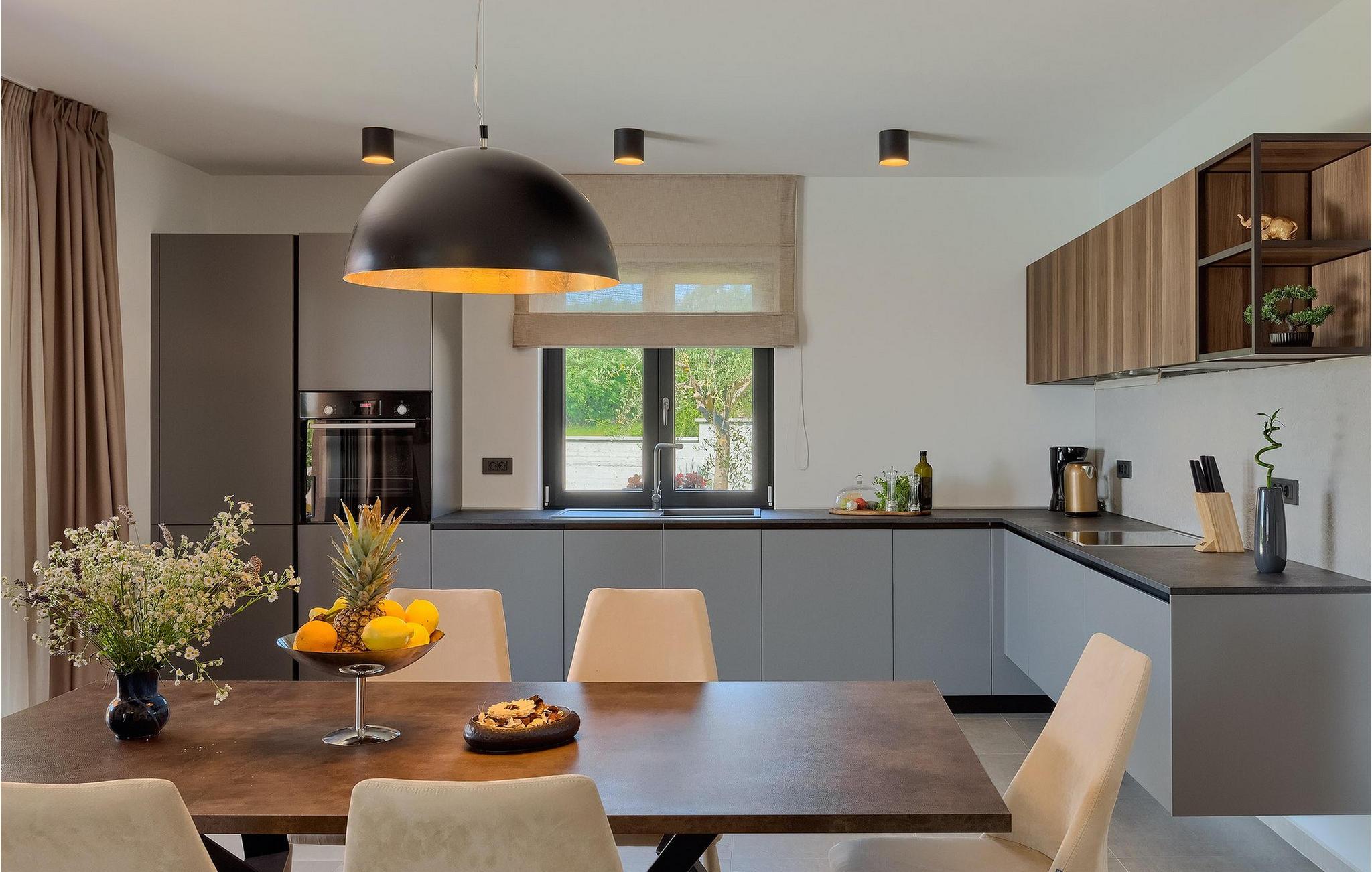 Villaens moderne og elegante design gjenspeiles også i uteområdet med privat basseng omgitt av solsenger. Villaen er inngjerdet og har en romslig gressplen som er ideell for barnas lek og moro. De minste kan boltre seg på husker, sklie og trampoline, slik at de kan få flere timer med lek. I tillegg til bassenget er uteområdet utstyrt med en baldakin med kullgrill og et spisebord for måltider i det fri. Avslutt de felles aktivitetene med bordtennis eller en piknik på en benk ved siden av treet for en uforglemmelig opplevelse. Denne villaen er ledende i kategorien miljøbevissthet fordi den bruker alternative metoder i form av solcellepaneler for å varme opp vann om sommeren, og tilbyr til og med besøkende med elbiler en spesiell ladetilkobling på parkeringsplassen.Villa Joze ligger i hjertet av Istria i landsbyen Tinjan, som ligger ca. 20 km fra byen Porec. Tinjan er en liten landsby som er kjent for sin utmerkede gastronomi og produksjonen av en av verdens beste prosciutto. Prøv tradisjonelle istriske retter på en av de mange topprestaurantene ikke langt fra villaen. Glem ikke å besøke de romantiske kystbyene Pula, Rovinj og Porec. Rovinj er en spesielt vakker by som vil begeistre deg med sine trange gater, flotte restauranter og vennlige lokalbefolkning. For alle kulturelskere anbefaler vi et besøk i byen Pula med sitt romerske amfiteater eller et besøk i Brijuni nasjonalpark, der det finnes mange arkeologiske funnsteder. Sentrale Istria er ideelt for aktive feriegjester og sportsentusiaster, syklister og turgåere. Besøk små middelalderbyer som ligger på høyder som Motovun, Buzet, Visnjan eller Hum (verdens minste by).